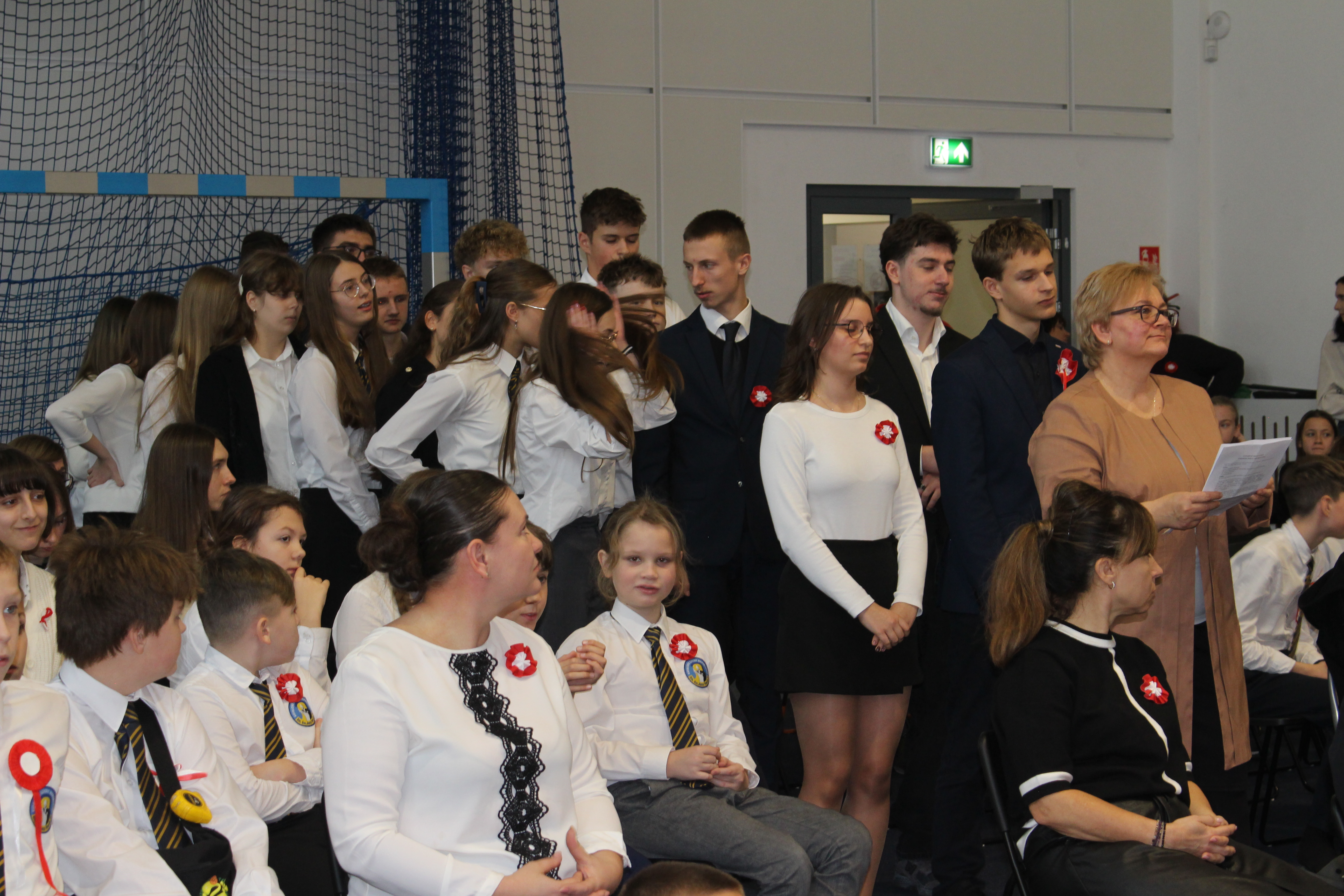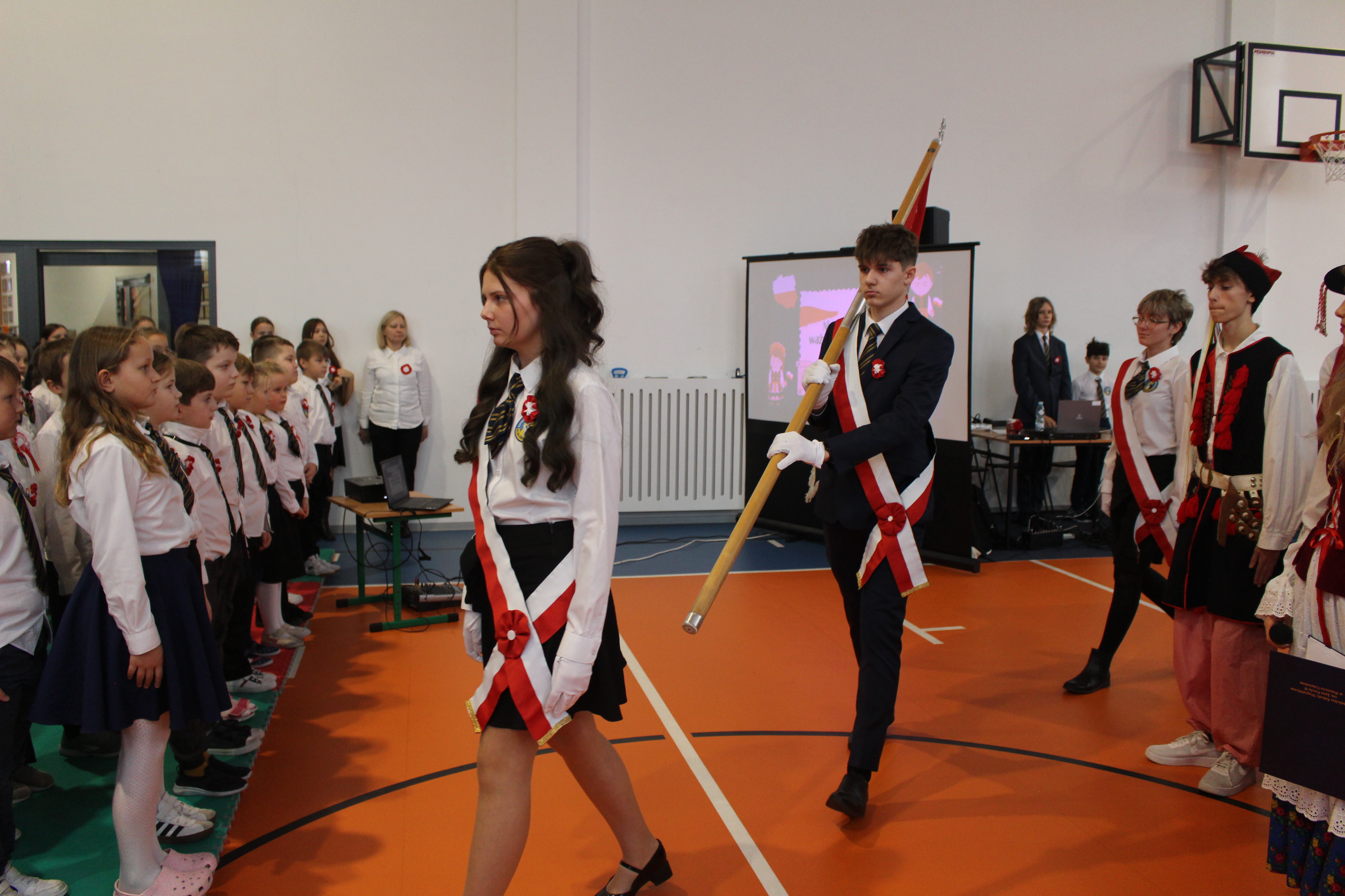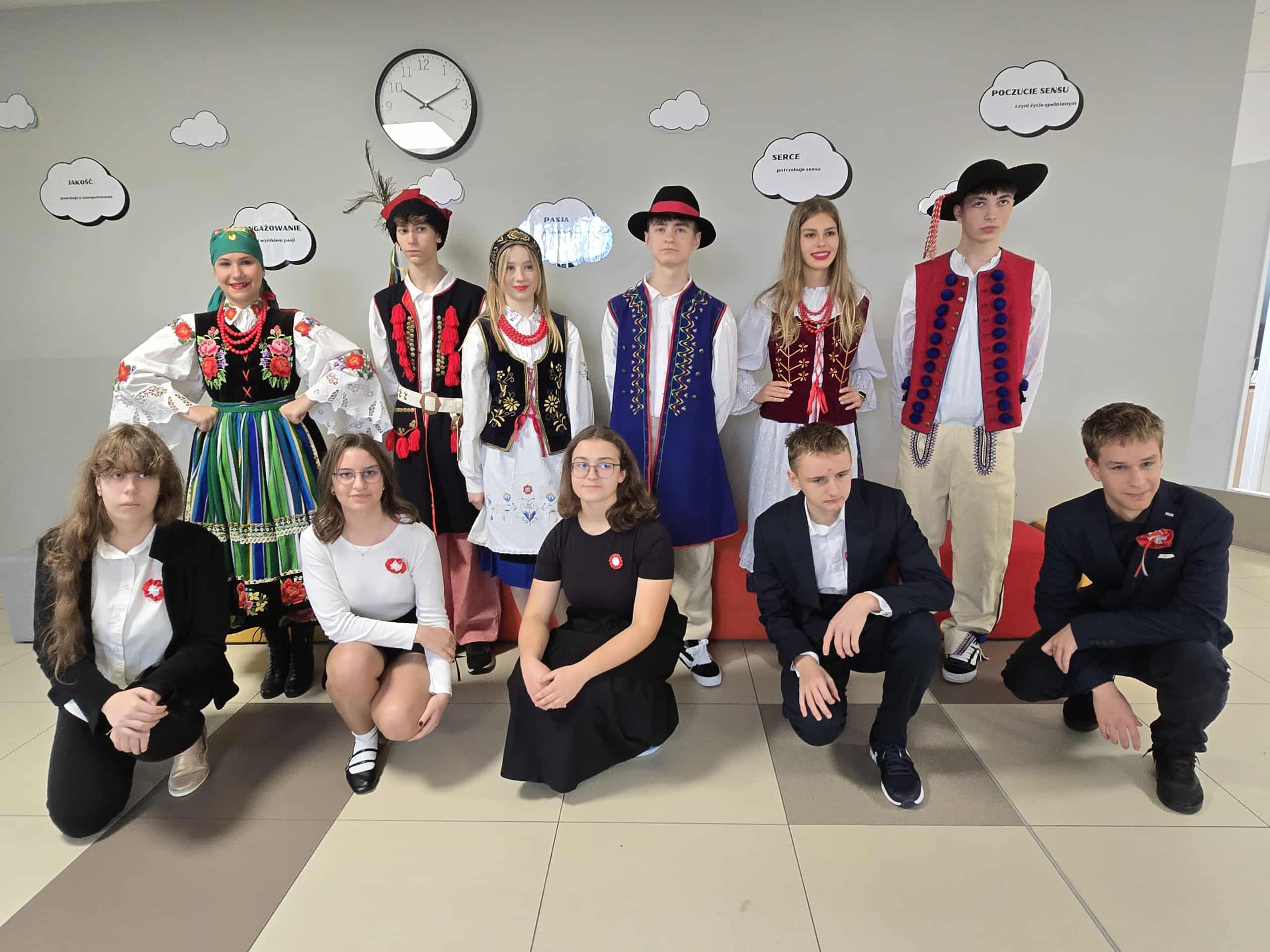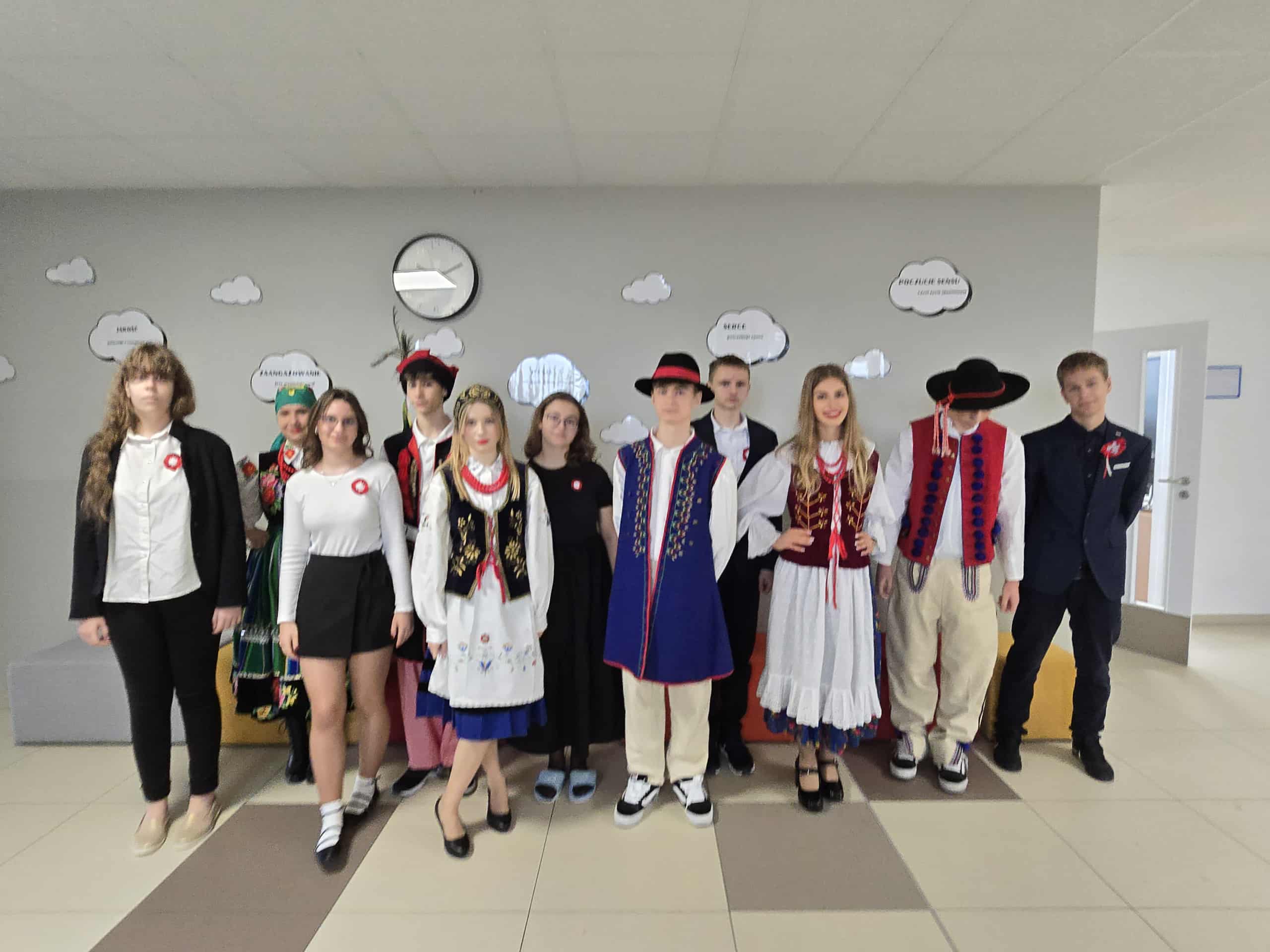 Na koniec przedstawiciele wszystkich klas wspólnie zatańczyli poloneza, który symbolicznie połączył pokolenia i podkreślił siłę wspólnoty narodowej. Ten taniec był pięknym zwieńczeniem obchodów, wyrazem miłości do ojczyzny i szacunku dla jej historii. Całe wydarzenie było pełne wzruszeń, radości i dumy, a jego atmosfera na długo zostanie w naszej pamięci. To święto przypomniało nam wszystkim, jak ważne jest pielęgnowanie patriotyzmu i szanowanie tradycji, które jednoczą nas jako naród.