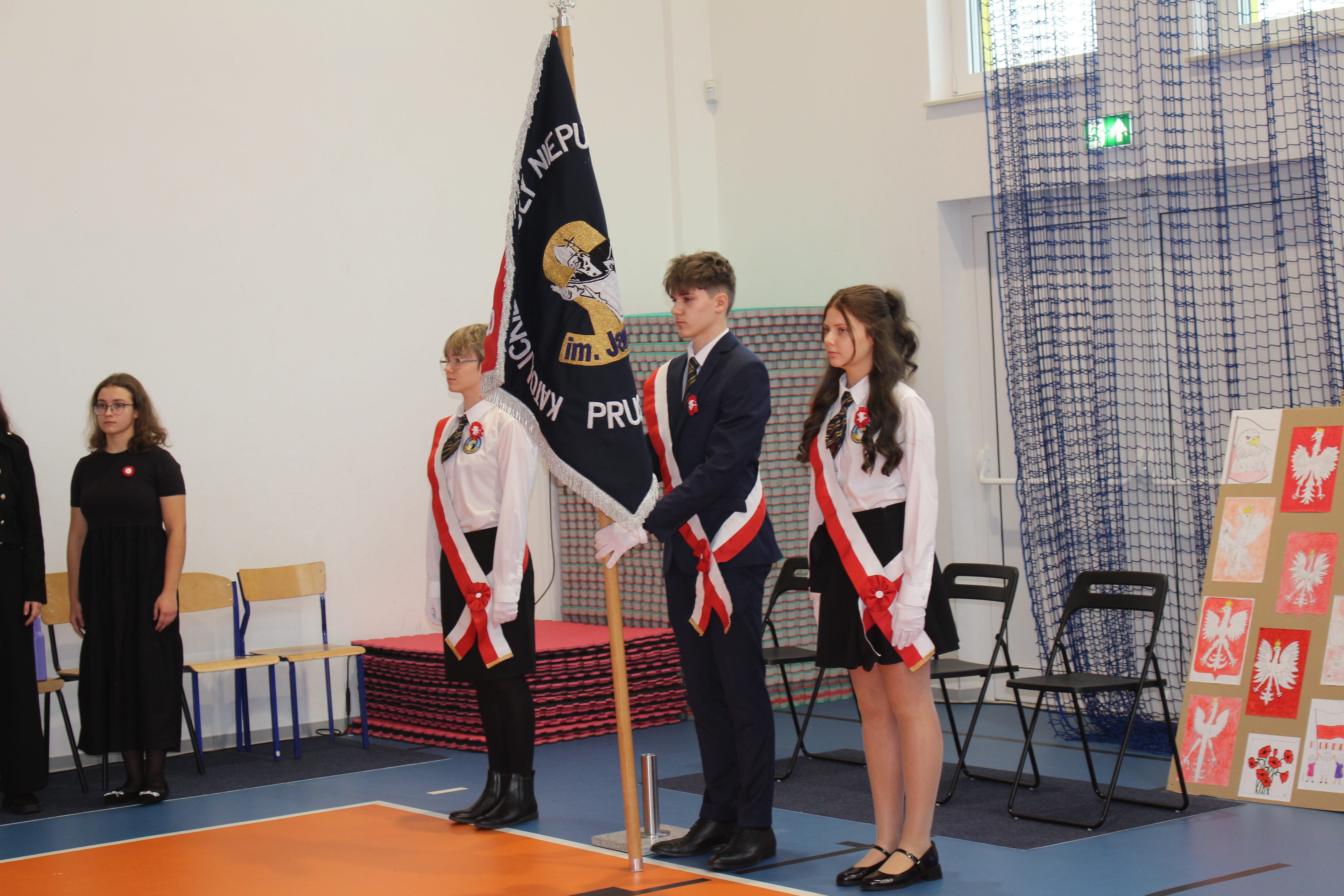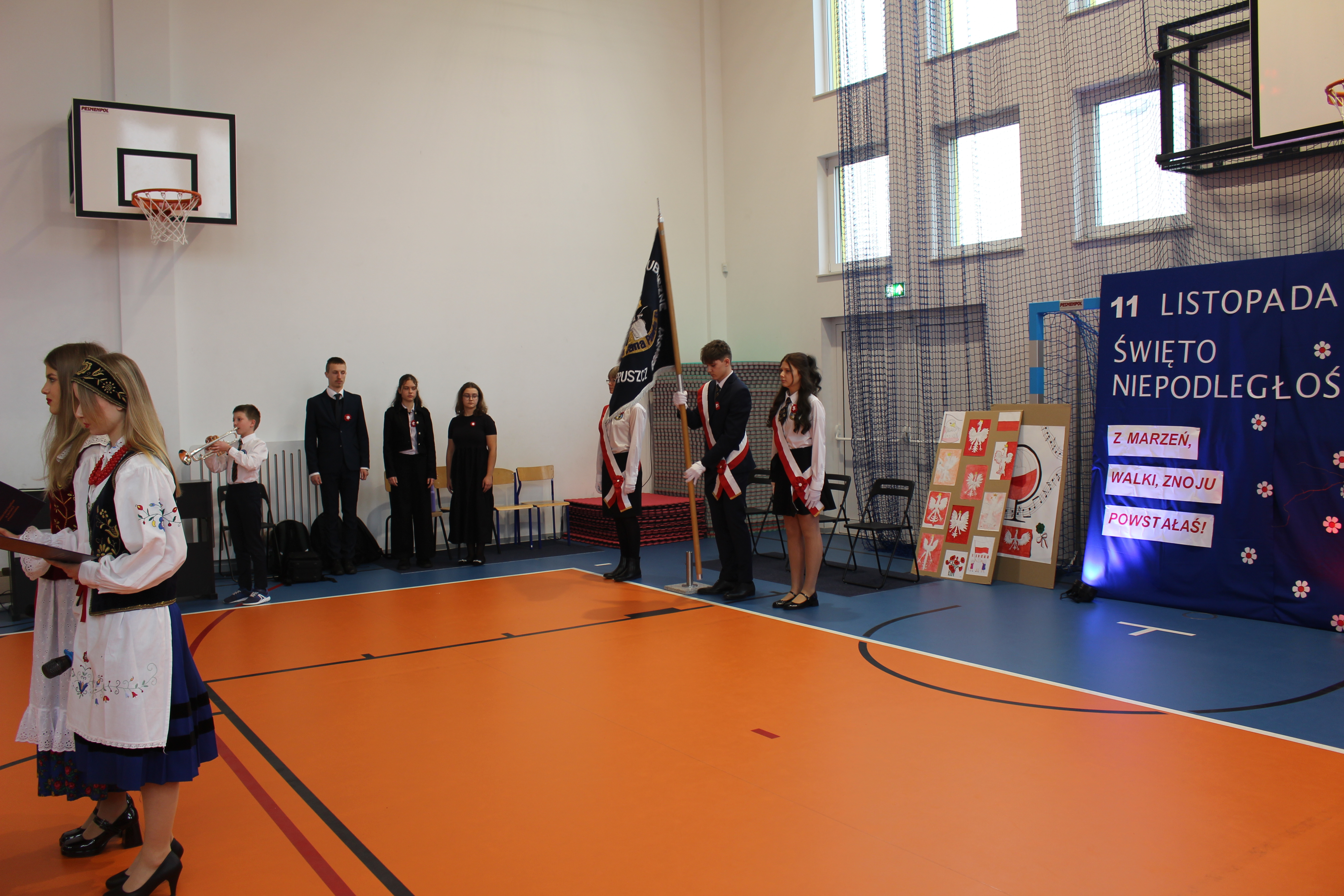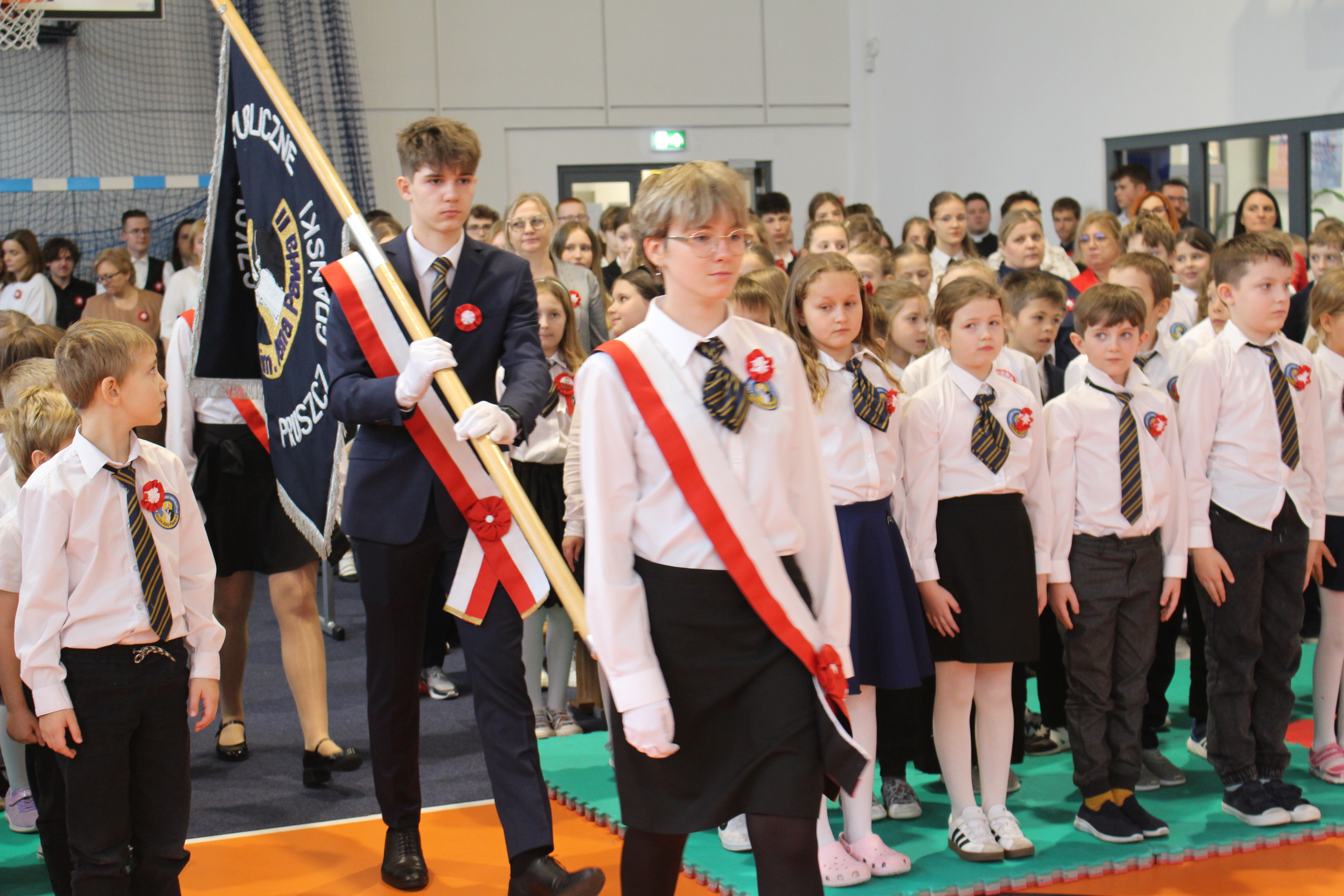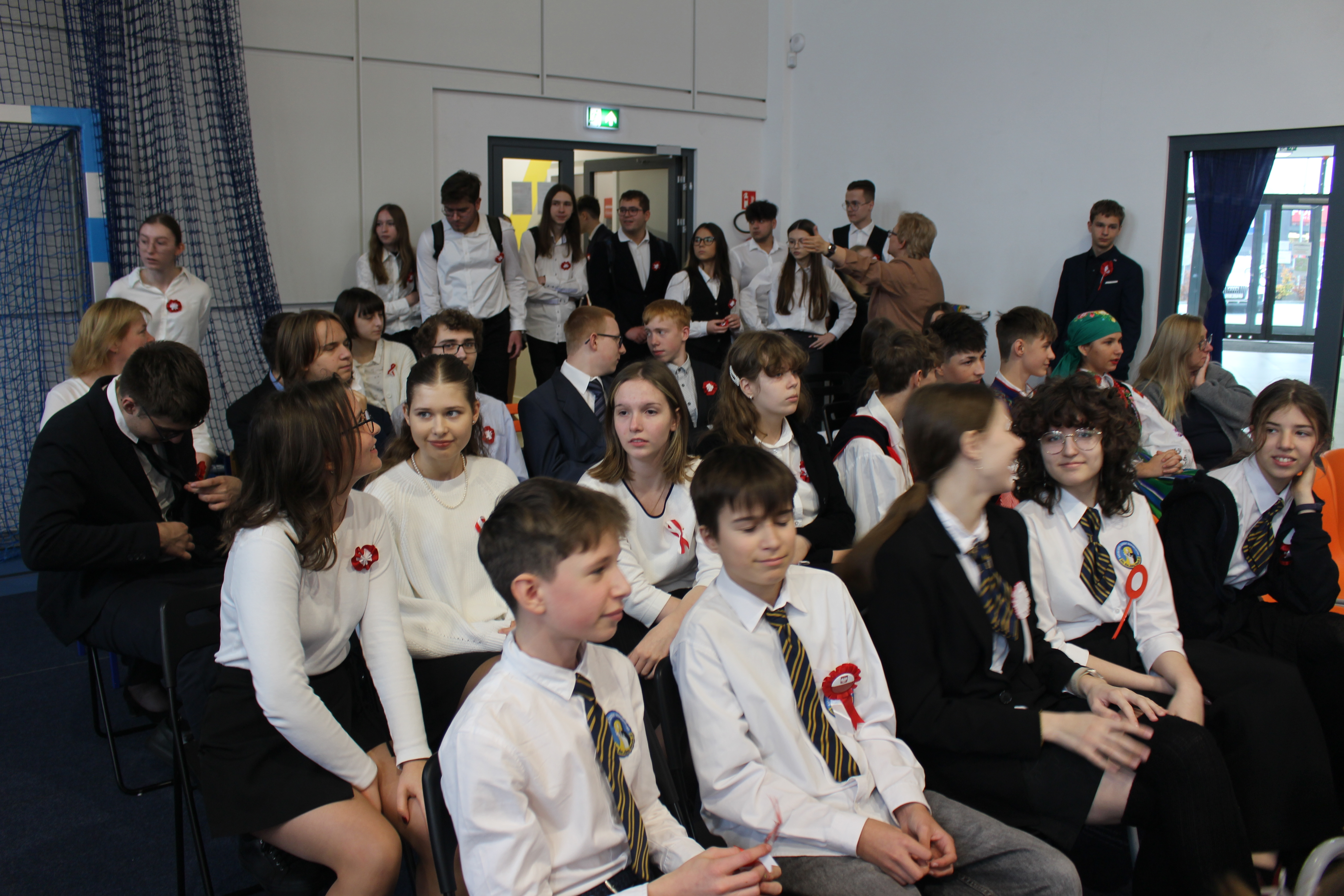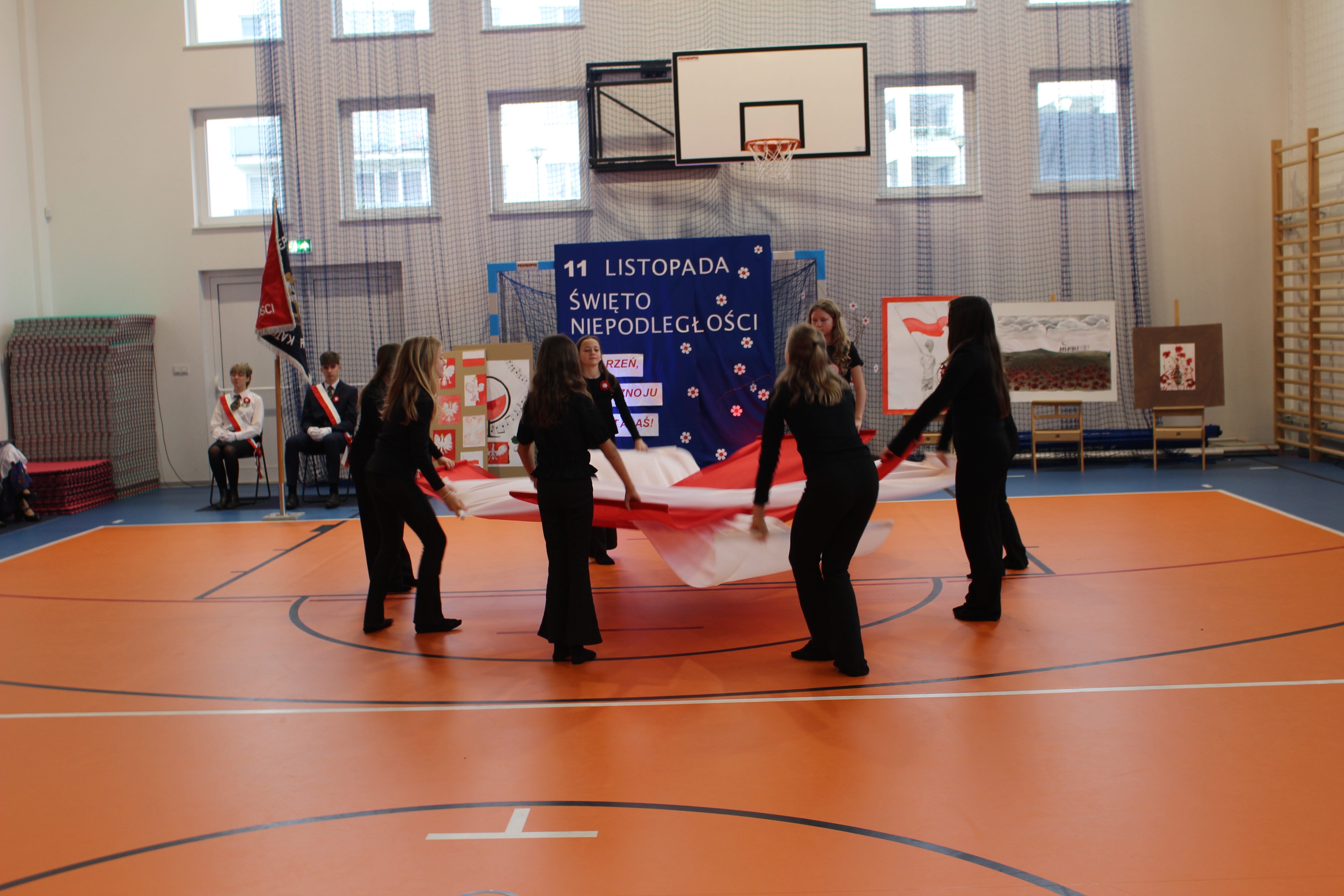 Na koniec przedstawiciele wszystkich klas wspólnie zatańczyli poloneza, który symbolicznie połączył pokolenia i podkreślił siłę wspólnoty narodowej. Ten taniec był pięknym zwieńczeniem obchodów, wyrazem miłości do ojczyzny i szacunku dla jej historii. Całe wydarzenie było pełne wzruszeń, radości i dumy, a jego atmosfera na długo zostanie w naszej pamięci. To święto przypomniało nam wszystkim, jak ważne jest pielęgnowanie patriotyzmu i szanowanie tradycji, które jednoczą nas jako naród.