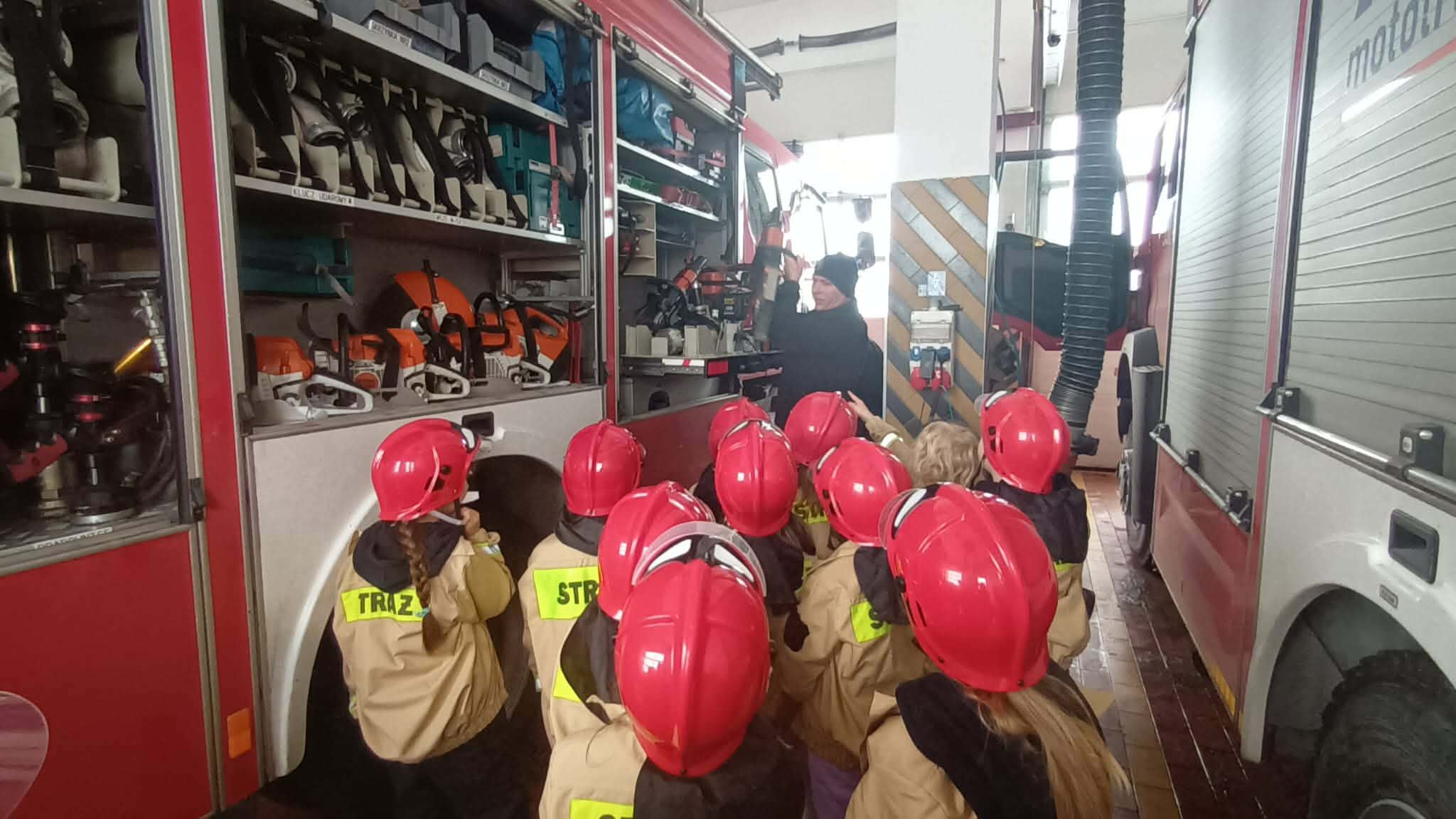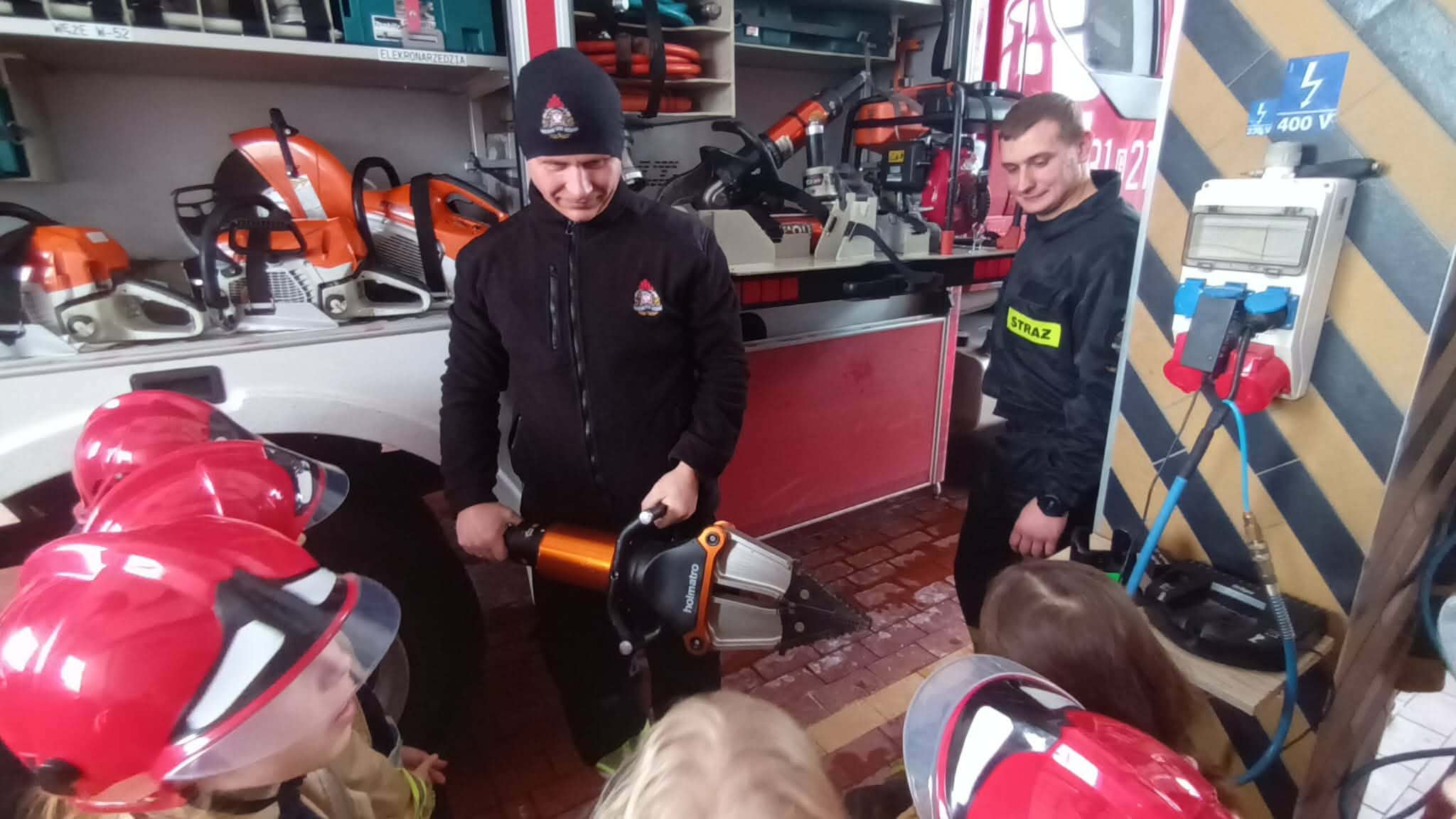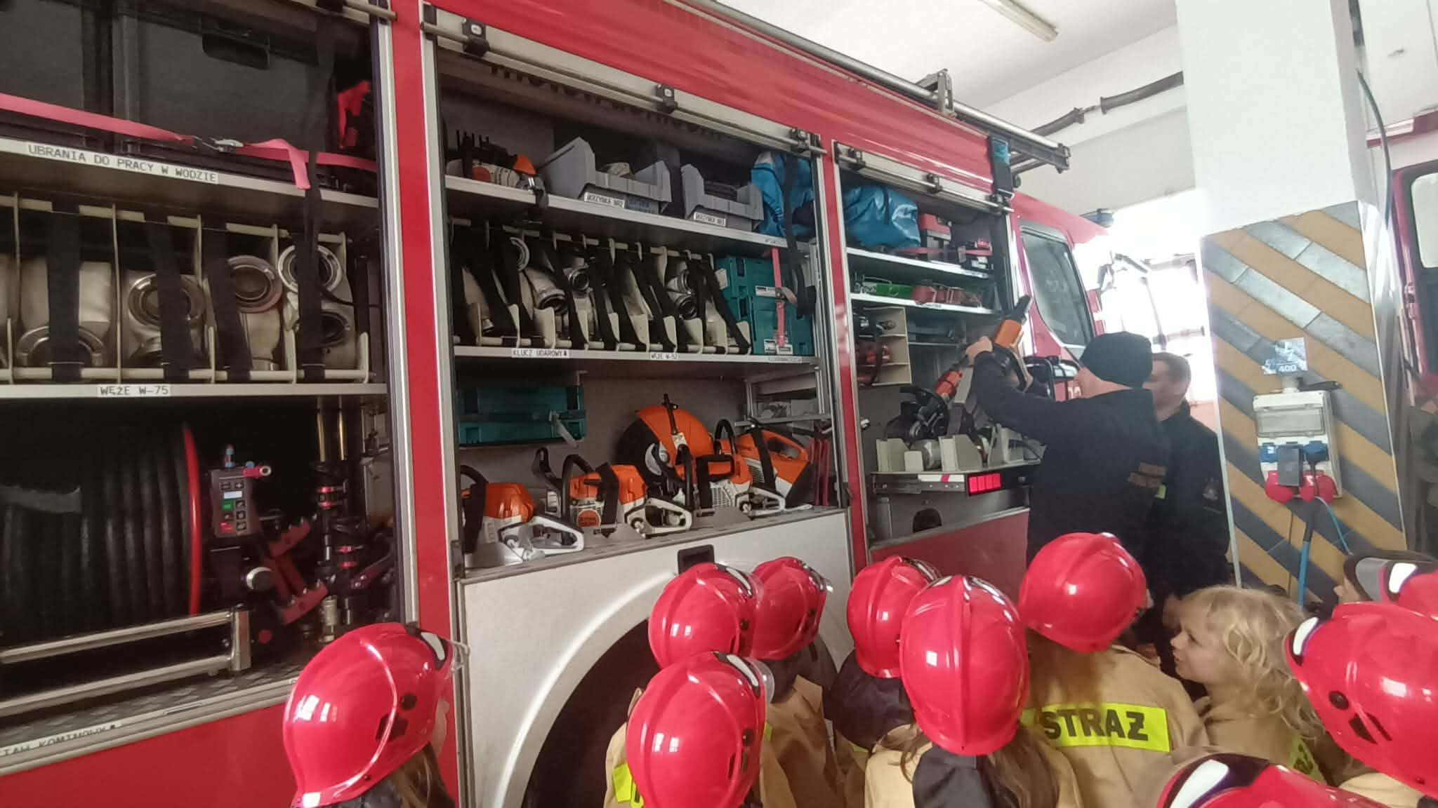 Podczas wizyty uczniowie mieli okazję zwiedzić pomieszczenia straży, w tym garaże, gdzie mogli obejrzeć i przymierzyć strój strażaka. Dodatkowo poznali wyposażenie samochodu ratowniczo-gaśniczego oraz zobaczyli z bliska sprzęt, który strażacy używają podczas akcji. Nie zabrakło również atrakcji, takich jak możliwość siedzenia w wozie strażackim, co na pewno na długo pozostanie w pamięci dzieci.