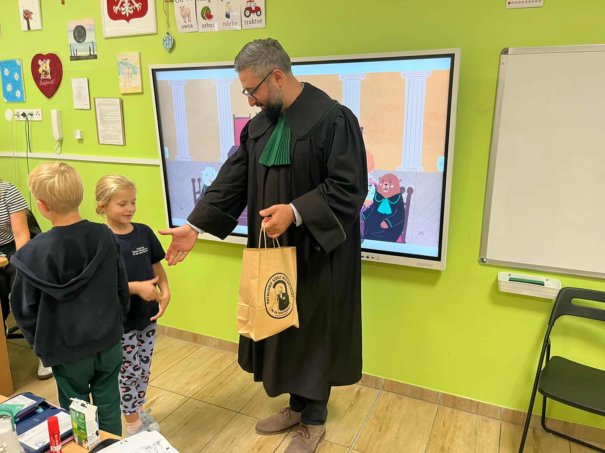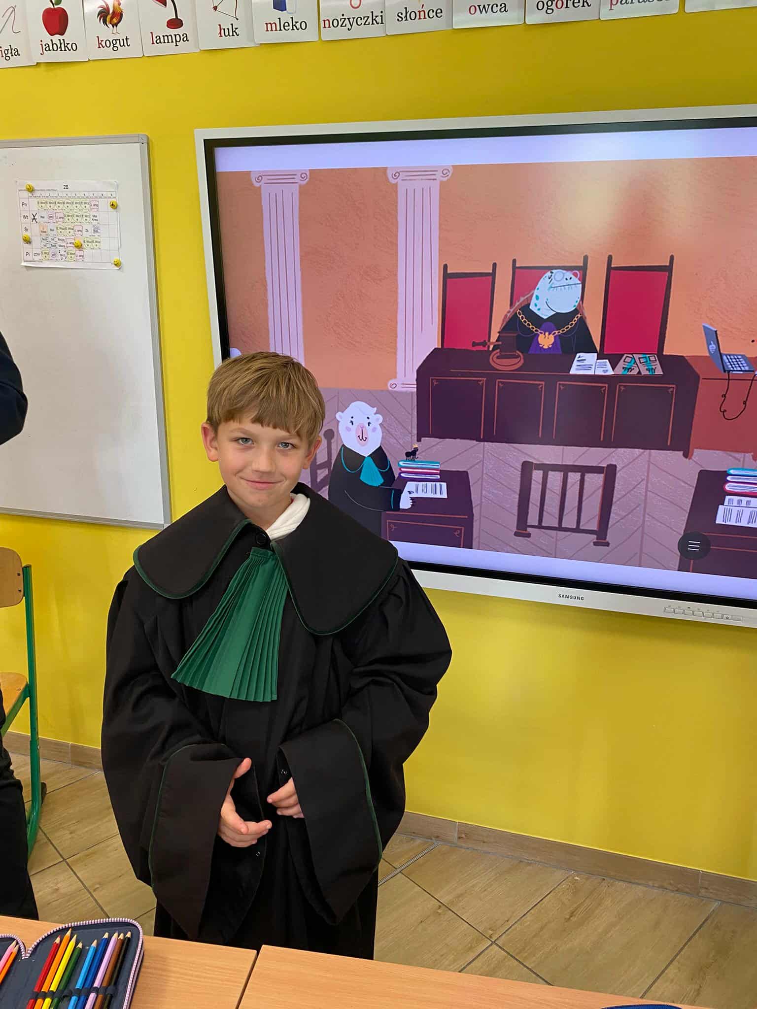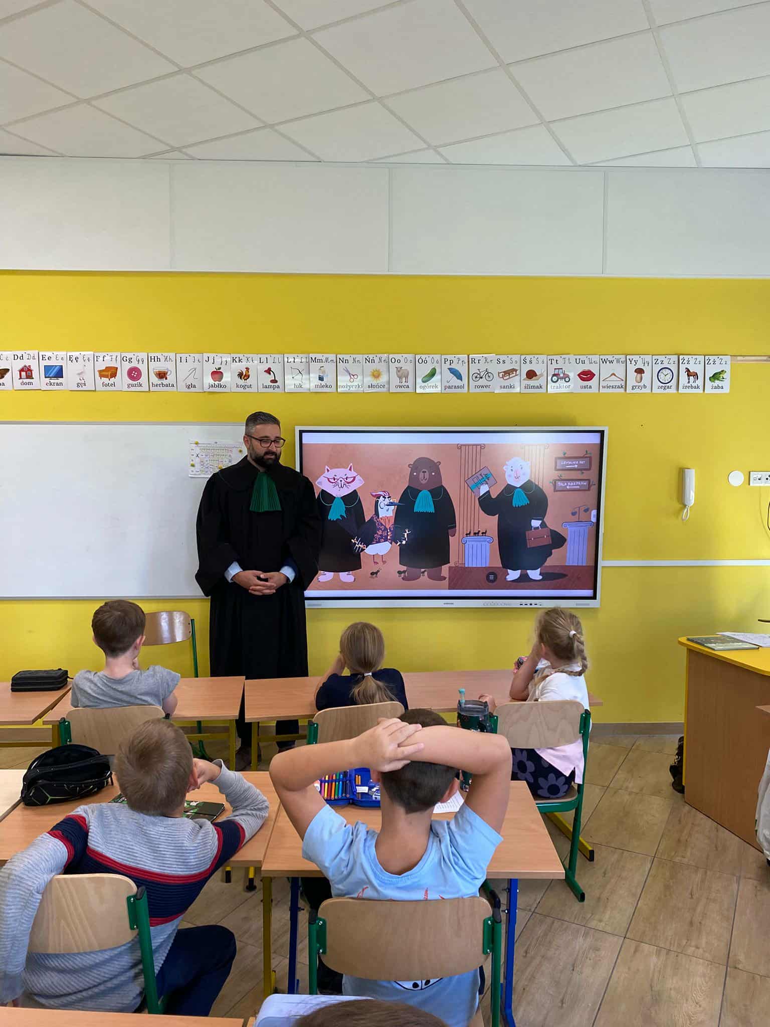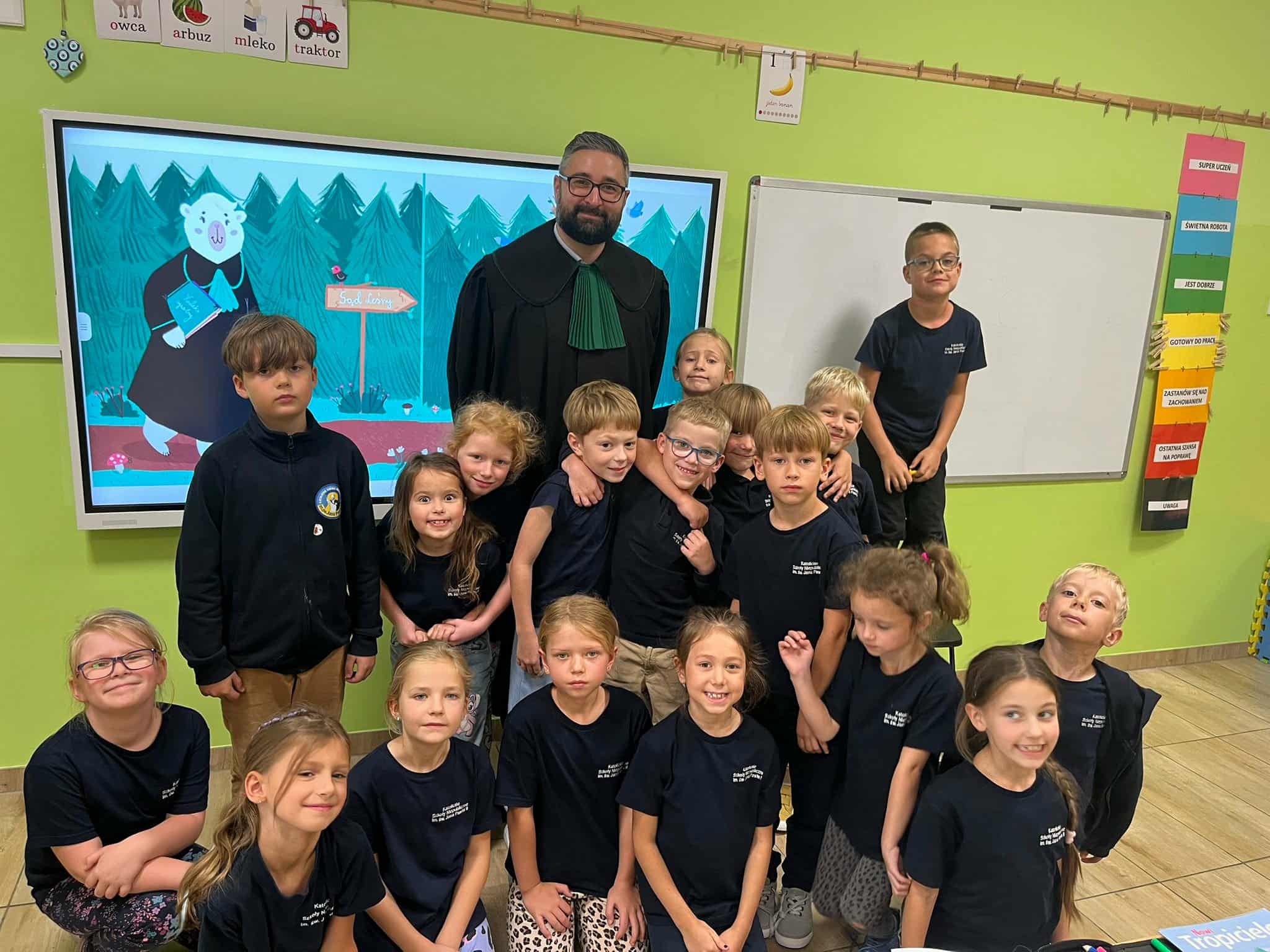 Pan mecenas przeczytał dzieciom fragmenty książek Leśne sprawy Misi Adwokatki i O leśnych sprawach aplikantów adwokackich, dzięki czemu w przystępny sposób wyjaśnił, czym zajmują się prawnicy, jakie są ich obowiązki i w jakich sprawach można się do nich zwrócić. Uczniowie dowiedzieli się, że prawnicy pomagają ludziom w rozwiązywaniu różnych problemów prawnych, takich jak sprawy związane z prawem rodzinnym, spadkowym, czy też prawem własności.