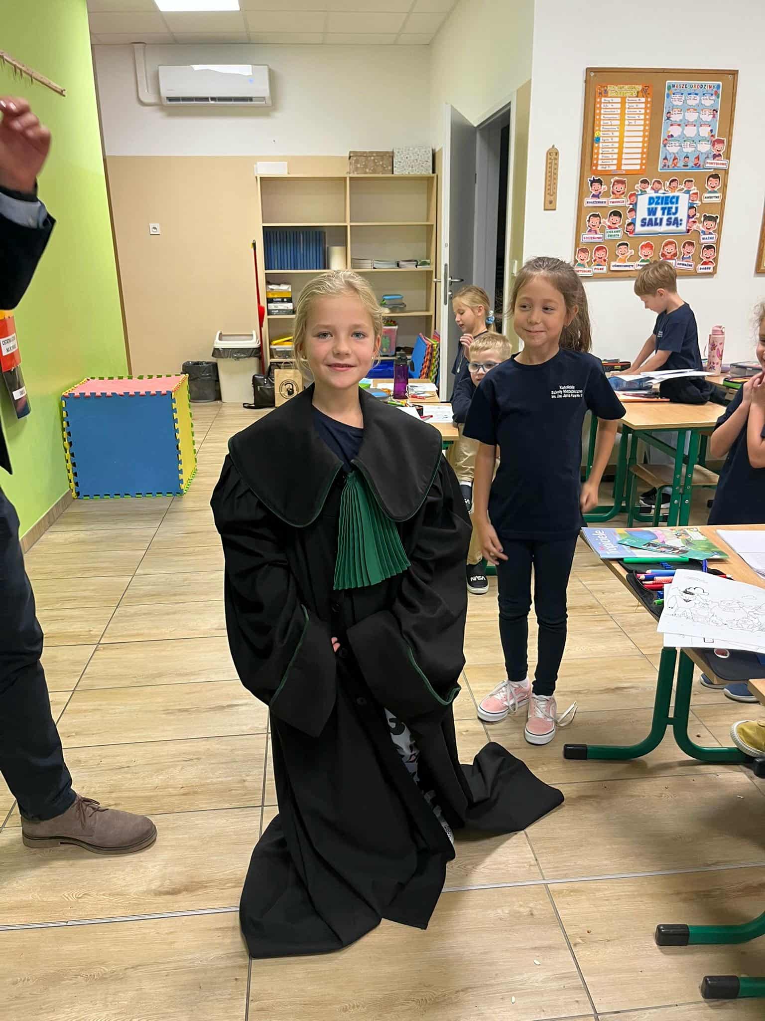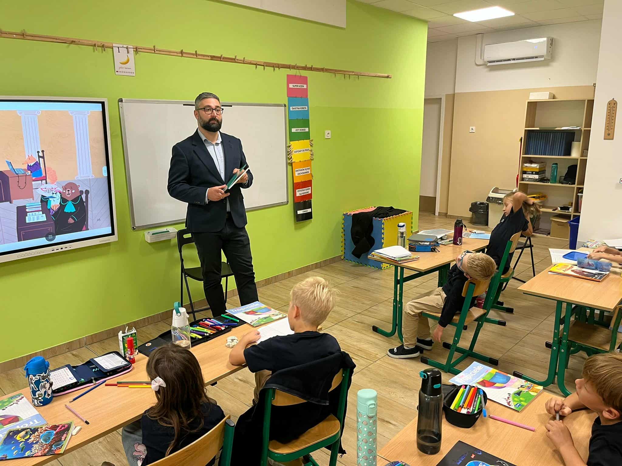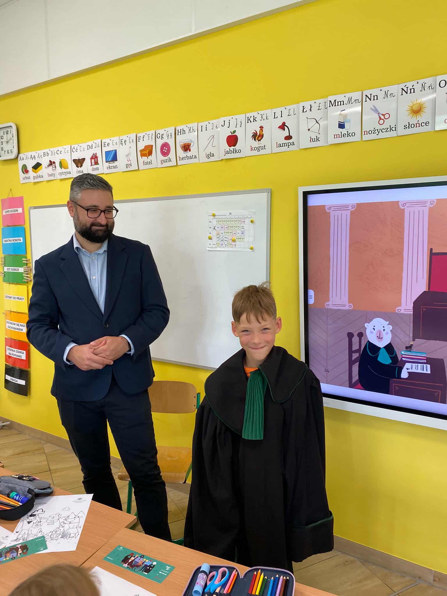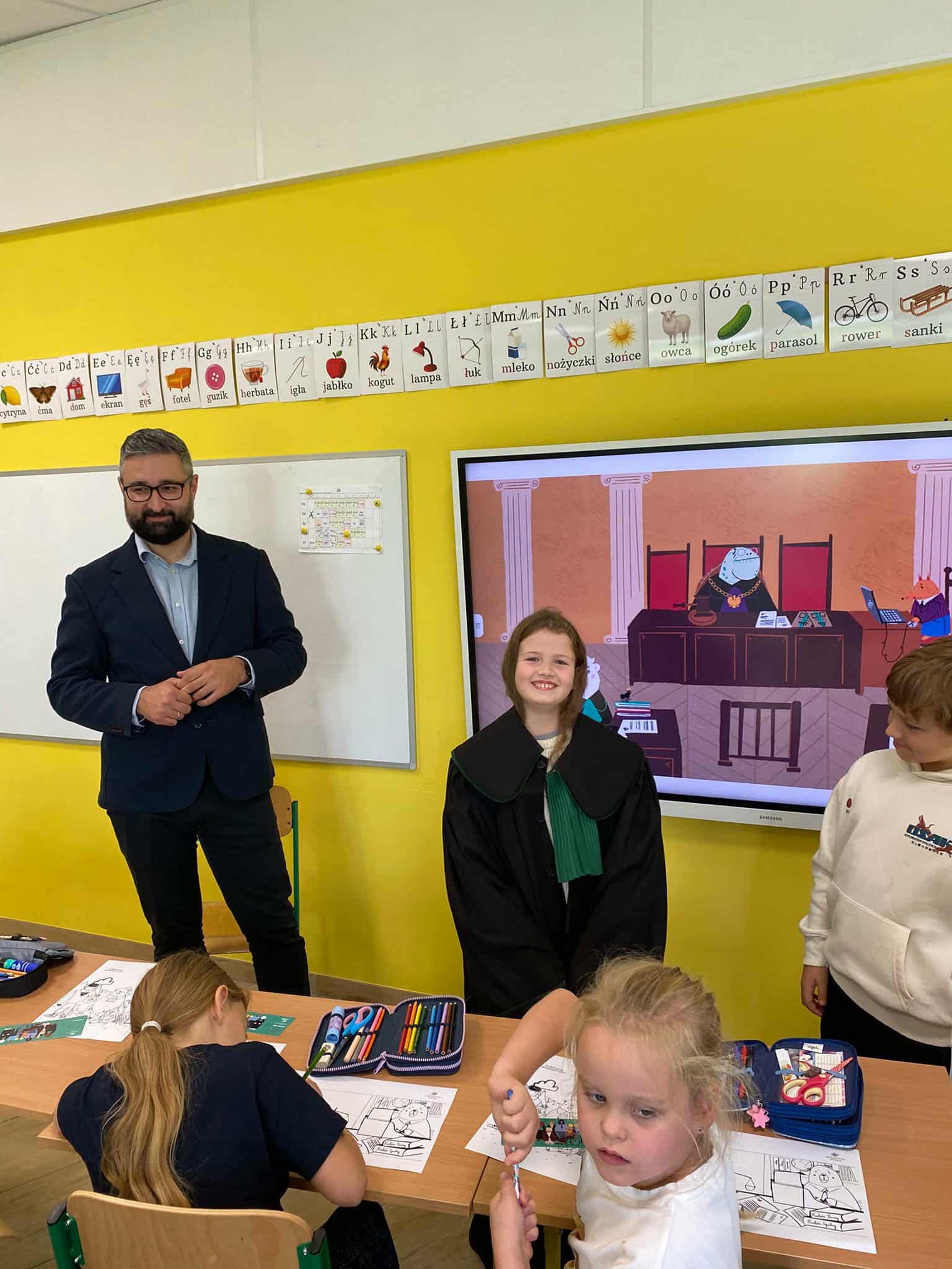 Dzieci zadawały mnóstwo pytań, a pan mecenas z cierpliwością i entuzjazmem na nie odpowiadał. Pytały o to, jak zostać prawnikiem, czy trzeba umieć się bronić w sądzie, a także o najciekawsze sprawy, w których brał udział.
