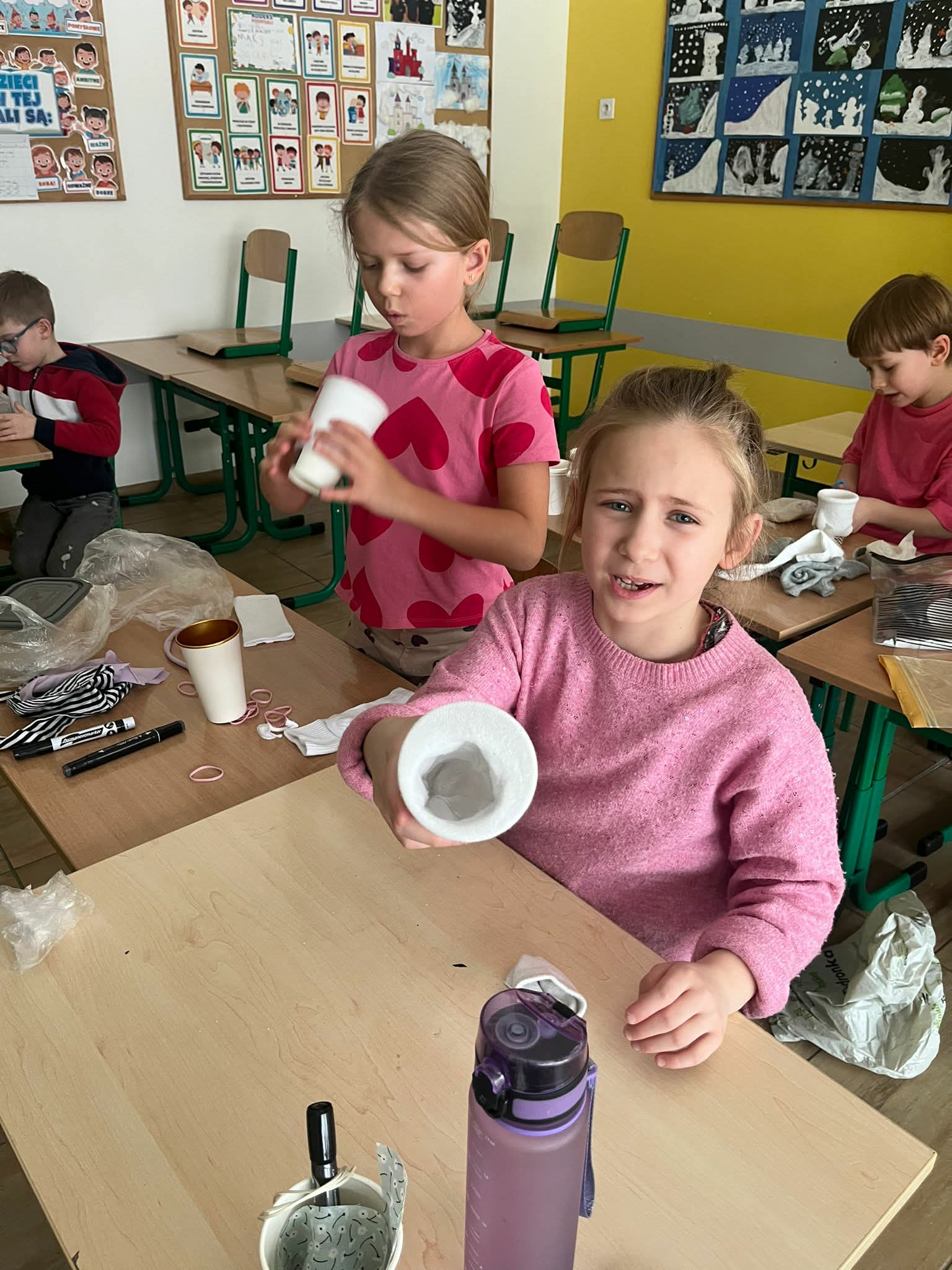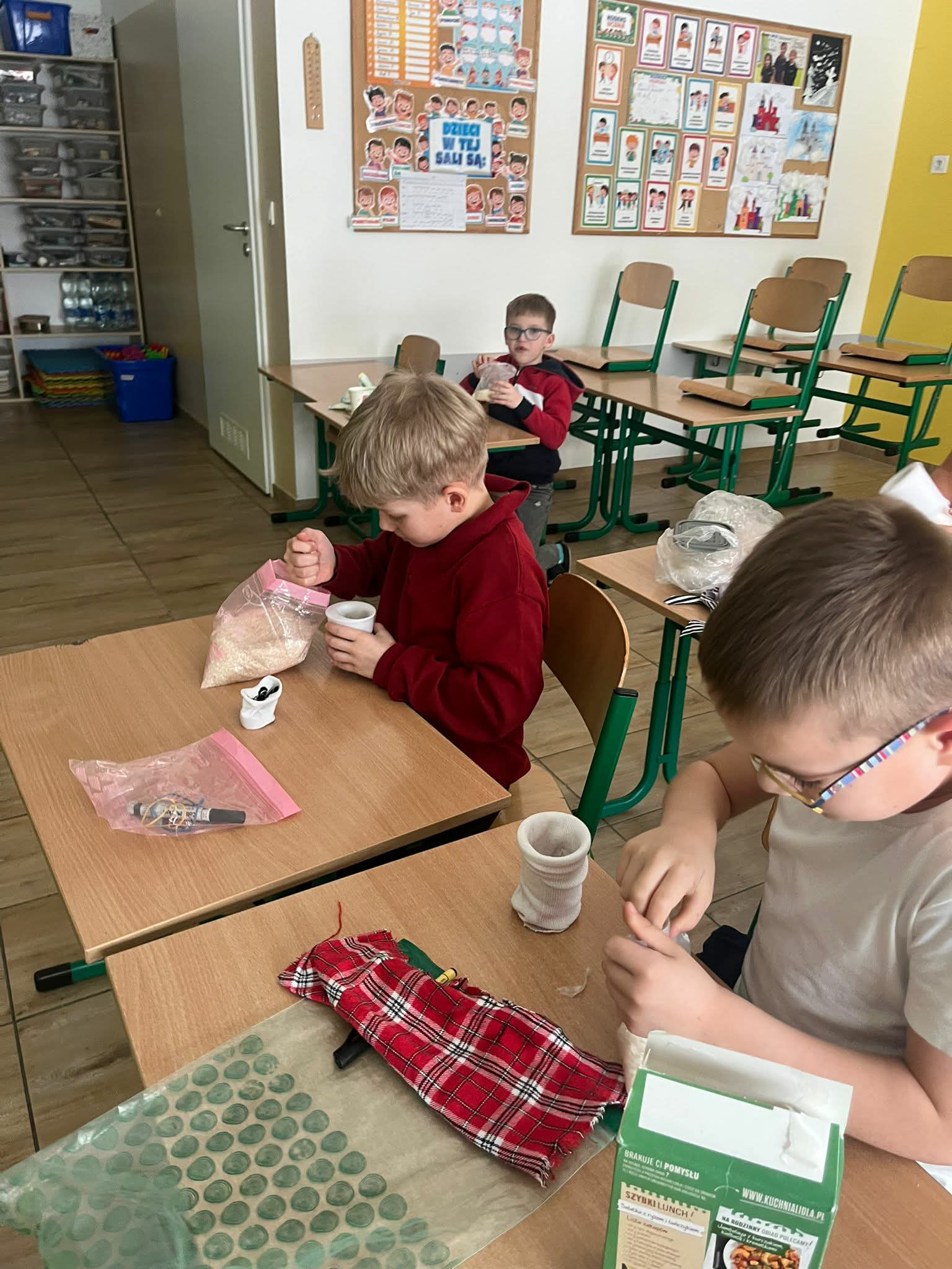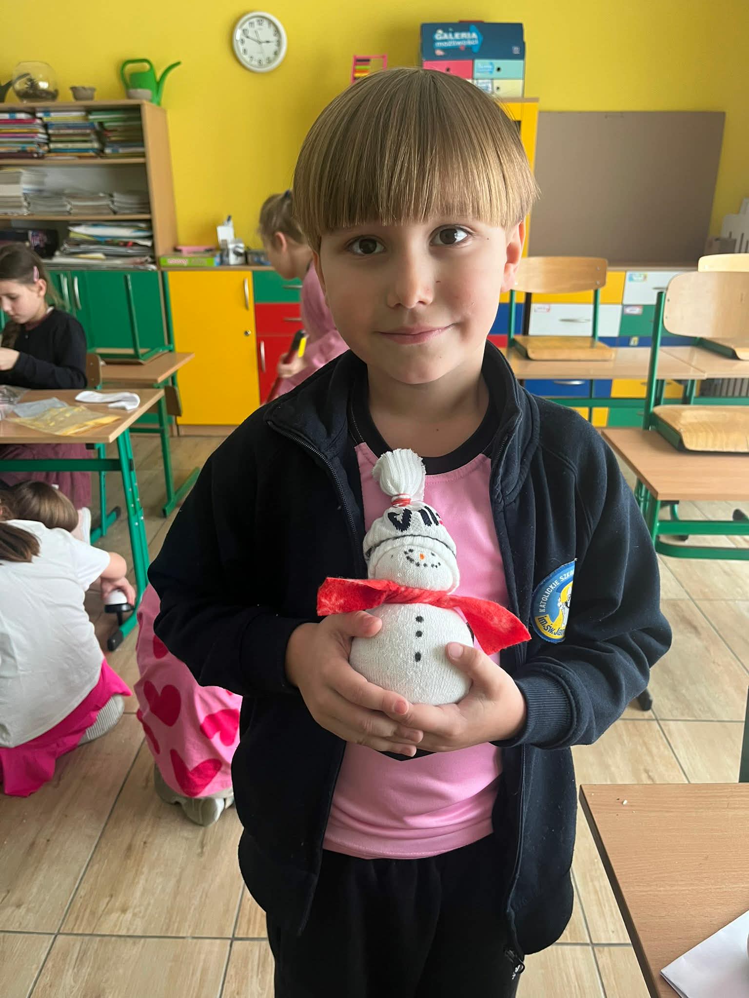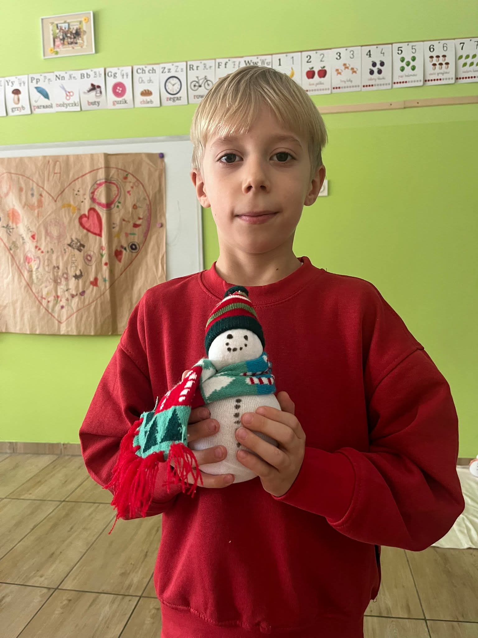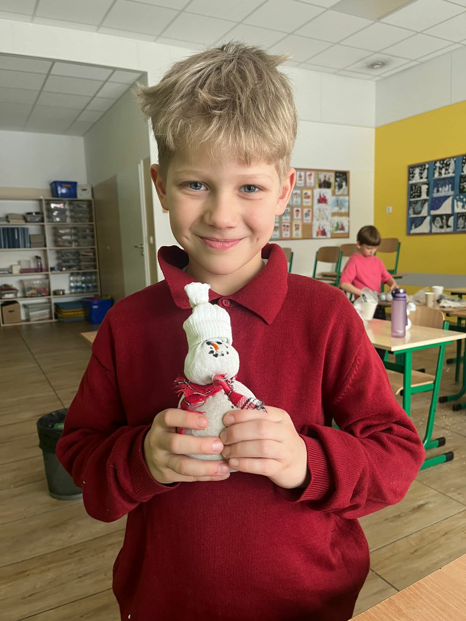 Podczas zajęć z techniki uczniowie klasy 1a wykazali się ogromną kreatywnością i zaangażowaniem. Dzieci własnoręcznie wykonały przepiękne bałwanki ze skarpetek. Praca nad bałwankami była nie tylko świetną zabawą, ale także doskonałą okazją do rozwijania zdolności manualnych, wyobraźni oraz cierpliwości. Każdy bałwanek był wyjątkowy i niepowtarzalny – ozdobiony czapeczkami, szaliczkami i guziczkami. Efekty pracy naszych pierwszoklasistów zachwycają i wprowadzają wszystkich w zimowy nastrój. Serdecznie gratulujemy uczniom klasy 1a wspaniałych pomysłów i staranności wykonania!