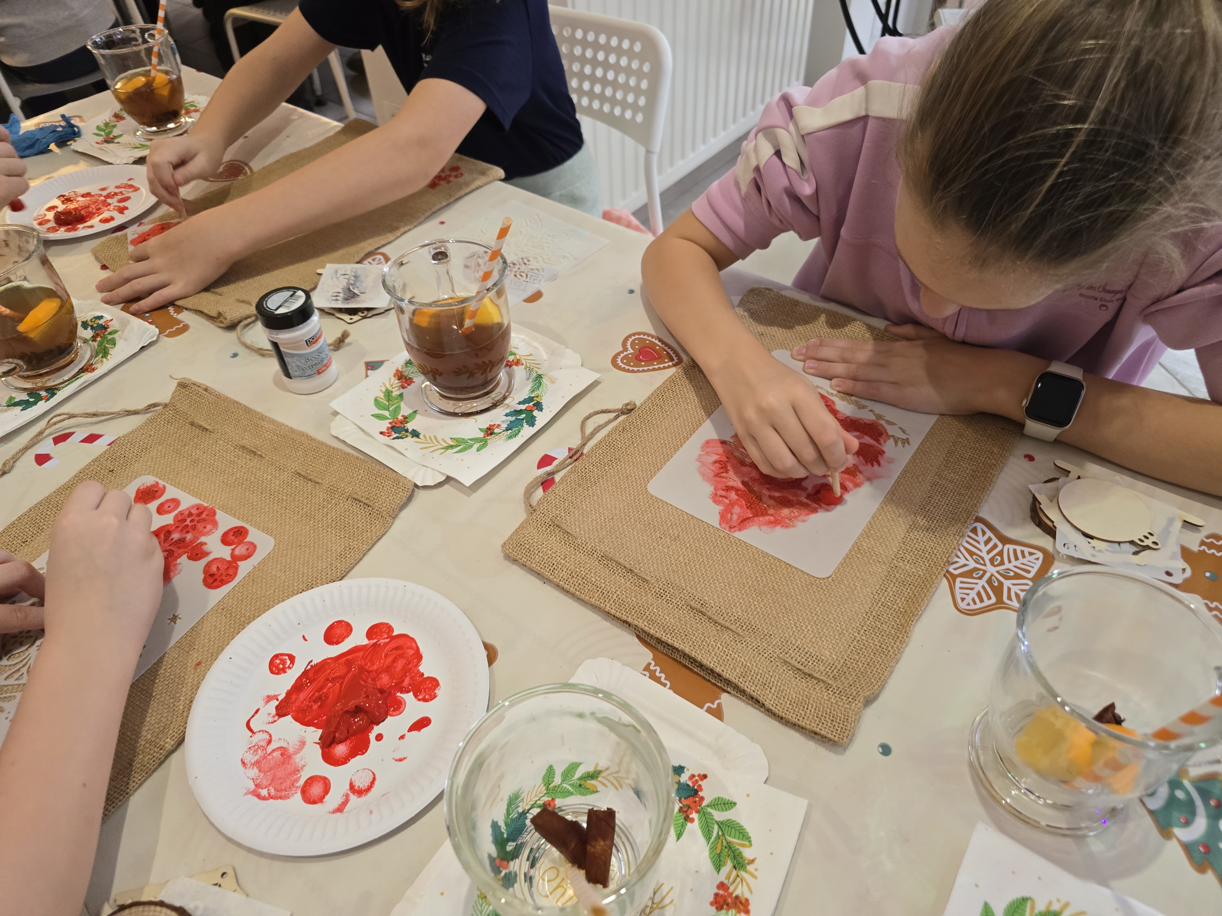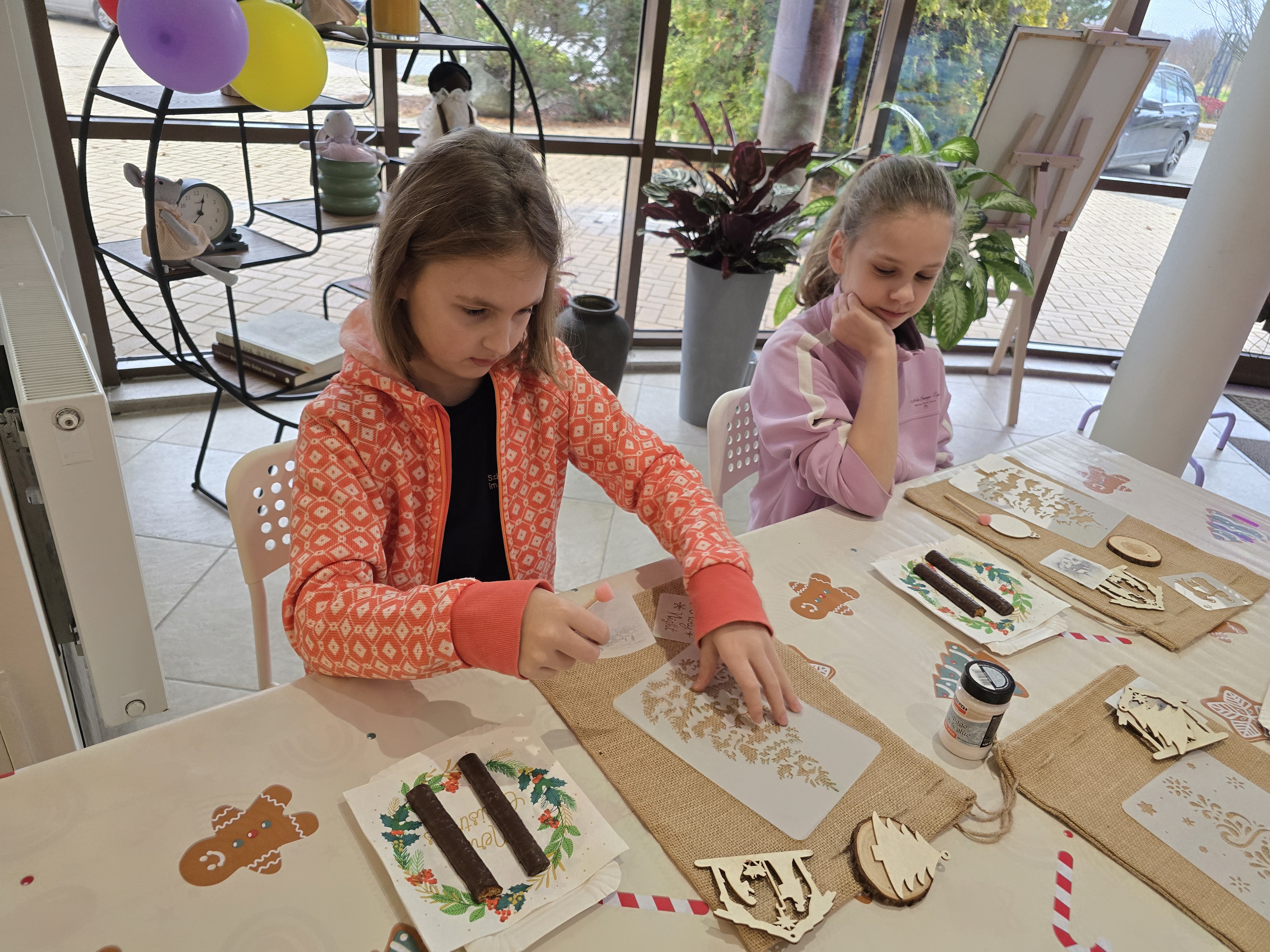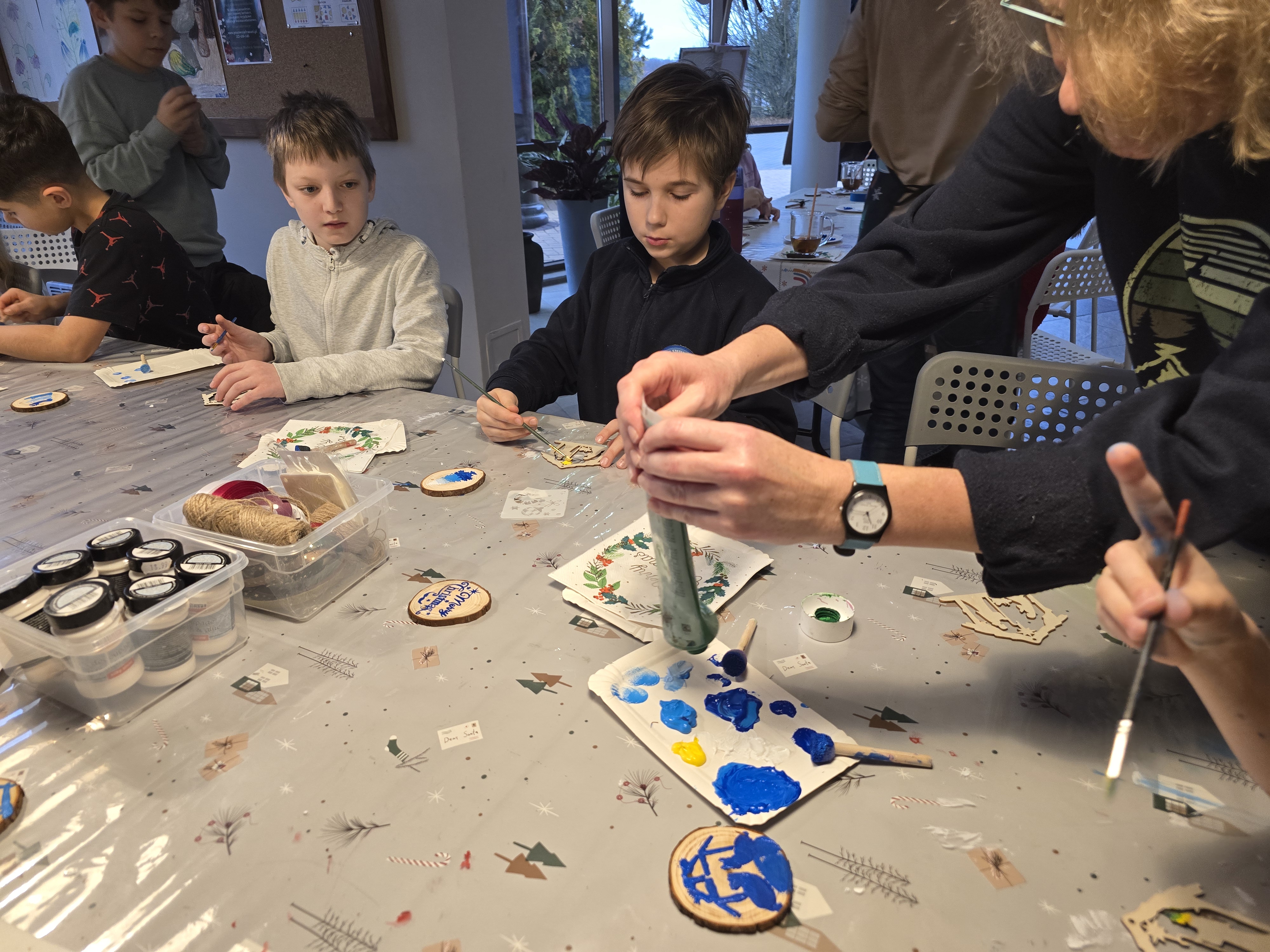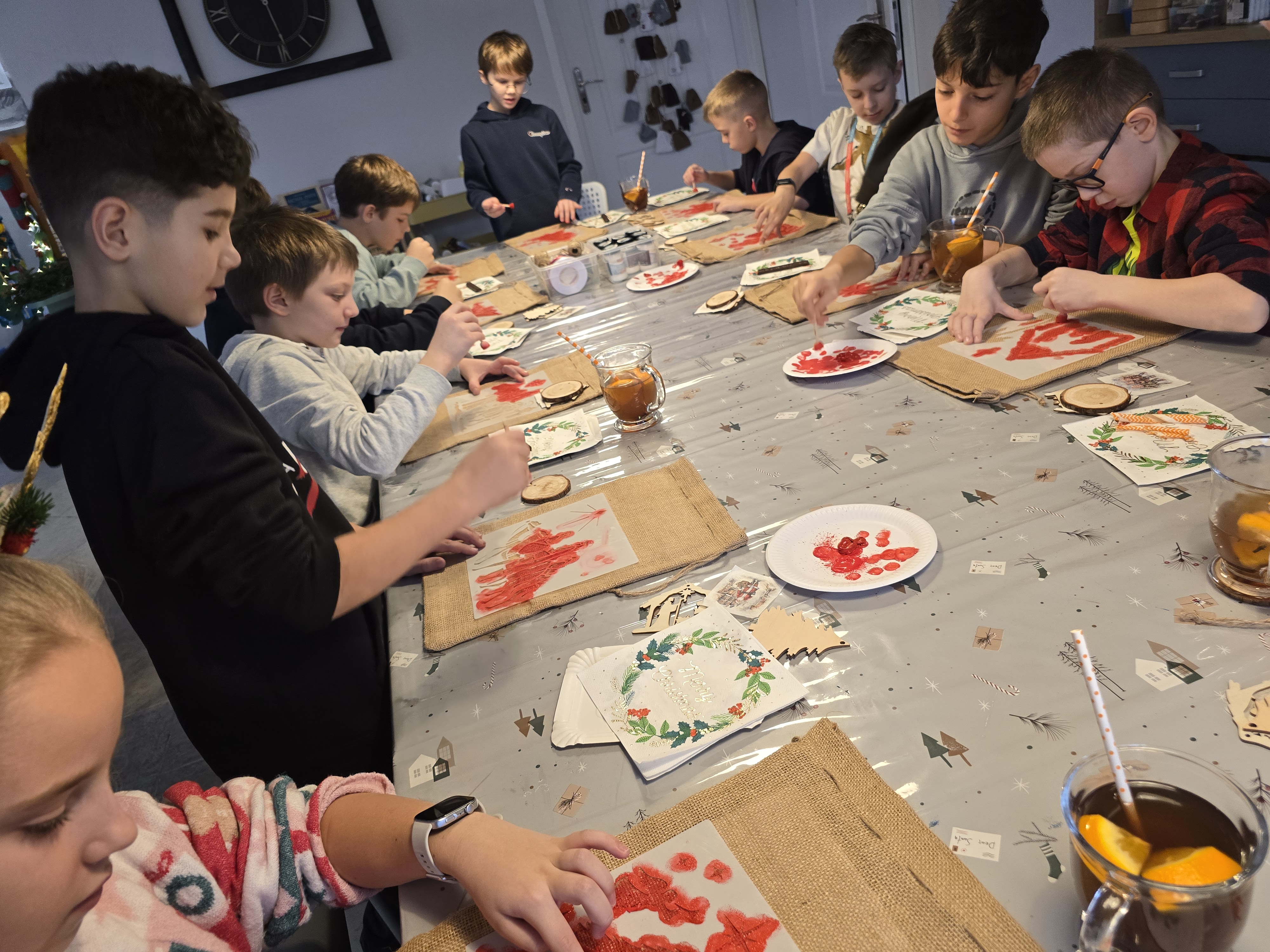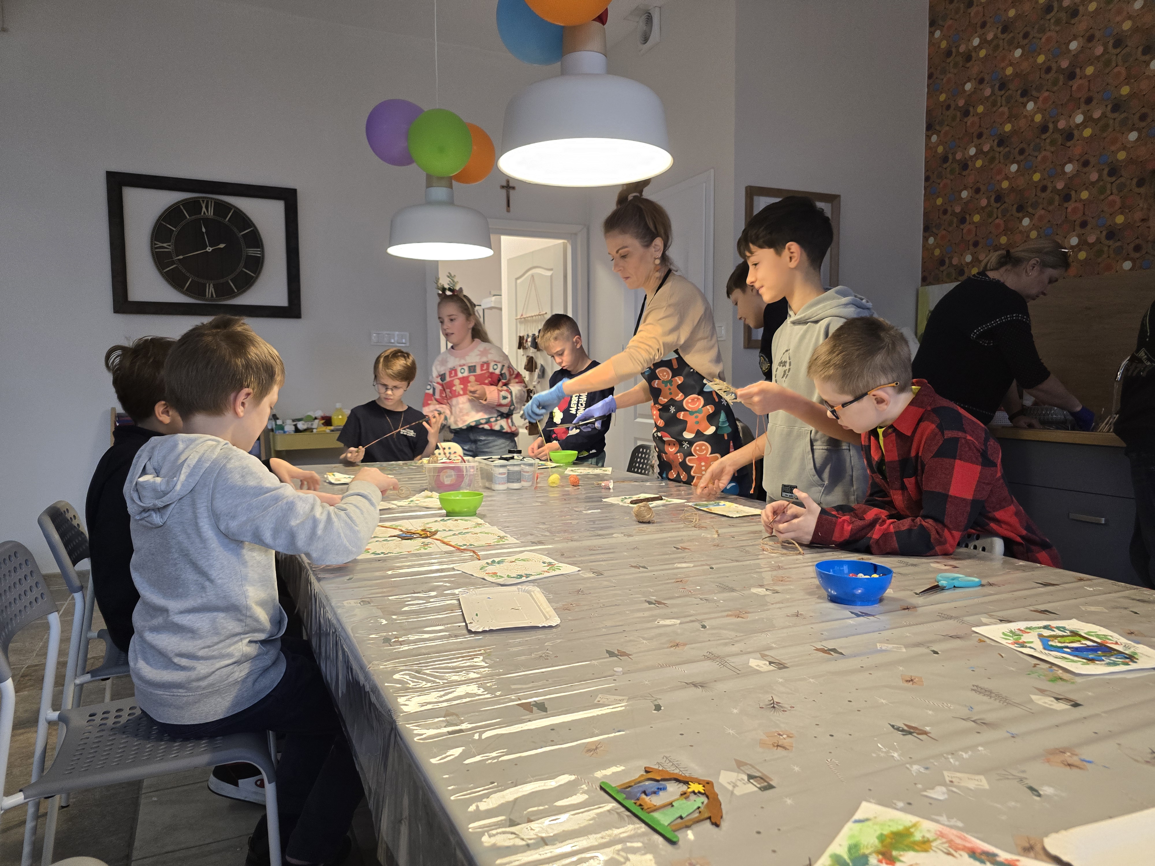 Atmosfera w pracowni była wyjątkowo miła i przyjazna. Dzieci pracowały w skupieniu, ale jednocześnie wesoło rozmawiały, wymieniały się pomysłami i śmiały się do łez. Prowadzący warsztaty dbali o to, aby każdy czuł się swobodnie i mógł wyrazić swoją kreatywność. W tle rozbrzmiewały dźwięki kolęd, które dodatkowo wprowadzały w świąteczny nastrój. Śpiewane przez dzieci, kolędy wypełniały pomieszczenie radością i wzruszeniem, tworząc niezapomnianą atmosferę.