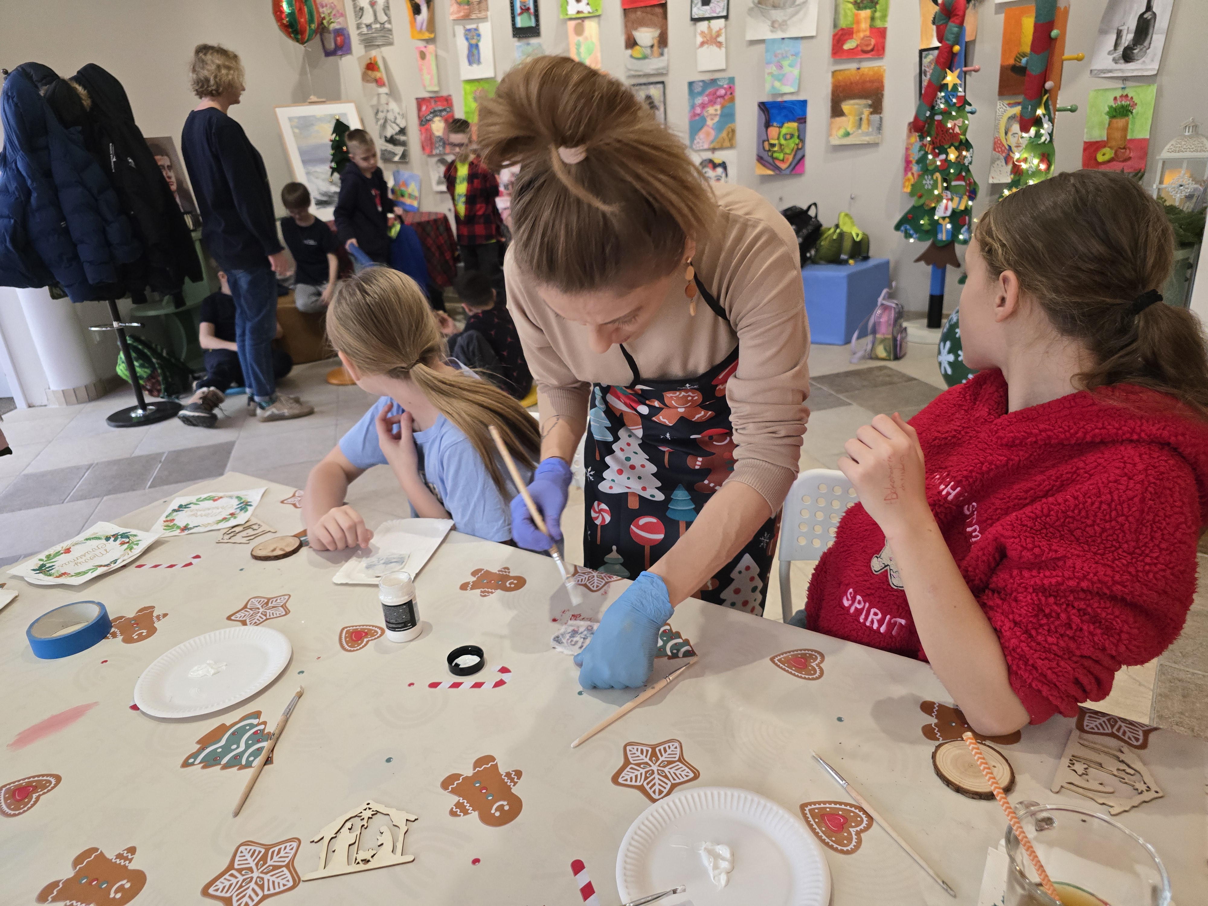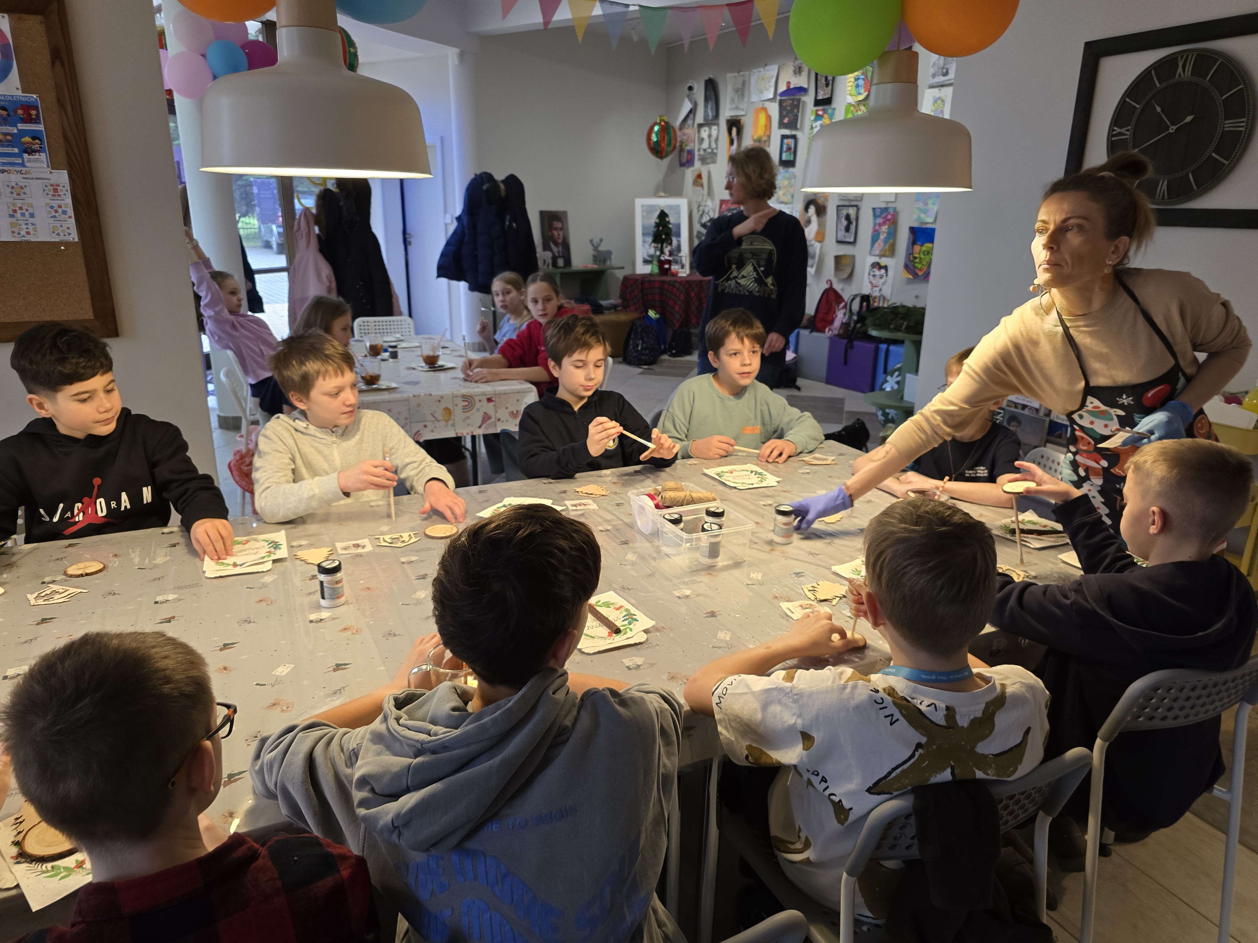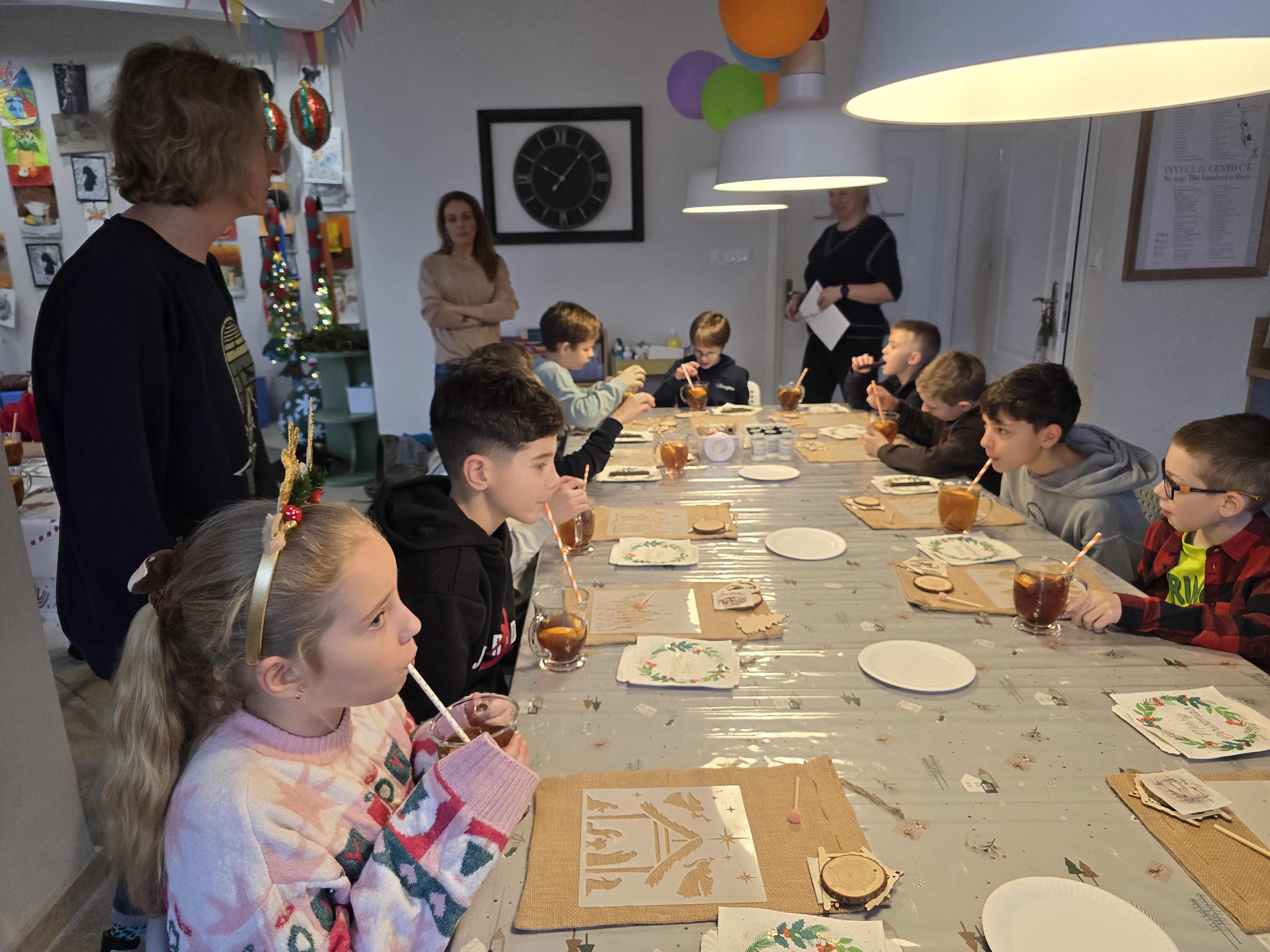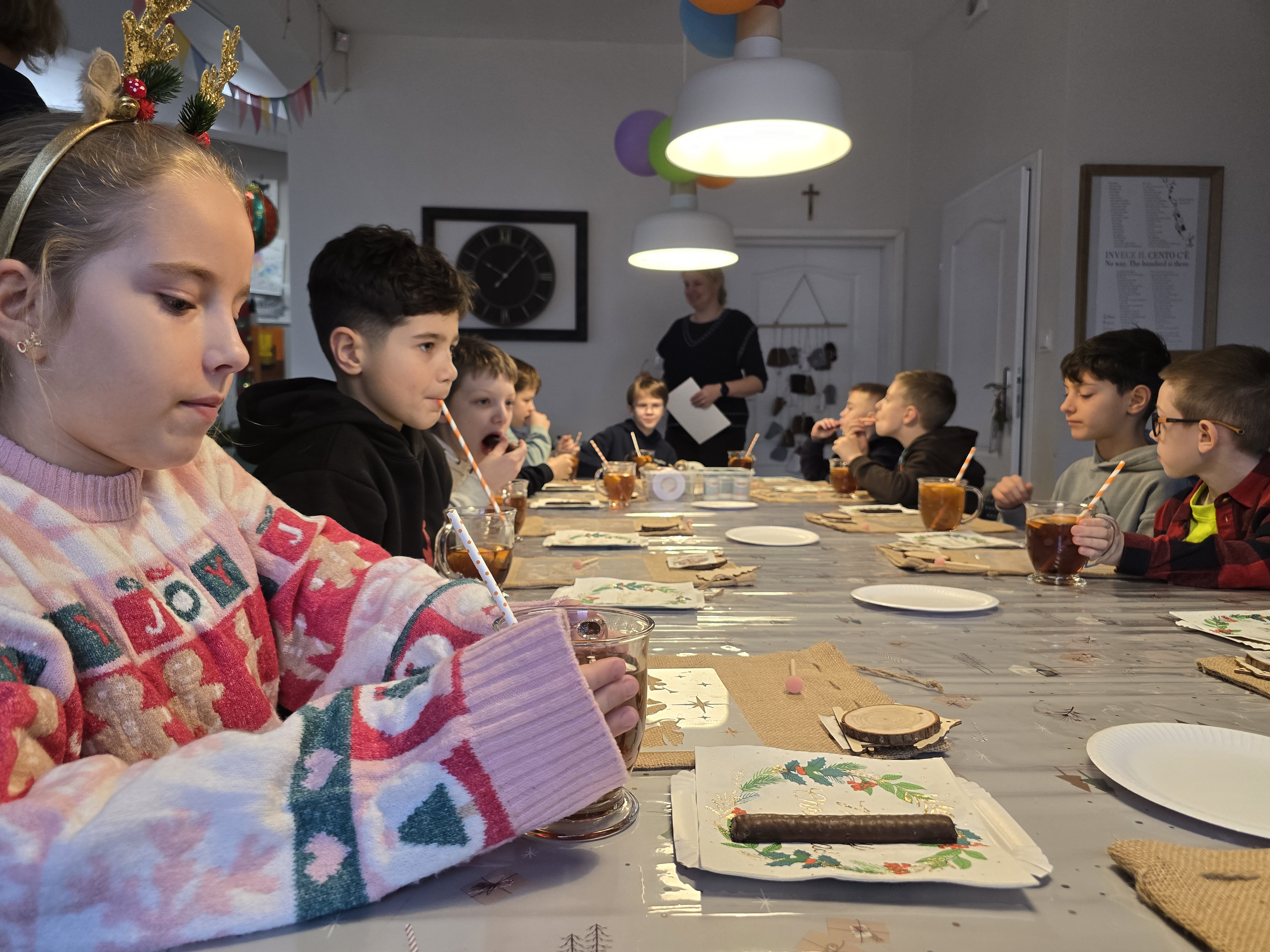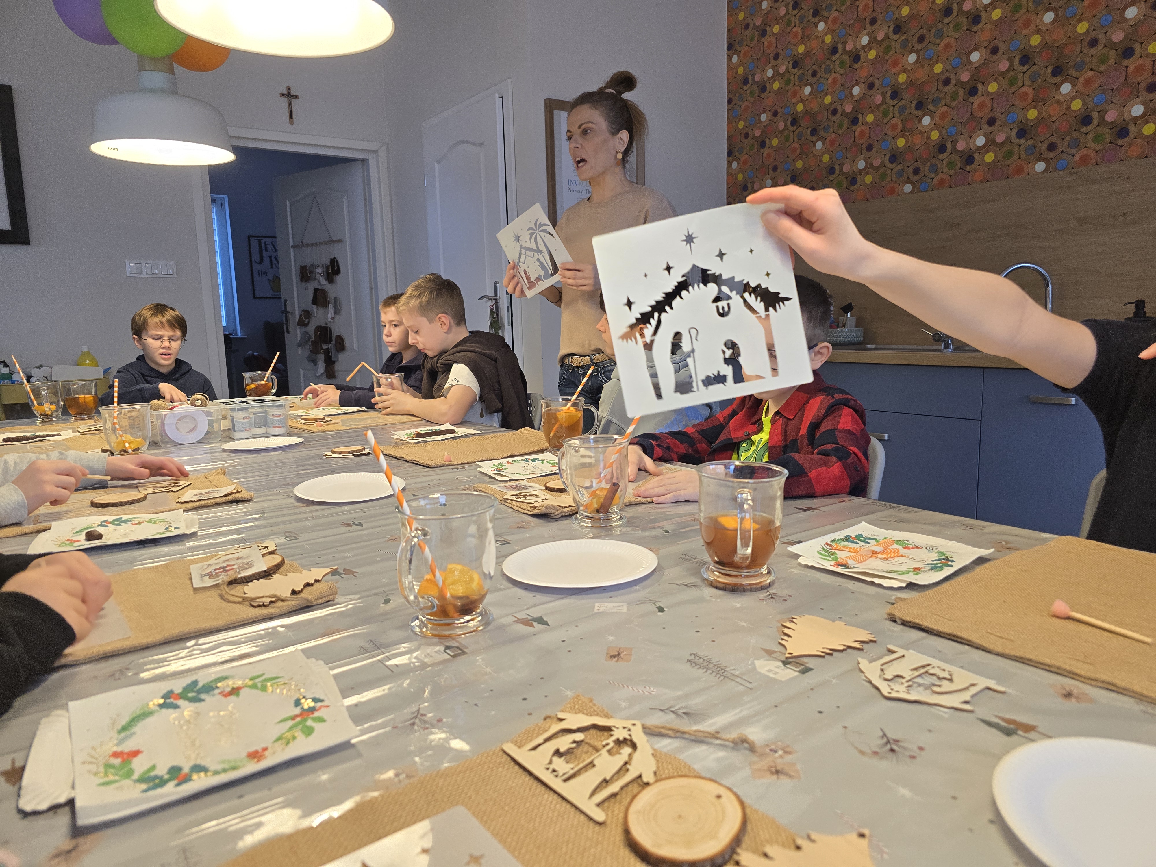 Atmosfera w pracowni była wyjątkowo miła i przyjazna. Dzieci pracowały w skupieniu, ale jednocześnie wesoło rozmawiały, wymieniały się pomysłami i śmiały się do łez. Prowadzący warsztaty dbali o to, aby każdy czuł się swobodnie i mógł wyrazić swoją kreatywność. W tle rozbrzmiewały dźwięki kolęd, które dodatkowo wprowadzały w świąteczny nastrój. Śpiewane przez dzieci, kolędy wypełniały pomieszczenie radością i wzruszeniem, tworząc niezapomnianą atmosferę.