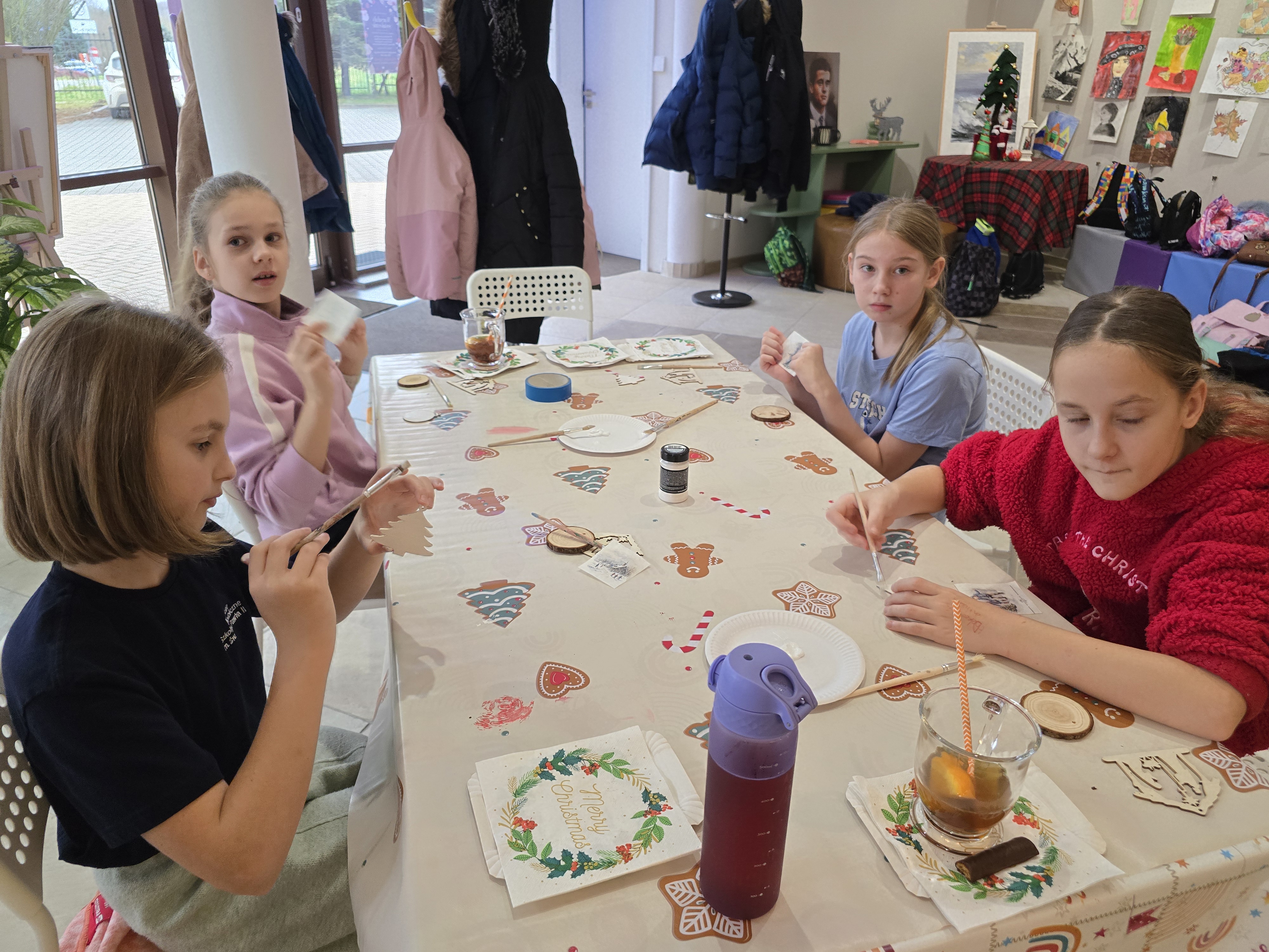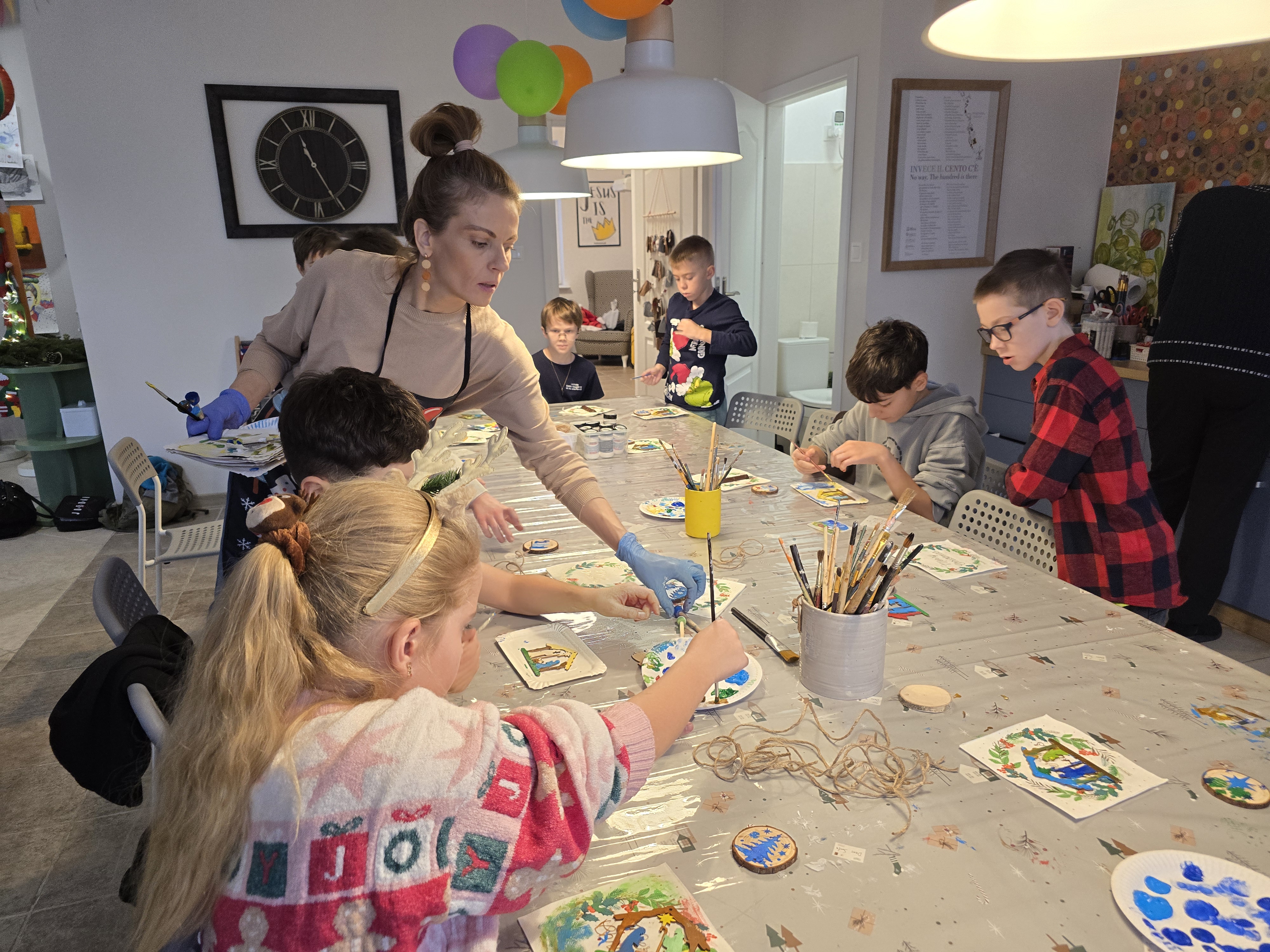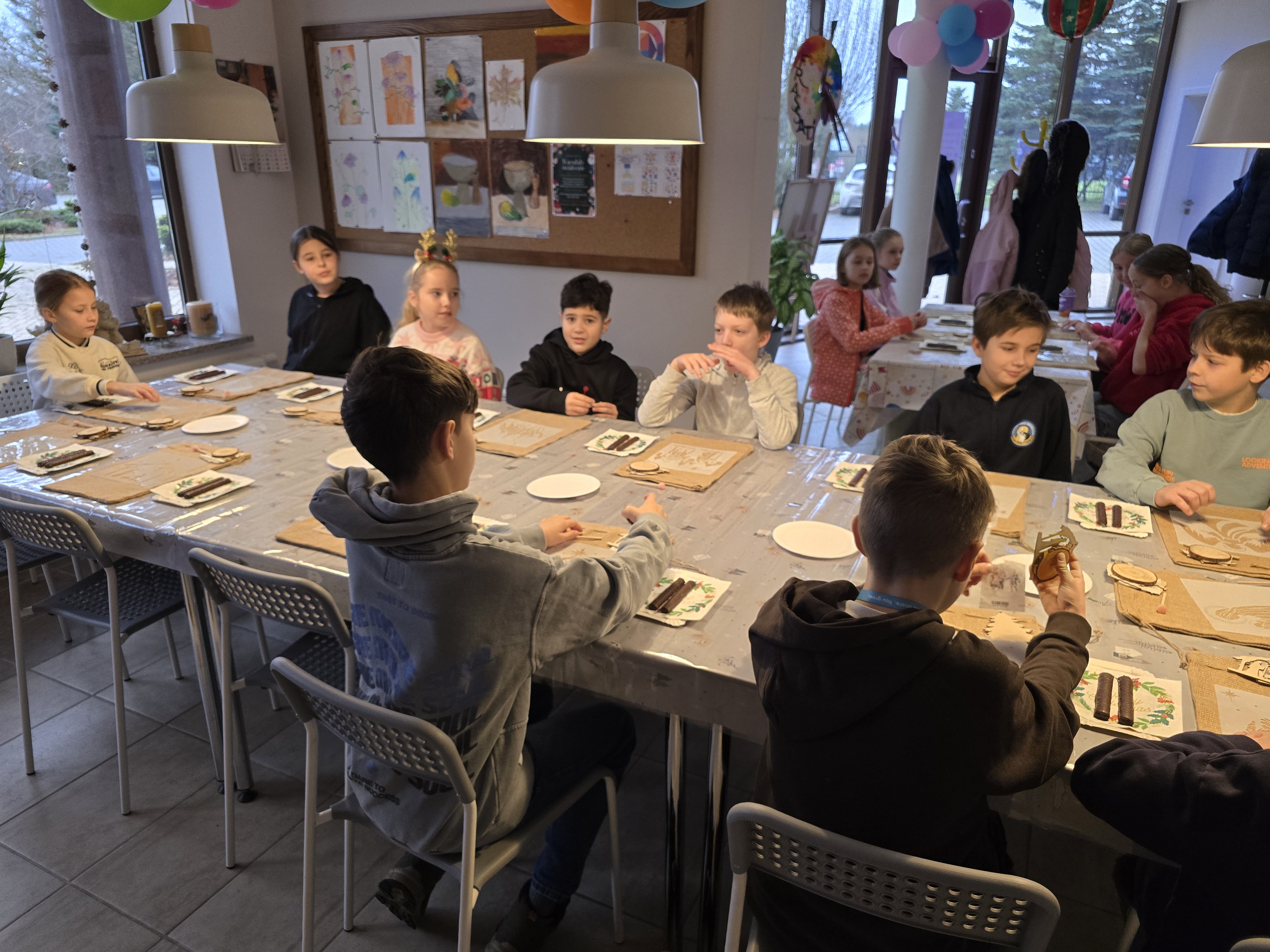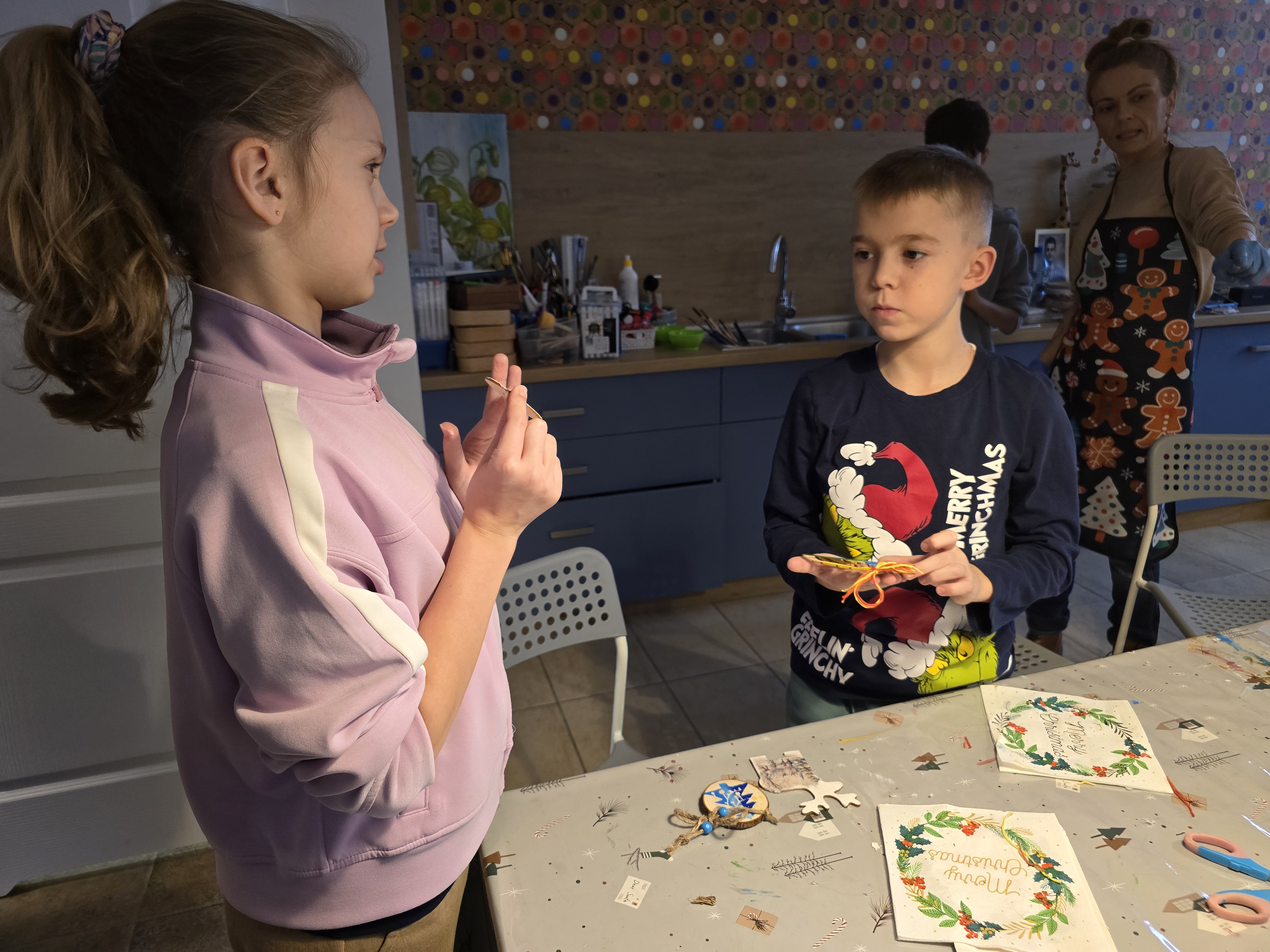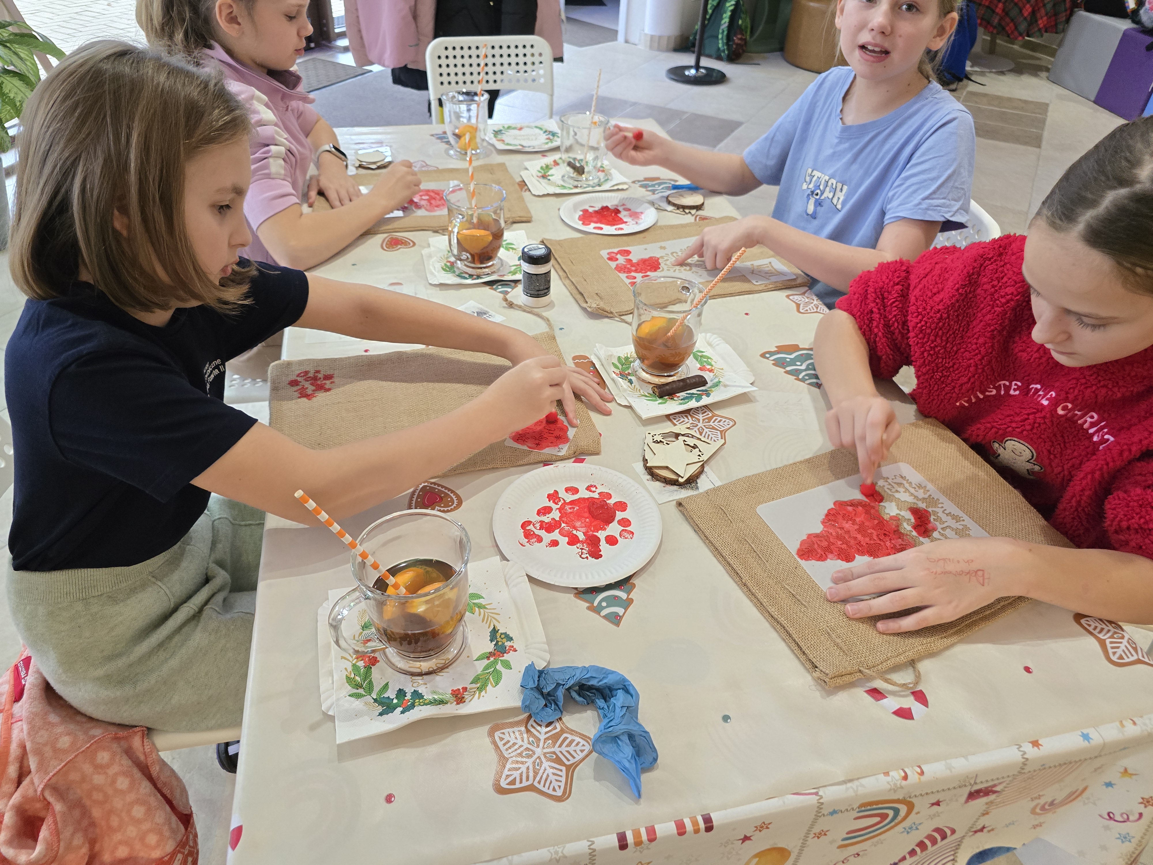 Atmosfera w pracowni była wyjątkowo miła i przyjazna. Dzieci pracowały w skupieniu, ale jednocześnie wesoło rozmawiały, wymieniały się pomysłami i śmiały się do łez. Prowadzący warsztaty dbali o to, aby każdy czuł się swobodnie i mógł wyrazić swoją kreatywność. W tle rozbrzmiewały dźwięki kolęd, które dodatkowo wprowadzały w świąteczny nastrój. Śpiewane przez dzieci, kolędy wypełniały pomieszczenie radością i wzruszeniem, tworząc niezapomnianą atmosferę.