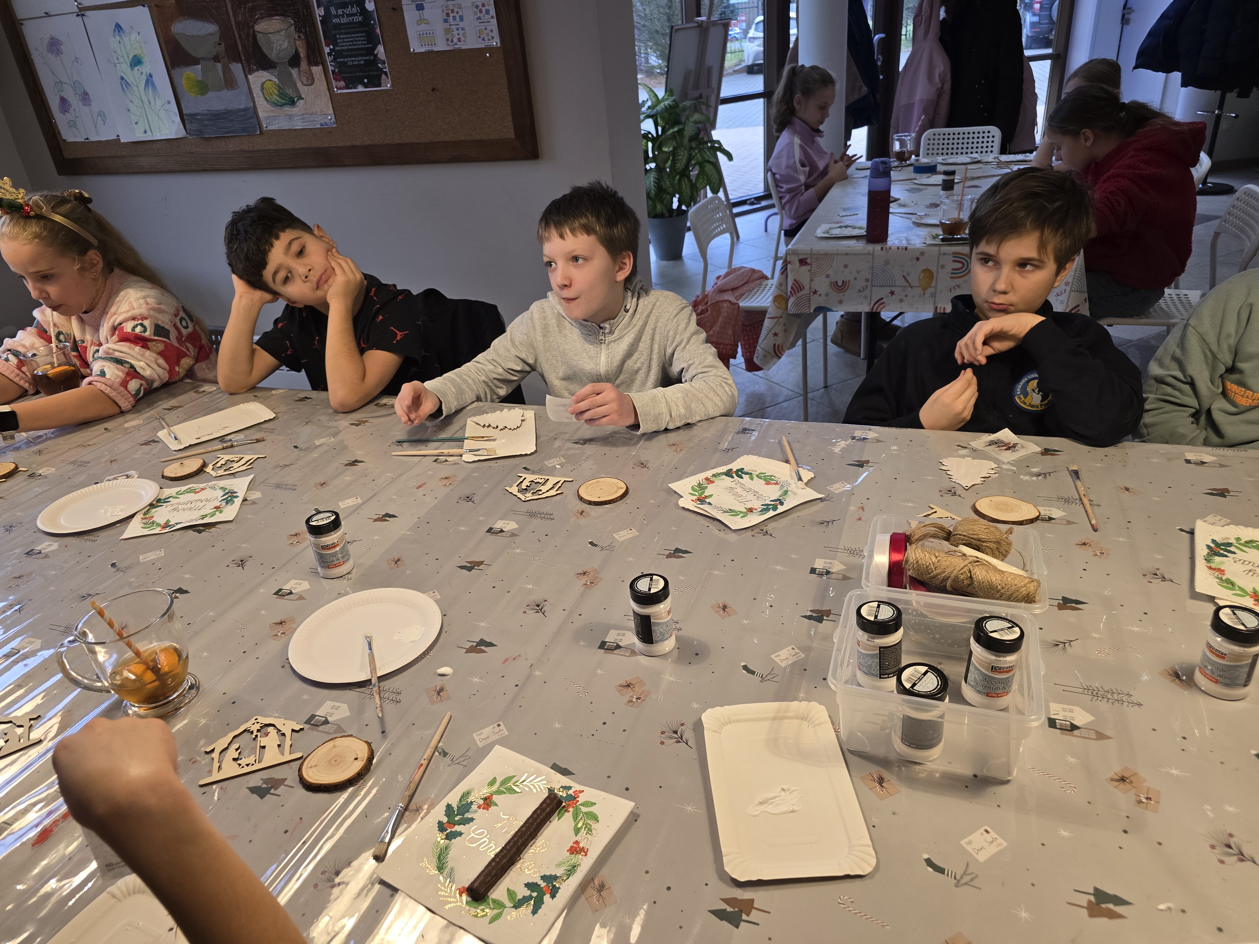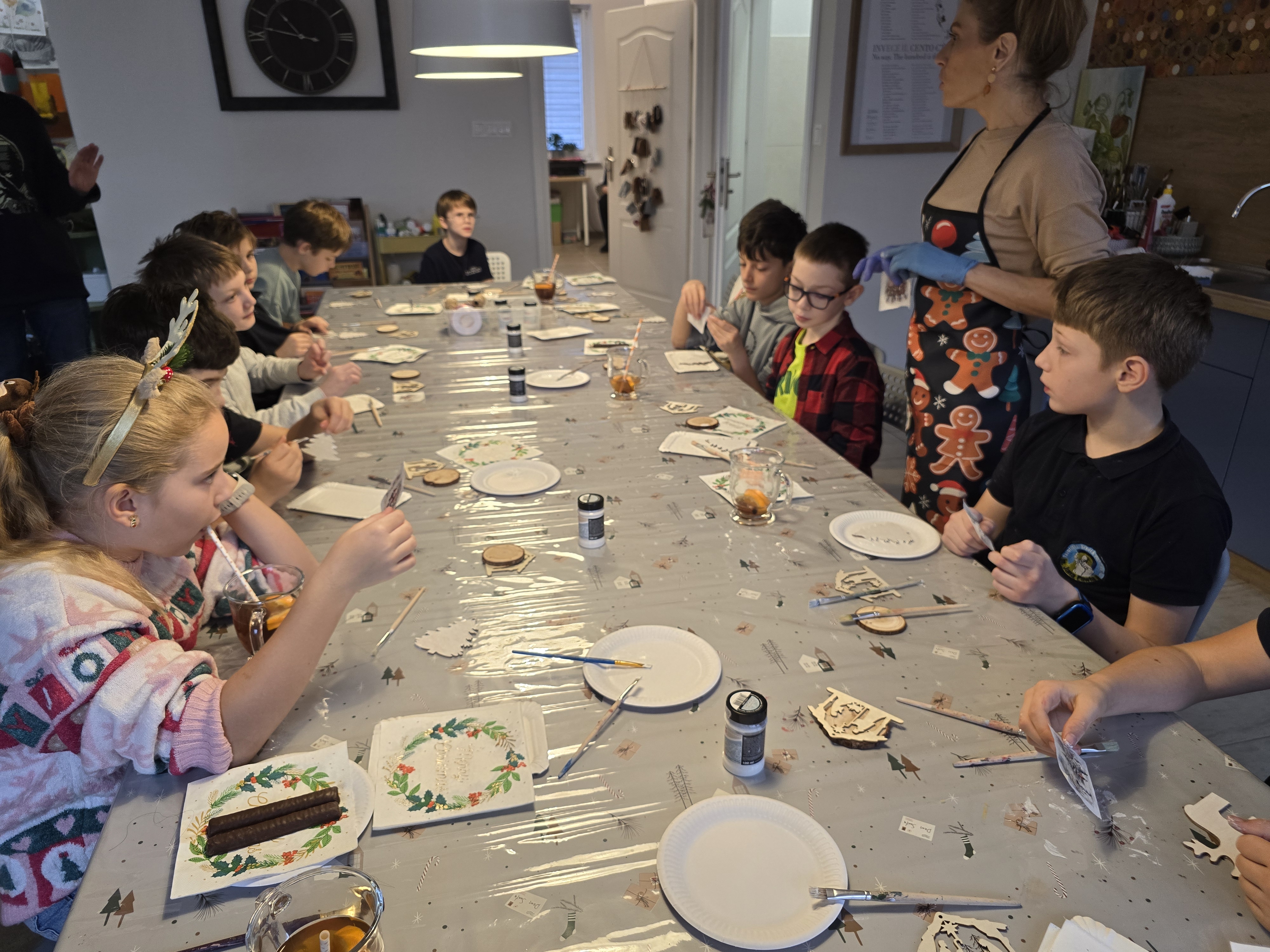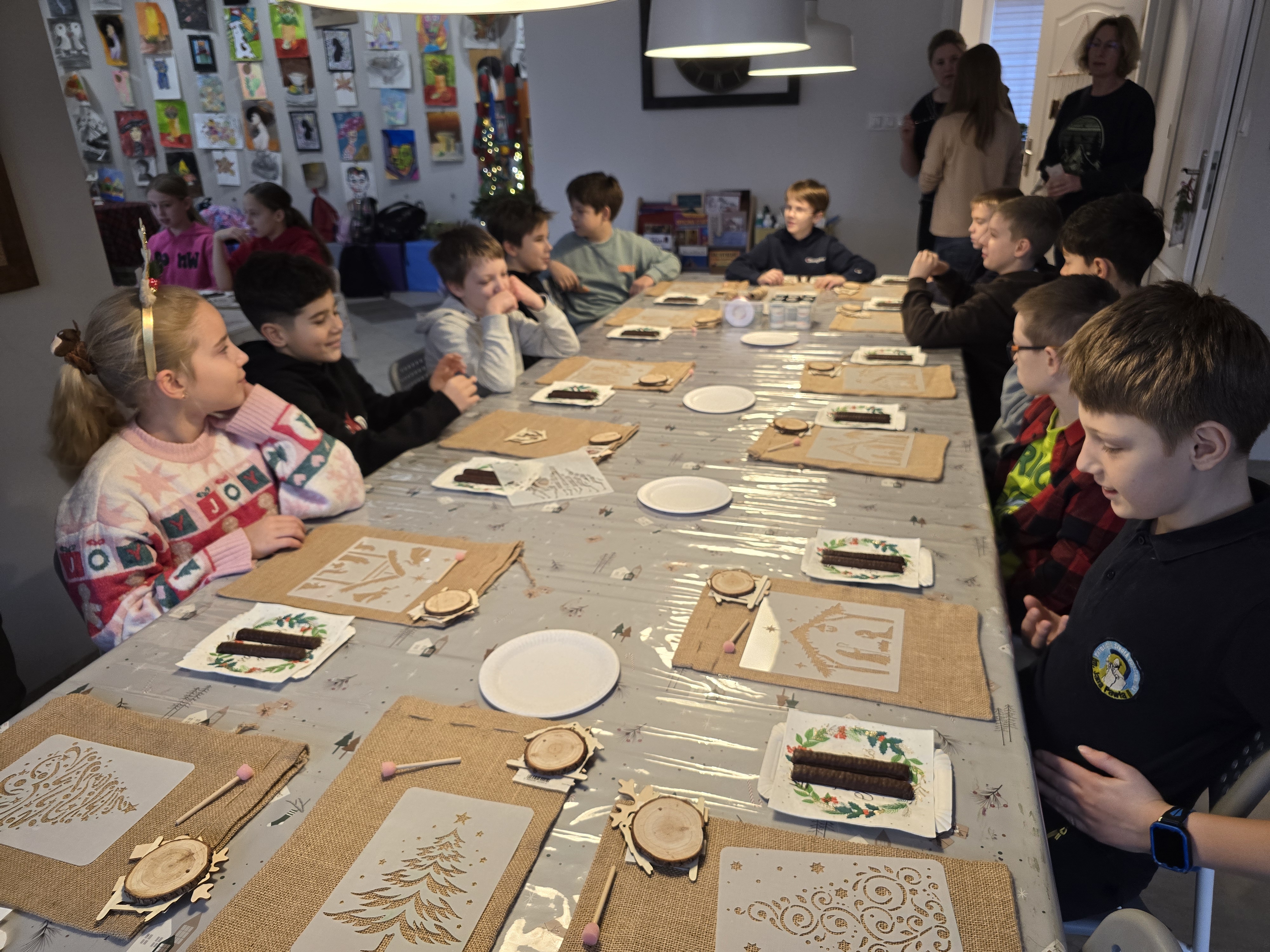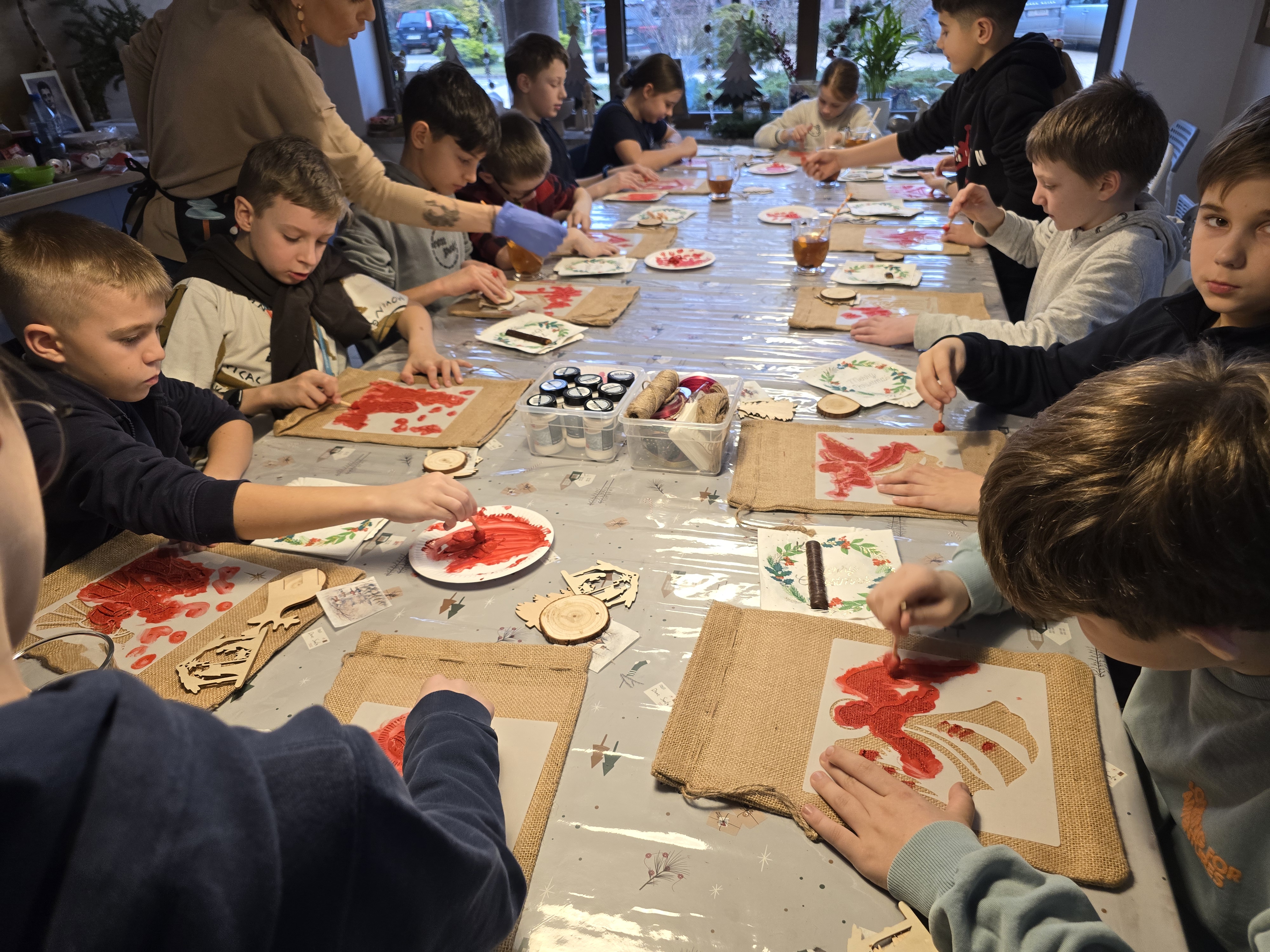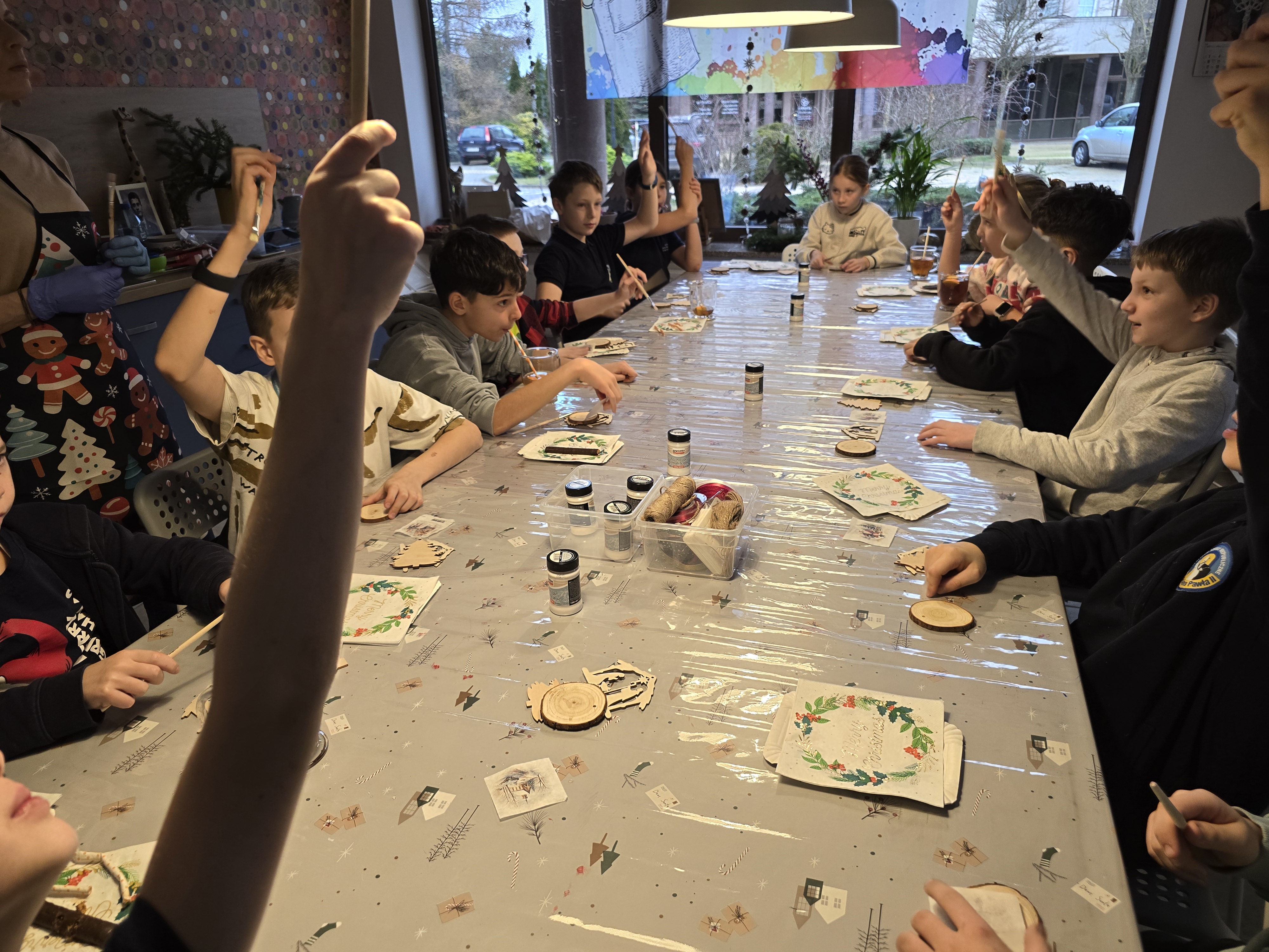 Dziś, gdy za oknami witała nas iście jesienna pogoda, powietrze zapachniało magią świąt, a klasa 4 wyruszyła na niezwykłą przygodę do Pracowni Frassati w Straszynie. Zamiast szkolnych ławek i podręczników, czekała na nich prawdziwa, artystyczna kraina, pełna kolorów, zapachów i świątecznych inspiracji. Celem wyprawy były warsztaty, które miały na celu wprowadzić dzieci w magiczny świat bożonarodzeniowych dekoracji.