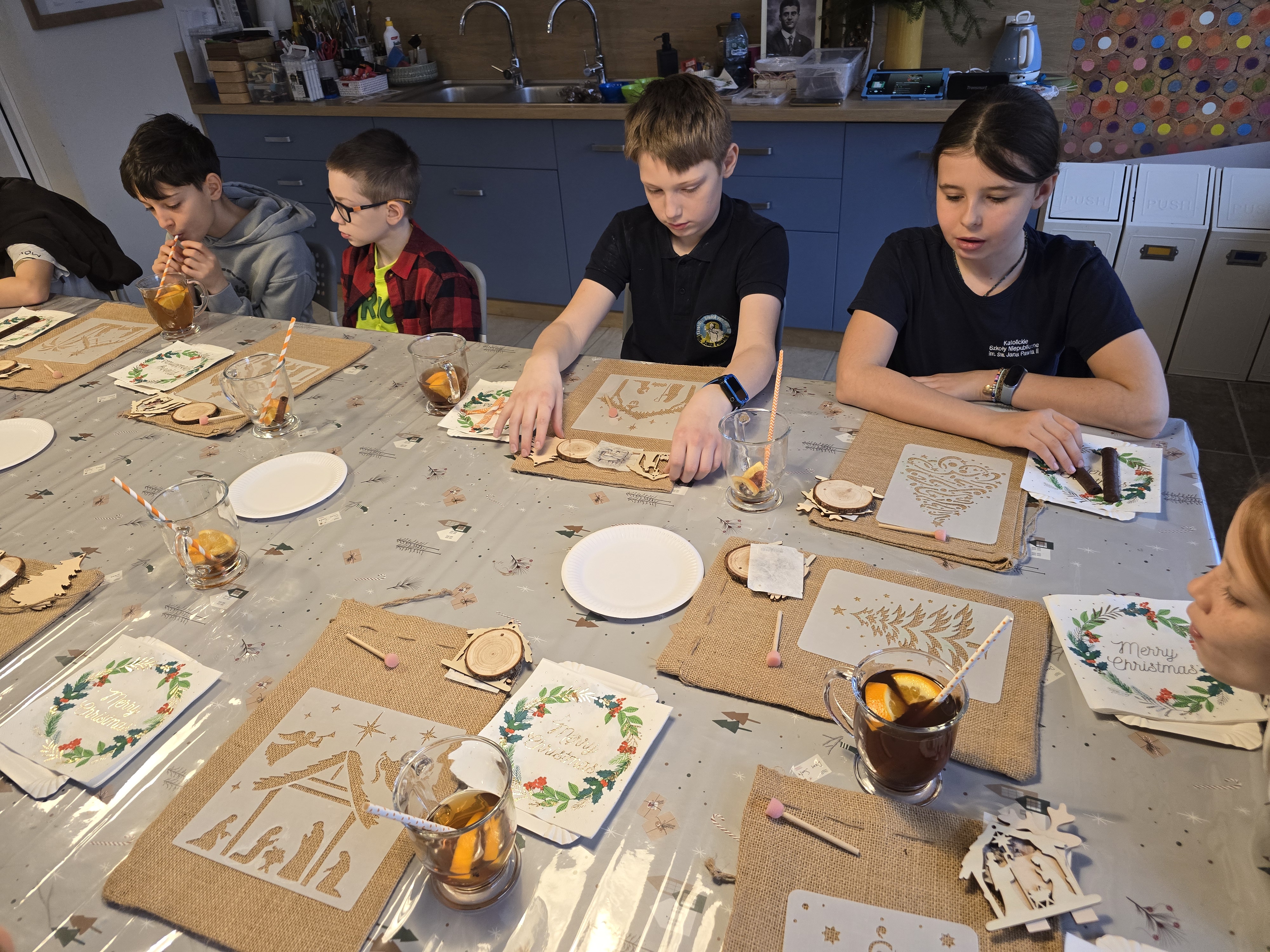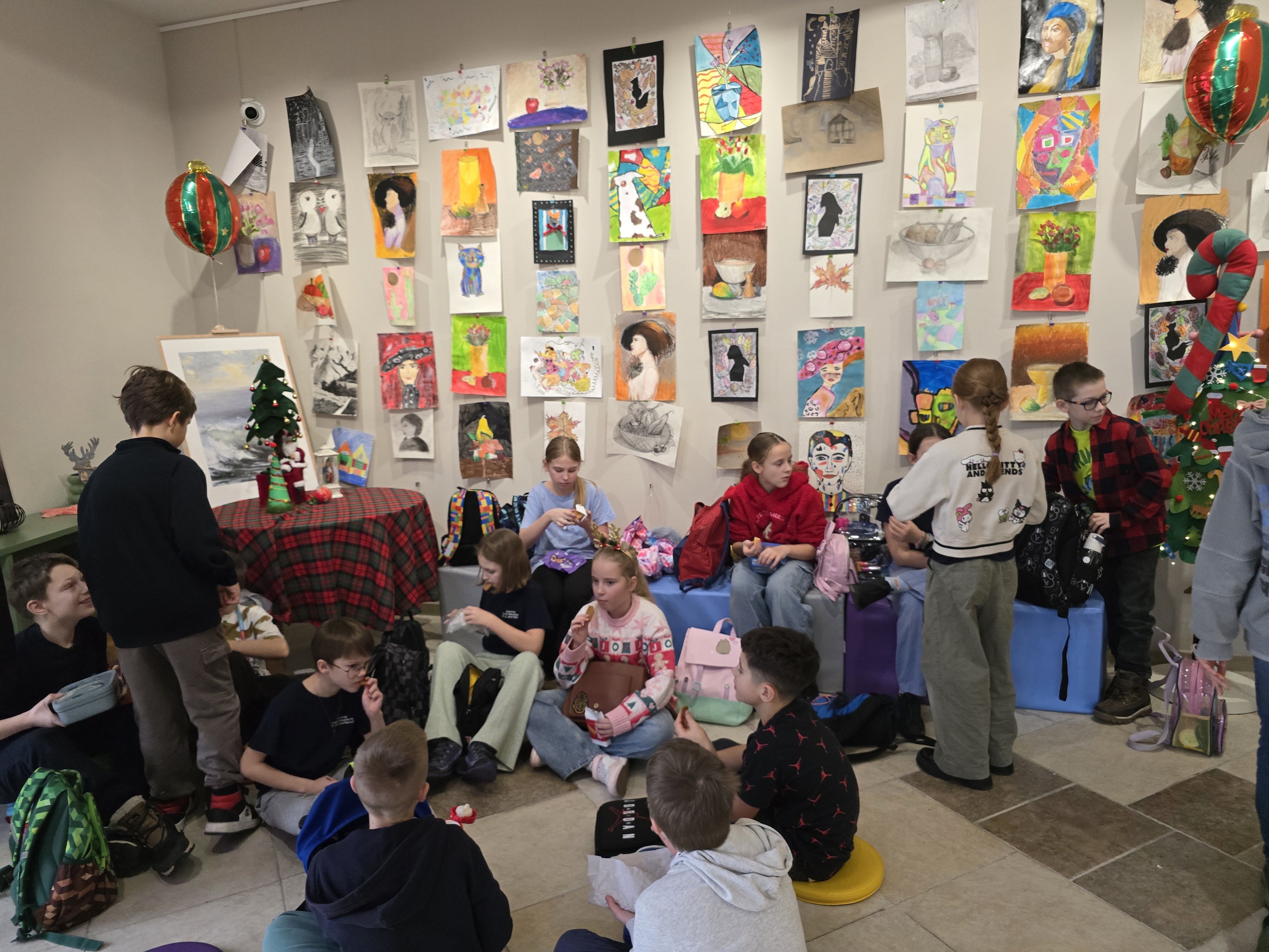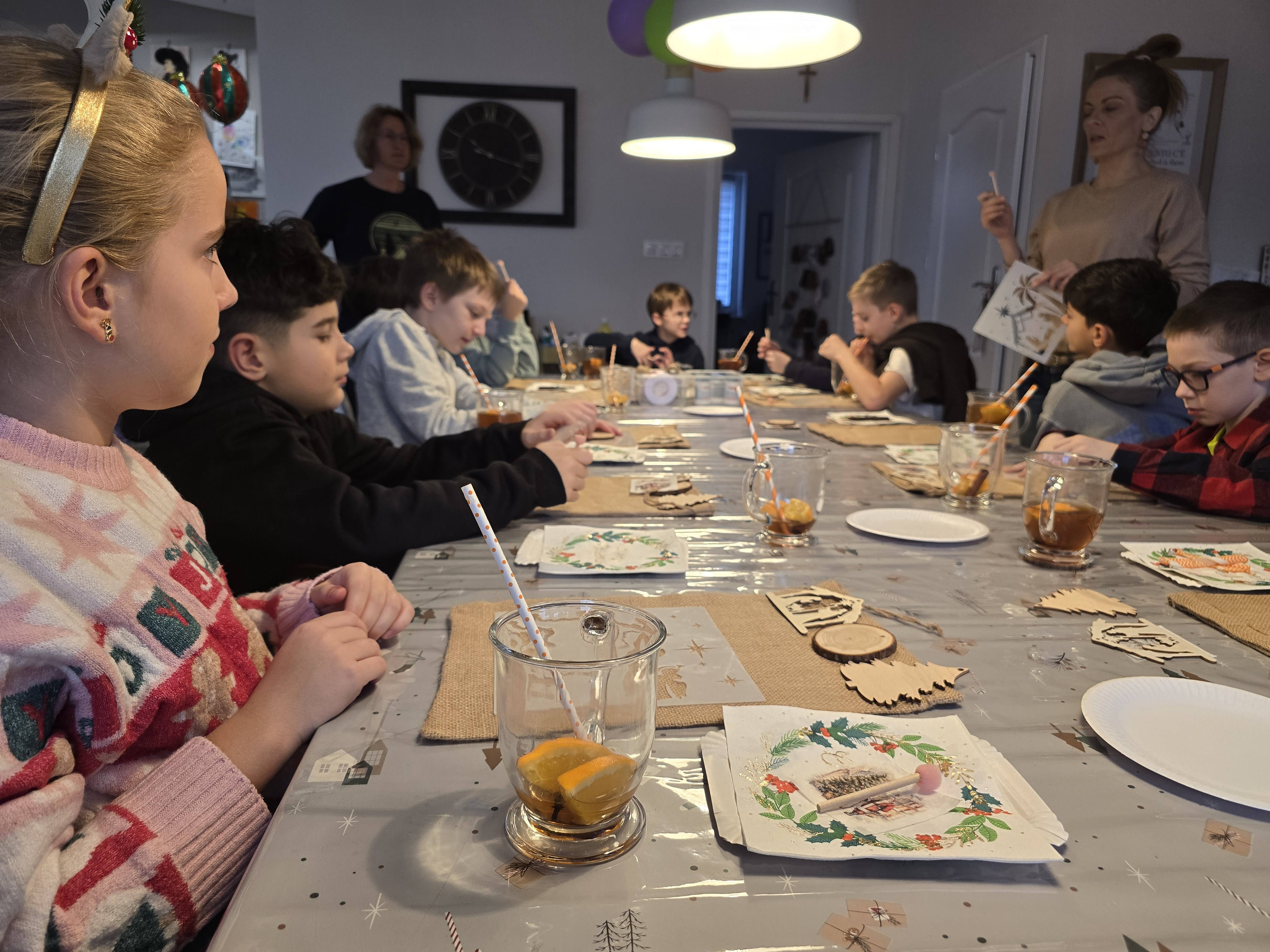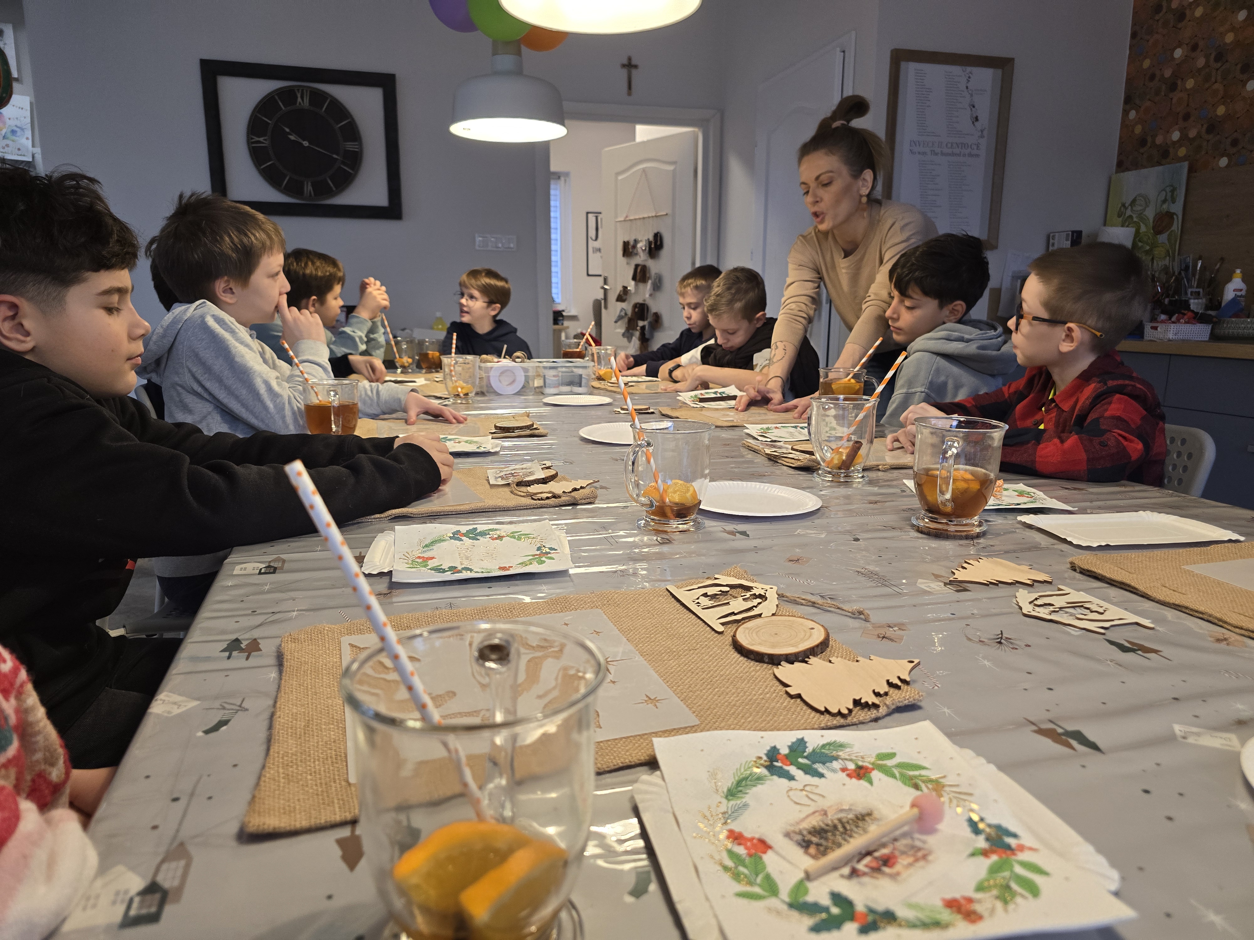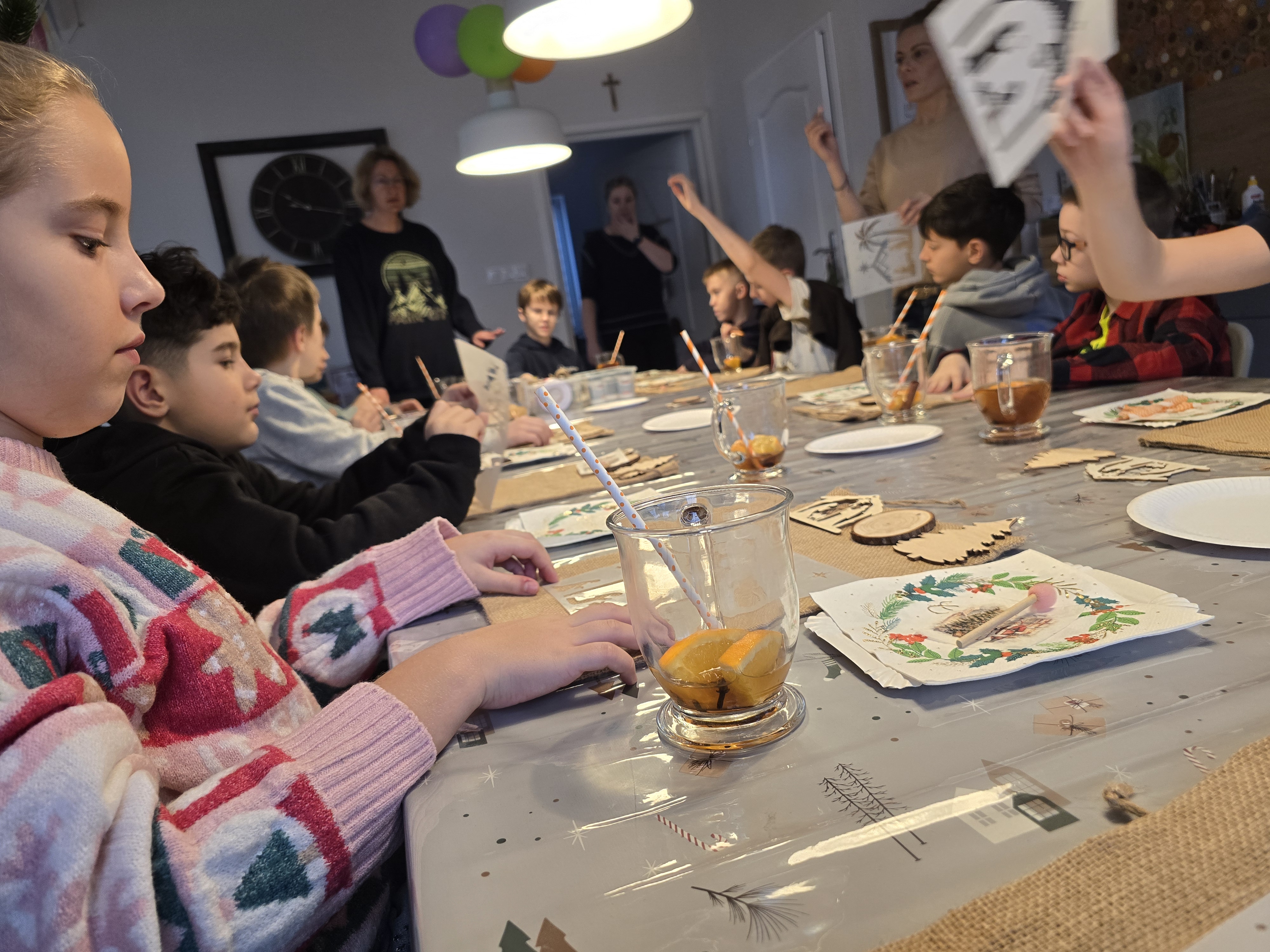 Dziś, gdy za oknami witała nas iście jesienna pogoda, powietrze zapachniało magią świąt, a klasa 4 wyruszyła na niezwykłą przygodę do Pracowni Frassati w Straszynie. Zamiast szkolnych ławek i podręczników, czekała na nich prawdziwa, artystyczna kraina, pełna kolorów, zapachów i świątecznych inspiracji. Celem wyprawy były warsztaty, które miały na celu wprowadzić dzieci w magiczny świat bożonarodzeniowych dekoracji.