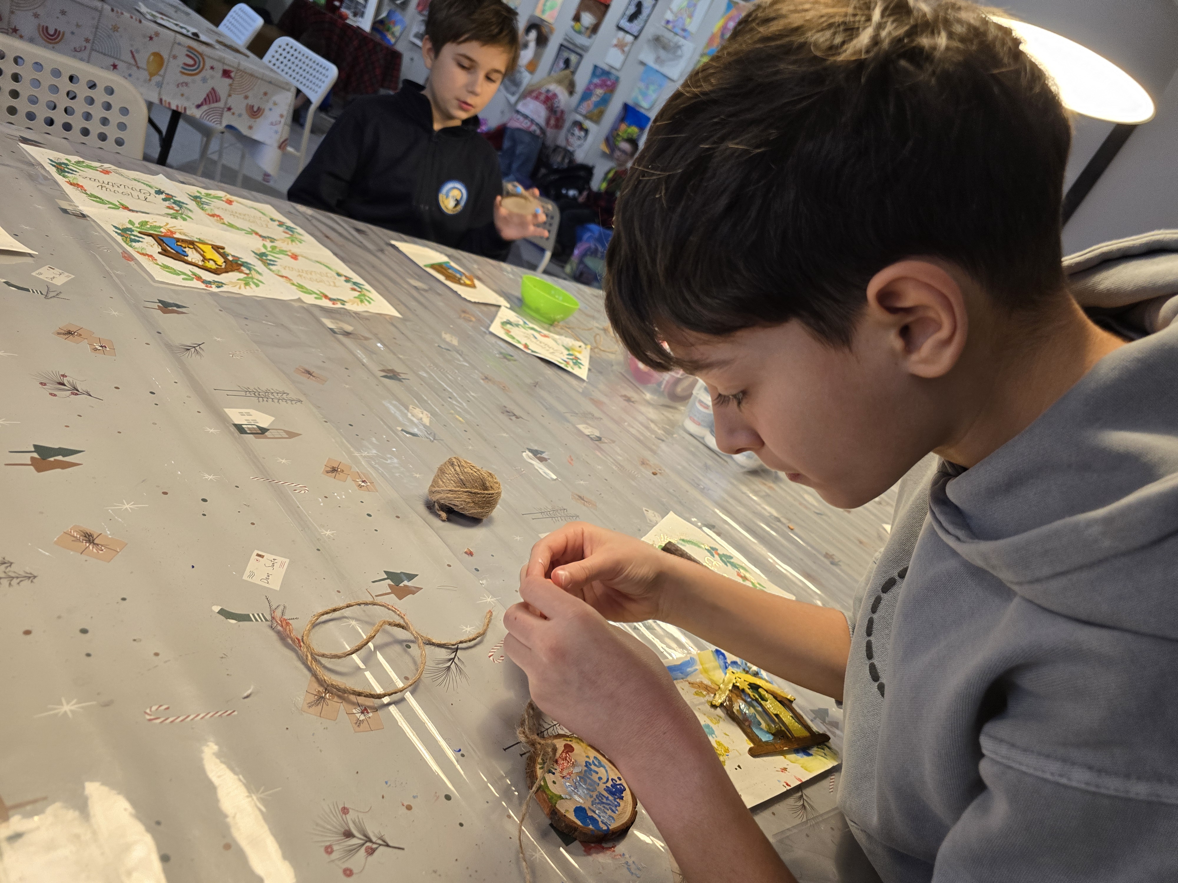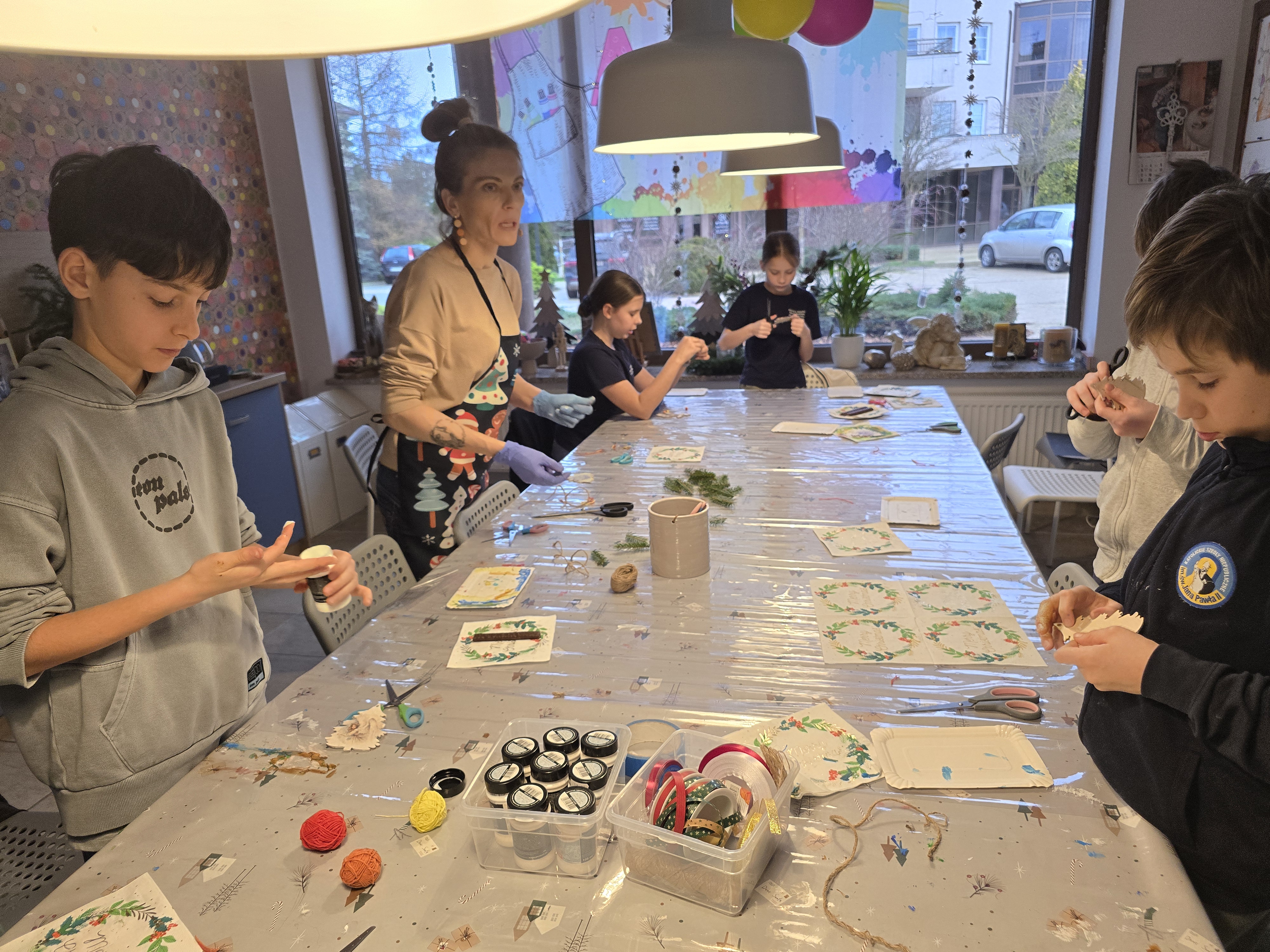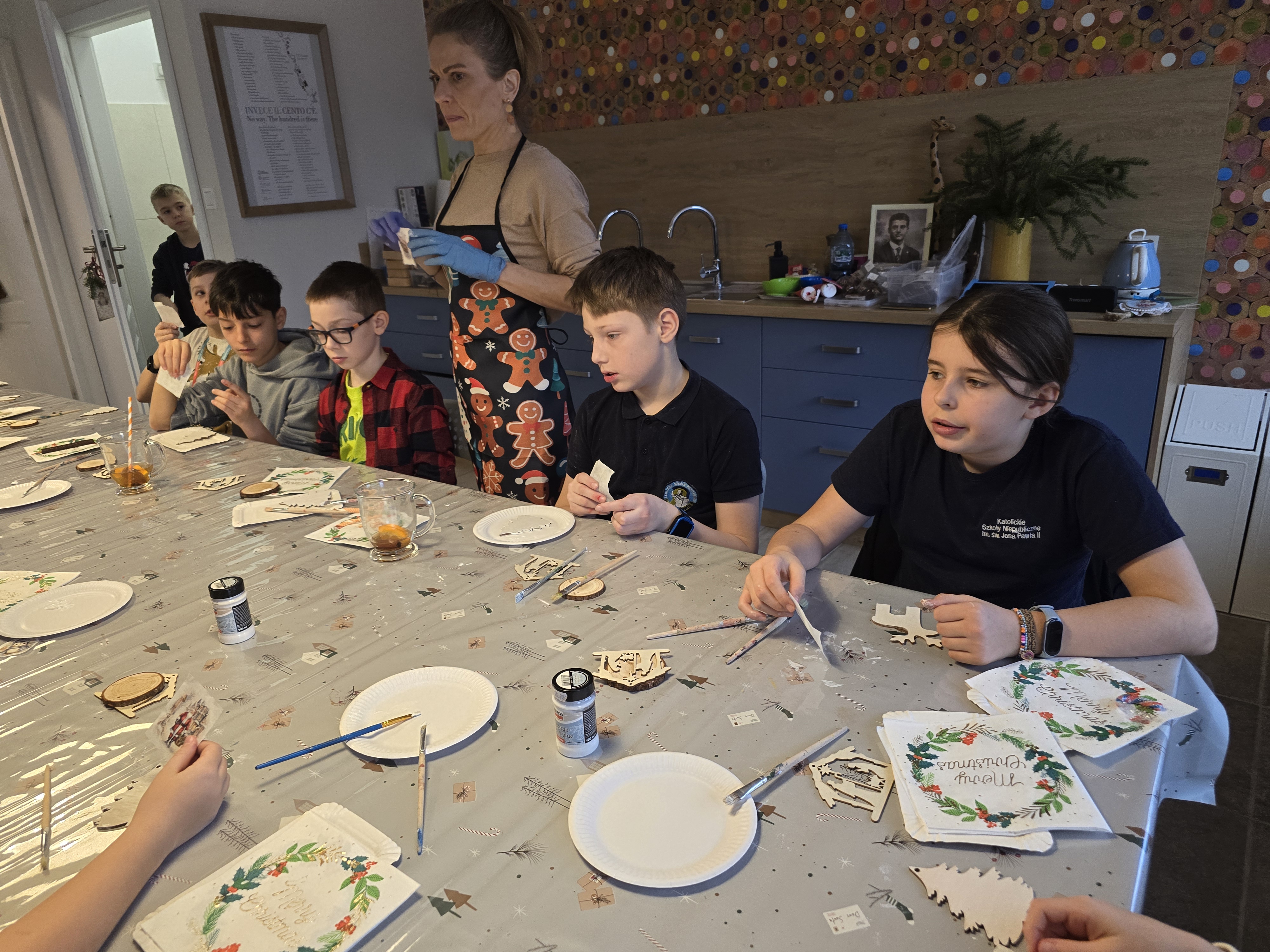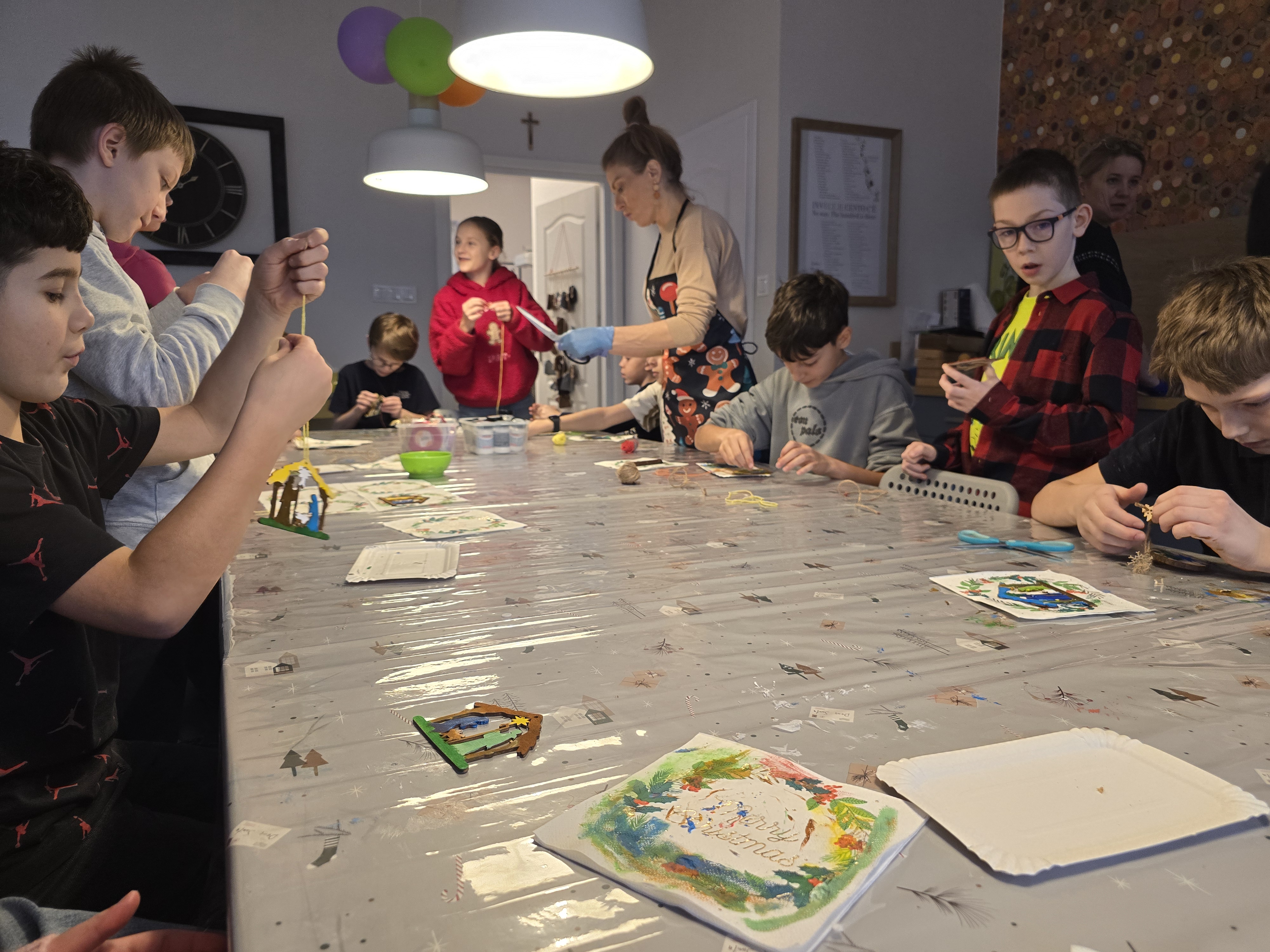 Jednak to nie koniec atrakcji. W Pracowni Frassati czekało na dzieci jeszcze wiele innych niespodzianek. Uczniowie mieli okazję spróbować swoich sił w tworzeniu innych świątecznych ozdób, wykorzystując różnorodne materiały i techniki. Powstawały piękne pomysłowe dekoracje, które upiększą świąteczne drzewka i wnętrza domów.