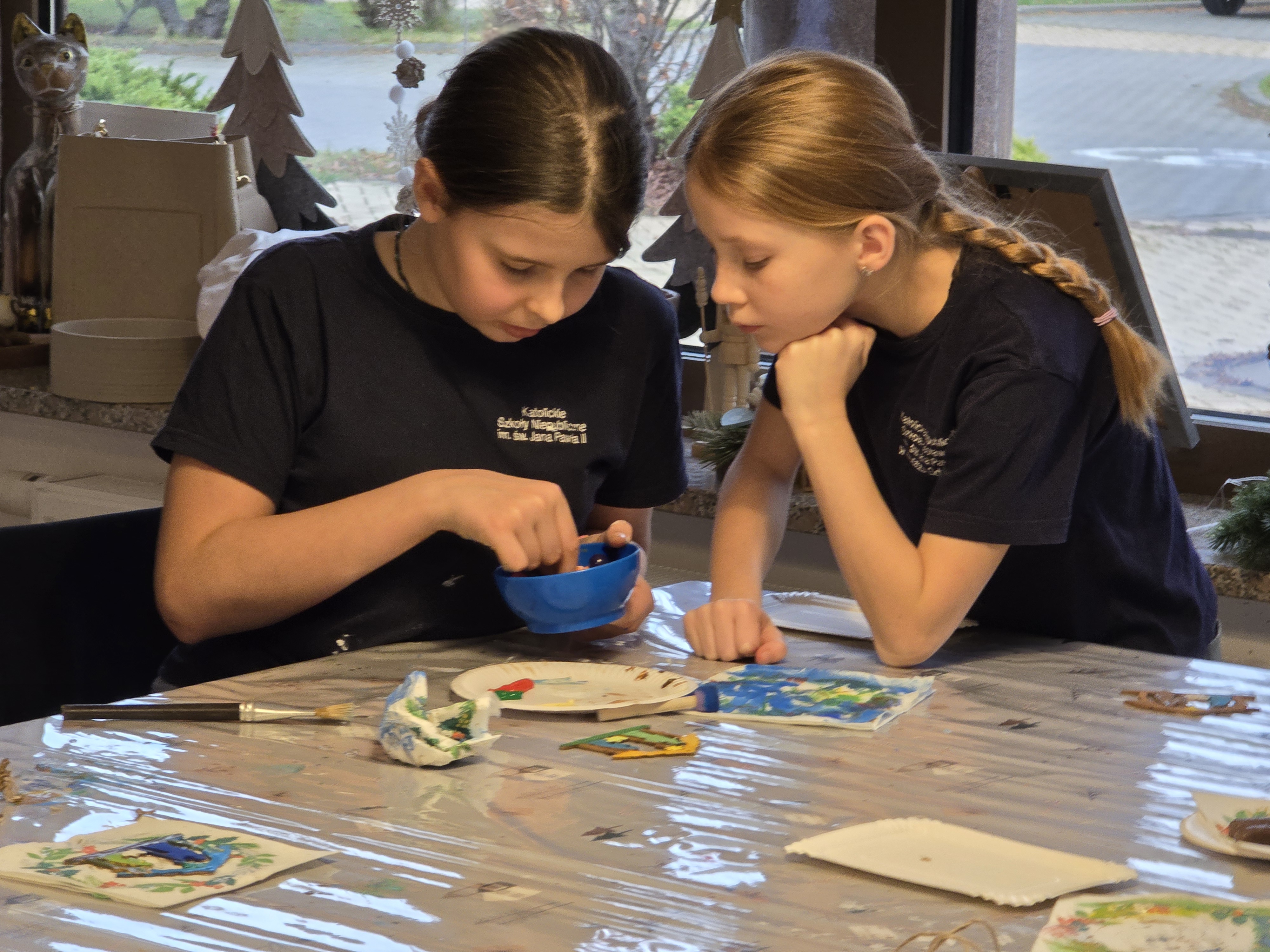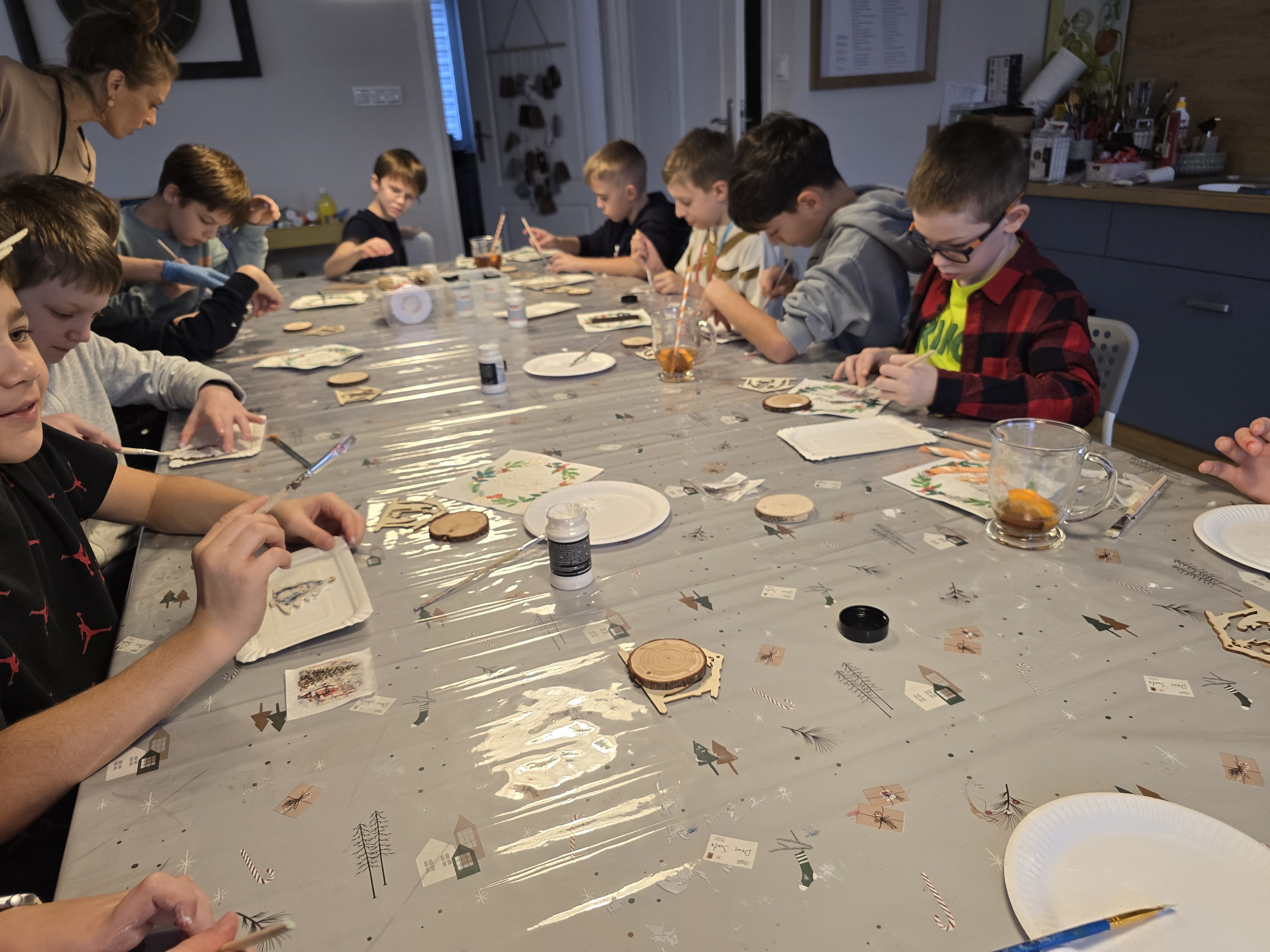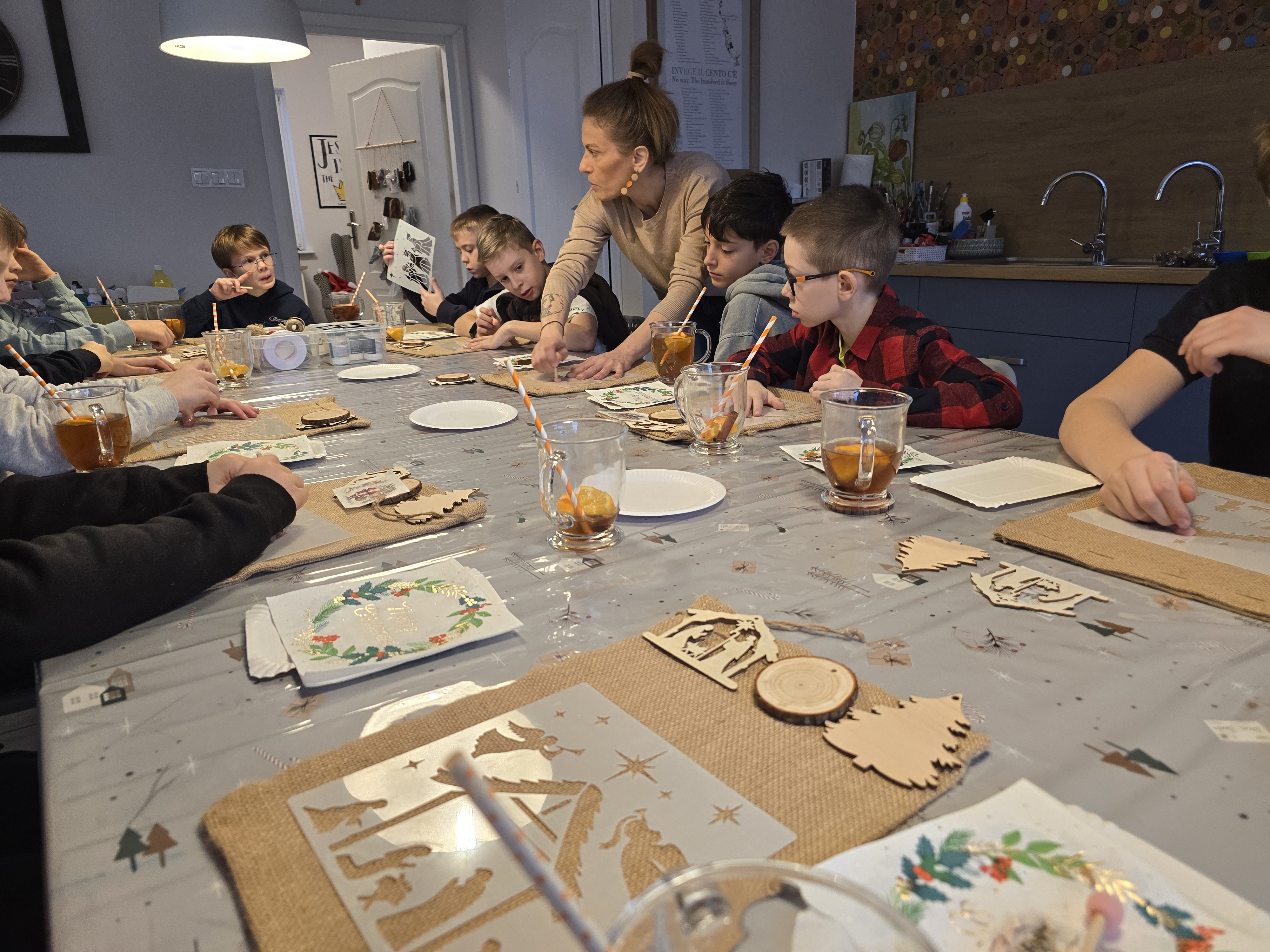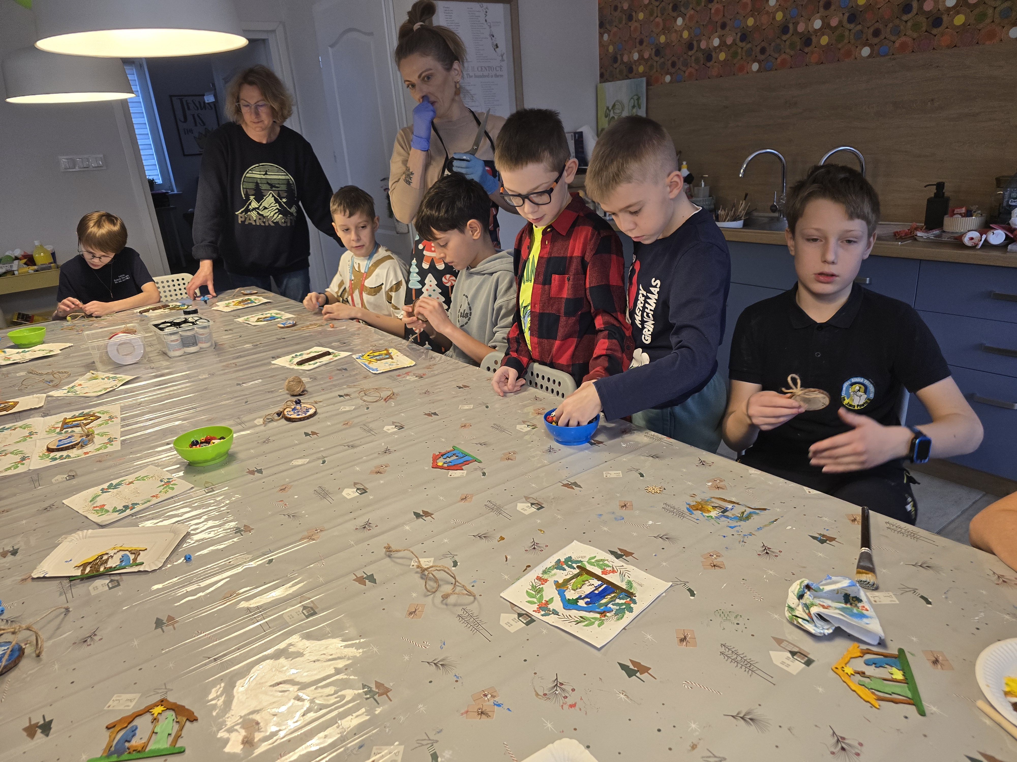 Warsztaty w Pracowni Frassati były dla klasy 4 nie tylko okazją do nauki nowych technik i zdobywania umiejętności, ale przede wszystkim do spędzenia czasu w kreatywny i radosny sposób. To była chwila wytchnienia od codziennych obowiązków, czas pełen inspiracji i pozytywnej energii. Dzieci wróciły do domu z pięknymi, własnoręcznie wykonanymi ozdobami, które będą przypominać im o tej wyjątkowej przygodzie. Dziękujemy Pracowni Frassati za tak miłą atmosferę i świetne warsztaty!!!