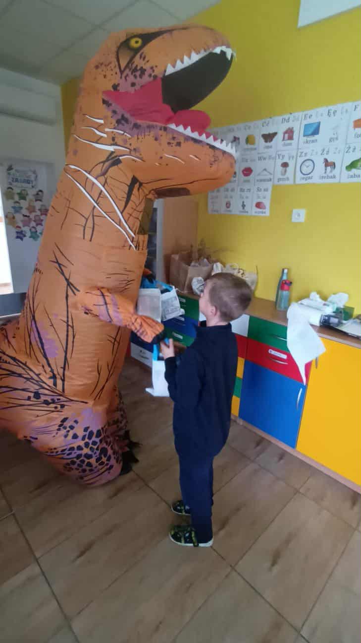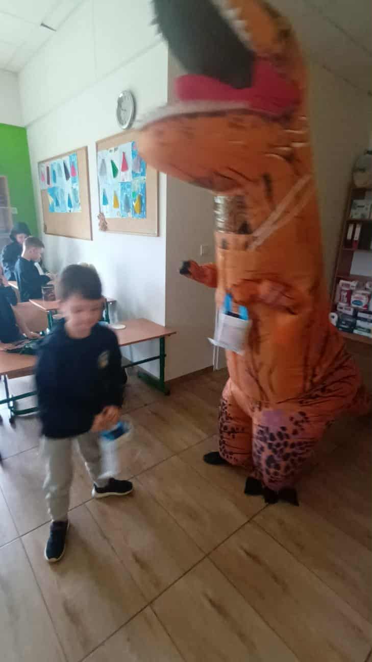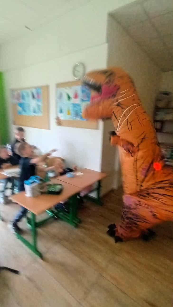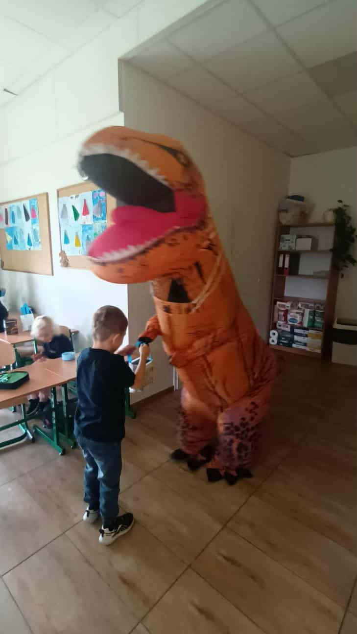 Dziś sala 1b zamieniła się w prehistoryczny raj, a to za sprawą wyjątkowego gościa, który odwiedził klasę 1b z okazji Dnia Chłopaka!