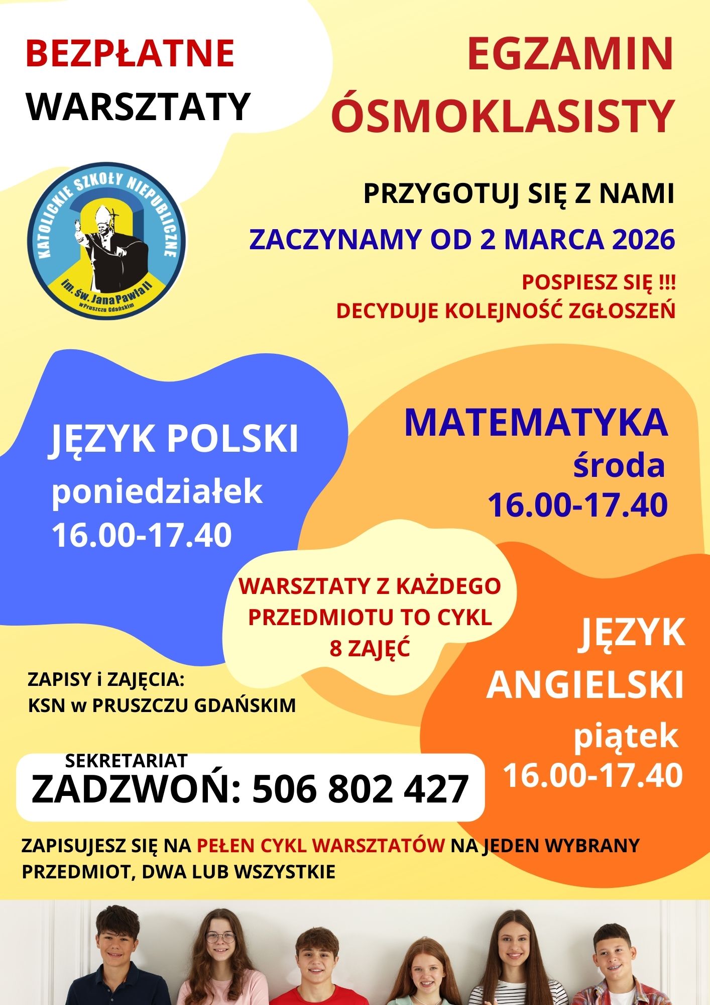 Jesteś uczniem klasy VIII, przyjdź do nas pomożemy Ci przygotować się z matematyki, języka polskiego a także z języka anglieskiego.