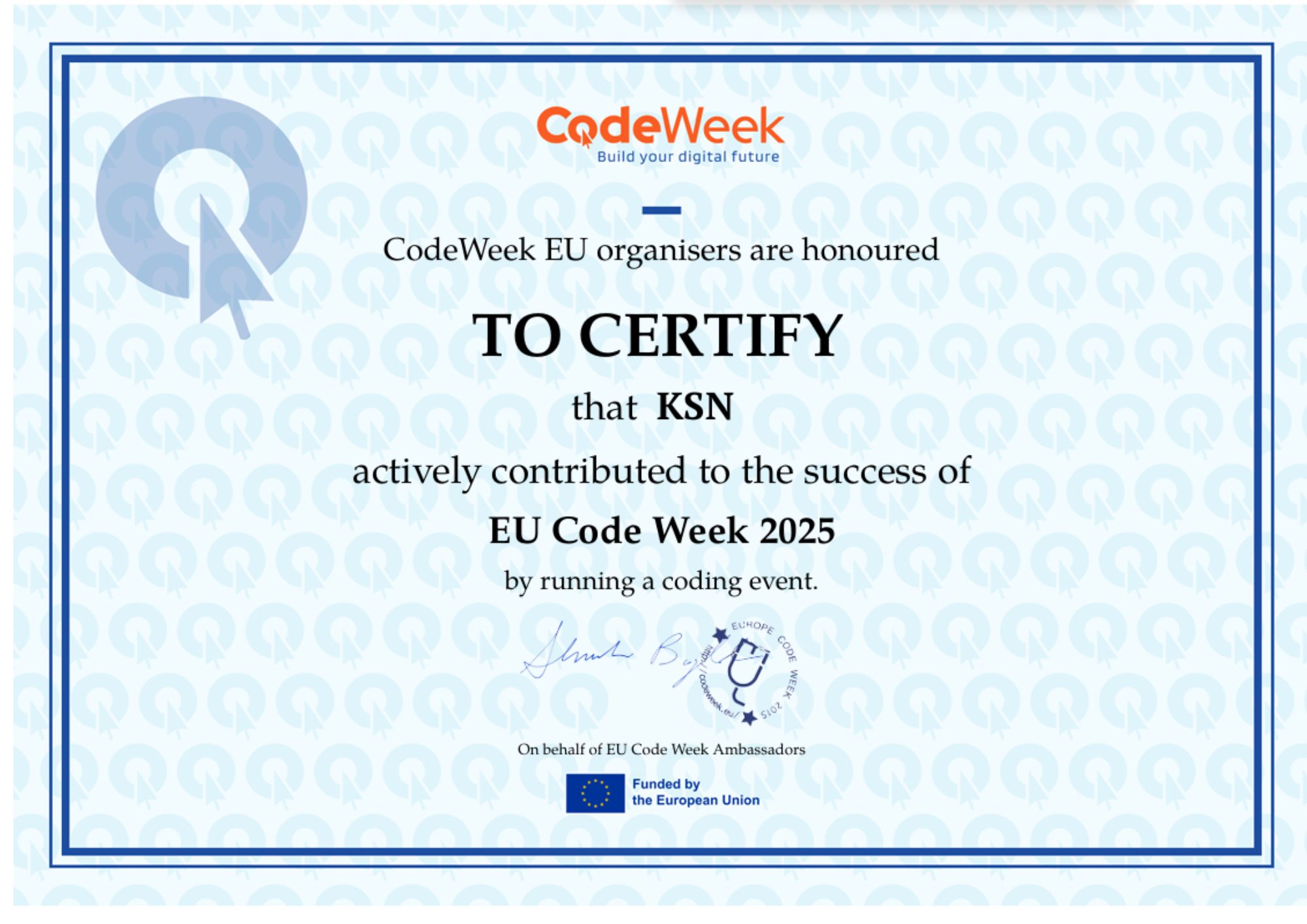 Certyfikat uznania za udział w EU Code Week 2025