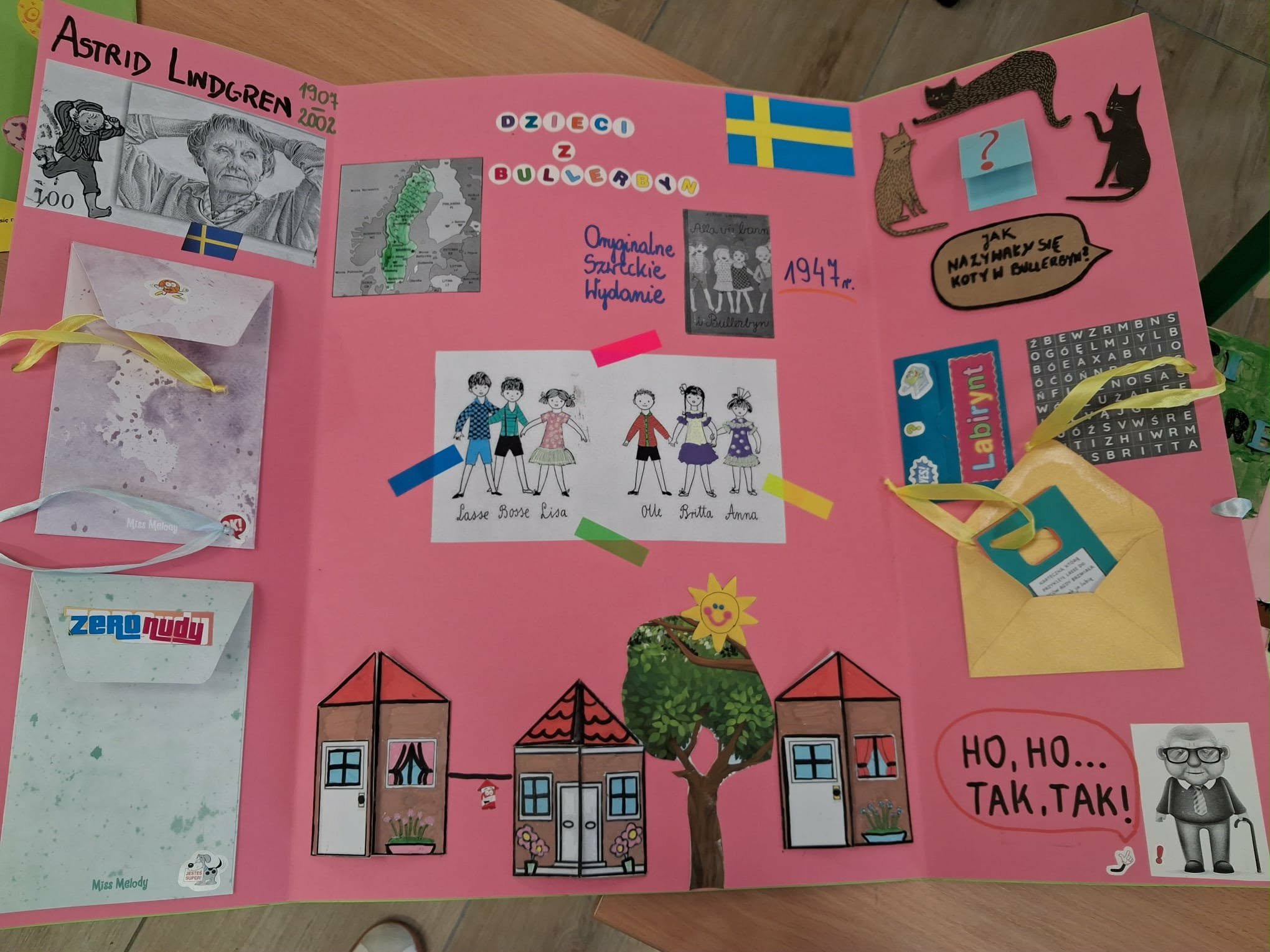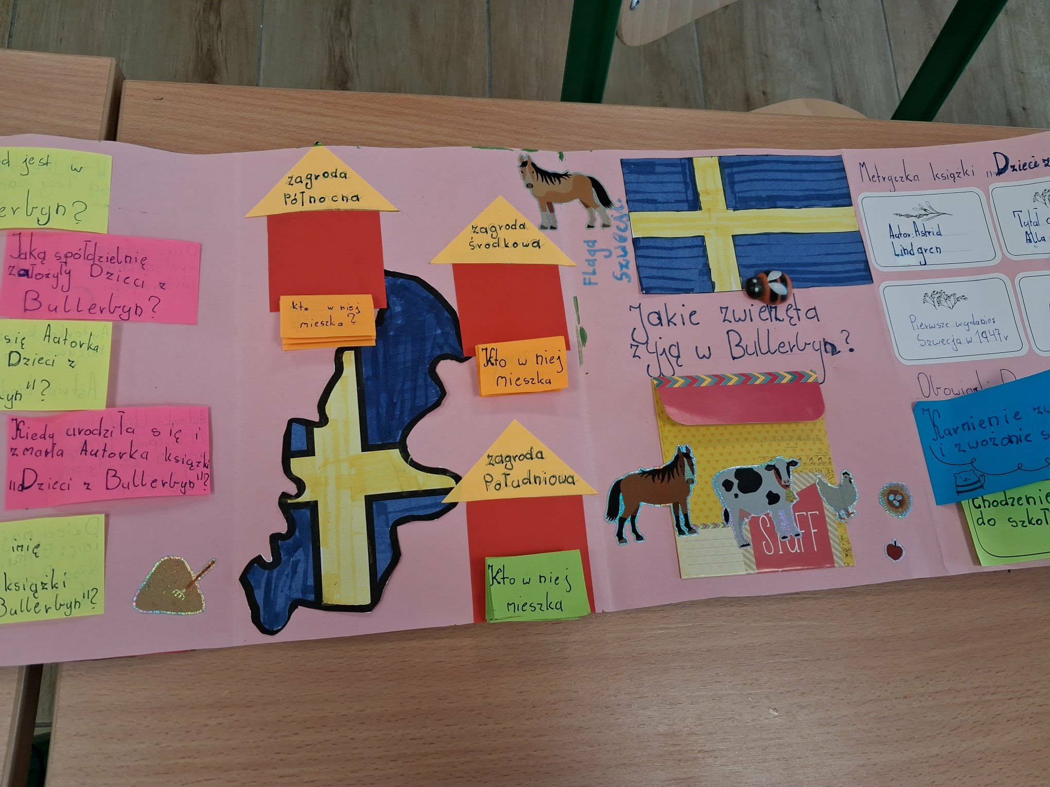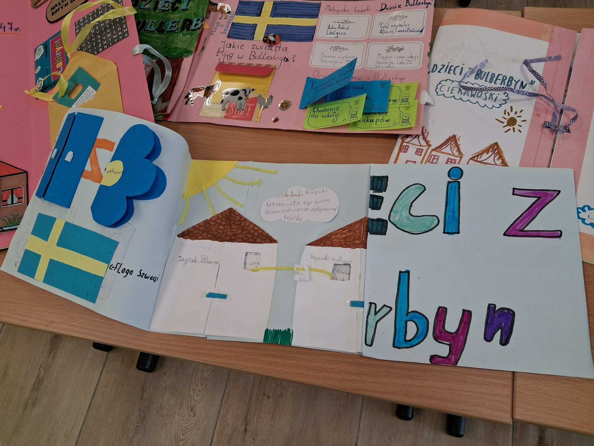 Na szkolnym korytarzu zrobiło się ostatnio wyjątkowo kolorowo i… literacko! Wszystko za sprawą uczniów klasy 3, którzy przygotowali niezwykłe lapbooki inspirowane książką Dzieci z Bullerbyn autorstwa Astrid Lindgren.