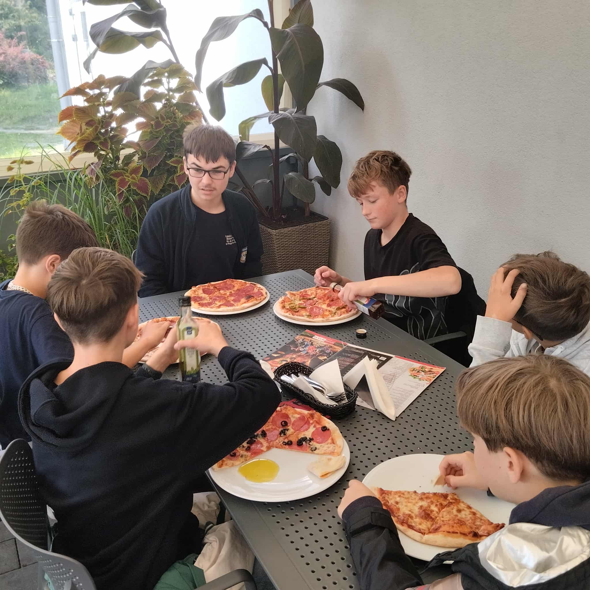 Ale to nie koniec atrakcji! Po kinowych wrażeniach przyszedł czas na pyszne jedzenie. Uczniowie udali się do restauracji, gdzie czekały na nich pyszne pizze. Uśmiech nie schodził z twarzy, a wspólne biesiadowanie i rozmowy stworzyły wyjątkową atmosferę. Na koniec udali się jeszcze na pobliski plac zabaw.
