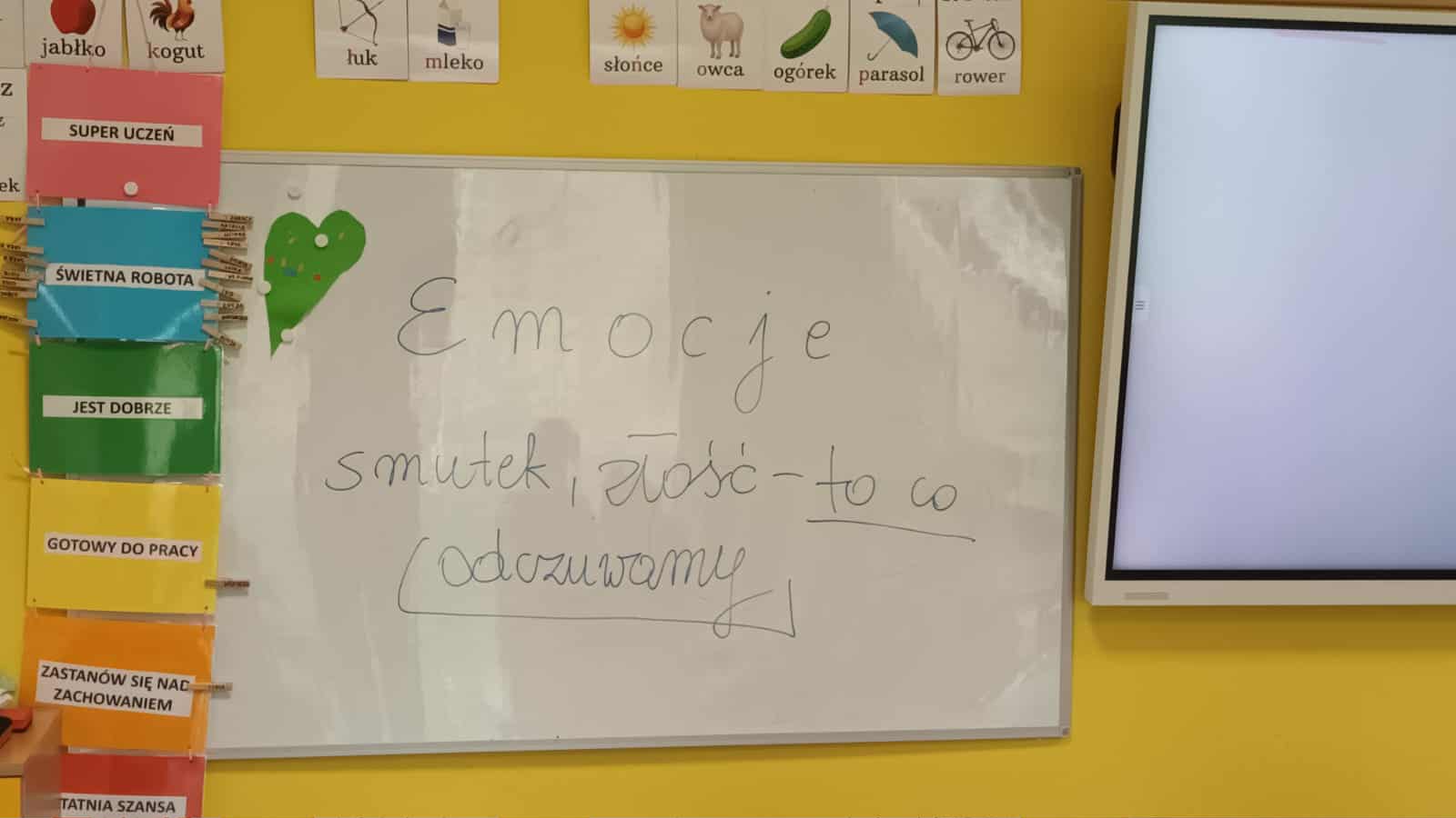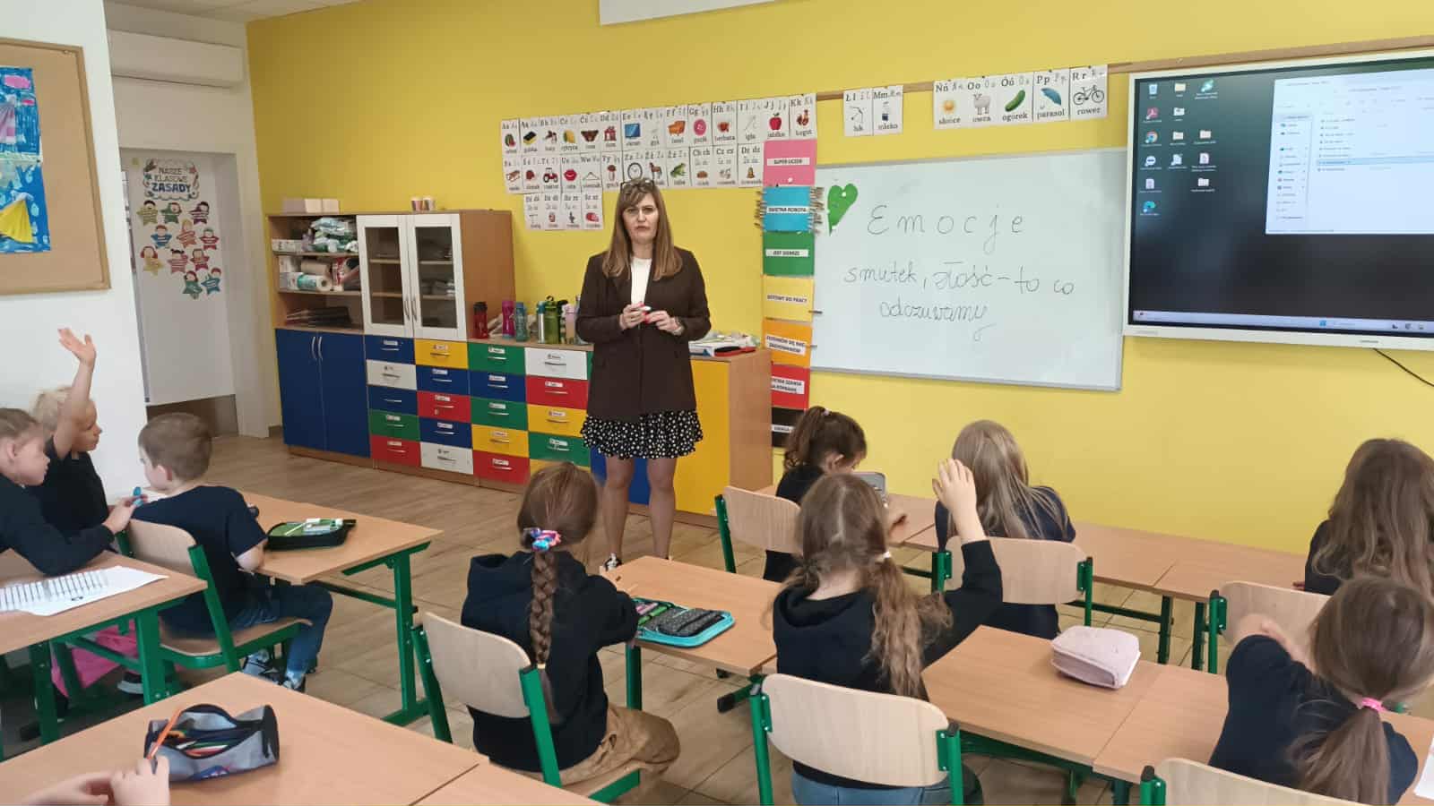 Dziś klasa 1b przeżyła niezwykłe spotkanie. W ramach zajęć z psychologiem, dzieci zgłębiały fascynujący świat emocji. Temat spotkania brzmiał: "Emocje, smutek, złość - to co odczuwamy".