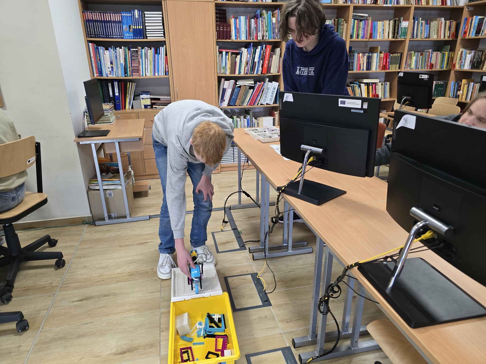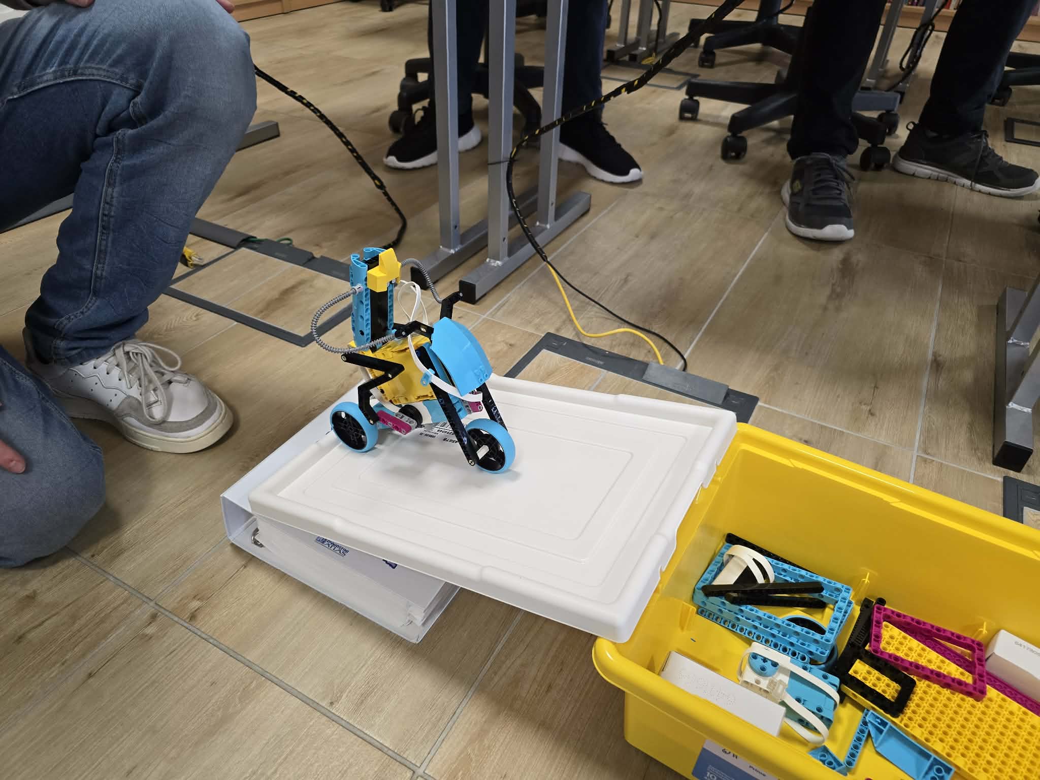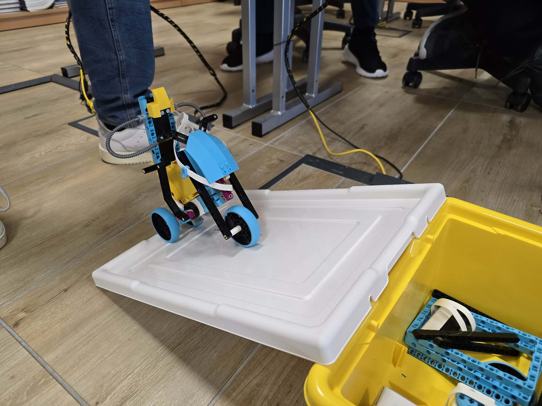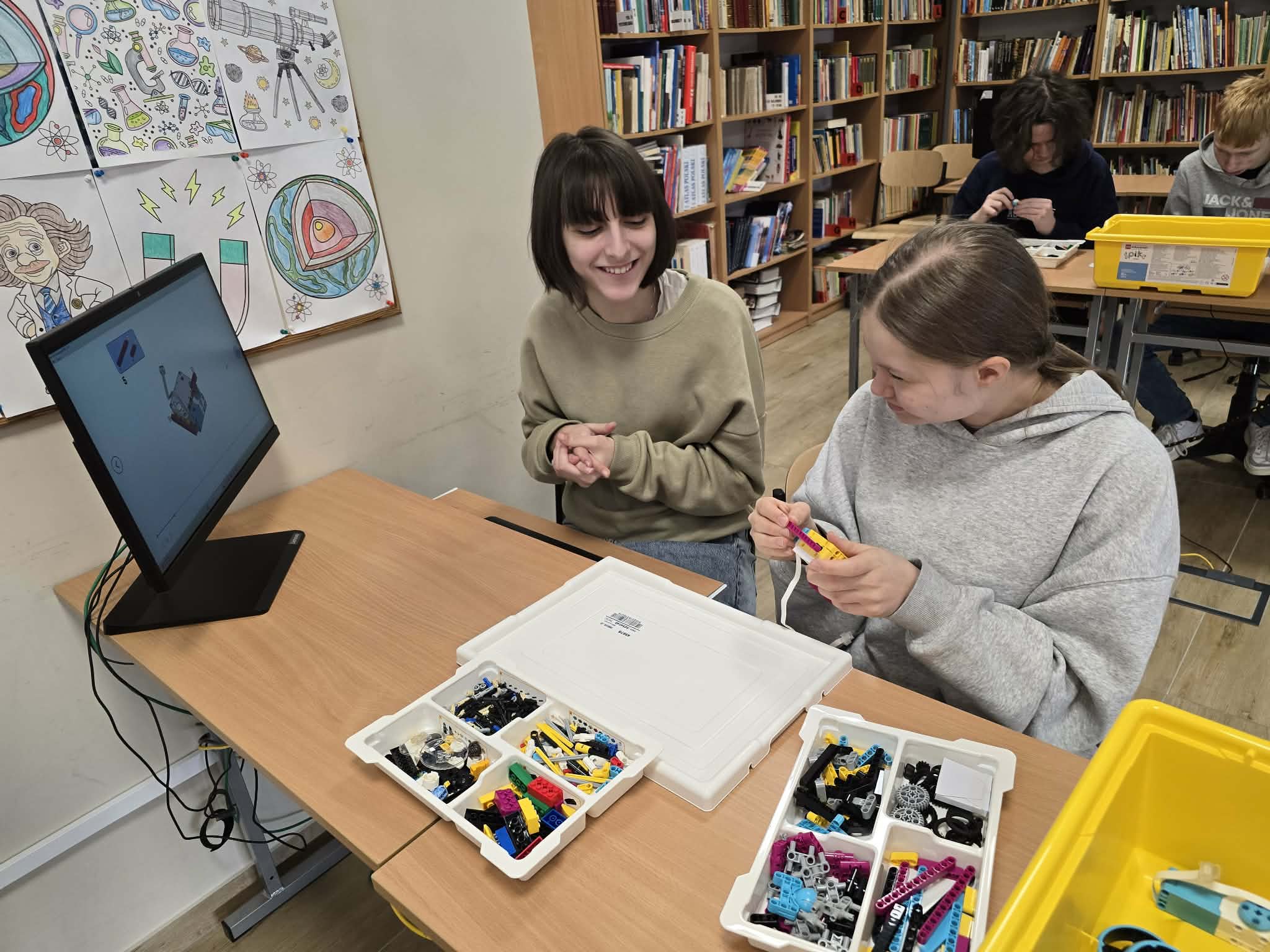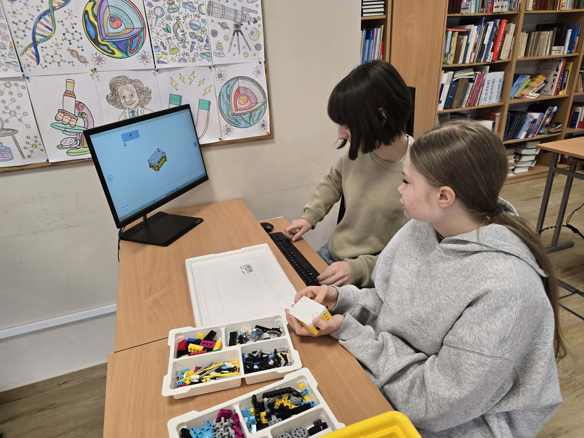 Następnie przyszła pora na praktykę! Uczniowie podzieleni na grupy przystąpili do budowy modeli rowerów elektrycznych z klocków Lego. Modele te miały za zadanie obrazować omawiane zjawiska. Po zakończeniu budowy, przyszła pora na programowanie. Korzystając z intuicyjnego środowiska Scratch, uczniowie zaprogramowali działanie swoich rowerów, symulując zmianę zużycia energii przez silnik w zależności od wzniesienia. W ten sposób model roweru elektrycznego miał reagować na "wzniesienie" poprzez zwiększenie mocy silnika, aby utrzymać stałą prędkość.