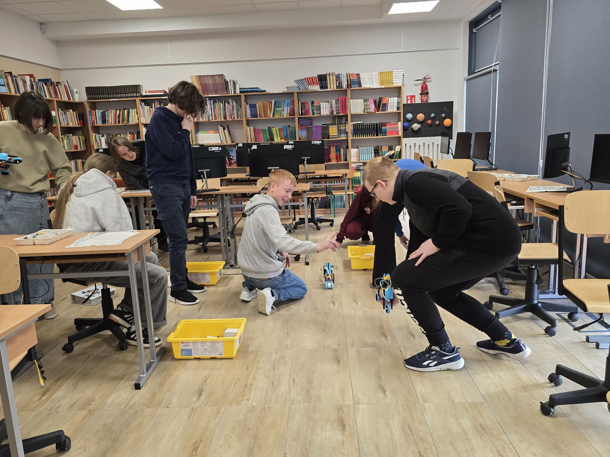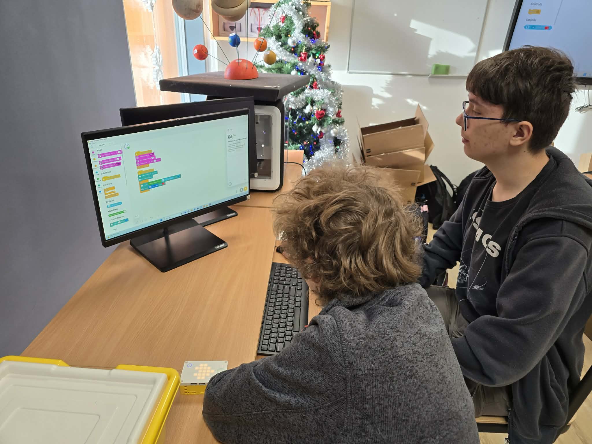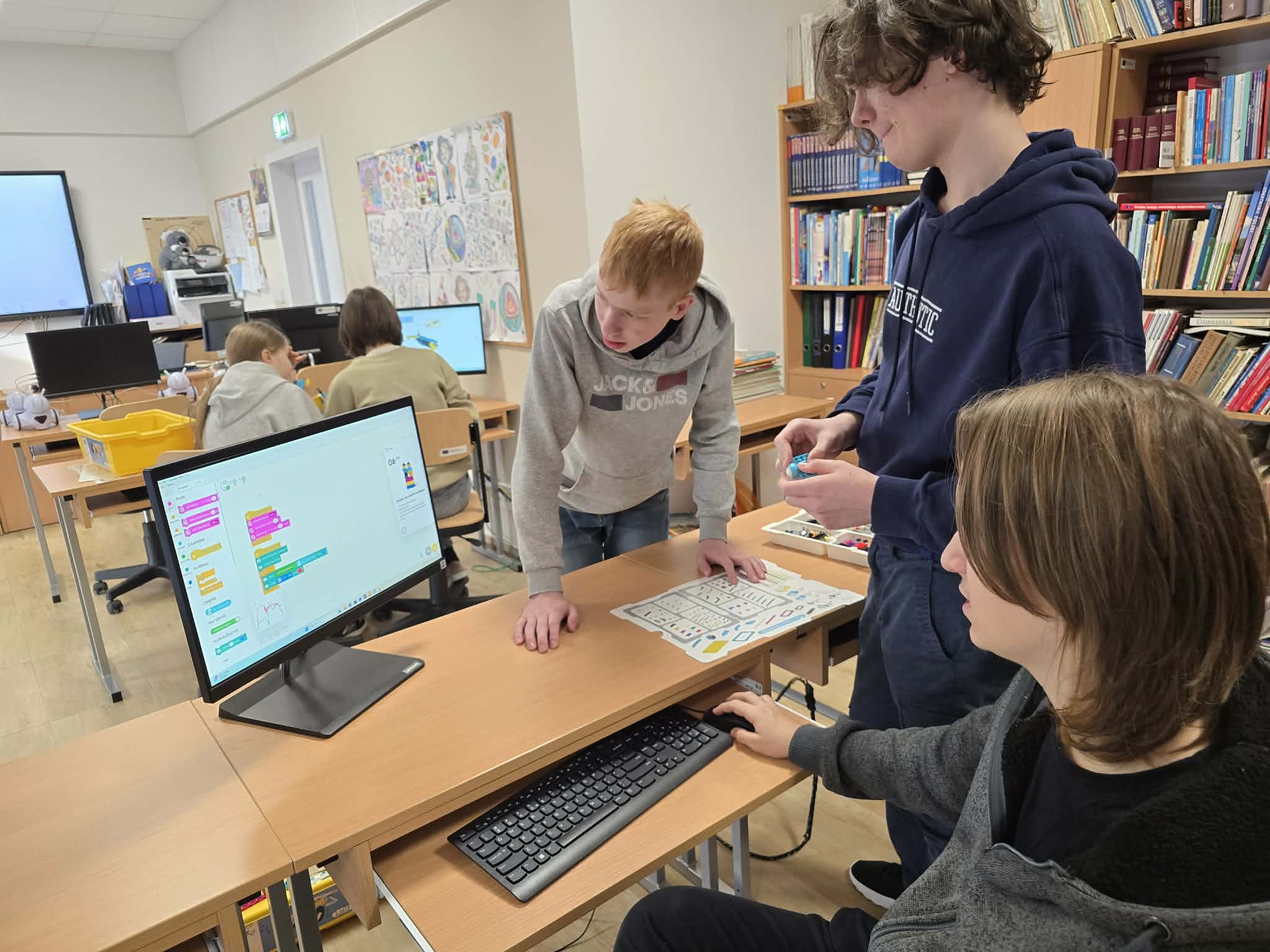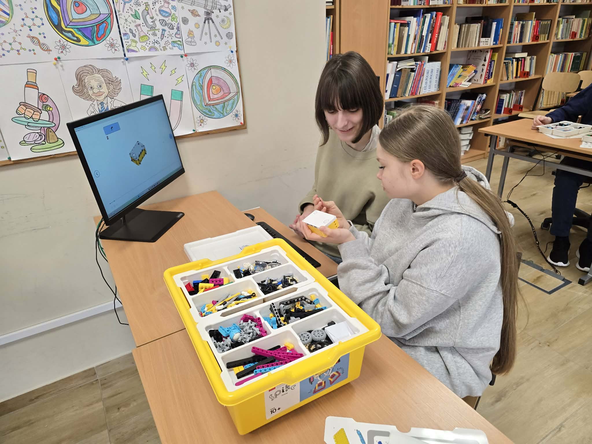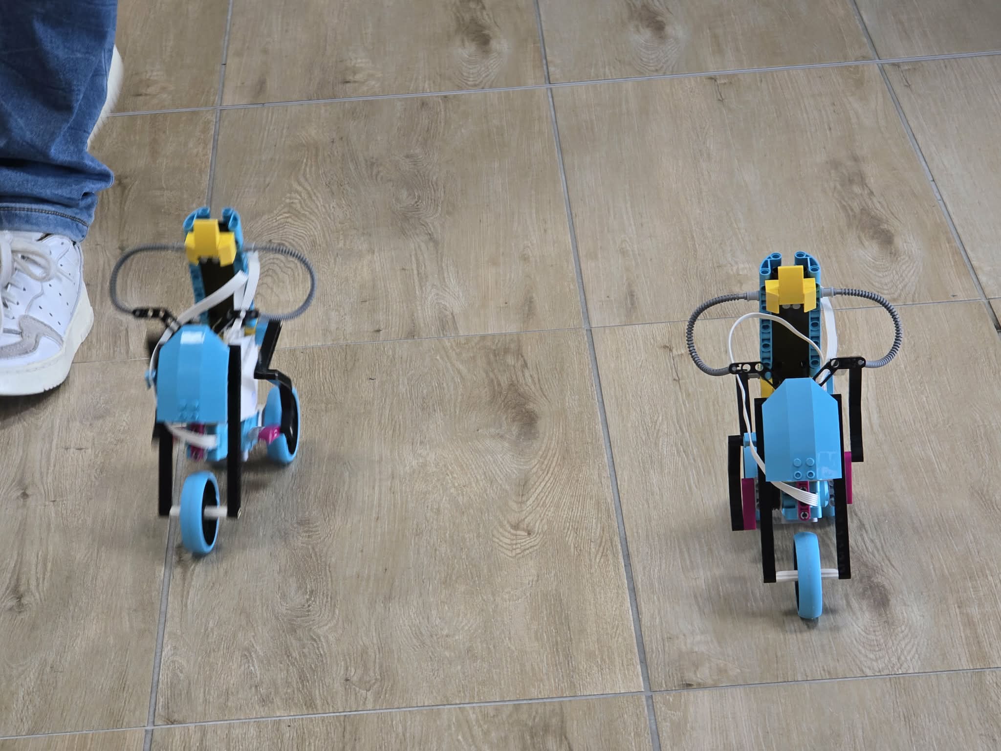 Następnie przyszła pora na praktykę! Uczniowie podzieleni na grupy przystąpili do budowy modeli rowerów elektrycznych z klocków Lego. Modele te miały za zadanie obrazować omawiane zjawiska. Po zakończeniu budowy, przyszła pora na programowanie. Korzystając z intuicyjnego środowiska Scratch, uczniowie zaprogramowali działanie swoich rowerów, symulując zmianę zużycia energii przez silnik w zależności od wzniesienia. W ten sposób model roweru elektrycznego miał reagować na "wzniesienie" poprzez zwiększenie mocy silnika, aby utrzymać stałą prędkość.