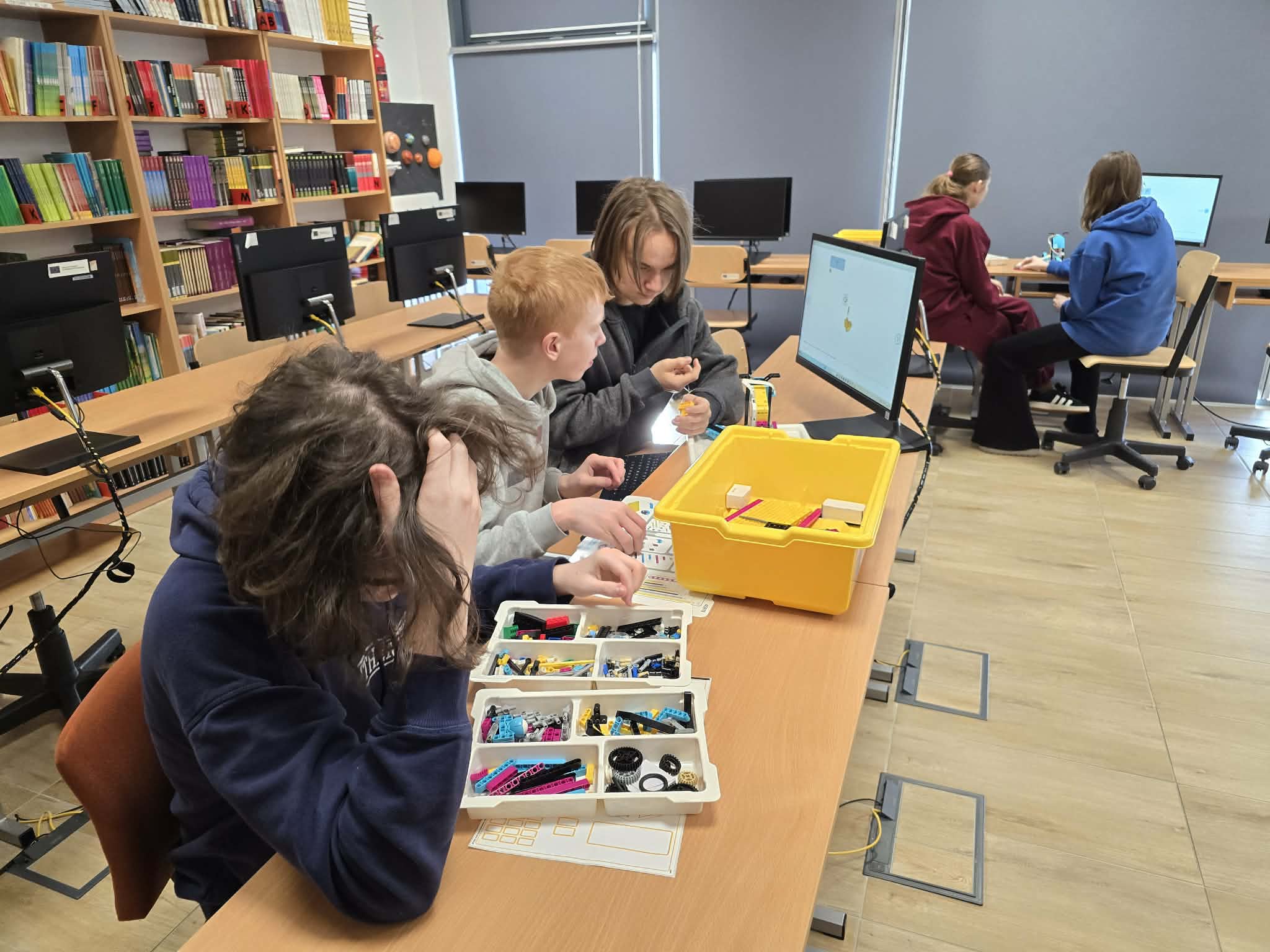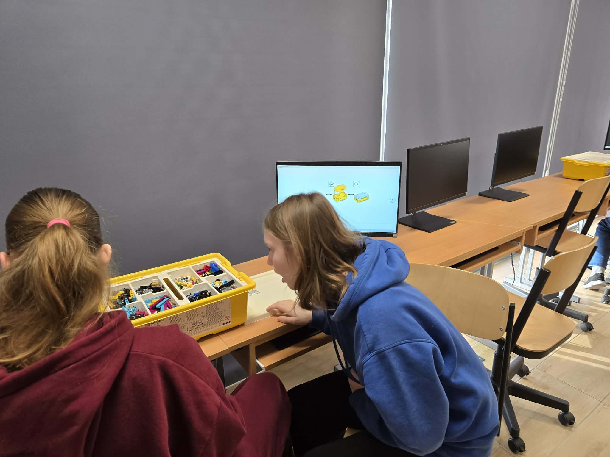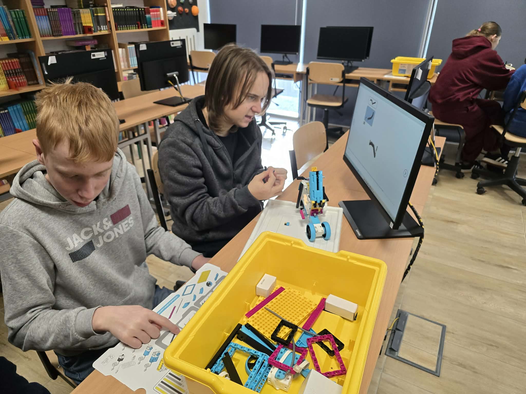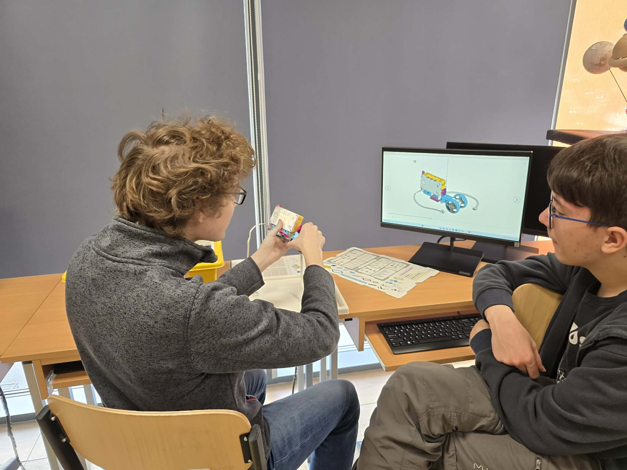 Następnie przyszła pora na praktykę! Uczniowie podzieleni na grupy przystąpili do budowy modeli rowerów elektrycznych z klocków Lego. Modele te miały za zadanie obrazować omawiane zjawiska. Po zakończeniu budowy, przyszła pora na programowanie. Korzystając z intuicyjnego środowiska Scratch, uczniowie zaprogramowali działanie swoich rowerów, symulując zmianę zużycia energii przez silnik w zależności od wzniesienia. W ten sposób model roweru elektrycznego miał reagować na "wzniesienie" poprzez zwiększenie mocy silnika, aby utrzymać stałą prędkość.