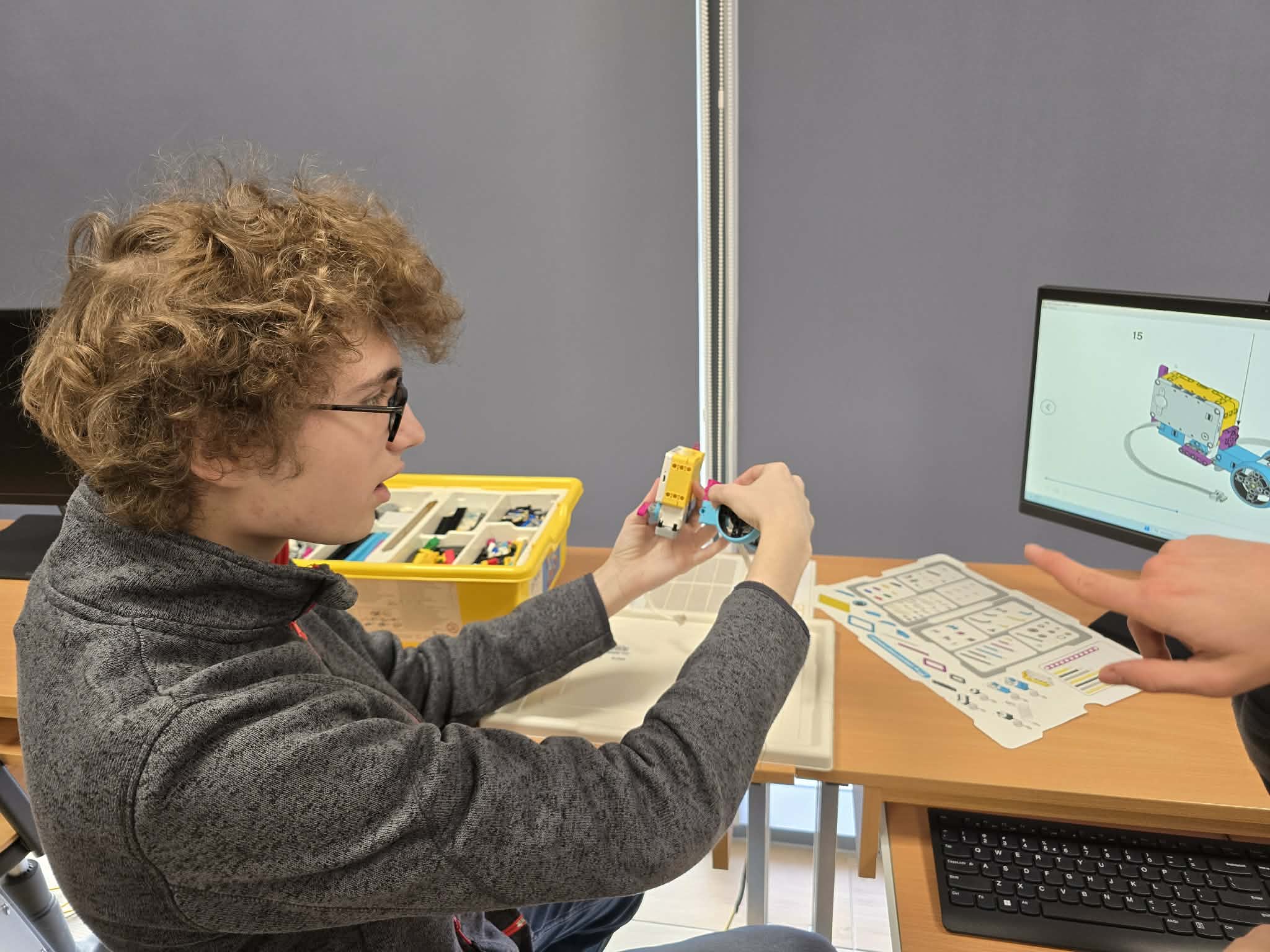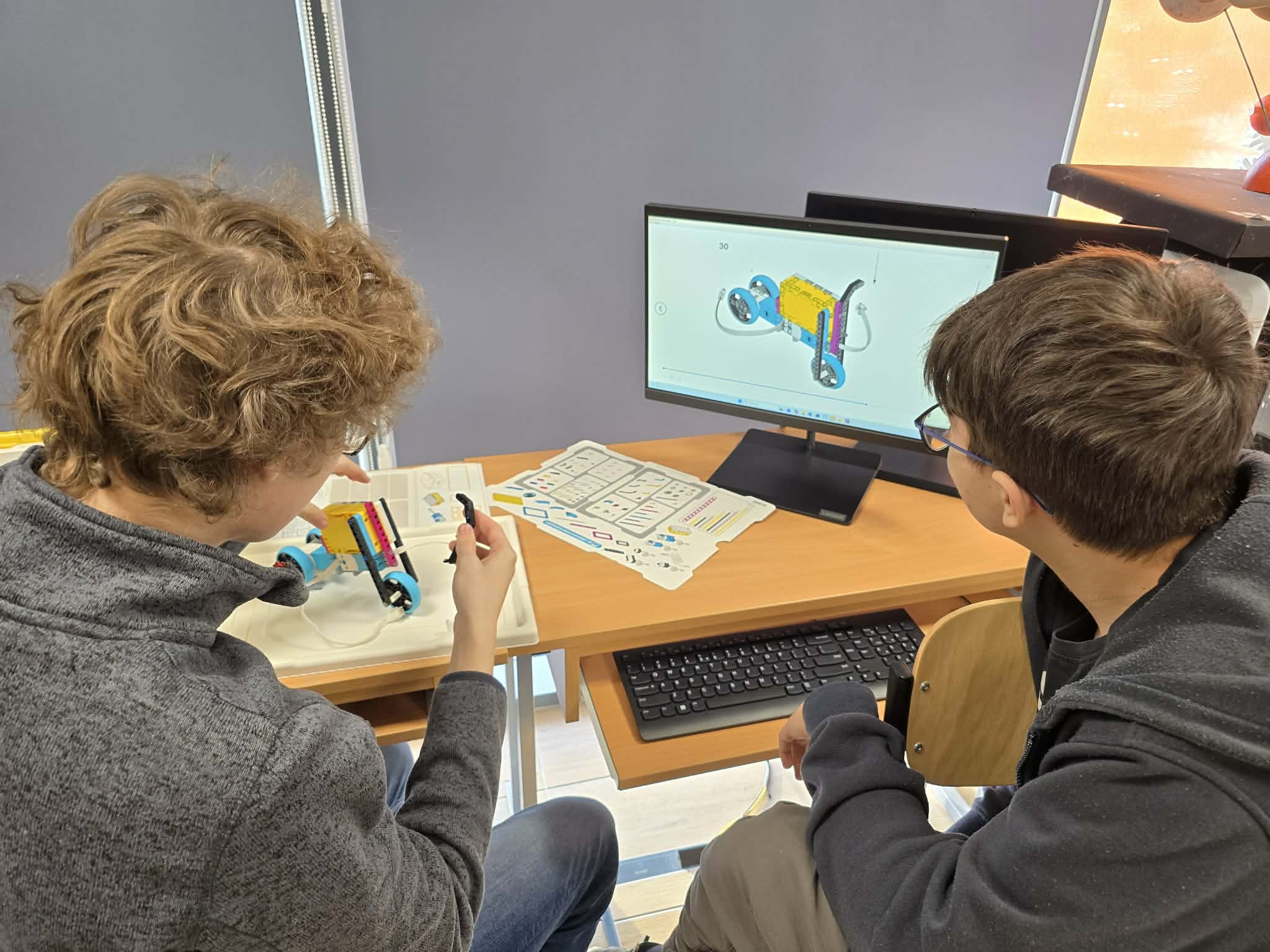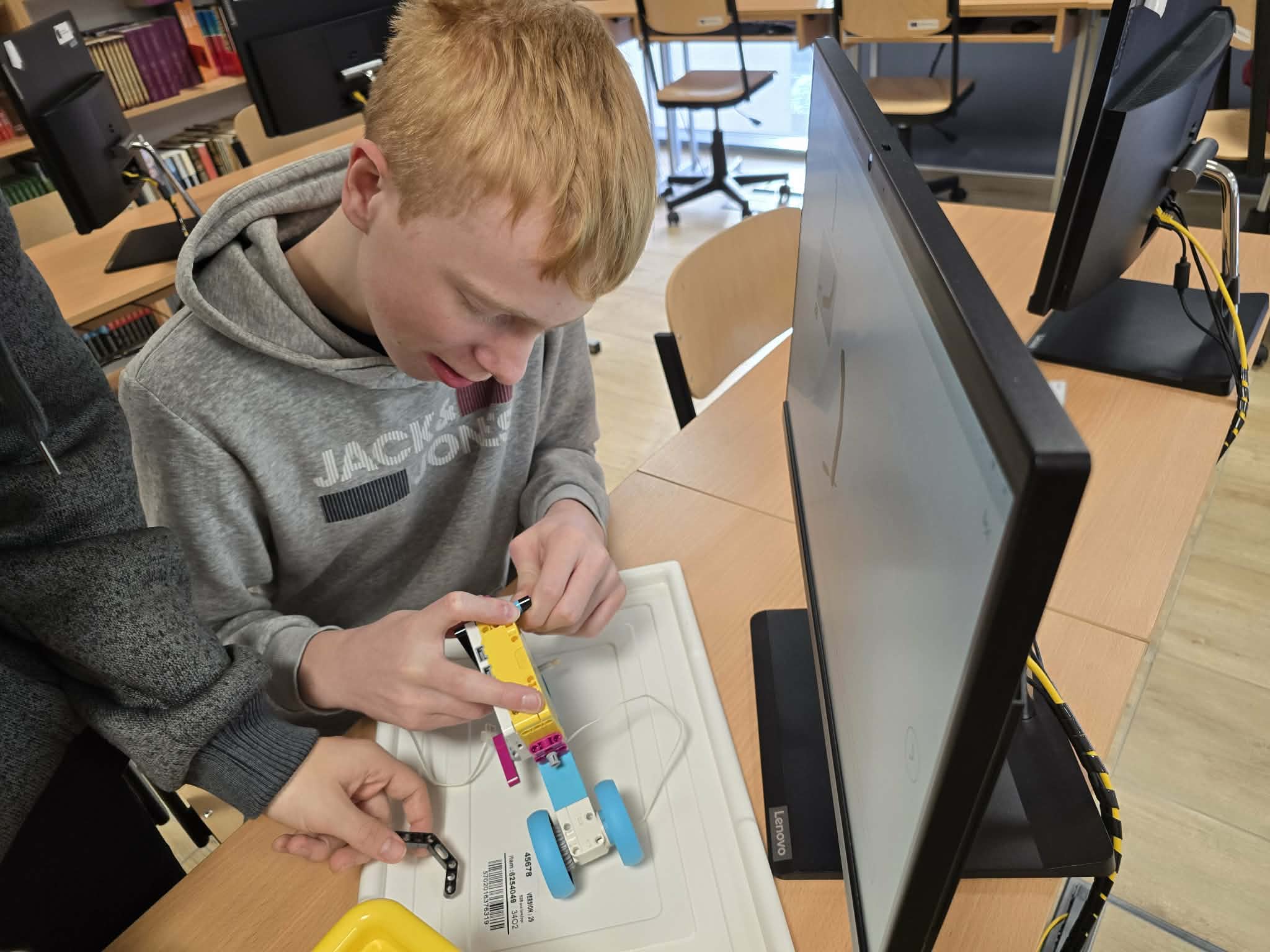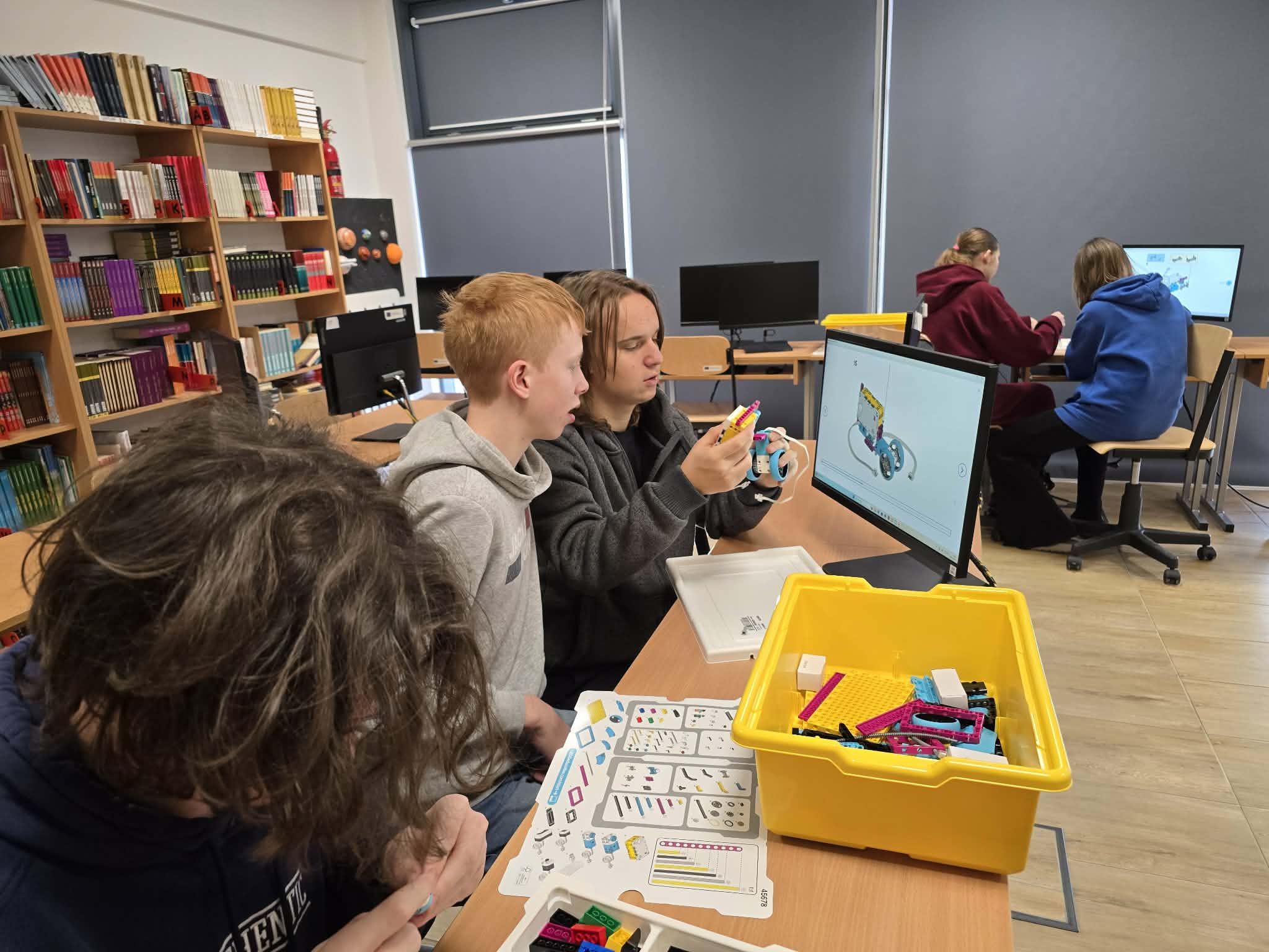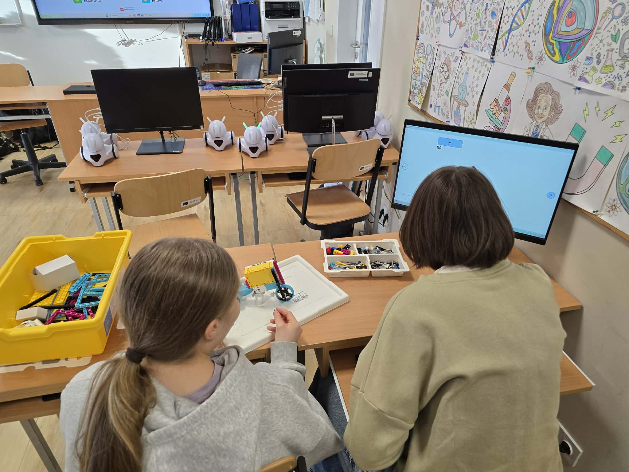 Następnie przyszła pora na praktykę! Uczniowie podzieleni na grupy przystąpili do budowy modeli rowerów elektrycznych z klocków Lego. Modele te miały za zadanie obrazować omawiane zjawiska. Po zakończeniu budowy, przyszła pora na programowanie. Korzystając z intuicyjnego środowiska Scratch, uczniowie zaprogramowali działanie swoich rowerów, symulując zmianę zużycia energii przez silnik w zależności od wzniesienia. W ten sposób model roweru elektrycznego miał reagować na "wzniesienie" poprzez zwiększenie mocy silnika, aby utrzymać stałą prędkość.