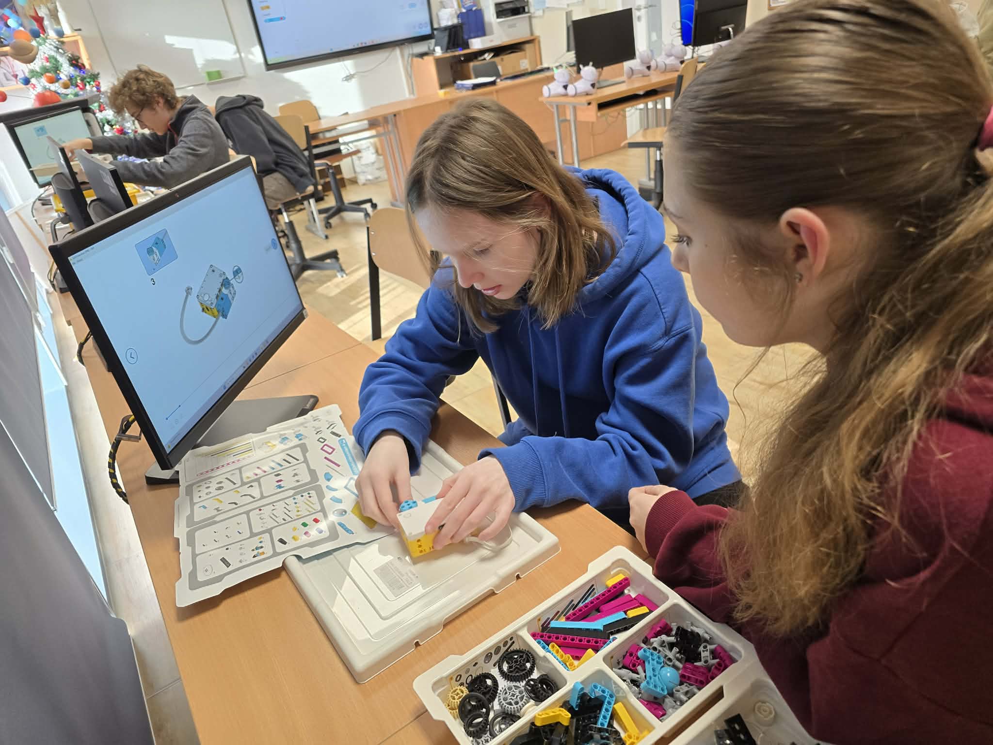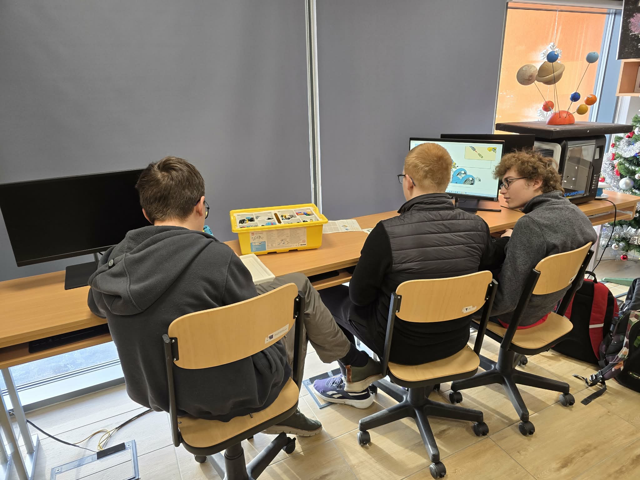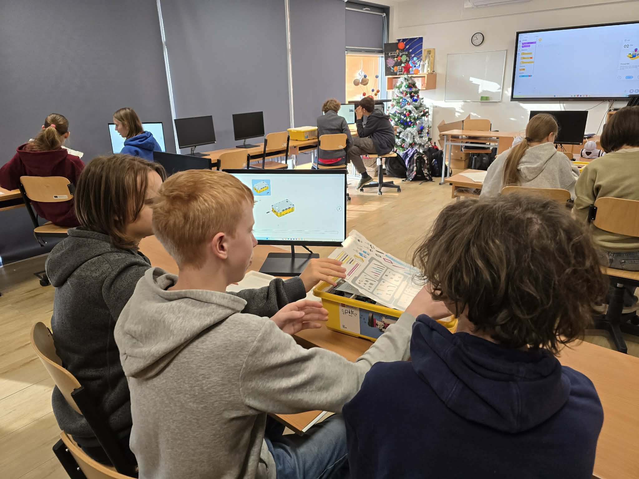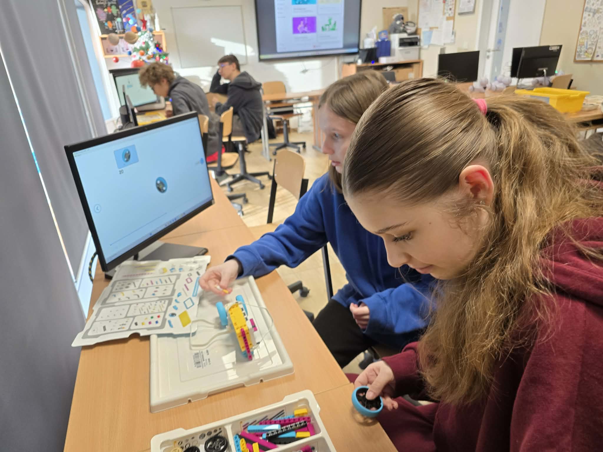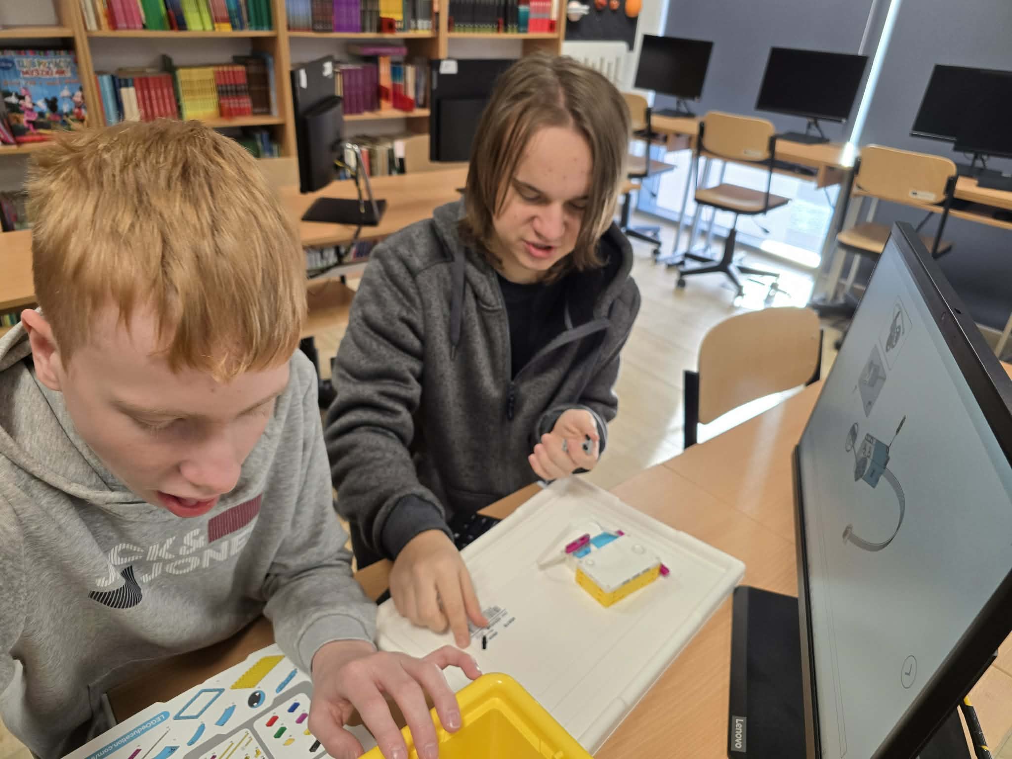 Następnie przyszła pora na praktykę! Uczniowie podzieleni na grupy przystąpili do budowy modeli rowerów elektrycznych z klocków Lego. Modele te miały za zadanie obrazować omawiane zjawiska. Po zakończeniu budowy, przyszła pora na programowanie. Korzystając z intuicyjnego środowiska Scratch, uczniowie zaprogramowali działanie swoich rowerów, symulując zmianę zużycia energii przez silnik w zależności od wzniesienia. W ten sposób model roweru elektrycznego miał reagować na "wzniesienie" poprzez zwiększenie mocy silnika, aby utrzymać stałą prędkość.