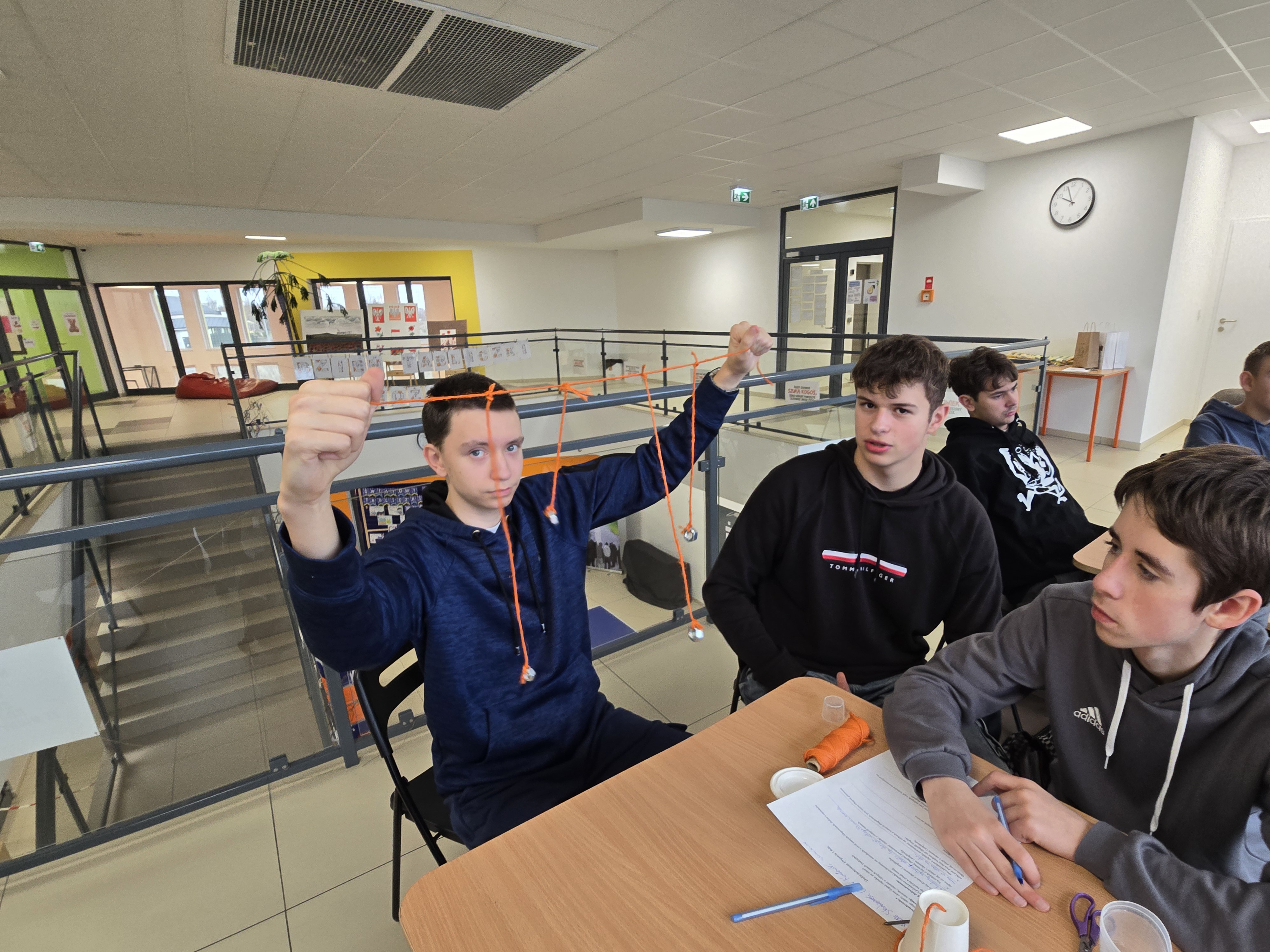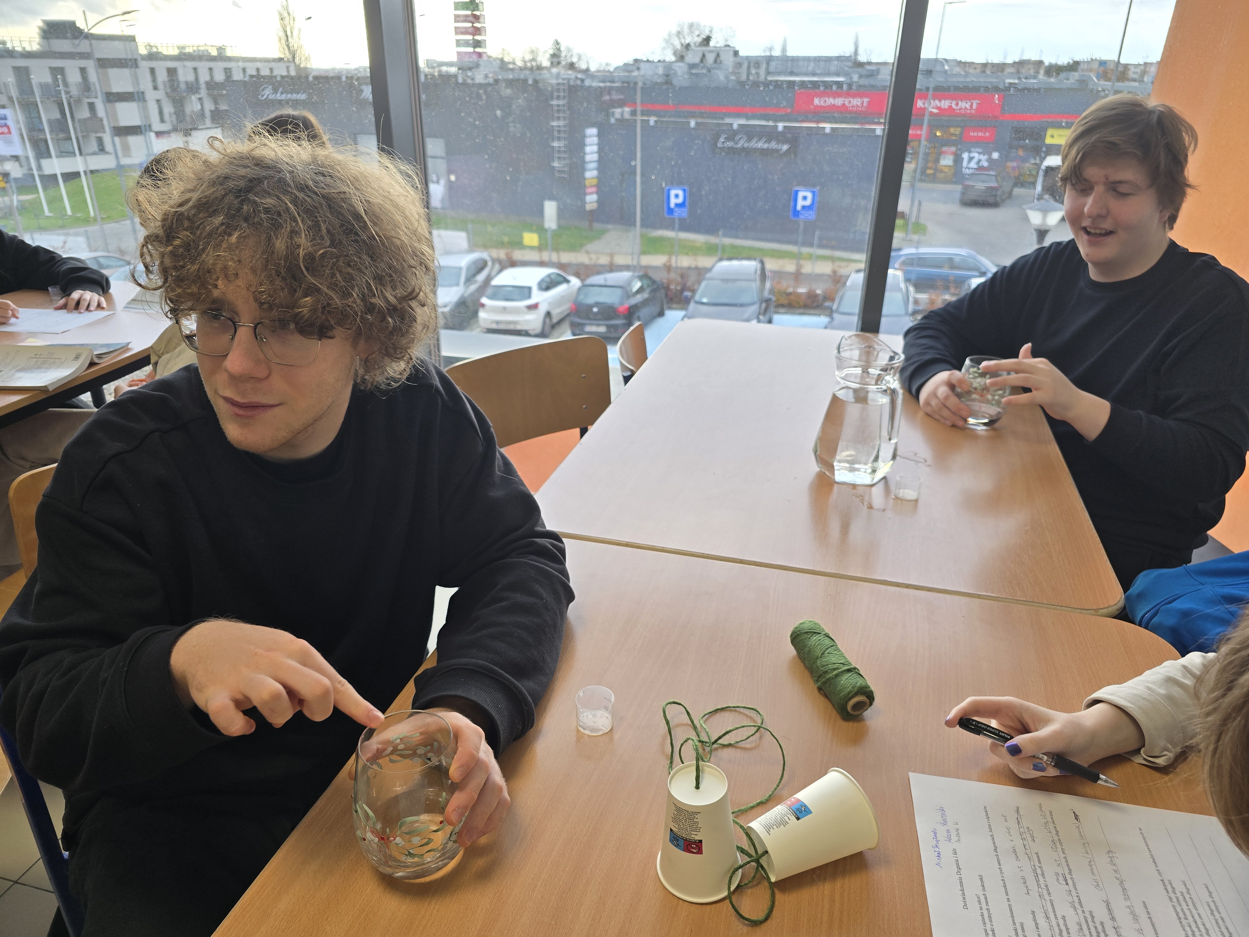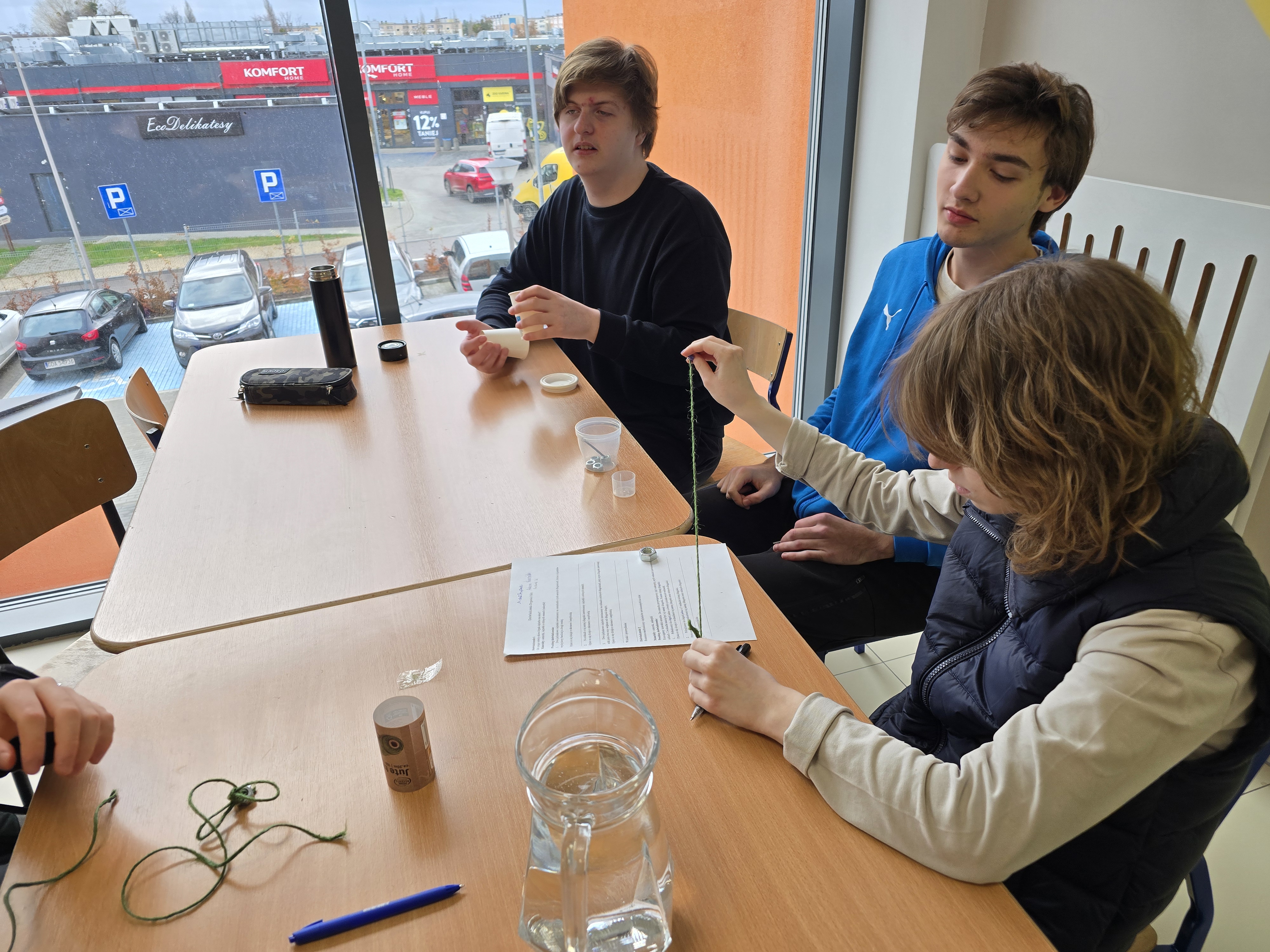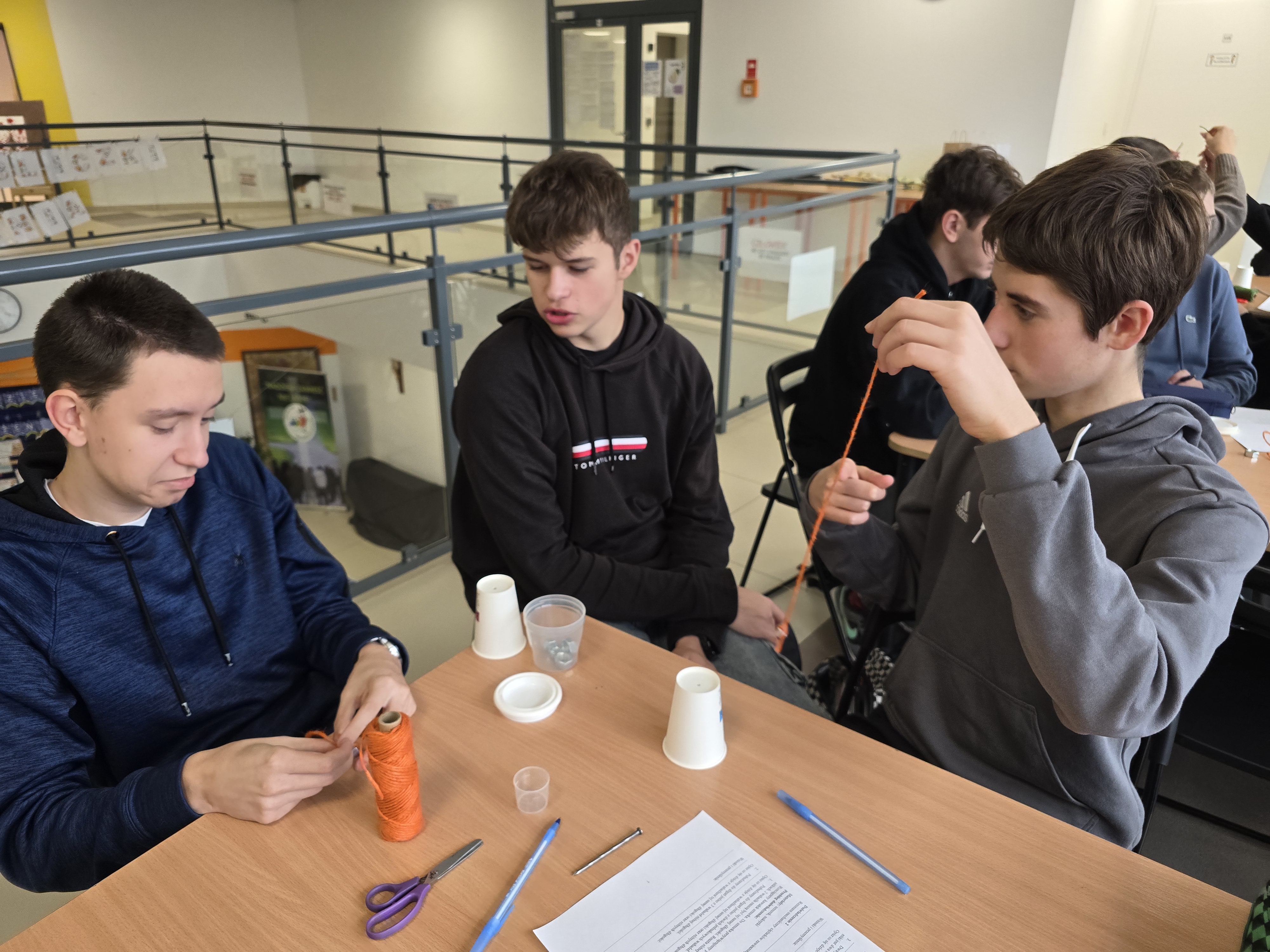 Trzecie doświadczenie przeniosło uczniów w świat dźwięku i jego propagacji. Uczniowie przywiązywali sznurek do dna dwóch kubków. Napinając sznurek, tworzyli prosty "telefon". Jedna osoba mówiła do jednego kubka, a druga, przykładając ucho do drugiego kubka, odbierała dźwięk. To proste, ale pouczające doświadczenie ilustrowało, jak dźwięk może być przenoszony przez ośrodek materialny, w tym przypadku przez naprężony sznurek. Uczniowie mogli usłyszeć, jak głos podróżuje przez sznurek, a także zauważyć, że jakość dźwięku może zależeć od napięcia sznurka.