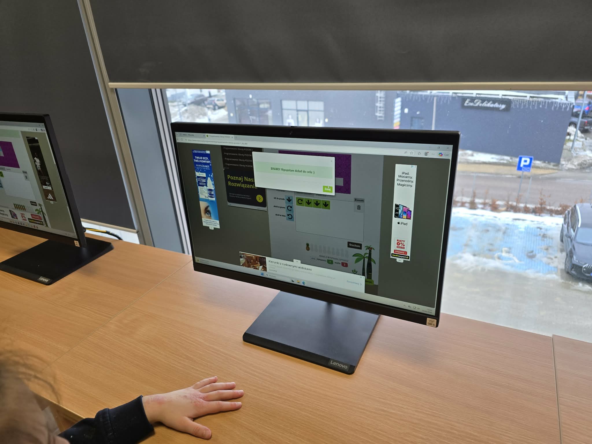 Tym razem uczniowie mieli za zadanie zaprogramować ruch hipopotama, tak by dotarł on do upragnionego jeziora. Zadanie, choć na pozór proste, wymagało od nich nie tylko znajomości podstaw programowania, ale także logicznego myślenia i umiejętności rozwiązywania problemów.