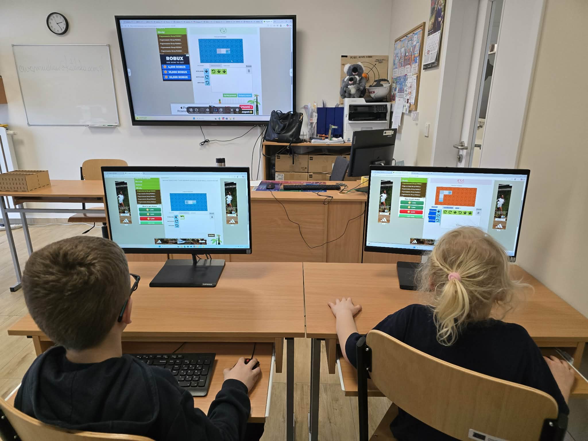 Dzisiejsze zajęcia z robotyki w klasie 1B były prawdziwym wyzwaniem! Po raz kolejny młodzi programiści udowodnili, że nie boją się trudnych zadań, a ich kreatywność i zapał do nauki są niesamowite.