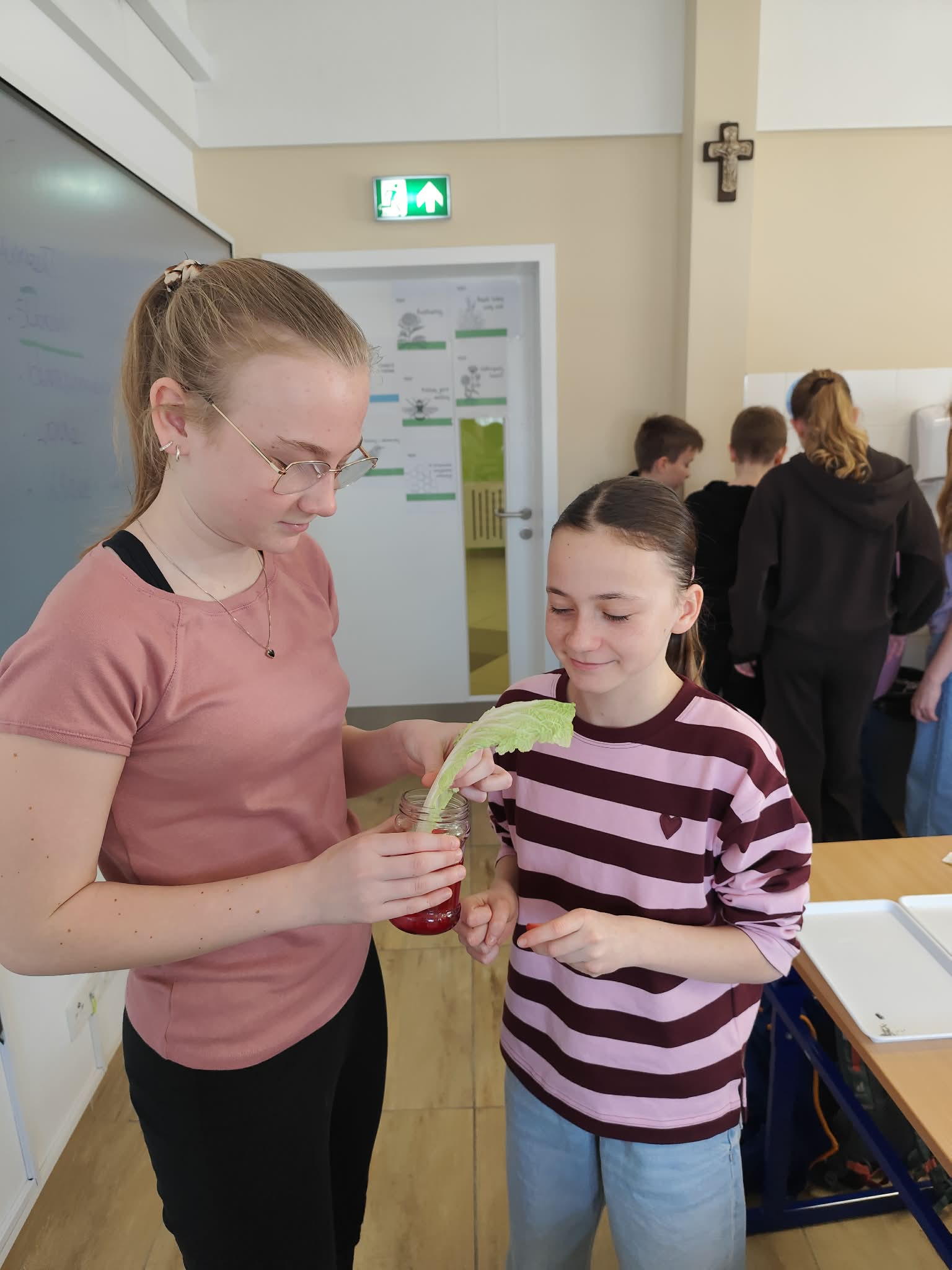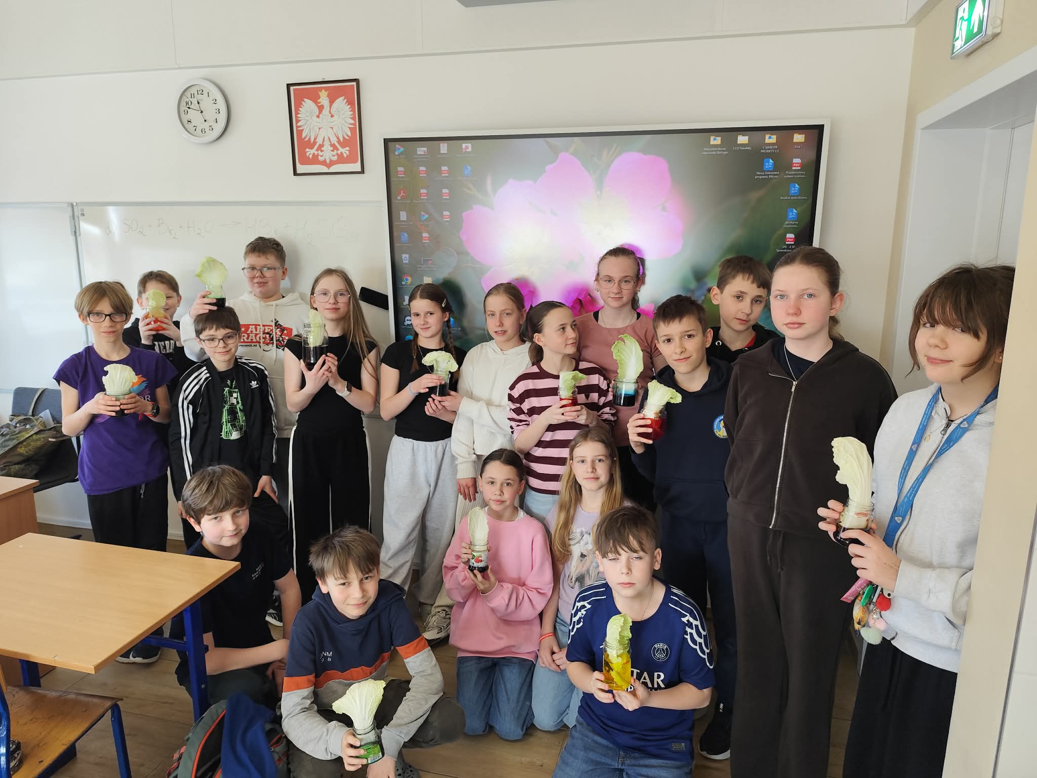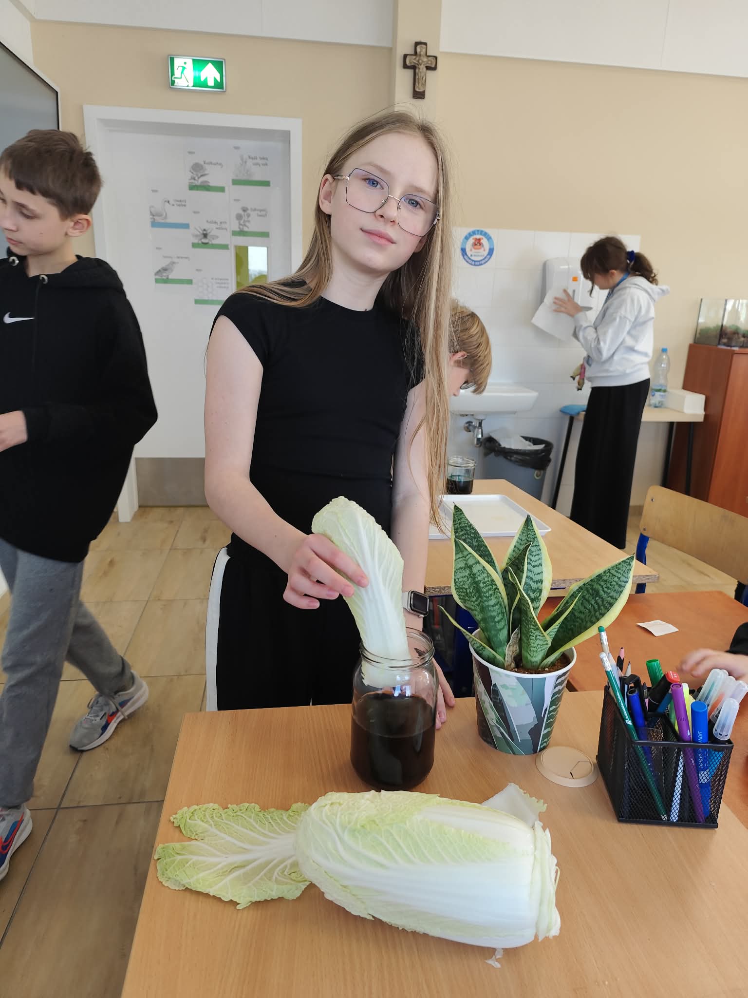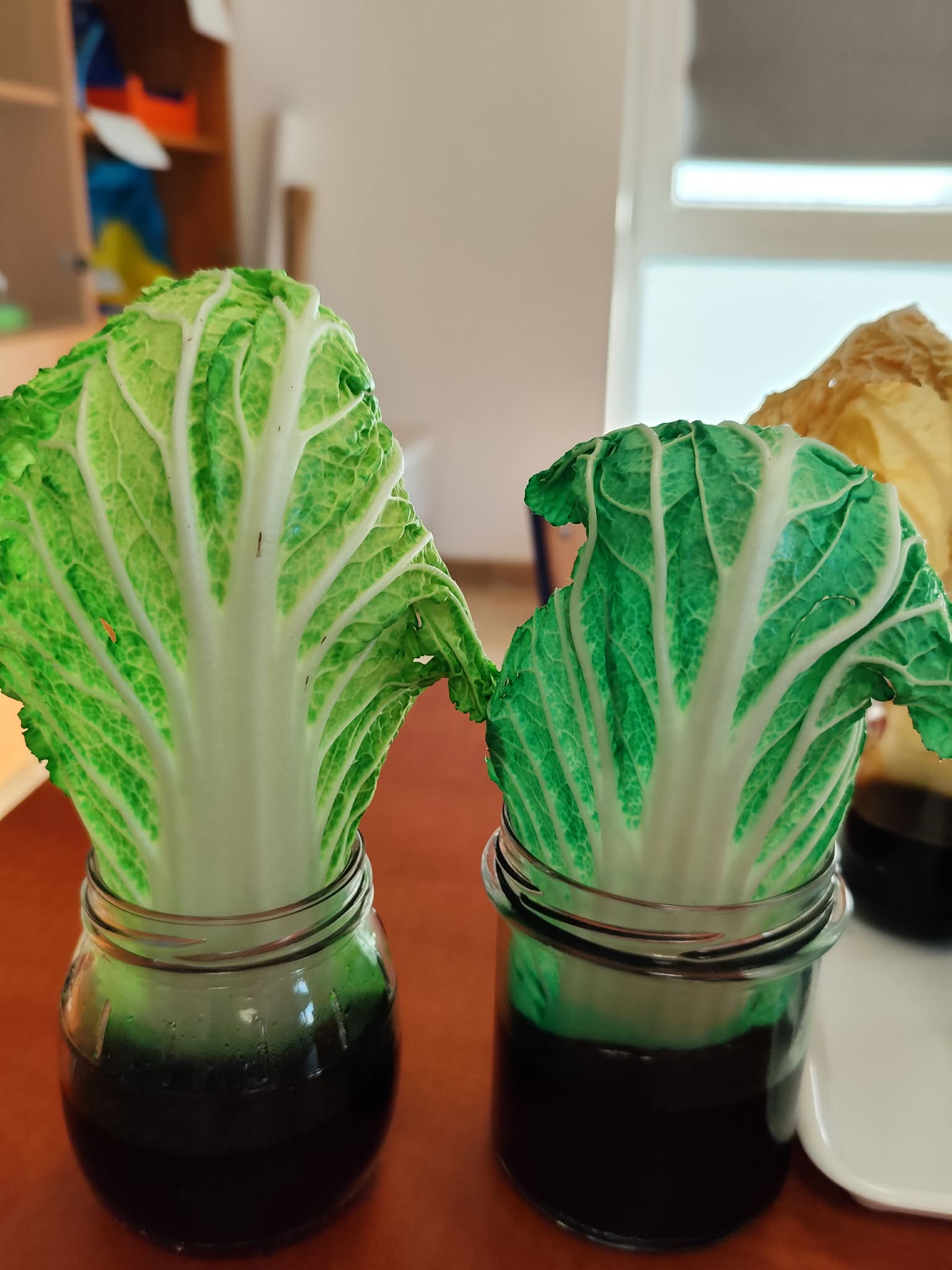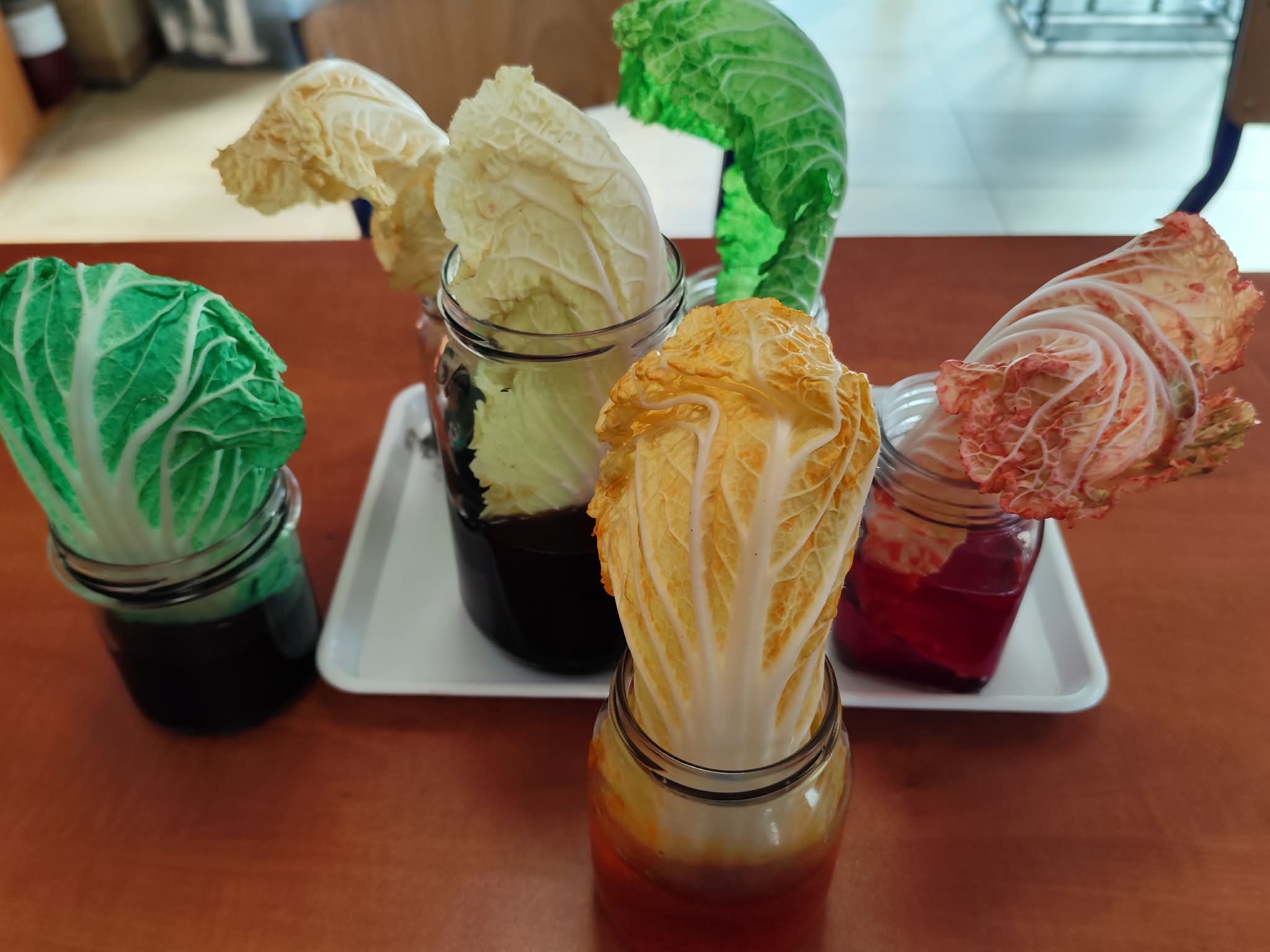 Wyobraźcie sobie kapustę pekińską jako miasto, a tkanki przewodzące jako sieć dróg i rurociągów, które transportują wszystko, co potrzebne do życia. Uczniowie postanowili "zabarwić" te autostrady, aby móc je lepiej zobaczyć i zrozumieć ich działanie. Doświadczenie było proste, ale bardzo pouczające. Kapusta pekińska, zanurzona w wodzie z barwnikiem spożywczym, przez kilka godzin, a nawet dni, chłonęła kolorową ciecz.