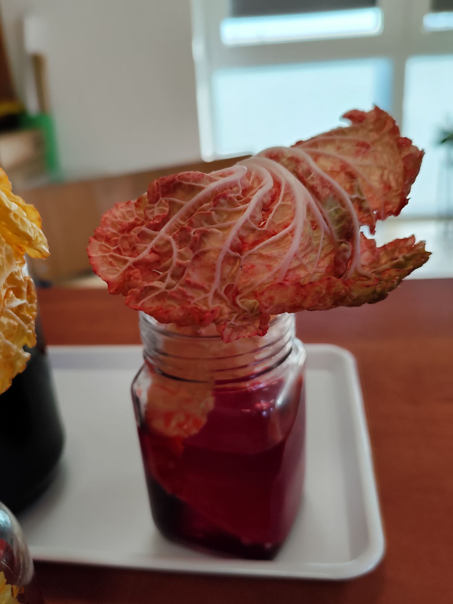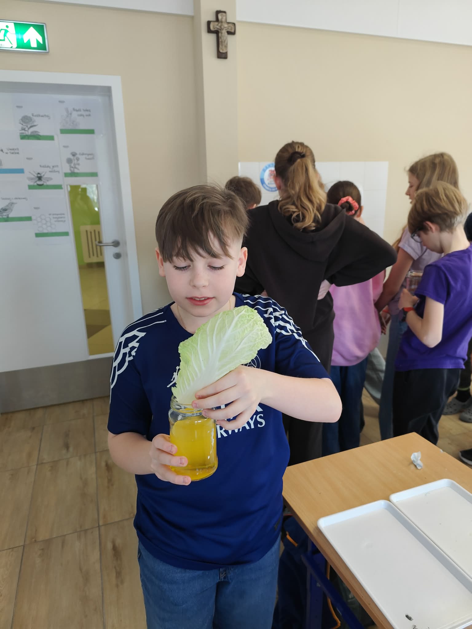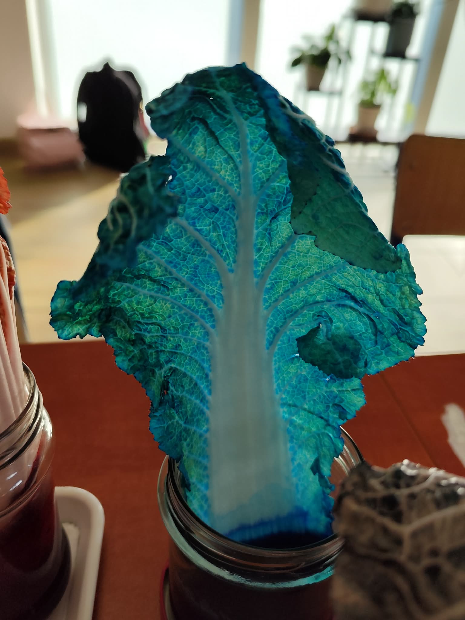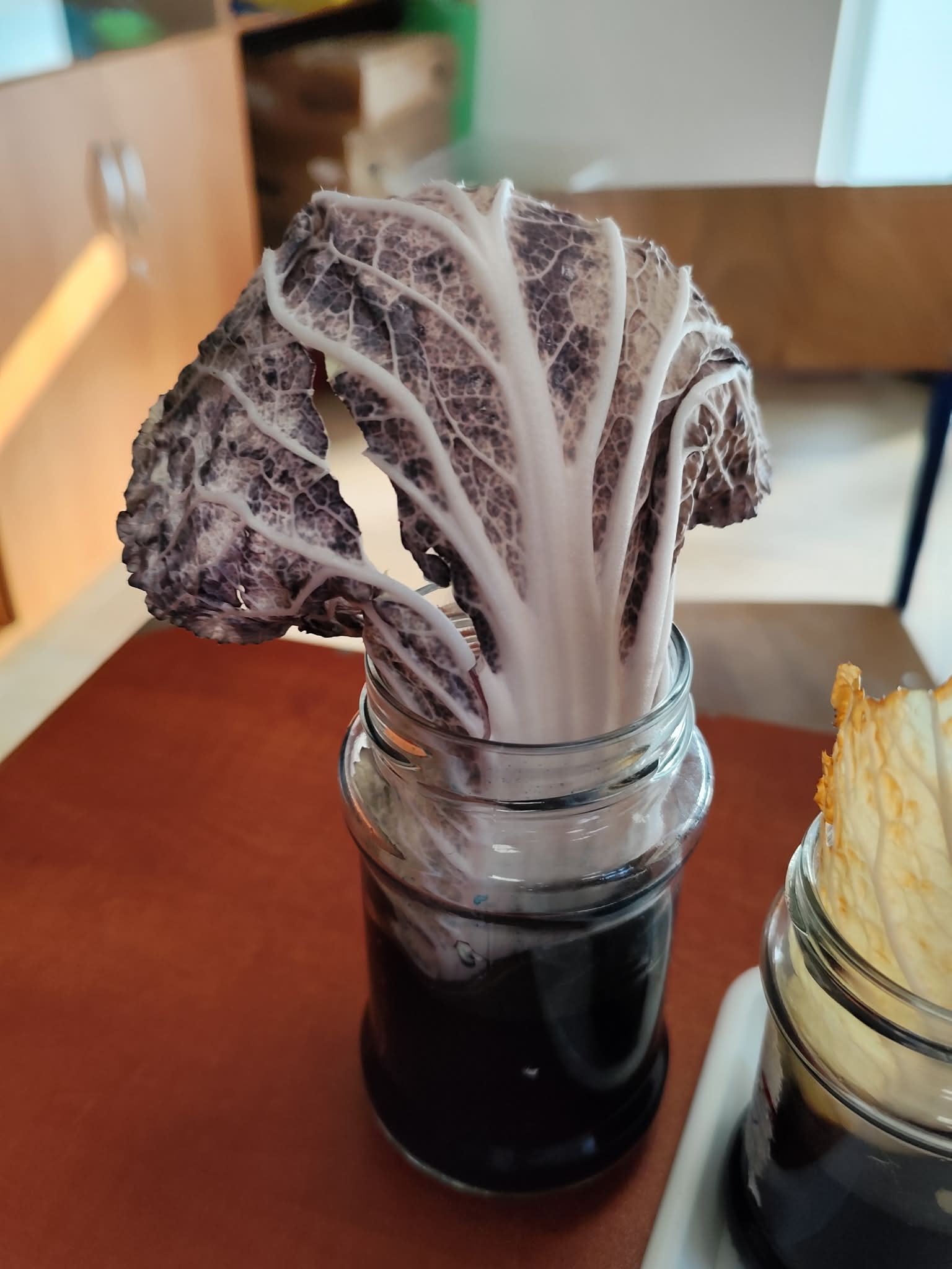 Wyobraźcie sobie kapustę pekińską jako miasto, a tkanki przewodzące jako sieć dróg i rurociągów, które transportują wszystko, co potrzebne do życia. Uczniowie postanowili "zabarwić" te autostrady, aby móc je lepiej zobaczyć i zrozumieć ich działanie. Doświadczenie było proste, ale bardzo pouczające. Kapusta pekińska, zanurzona w wodzie z barwnikiem spożywczym, przez kilka godzin, a nawet dni, chłonęła kolorową ciecz.