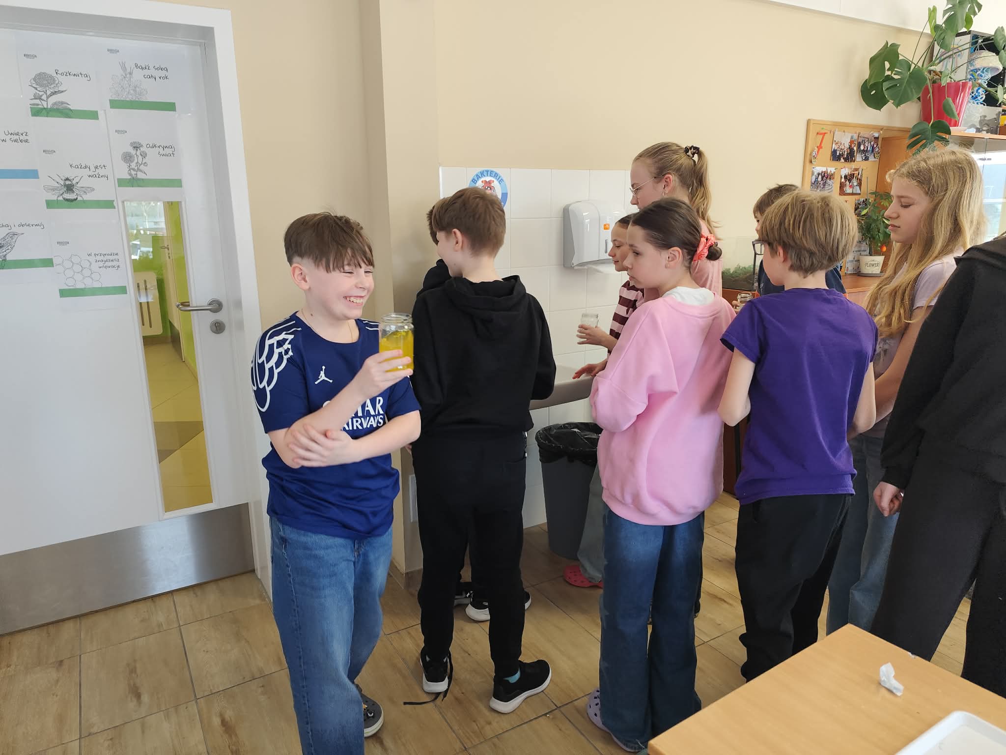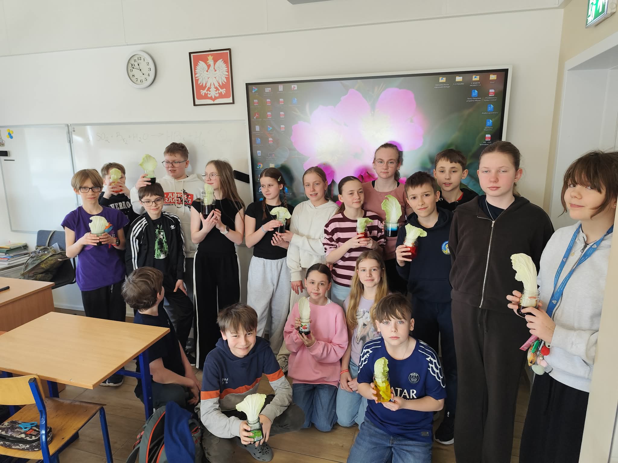 Klasa piąta na lekcjach biologii zamieniła się w małych odkrywców, zgłębiając fascynujący świat roślinnych tkanek. Tematem przewodnim były tkanki przewodzące, czyli nic innego jak niezwykłe "autostrady" wewnątrz roślin, którymi podróżują woda i składniki odżywcze. Aby zrozumieć, jak to działa, uczniowie przeprowadzili fascynujące doświadczenie z kapustą pekińską i barwnikiem.