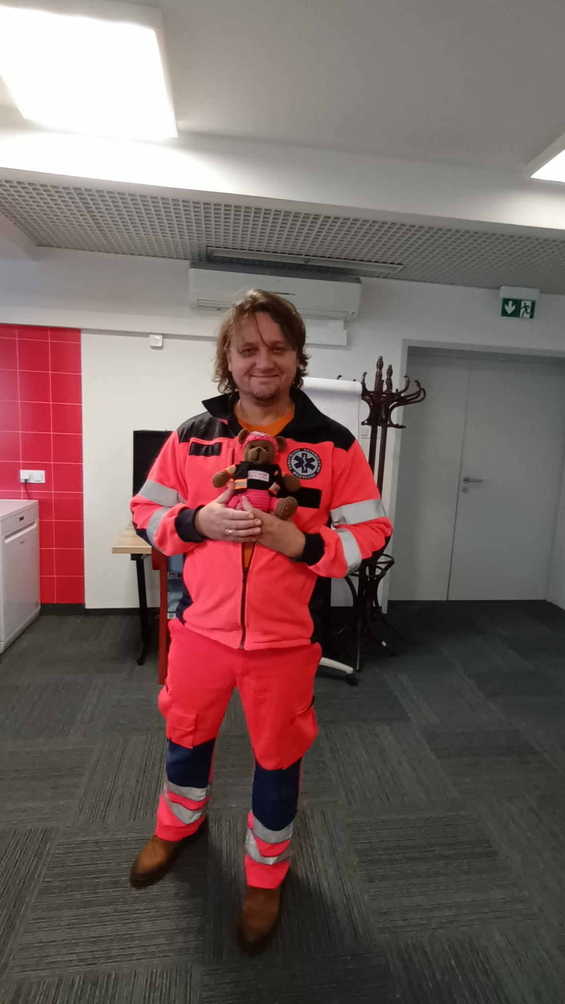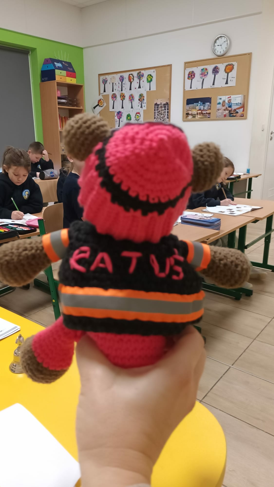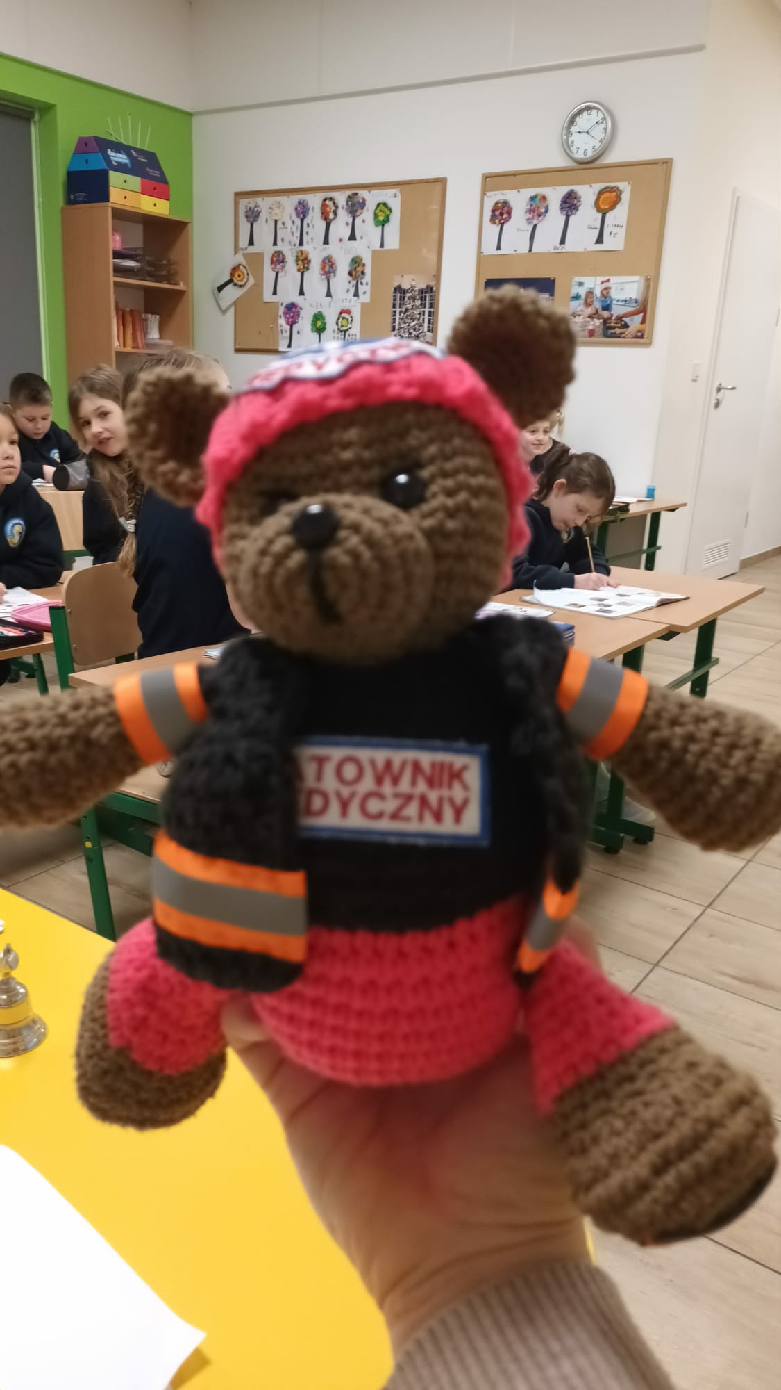 Na zakończenie wizyty, klasa 1b przekazała ratownikom podziękowania oraz wyjątkowy prezent - uroczego misia Ratusia, którego własnoręcznie wykonała mama ucznia, Aleksandra. Misio z pewnością umili pracę ratowników i będzie im przypominał o wdzięczności małych gości.
