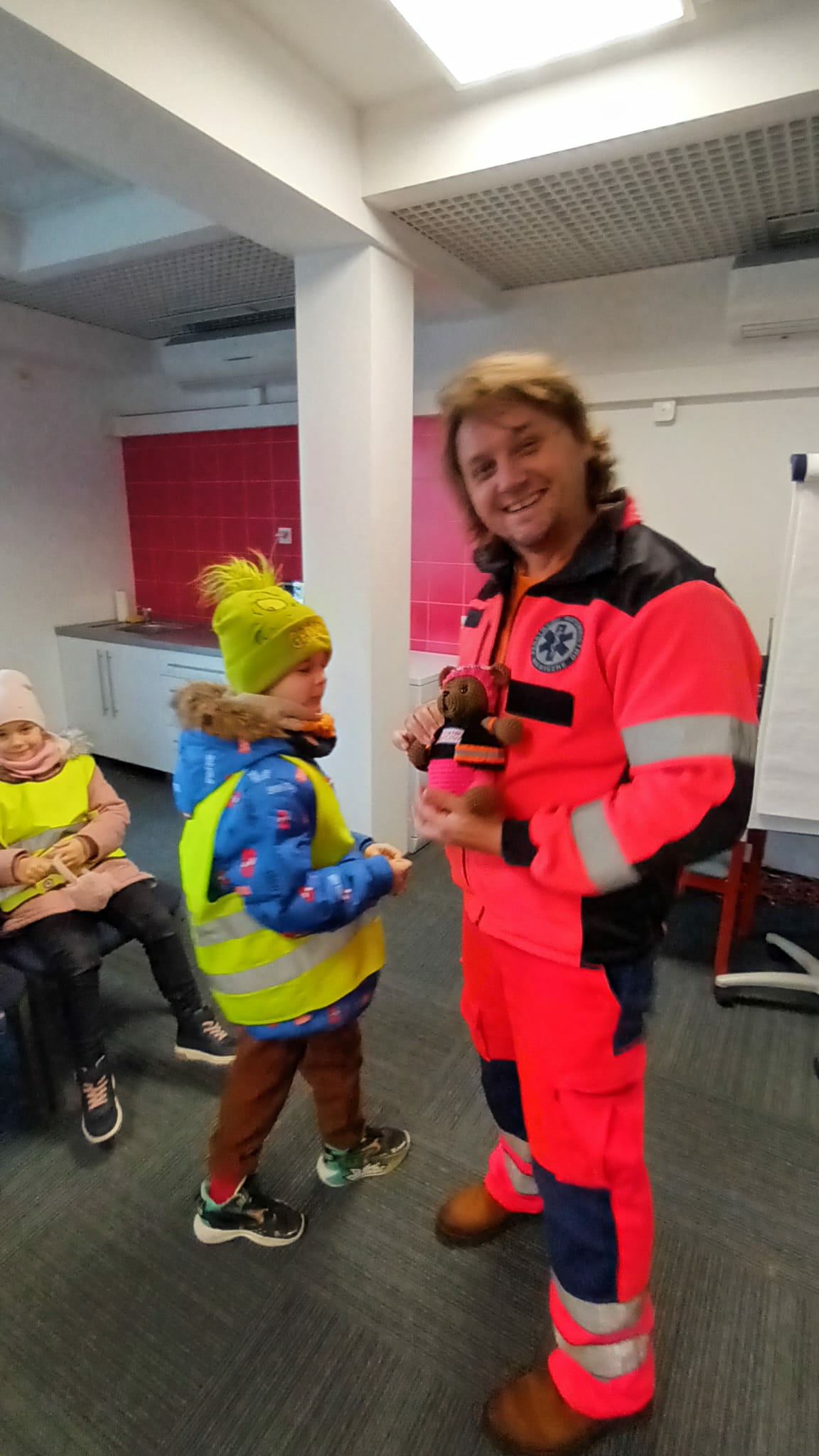 Najbardziej ekscytującym momentem było zadawanie pytań ratownikowi medycznemu. Dzieci z ciekawością dopytywały o szczegóły pracy ratowników, ich codzienne wyzwania i sytuacje, z którymi się spotykają. Ratownik z cierpliwością i pasją odpowiadał na wszystkie pytania, dzieląc się swoim doświadczeniem i wiedzą.