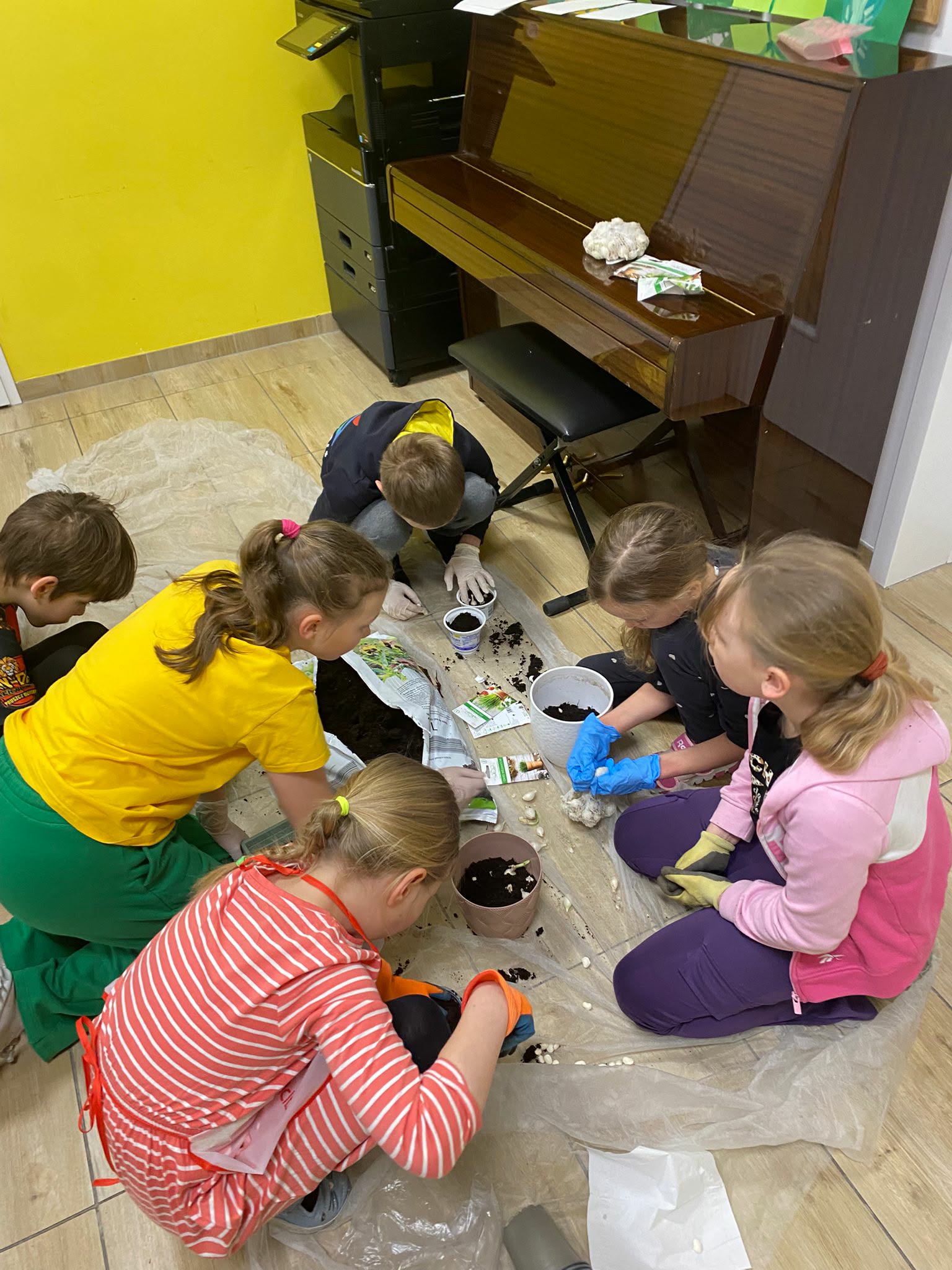 Na początku uczniowie wspólnie zastanawiali się, co chcieliby uprawiać. Wybór padł na rośliny łatwe w pielęgnacji, takie jak rzeżucha, szczypiorek czy zioła. Następnie dzieci przygotowały doniczki, ziemię oraz nasiona. Każdy miał swoje zadanie, dzięki czemu praca przebiegała sprawnie i w miłej atmosferze.