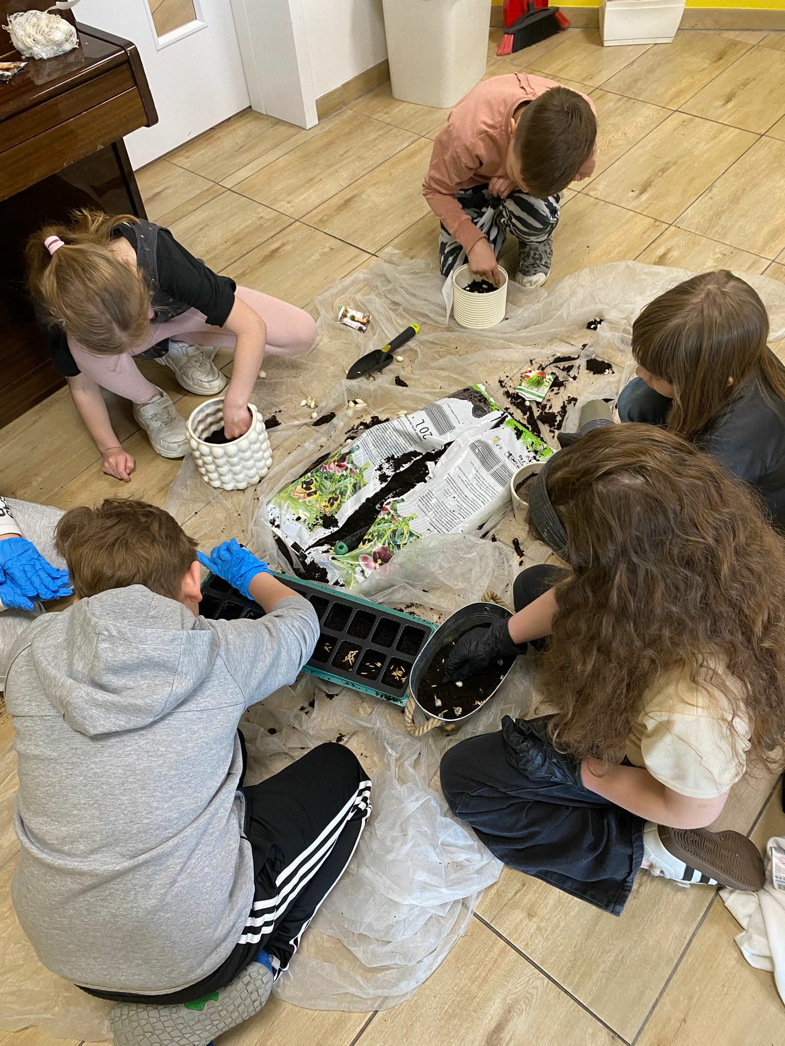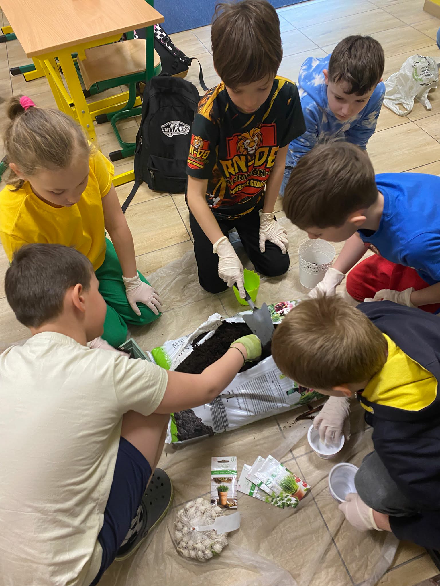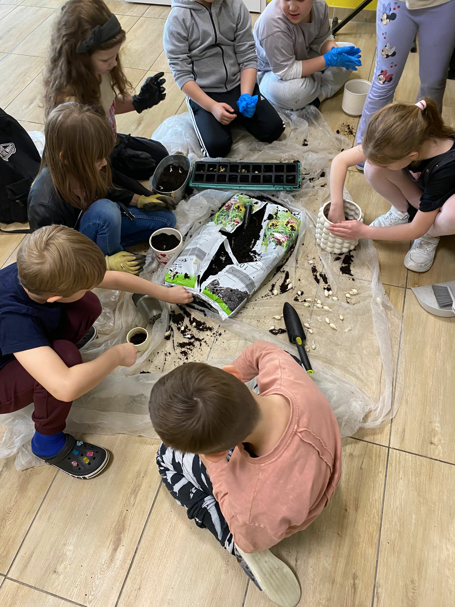 Najwięcej radości sprawiło oczywiście sadzenie roślin. Uczniowie z zaangażowaniem wsypywali ziemię, umieszczali nasiona i podlewali swoje uprawy. Dla wielu dzieci było to pierwsze takie doświadczenie, dlatego towarzyszyły mu duże emocje i ciekawość, co wydarzy się dalej.