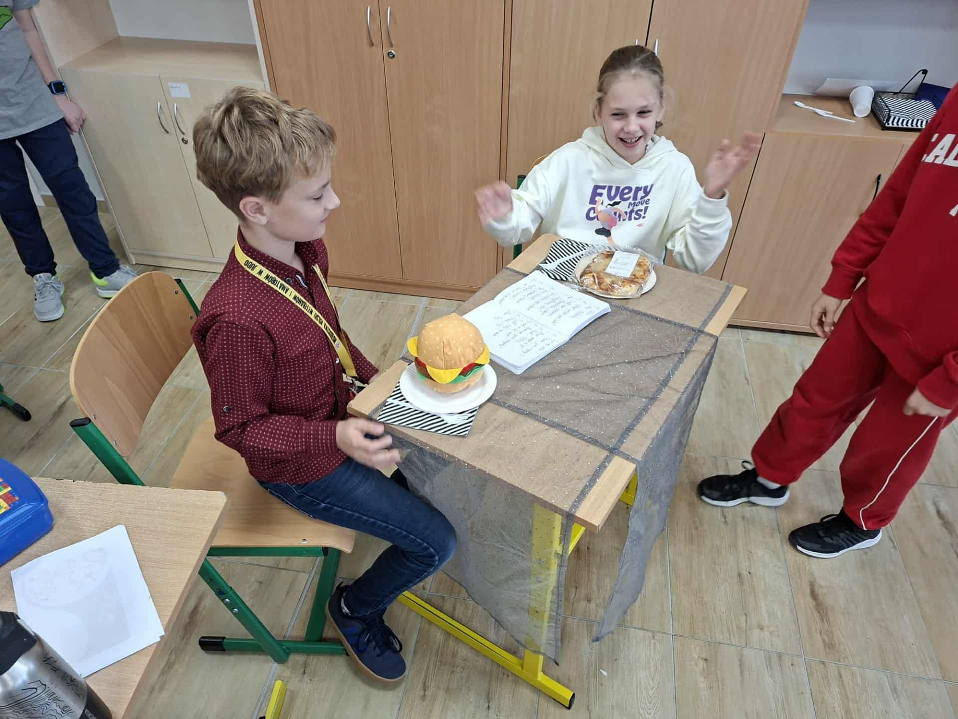 W minionym tygodniu uczniowie klasy 4 uczestniczyli w specjalnych zajęciach z języka angielskiego, podczas których mieli okazję wcielić się w role klientów i kelnerów w restauracji. To interaktywne ćwiczenie miało na celu nie tylko rozwijanie umiejętności komunikacyjnych, ale także praktyczne zastosowanie poznanych zwrotów i słownictwa.