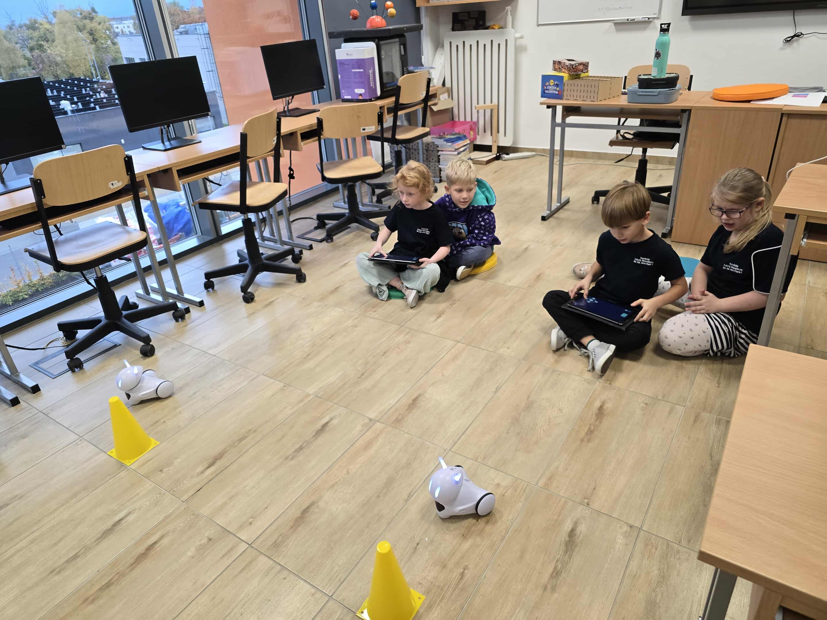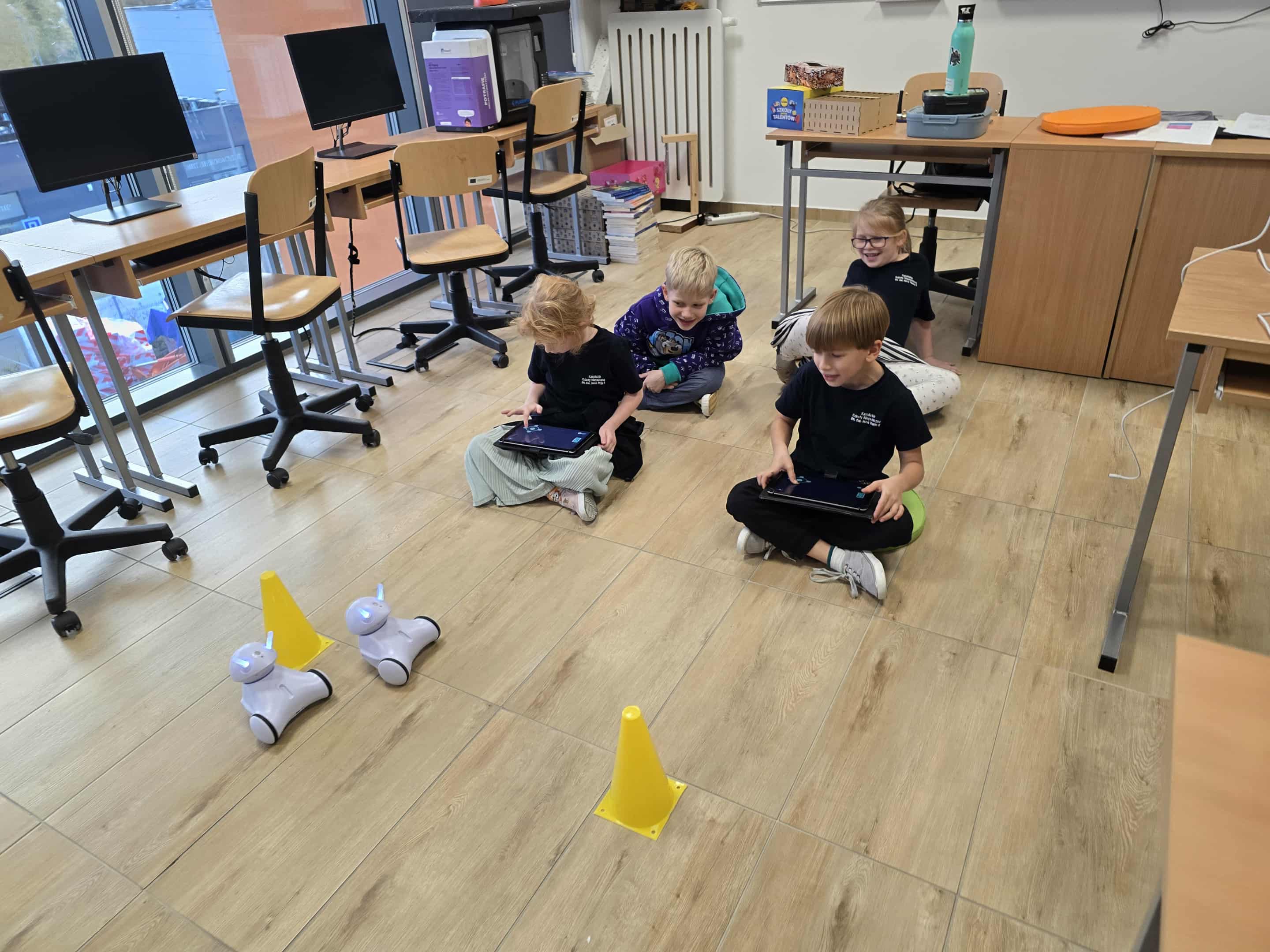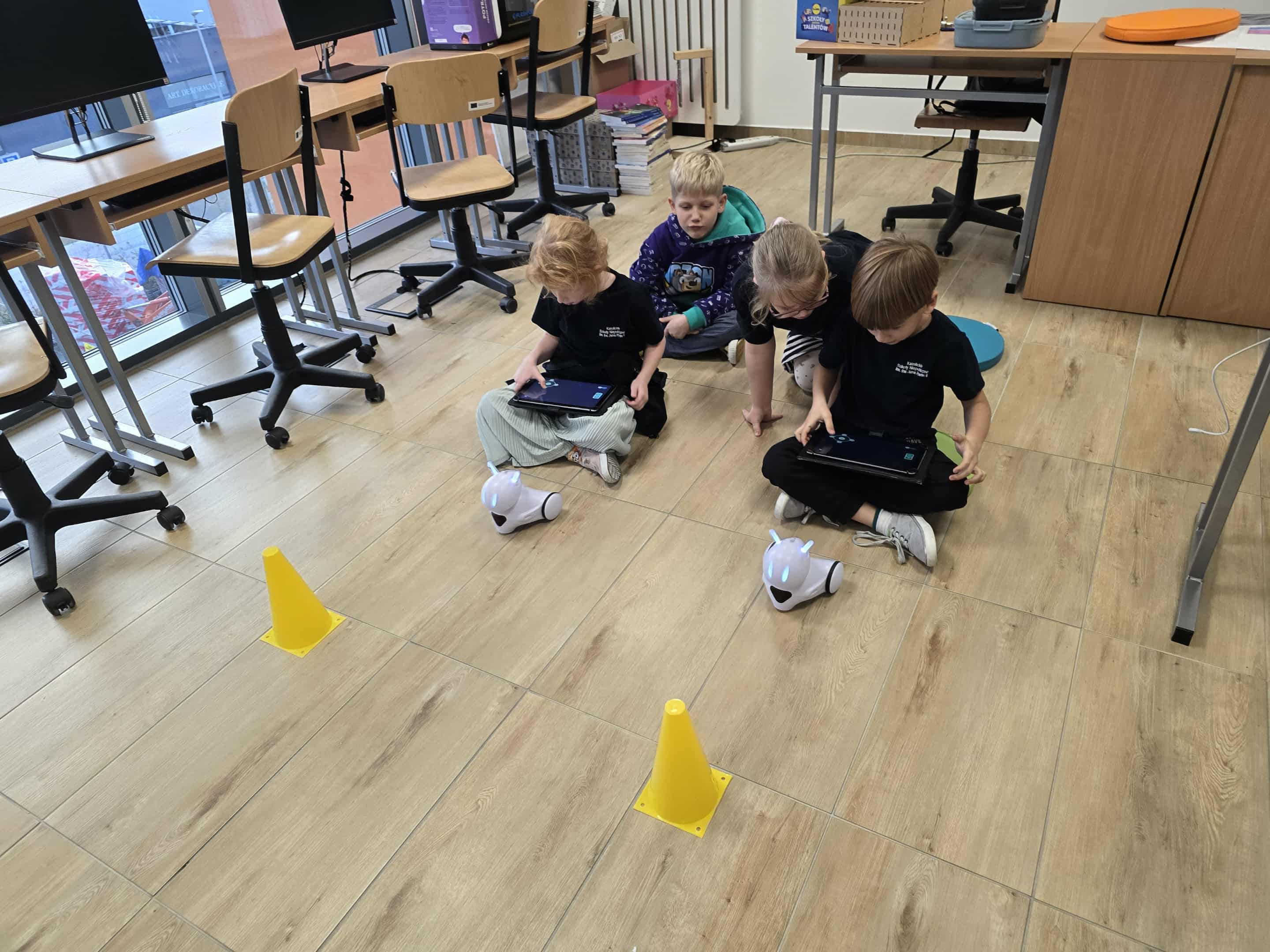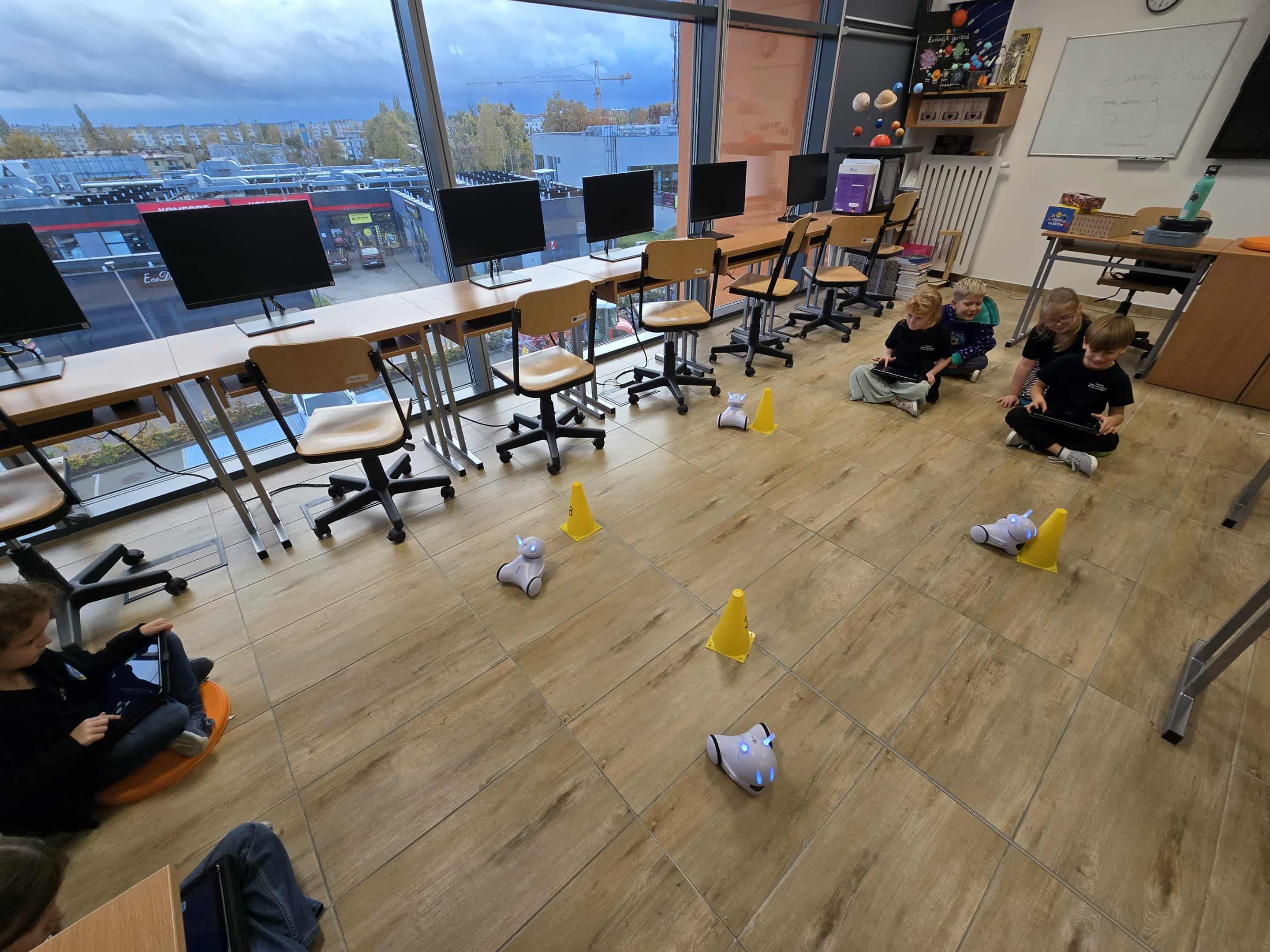 Dzisiaj uczniowie na dodatkowym kółku z robotyki w klasie 1A mieli okazję pogłębić swoją wiedzę i umiejętności, programując robota Photon. To niezwykle ciekawa i rozwijająca aktywność, która pozwala młodym entuzjastom technologii nie tylko na poznanie podstaw programowania, ale także na praktyczne zastosowanie tej wiedzy w kontekście robotyki. Podczas zajęć uczniowie skupili się na nauce rozpoznawania kierunków, takich jak lewo, prawo, przód i tył, co jest kluczową umiejętnością dla każdego robota poruszającego się autonomicznie. Uczniowie korzystali z oprogramowania, które pozwalały im na sterowanie robotem w odpowiednich kierunkach, a następnie testowali swoje pomysły na specjalnym torze, na którym robot musiał wykonać zadania, poruszając się zgodnie z instrukcjami. Programowanie robota w ten sposób uczy logicznego myślenia, precyzji oraz cierpliwości, a także rozwija umiejętność rozwiązywania problemów, gdy robot nie wykonywał poleceń zgodnie z oczekiwaniami. Podczas zajęć uczniowie mieli również okazję poznać podstawy działania czujników, które pomagają robotowi rozpoznawać otaczającą go przestrzeń i reagować na nią. Dzięki temu ich programy stawały się coraz bardziej zaawansowane i dostosowane do rzeczywistych potrzeb, takich jak omijanie przeszkód czy precyzyjne podążanie za wyznaczonym kursem. Zajęcia były nie tylko edukacyjne, ale także pełne zabawy i satysfakcji z osiągnięcia widocznych efektów. Uczestnicy chętnie dzielili się swoimi spostrzeżeniami i pomysłami, co tworzyło inspirującą atmosferę sprzyjającą nauce i wymianie doświadczeń. Takie zajęcia z robotyki są świetną okazją do rozbudzenia zainteresowania technologią i nauką wśród młodych ludzi, a jednocześnie rozwijają umiejętności, które mogą okazać się przydatne w przyszłości w coraz bardziej cyfrowym świecie. Dzięki praktycznemu podejściu i interakcji z robotem Photon uczniowie mogli zobaczyć, jak teoria przekłada się na praktykę, co dodatkowo motywuje ich do dalszej nauki i eksploracji dziedziny robotyki.