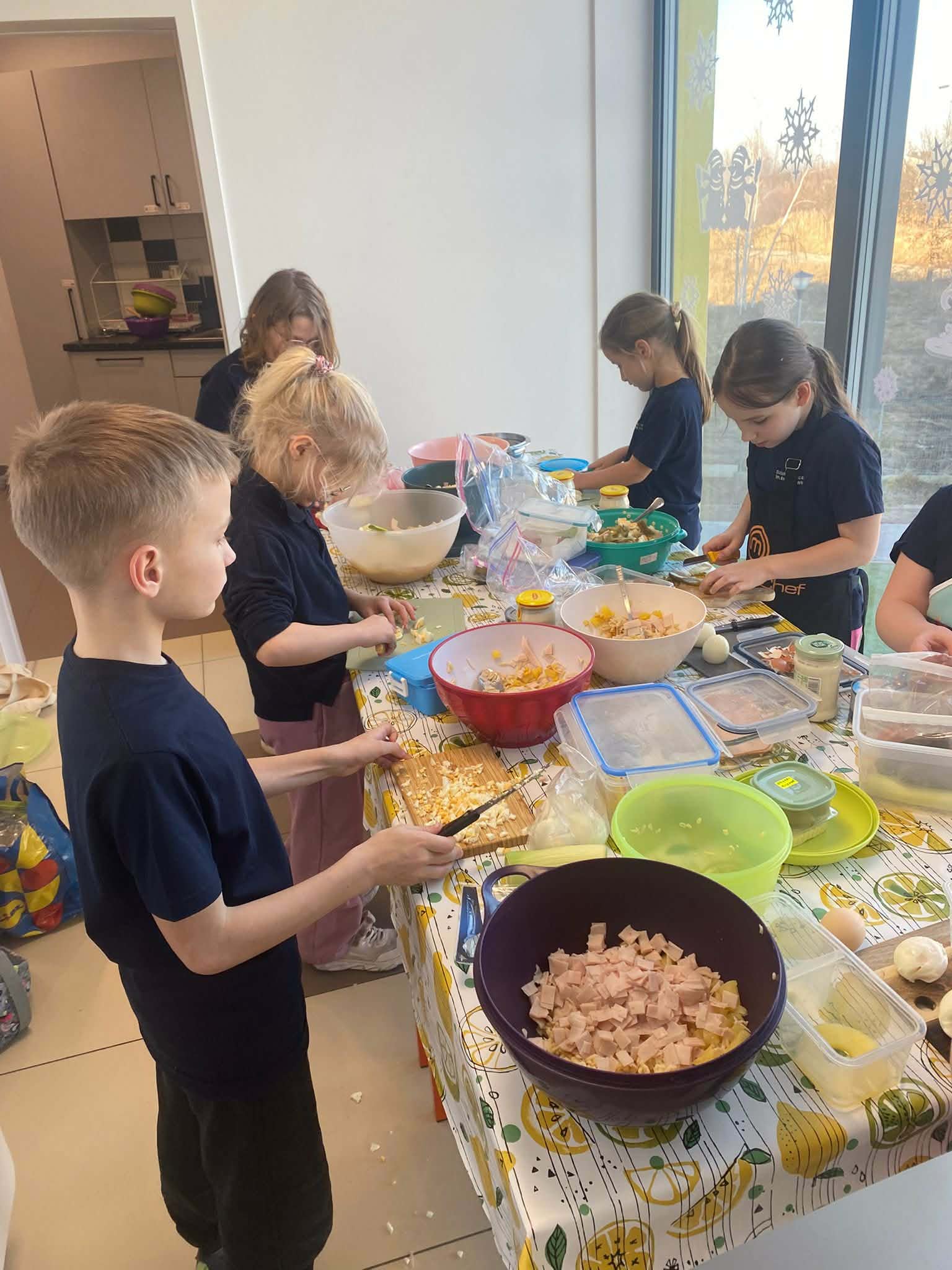 Dzieci dowiedziały się, jak bezpiecznie posługiwać się przyborami kuchennymi, jak łączyć smaki oraz jak ważna jest estetyka podania. Efekt? Kolorowe, apetyczne talerze i ogromna duma z własnoręcznie przygotowanej potrawy!