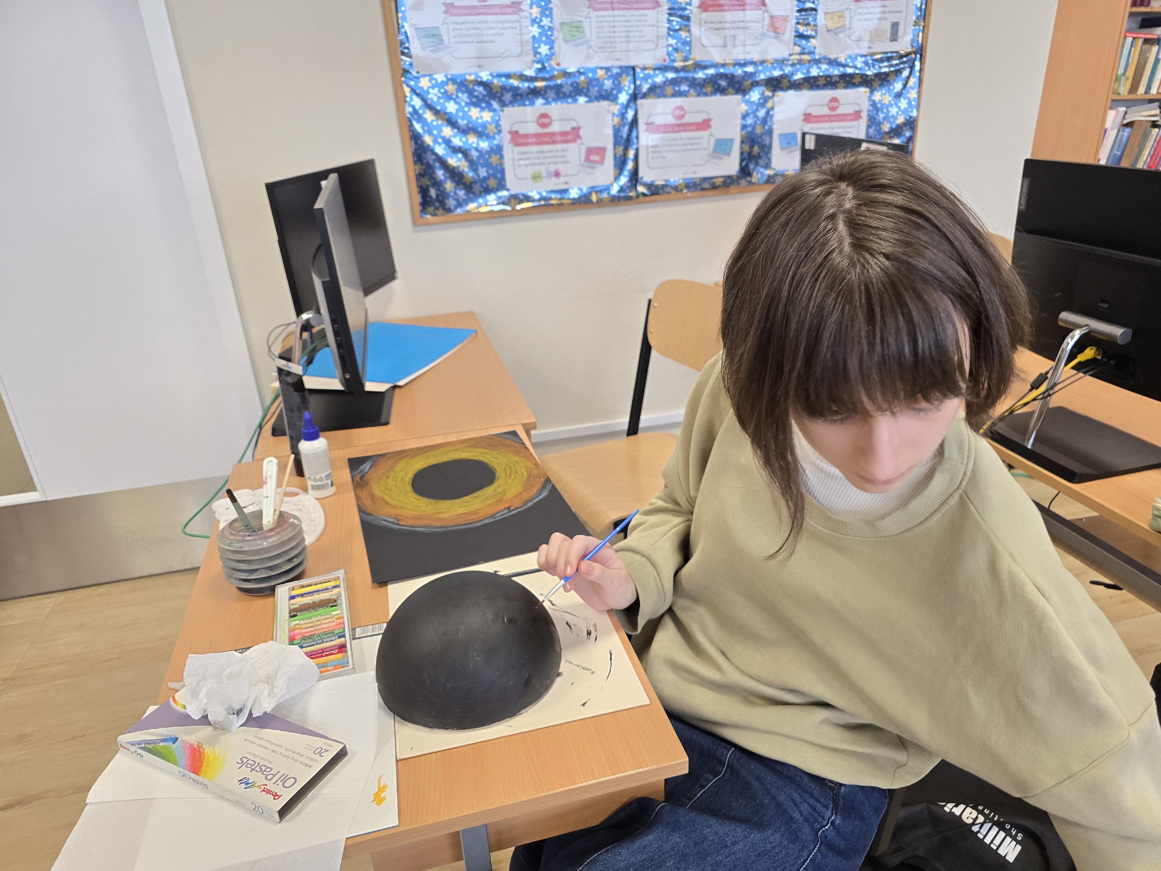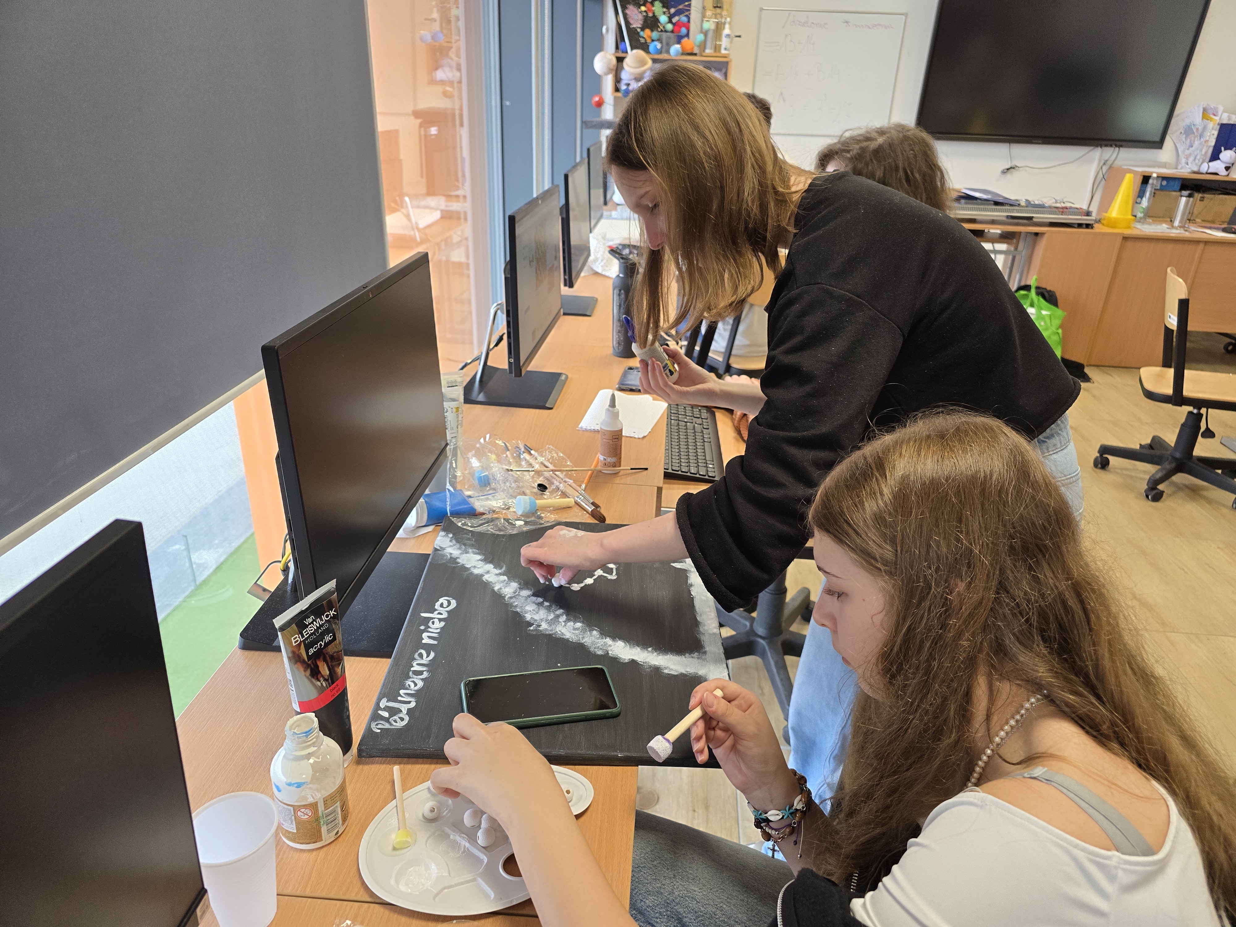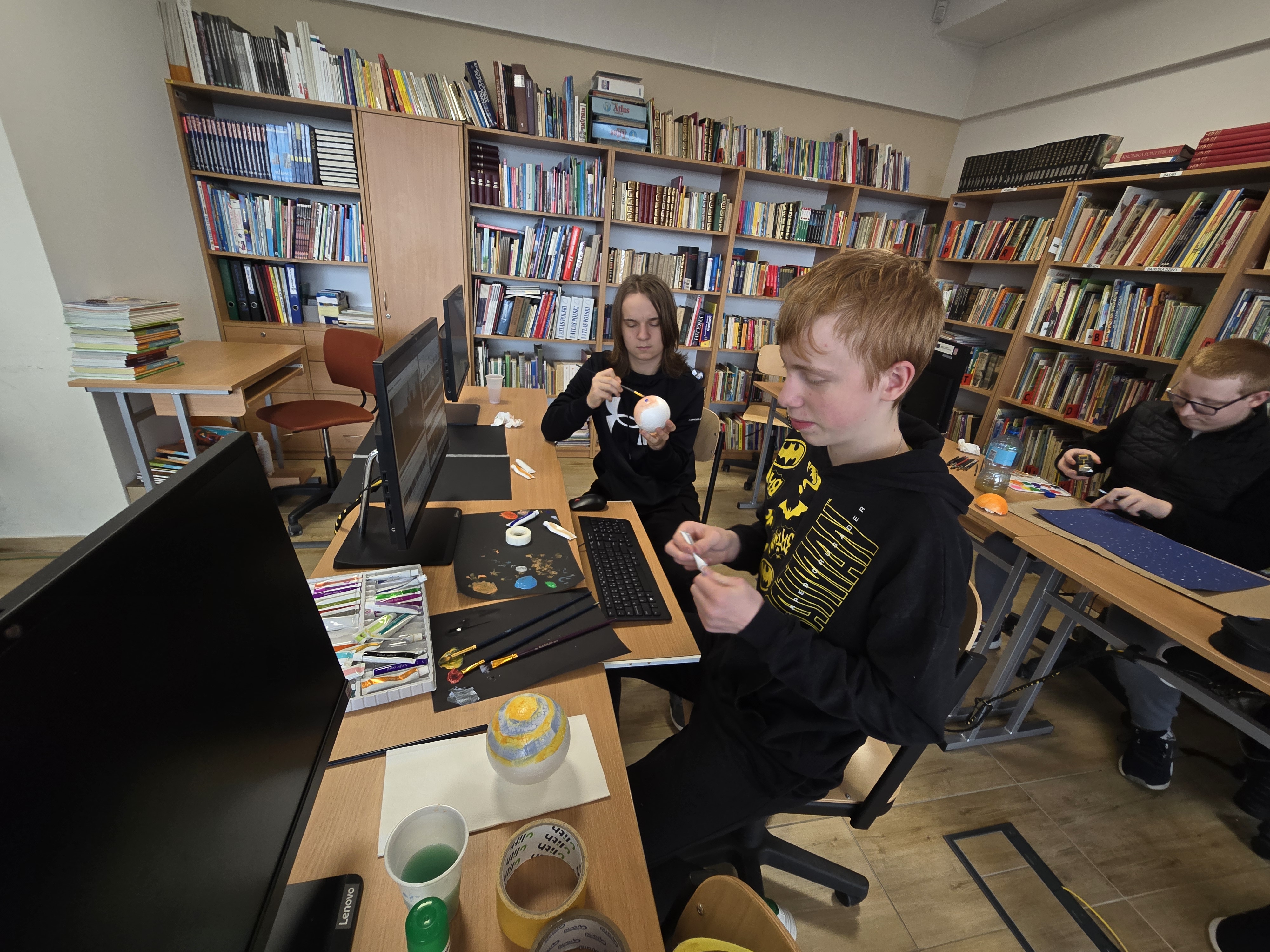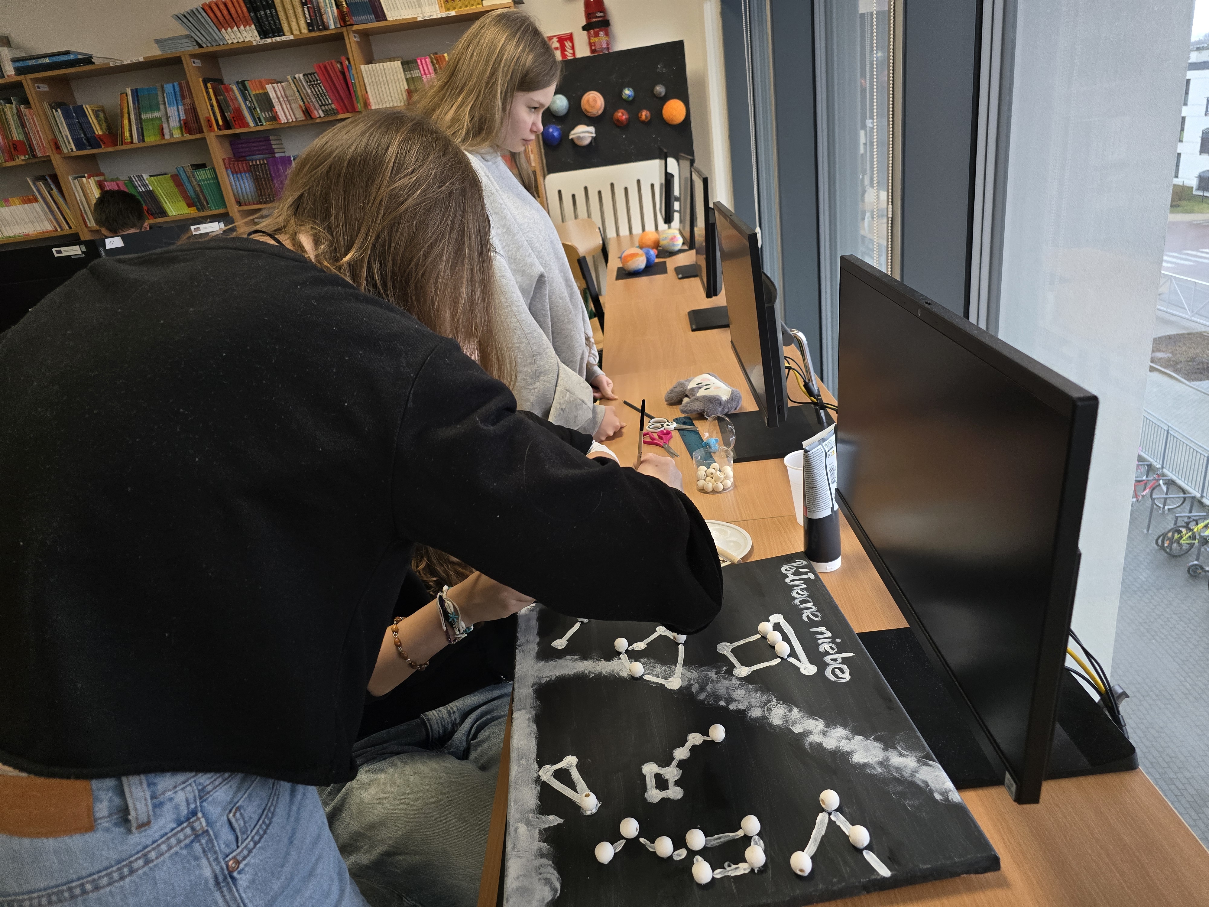 Zajęcia z fizyki nie zawsze muszą wyglądać tak samo. Uczniowie klasy 1 liceum ogólnokształcącego, realizując dział astronomia, wzięli udział w projekcie, który pozwolił im połączyć wiedzę z kreatywnością. Pracując w grupach, mierzyli się z konkretnymi zadaniami – każda z nich odpowiadała za przygotowanie jednego zagadnienia: modelu Układu Słonecznego lub przedstawienia nieba półkuli północnej bądź południowej.