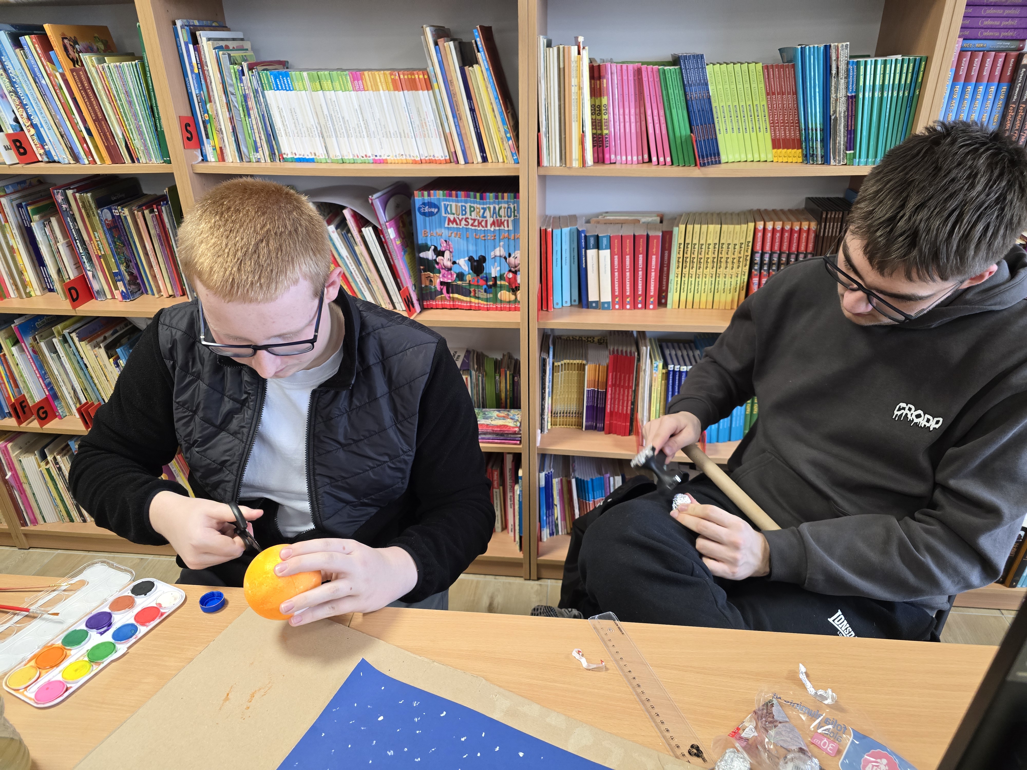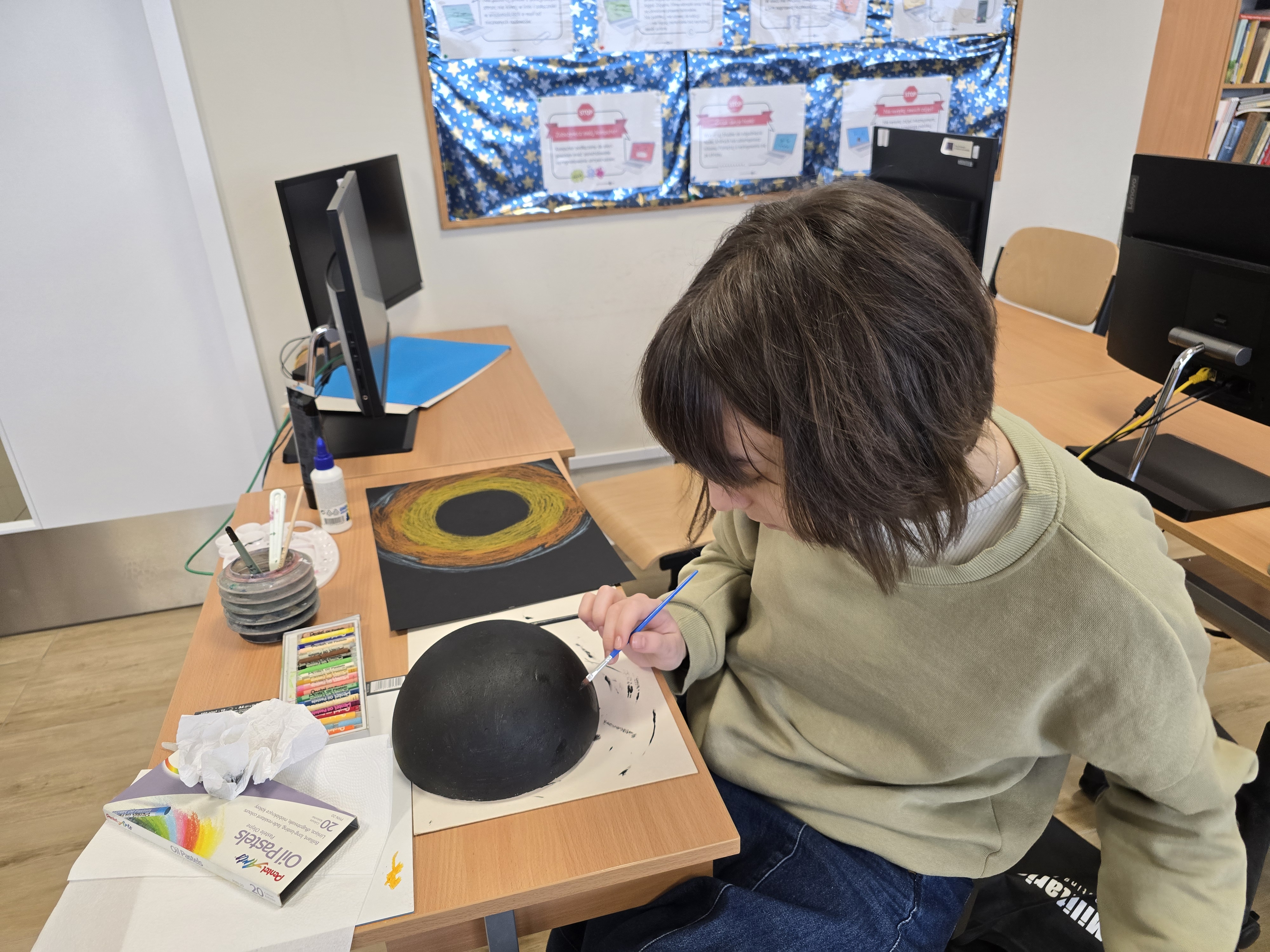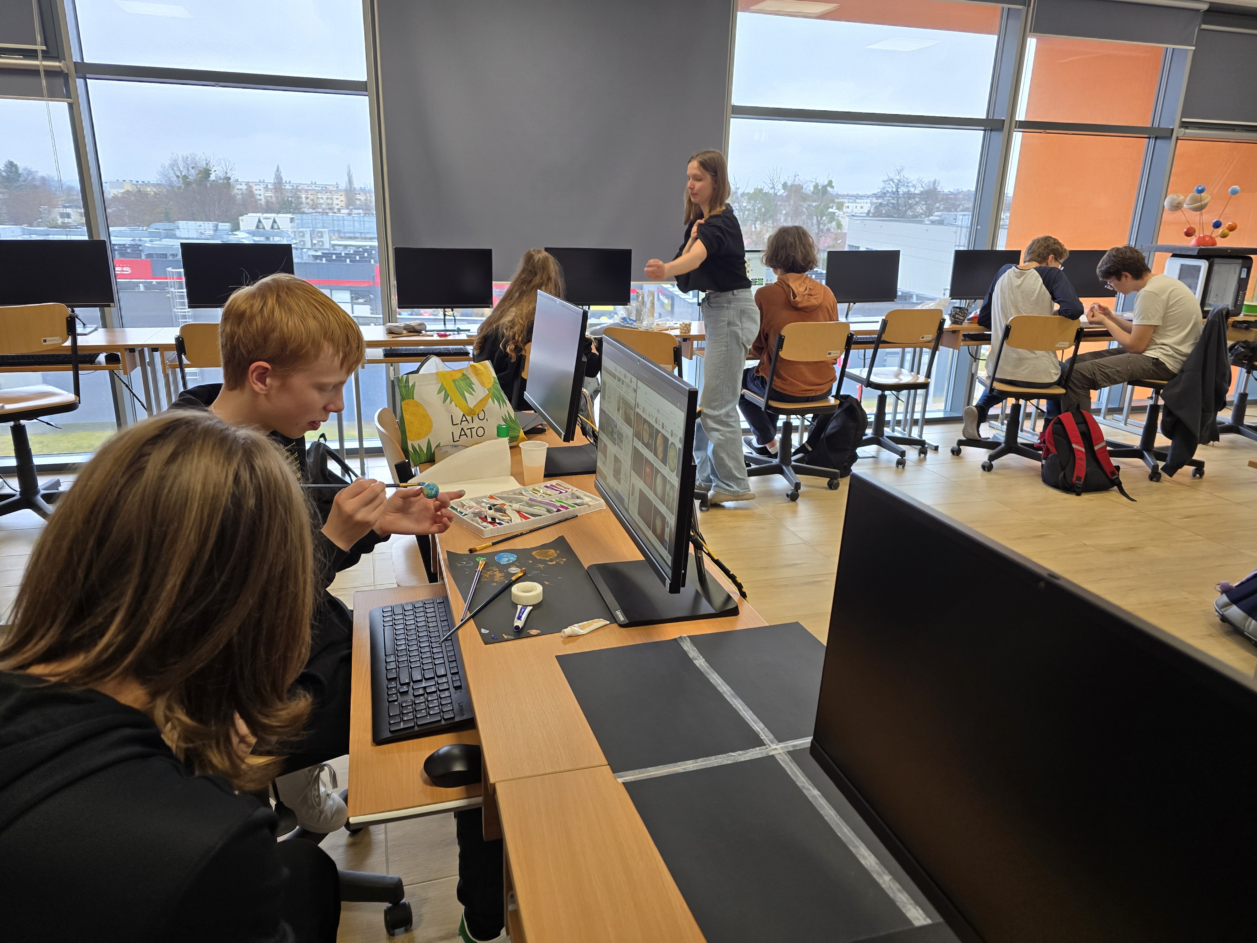 Zajęcia z fizyki nie zawsze muszą wyglądać tak samo. Uczniowie klasy 1 liceum ogólnokształcącego, realizując dział astronomia, wzięli udział w projekcie, który pozwolił im połączyć wiedzę z kreatywnością. Pracując w grupach, mierzyli się z konkretnymi zadaniami – każda z nich odpowiadała za przygotowanie jednego zagadnienia: modelu Układu Słonecznego lub przedstawienia nieba półkuli północnej bądź południowej.