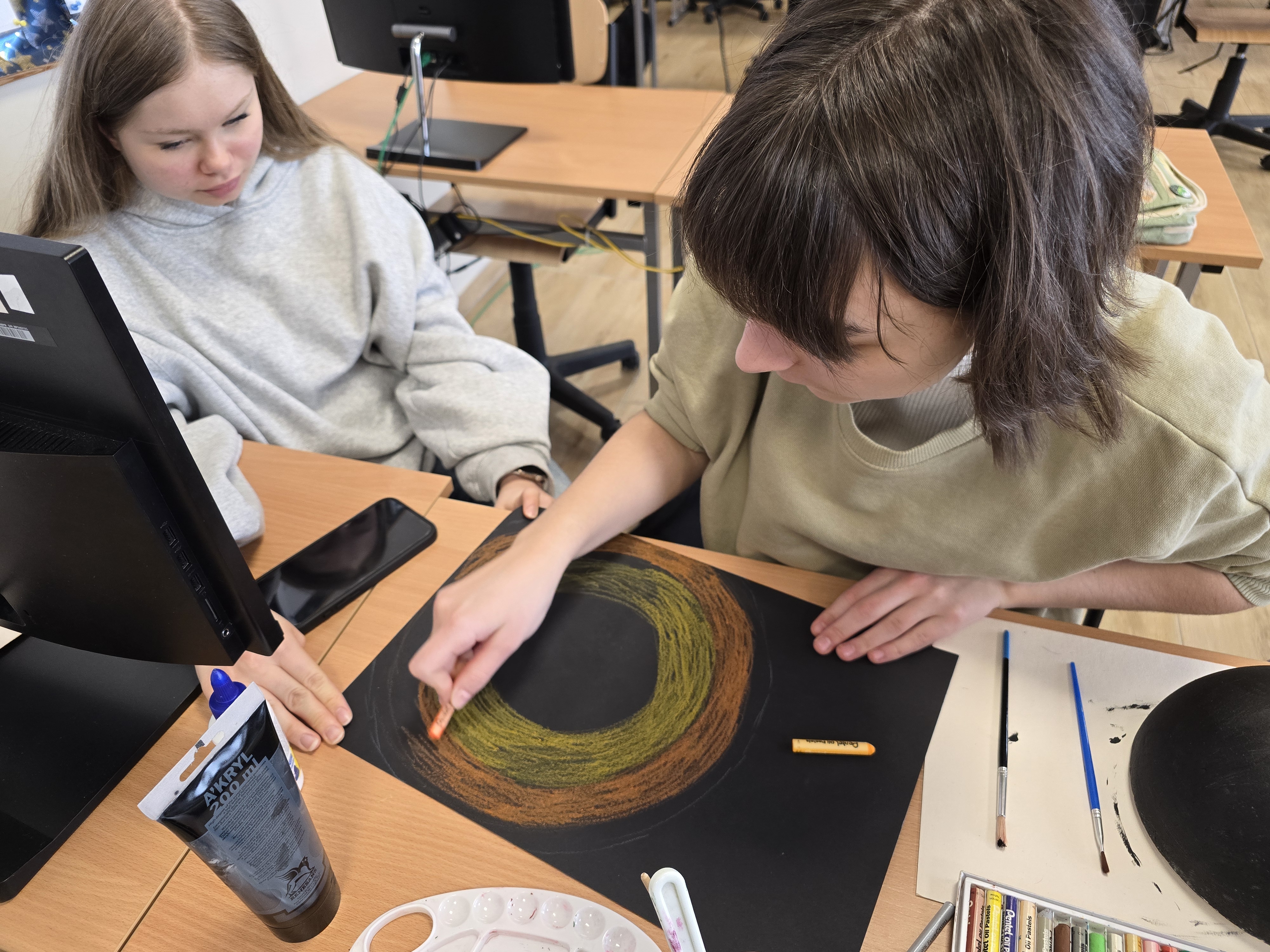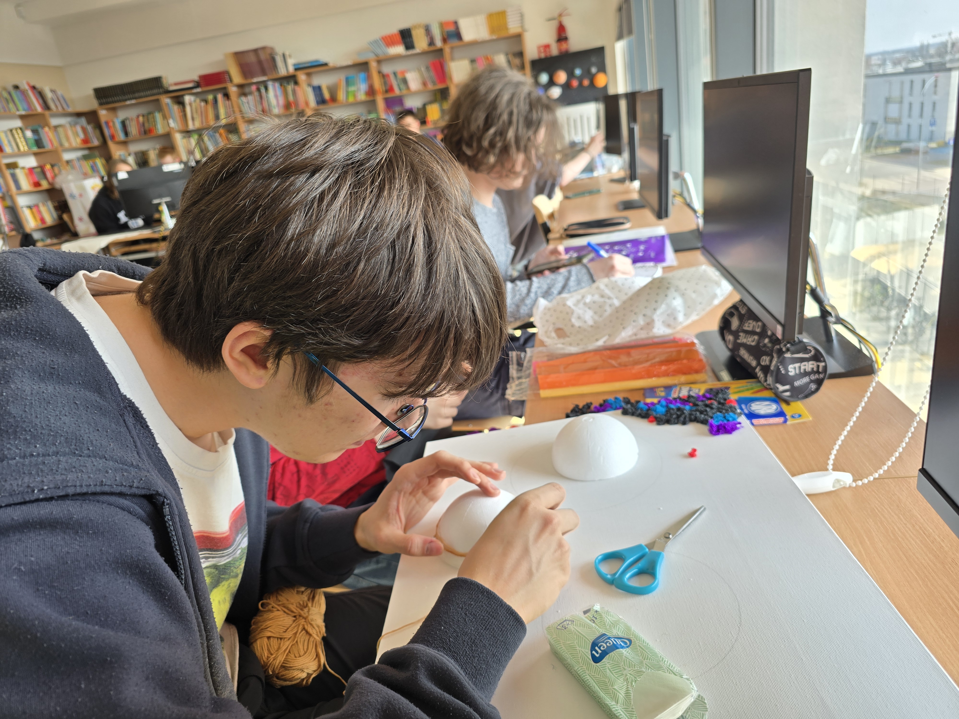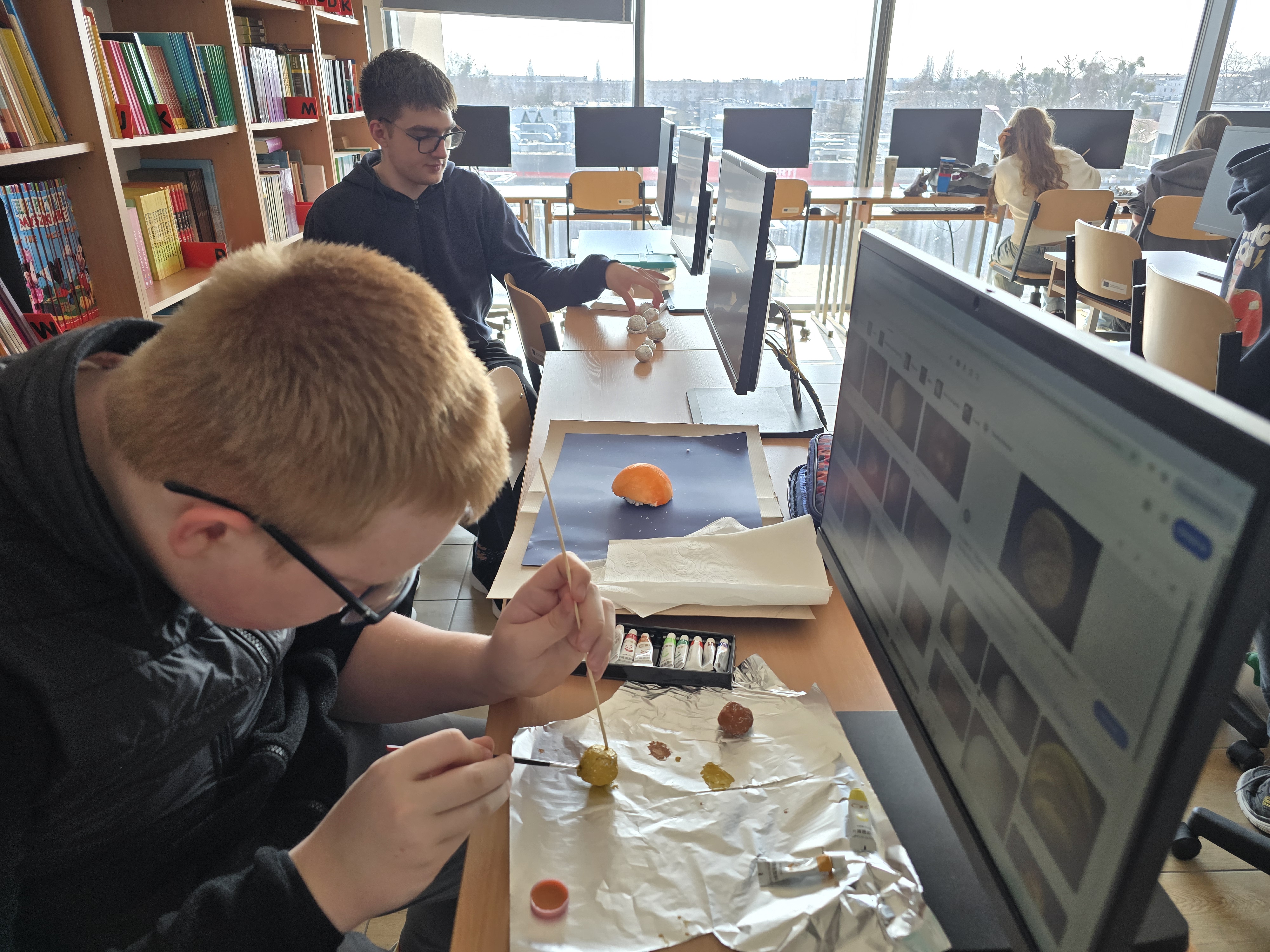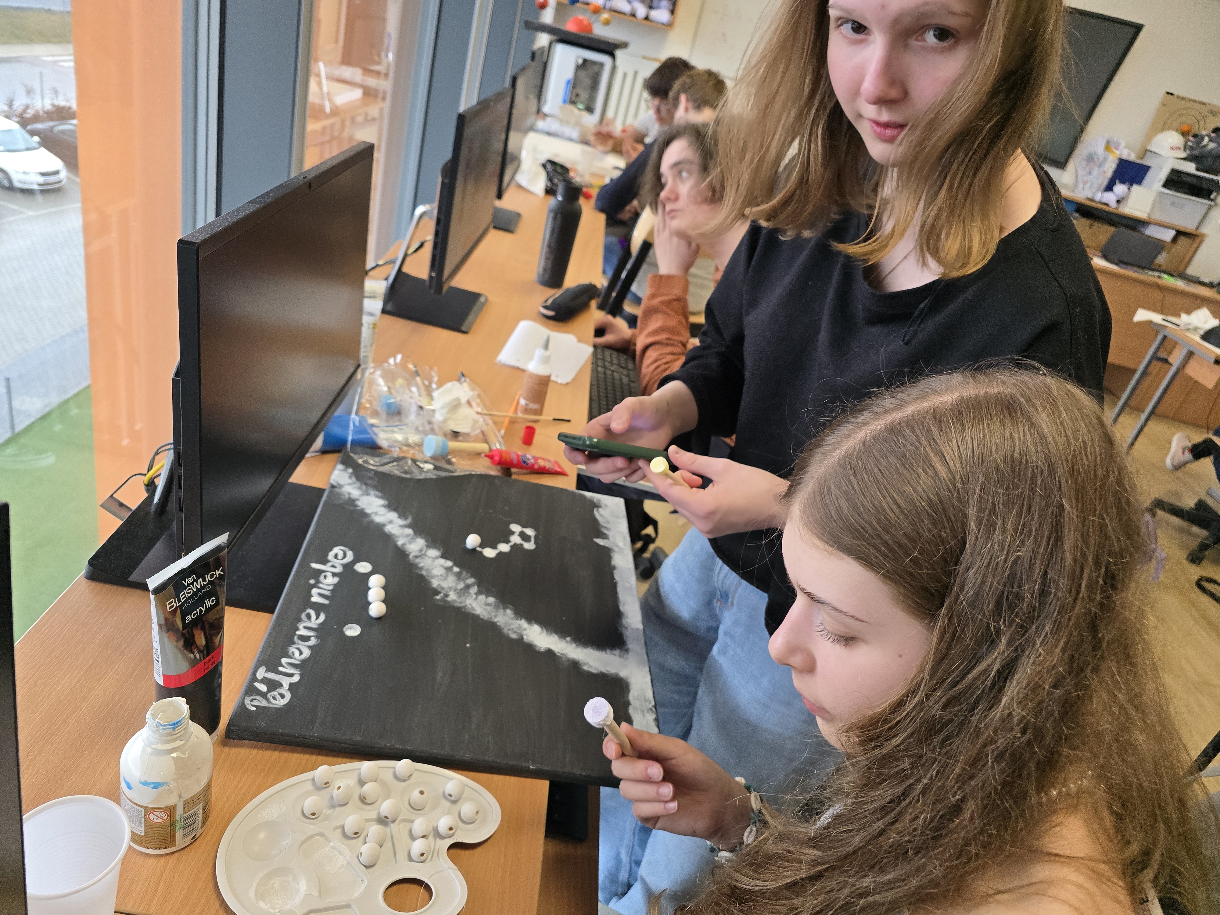 Zajęcia z fizyki nie zawsze muszą wyglądać tak samo. Uczniowie klasy 1 liceum ogólnokształcącego, realizując dział astronomia, wzięli udział w projekcie, który pozwolił im połączyć wiedzę z kreatywnością. Pracując w grupach, mierzyli się z konkretnymi zadaniami – każda z nich odpowiadała za przygotowanie jednego zagadnienia: modelu Układu Słonecznego lub przedstawienia nieba półkuli północnej bądź południowej.