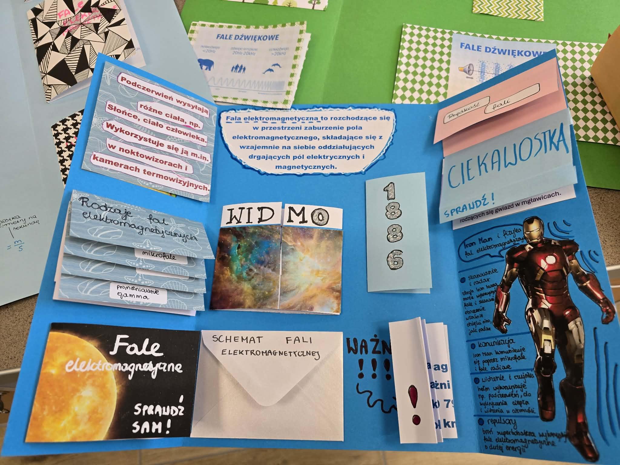 Klasa 8 miała wyjątkowe powtórzenie wiadomości, ponieważ zamiast tradycyjnych ćwiczeń uczniowie przygotowywali lapbooki dotyczące działu „Drgania i fale”. Taka forma pracy pozwoliła utrwalić najważniejsze zagadnienia w sposób angażujący i twórczy.