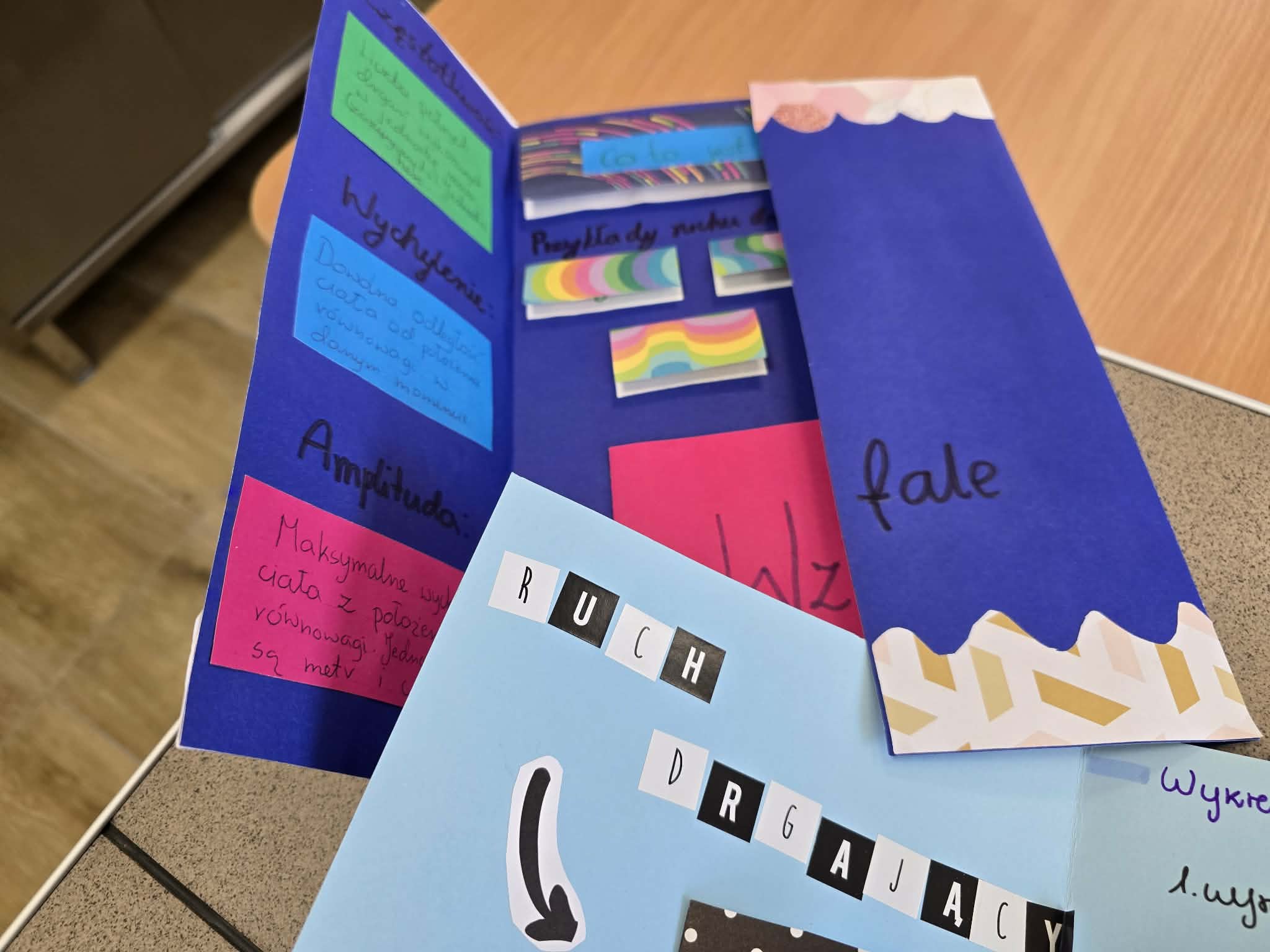 Takie powtórzenie wiadomości pokazało, że nauka poprzez działanie sprzyja lepszemu zapamiętywaniu. Tworzenie lapbooków pozwoliło uporządkować informacje o drganiach i falach, a jednocześnie sprawiło, że lekcja była ciekawa i inspirująca.