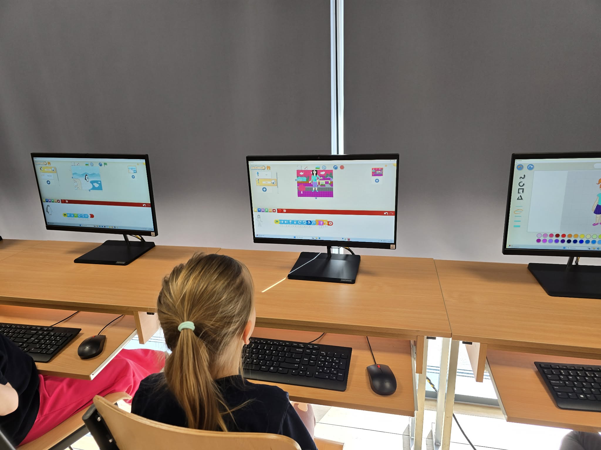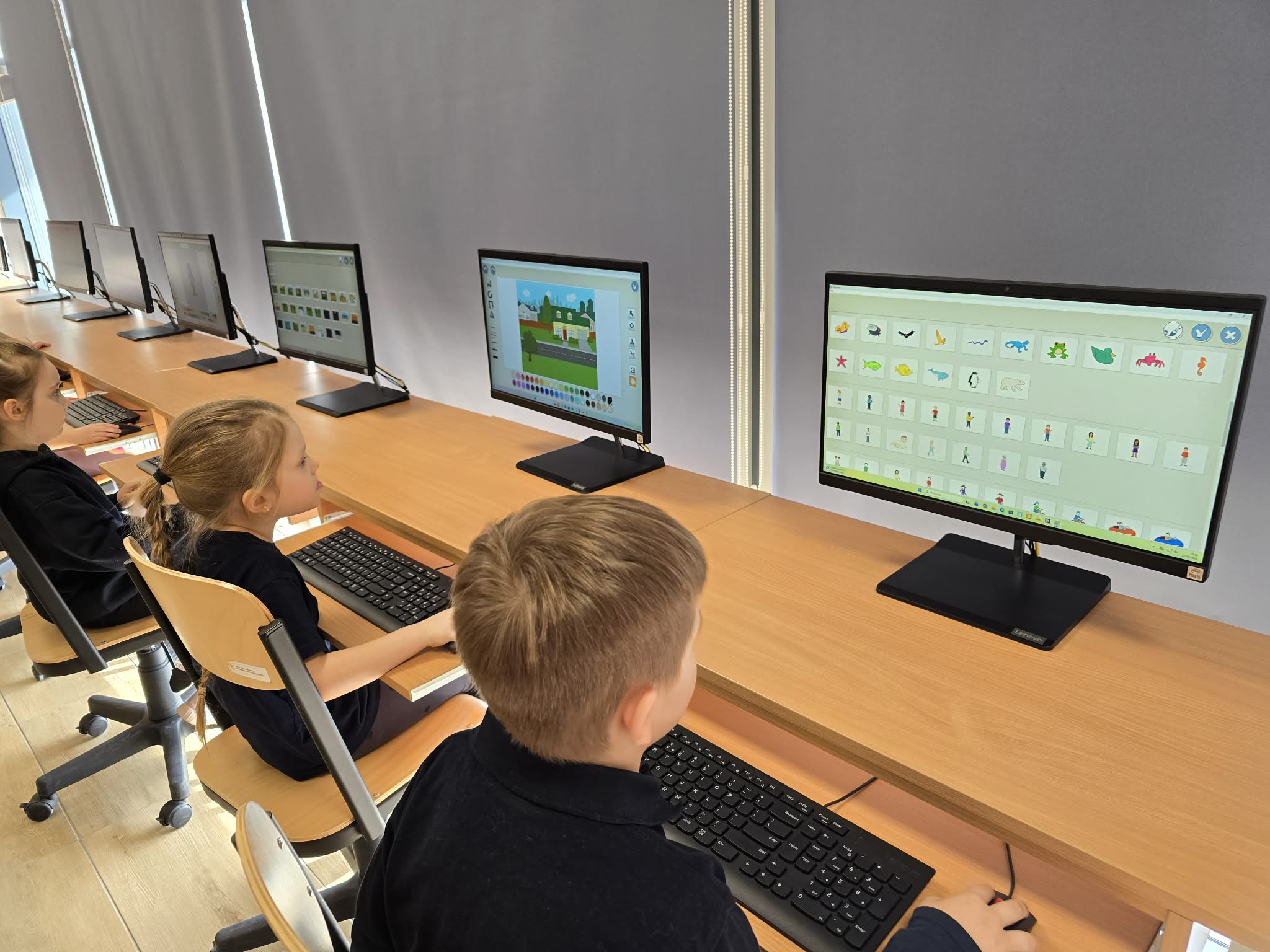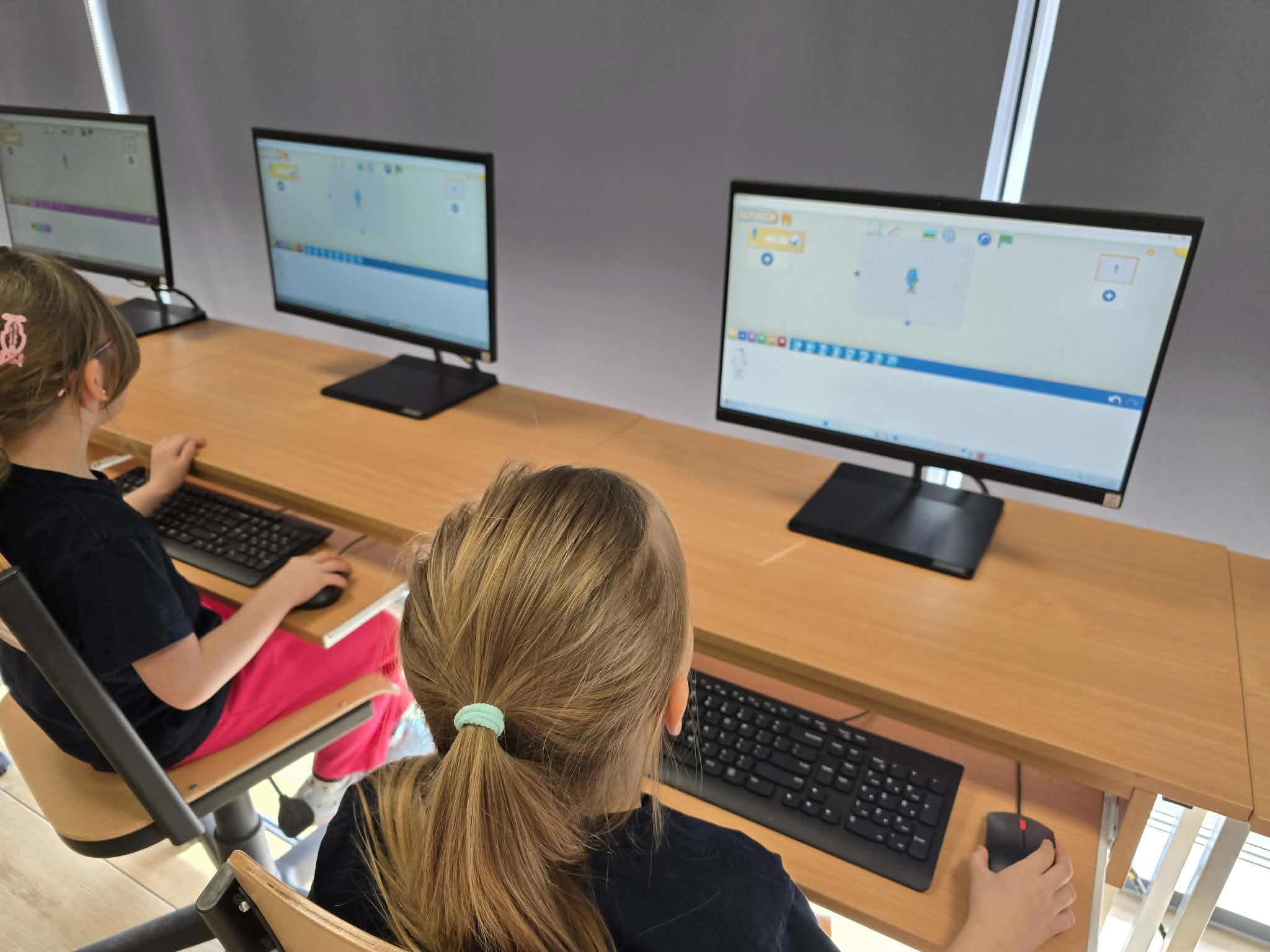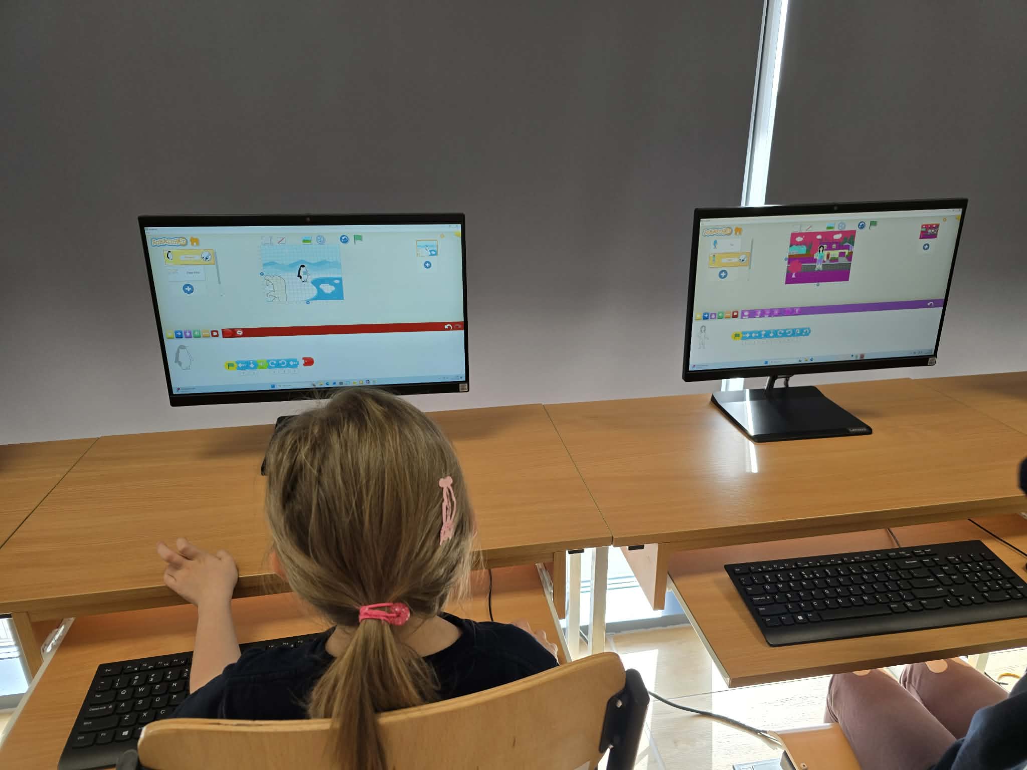 Kolejnym etapem było programowanie stworzonych postaci. Uczniowie układali odpowiednie bloczki poleceń, dzięki którym ich duszki mogły się poruszać, wykonywać różne czynności oraz ożywiać przygotowane wcześniej sceny. Dla wielu dzieci było to niezwykle ekscytujące doświadczenie – mogły zobaczyć, jak ich pomysły zamieniają się w działające animacje.