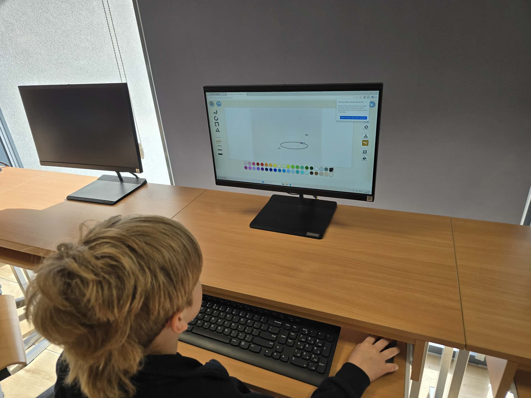 Na początku uczestnicy zajęć tworzyli własne, kolorowe tła oraz wyjątkowe duszki – bohaterów swoich projektów. Dzieci z ogromnym zaangażowaniem projektowały wielobarwne sceny, wykazując się kreatywnością i wyobraźnią. Każdy mógł stworzyć zupełnie inny świat – pełen kolorów, ciekawych postaci i niezwykłych pomysłów.