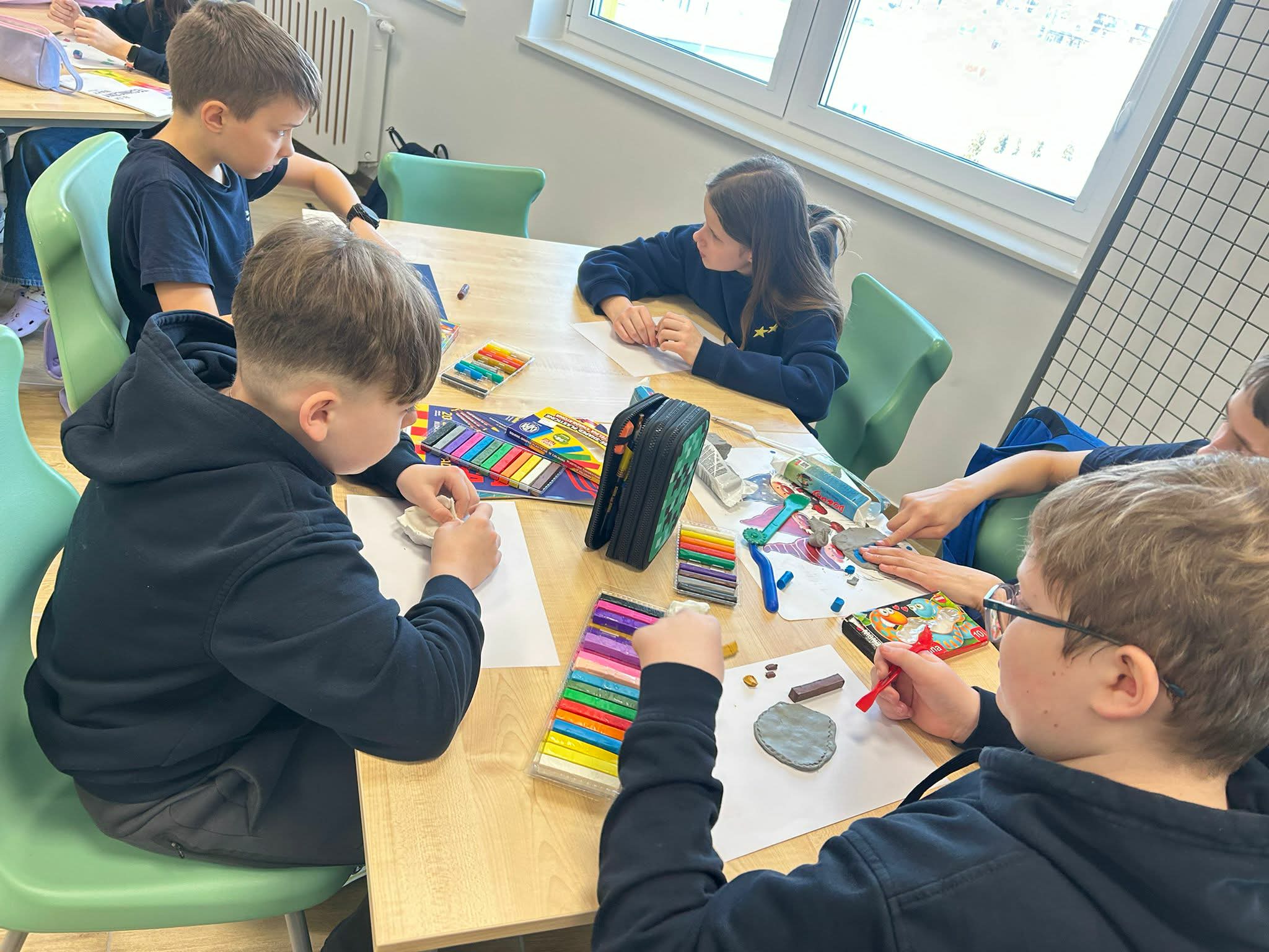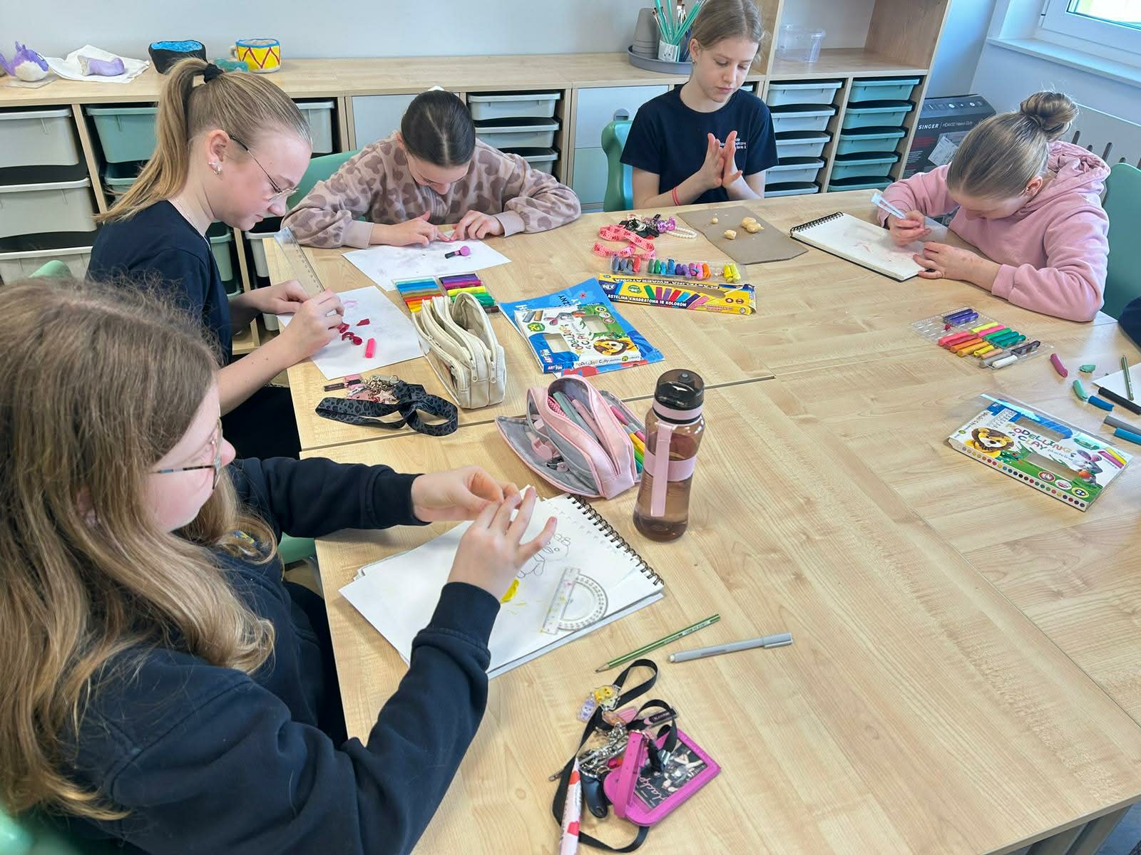 Uczniowie klas 5 i 6 mieli okazję po raz kolejny rozwijać swoje talenty podczas zajęć plastycznych w nowej pracowni artystycznej. To wyjątkowe miejsce sprzyja twórczej atmosferze, inspiruje do działania i pozwala młodym artystom realizować nawet najbardziej nietypowe pomysły.