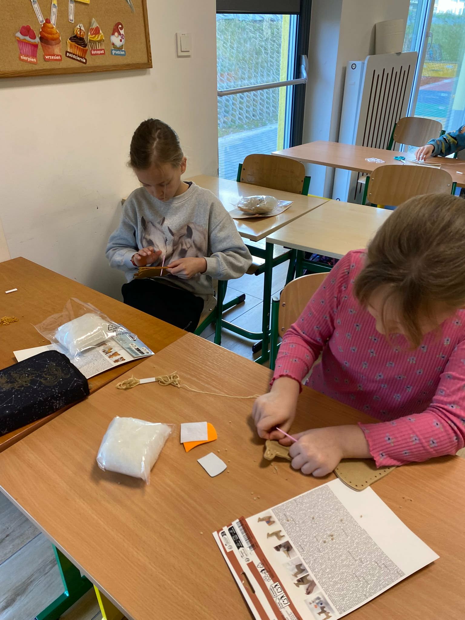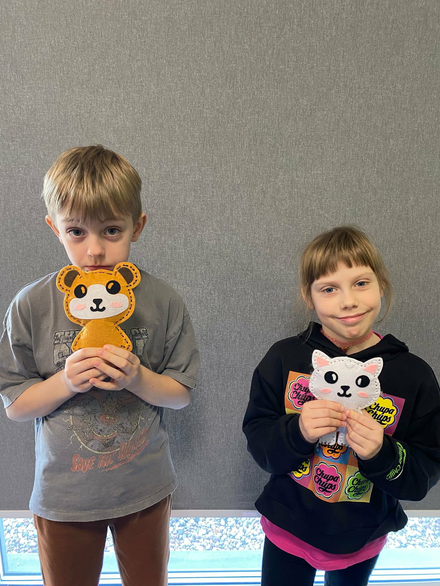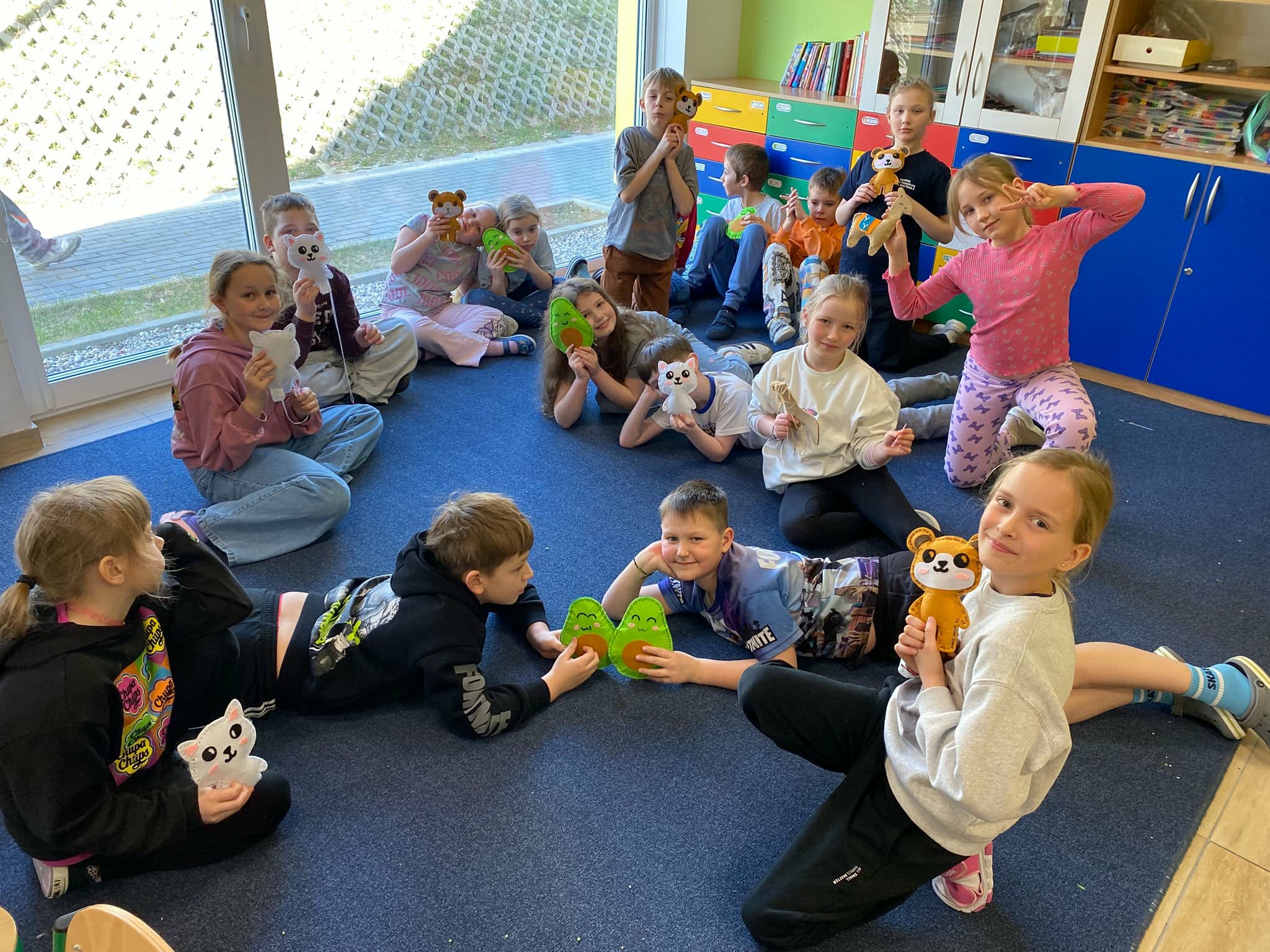 Praca nad maskotkami była dla uczniów nie tylko świetną zabawą, ale także okazją do rozwijania zdolności manualnych, cierpliwości i dokładności. Dzieci uczyły się podstaw szycia – jak bezpiecznie posługiwać się igłą, łączyć elementy materiału oraz dbać o estetykę wykonania.