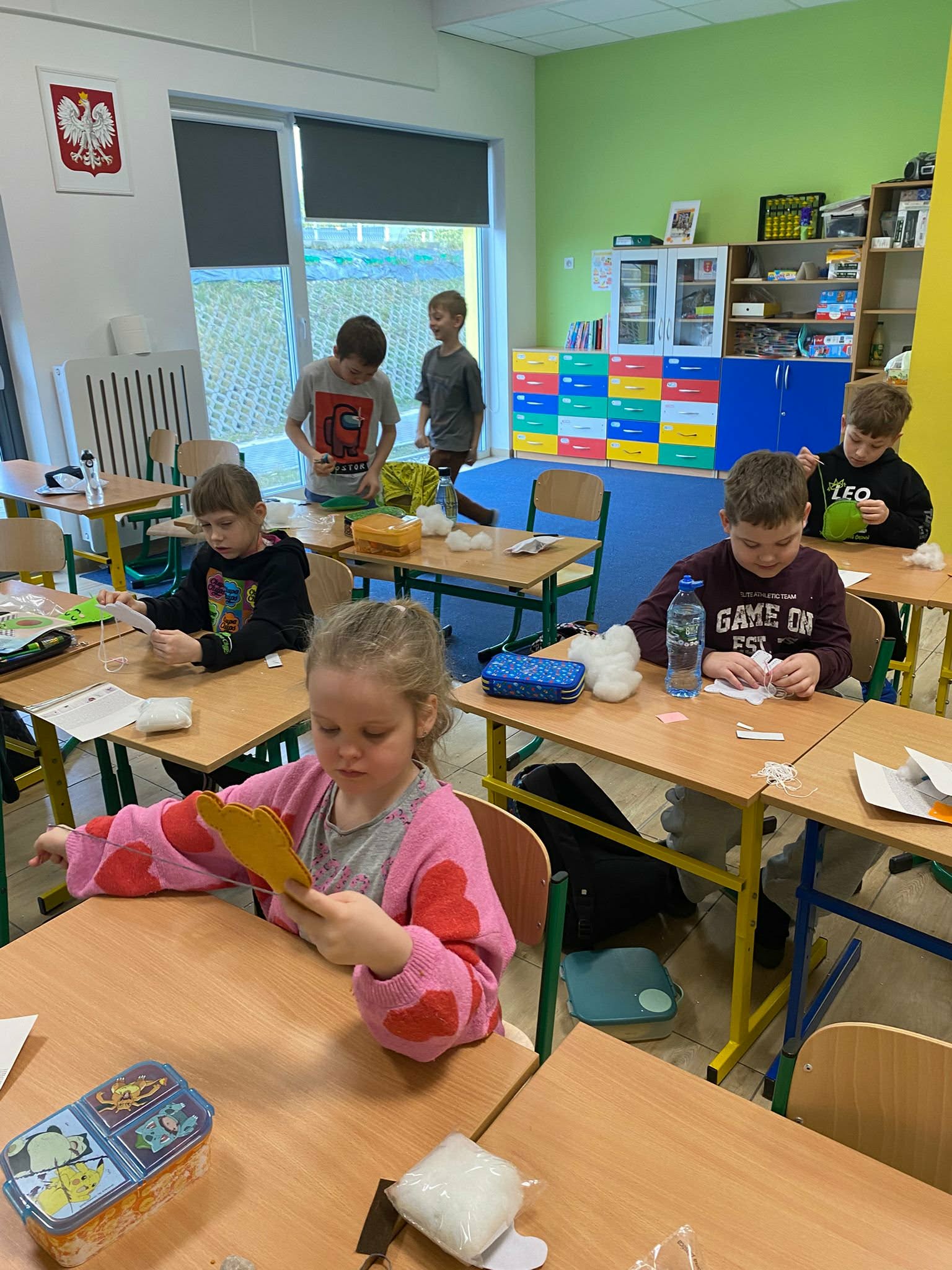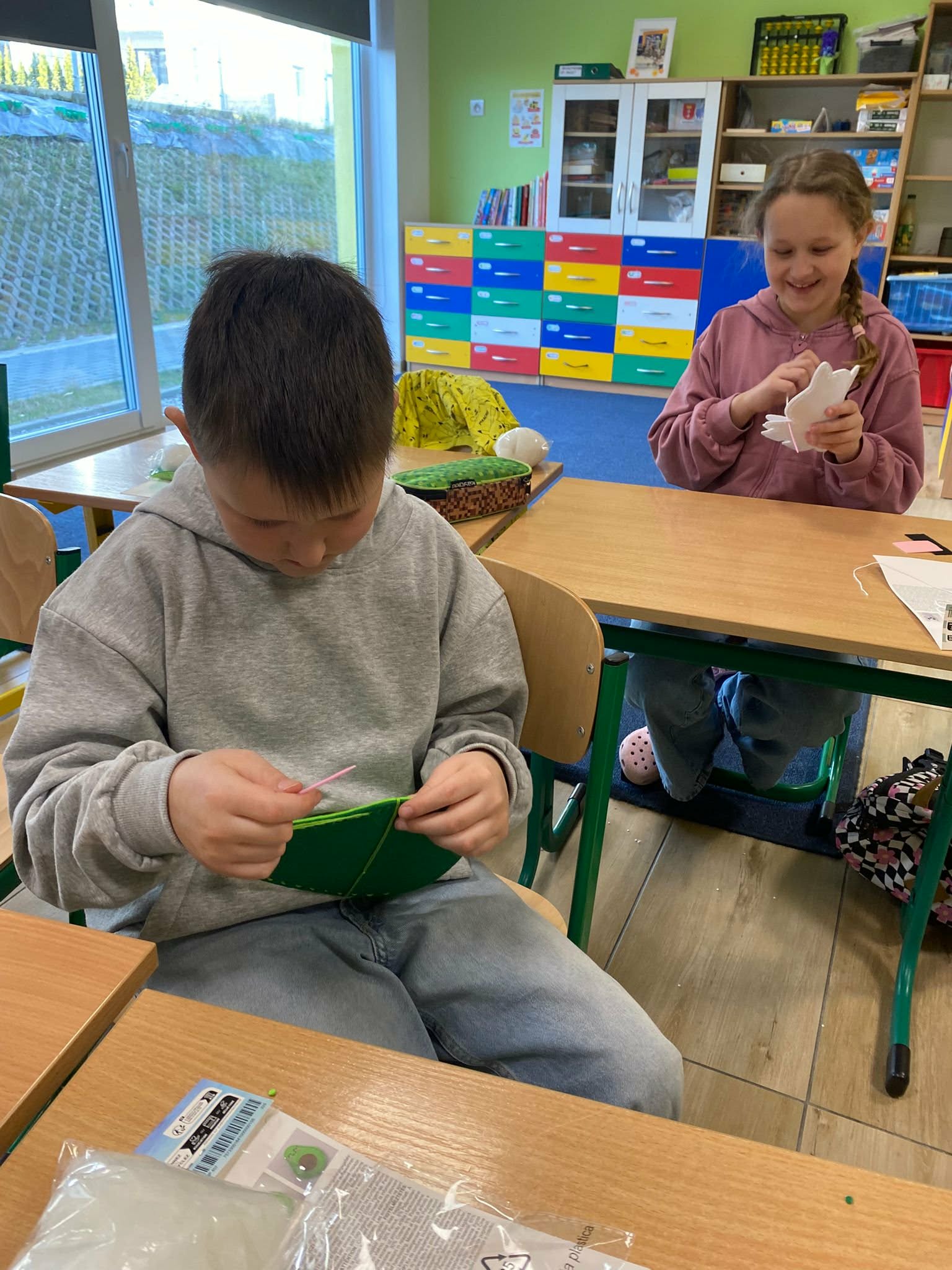 Każda maskotka była wyjątkowa i niepowtarzalna. Uczniowie z ogromnym zaangażowaniem dobierali kolory, ozdabiali swoje prace i nadawali im indywidualny charakter. Efekty ich pracy wywołały wiele radości i dumy – zarówno u samych twórców, jak i nauczyciela.