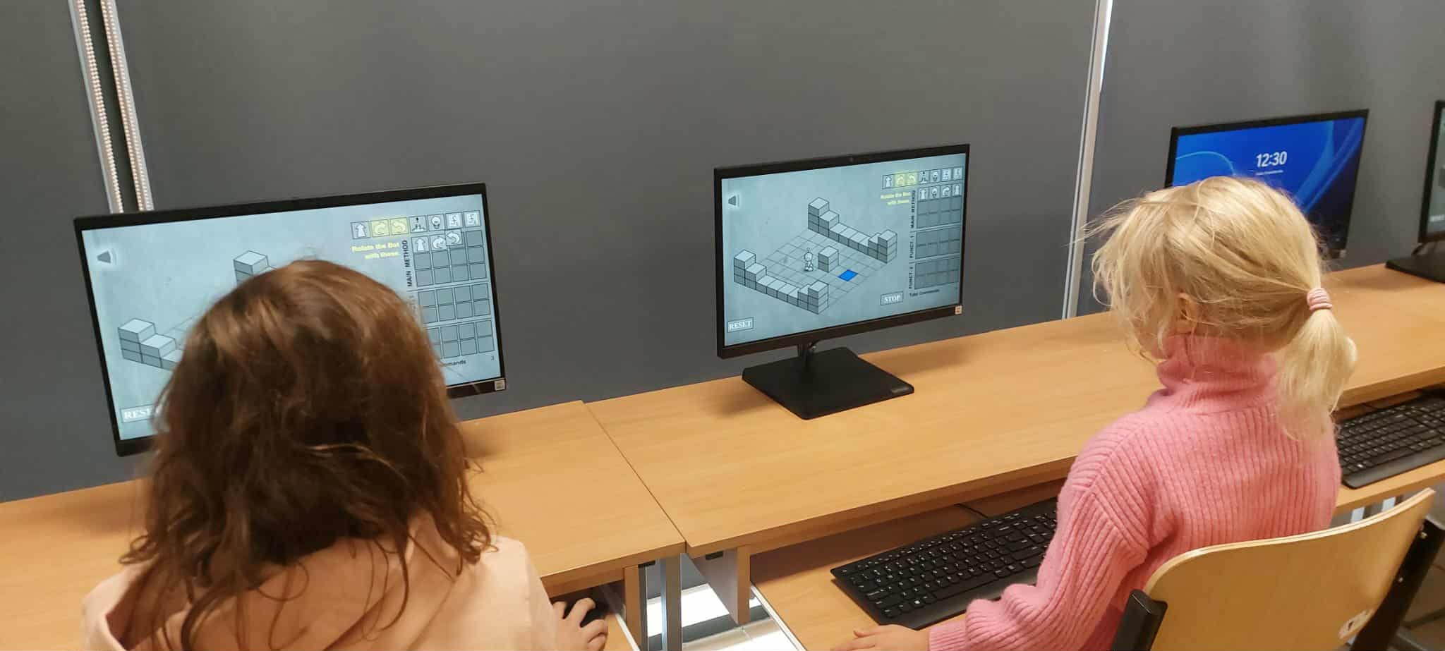 Zamiast skomplikowanych języków i trudnych terminów, dzieci odkrywały programowanie poprzez zabawę. Zadaniem było przeprowadzenie uroczego robota przez serię plansz, zapalając wszystkie niebieskie kafelki. Aby to osiągnąć, uczniowie uczyli się układać instrukcje, czyli proste komendy, które robot miał wykonywać po kolei.