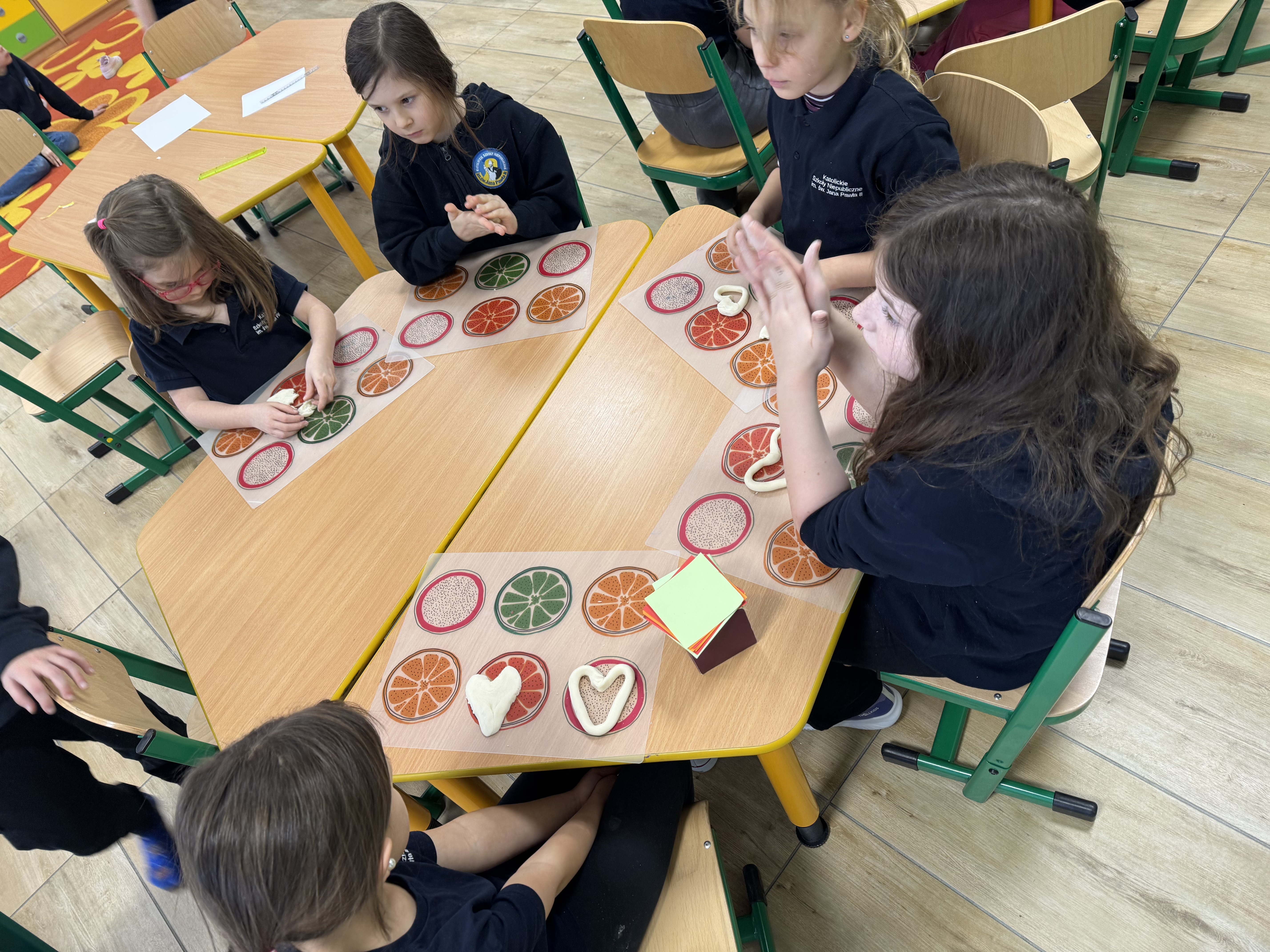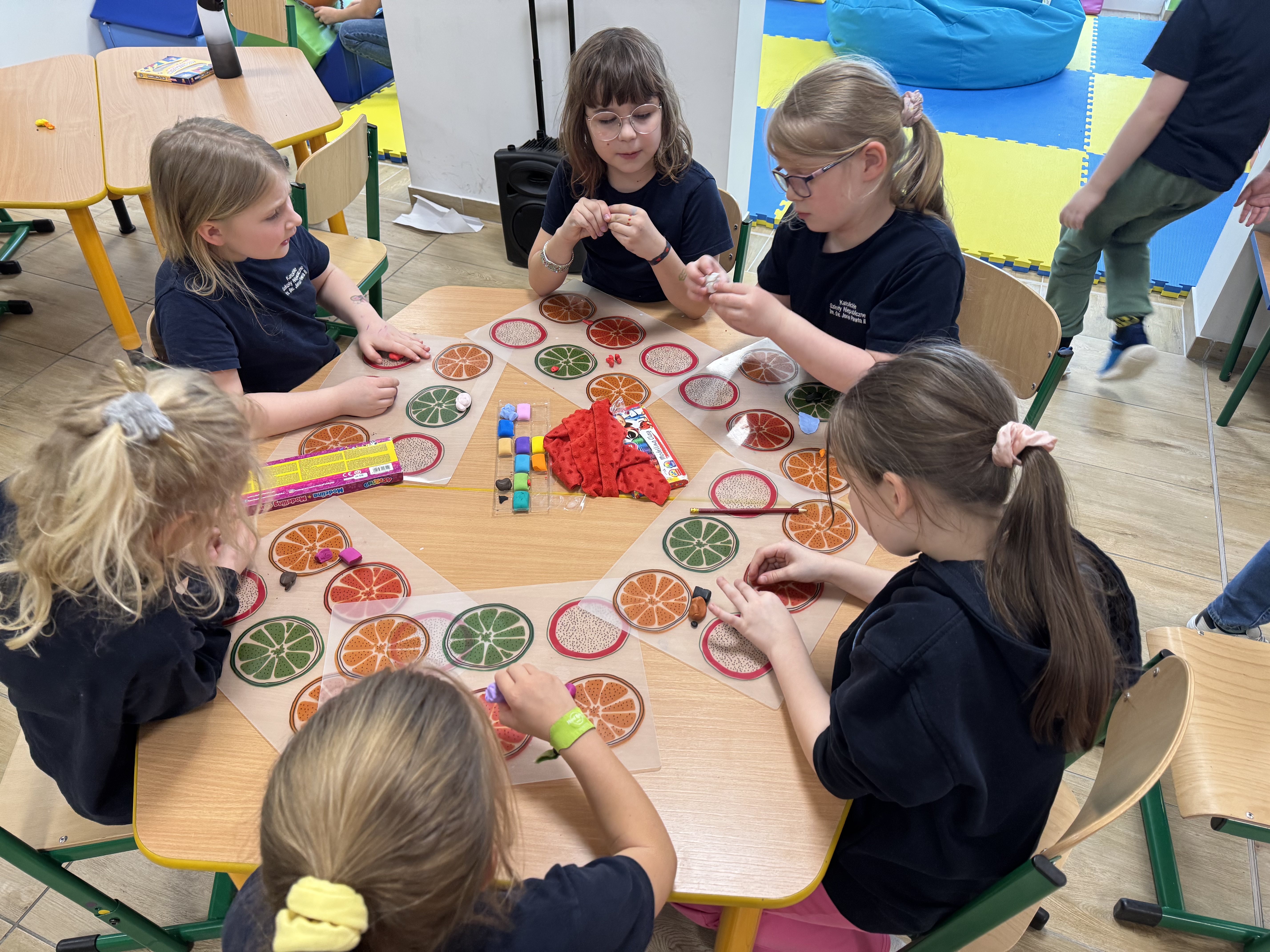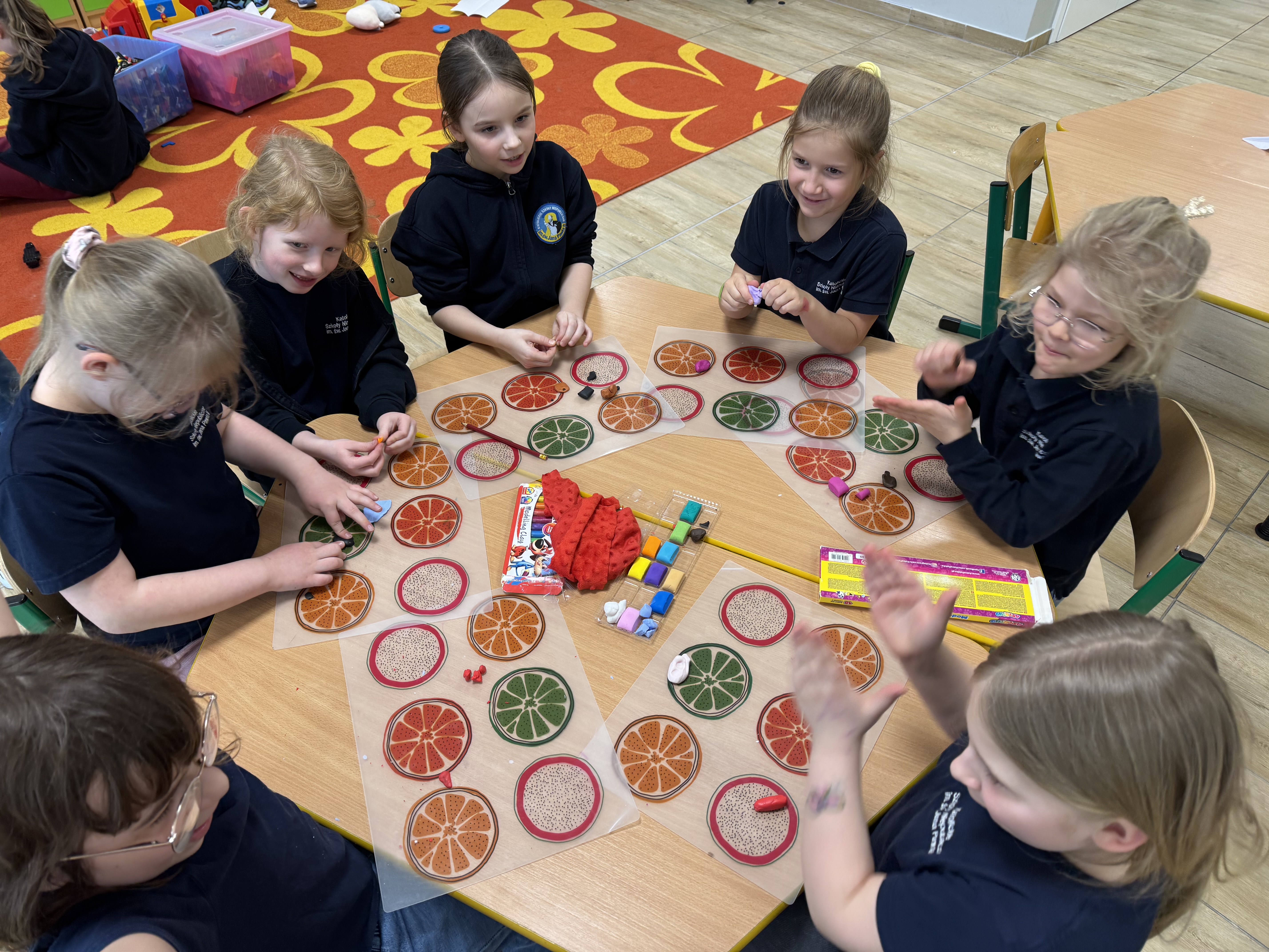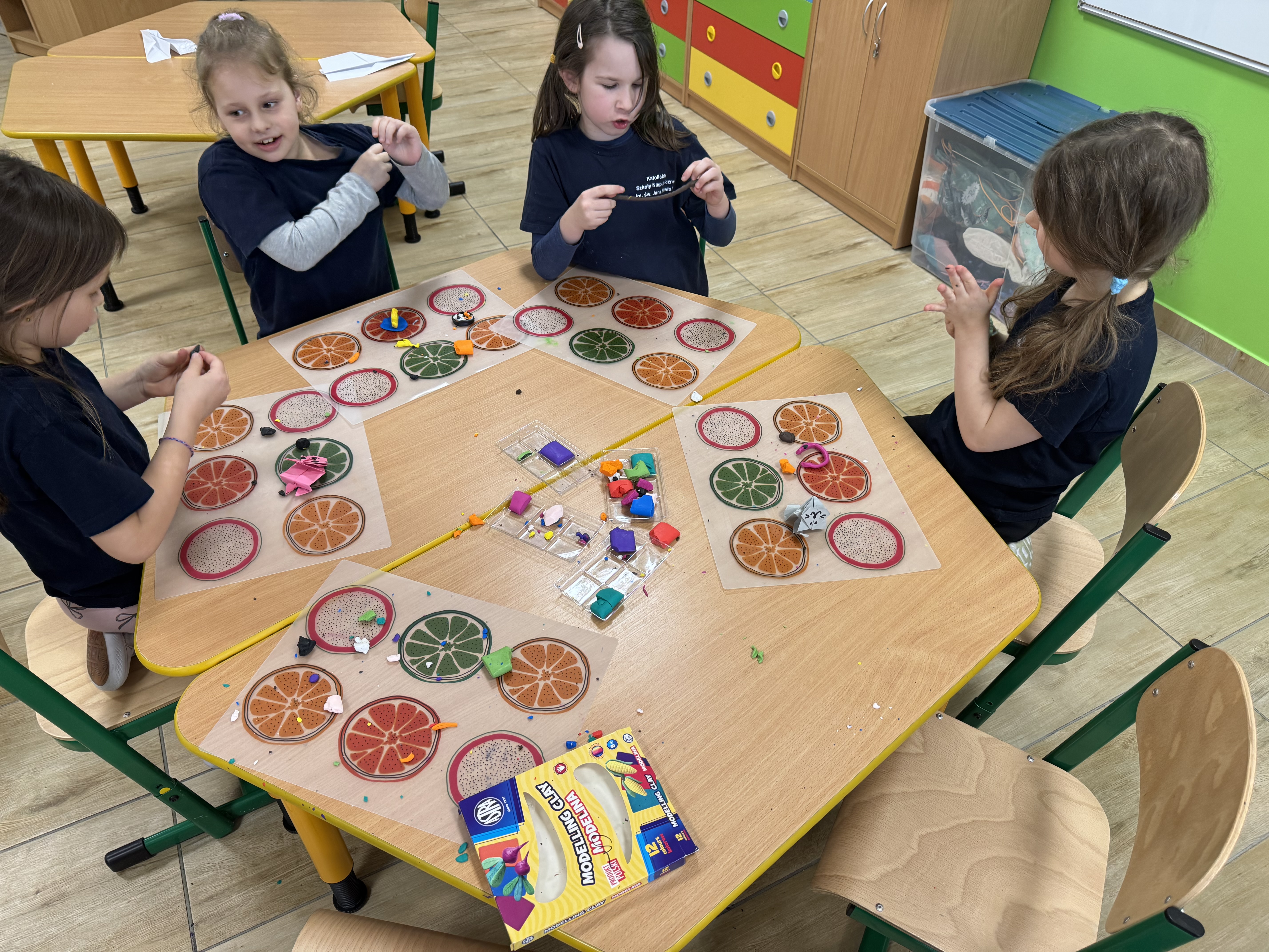 W naszej szkolnej świetlicy wydarzyło się ostatnio coś naprawdę magicznego. Dziś popołudniu stoły zamieniły się w pracownie małych artystów, a zwykła modelina stała się bramą do krainy wyobraźni. Dzieci z zapałem ugniatały, wałkowały i formowały kolorowe kawałki masy, jakby w ich dłoniach kryła się tajemna moc tworzenia nowych światów.