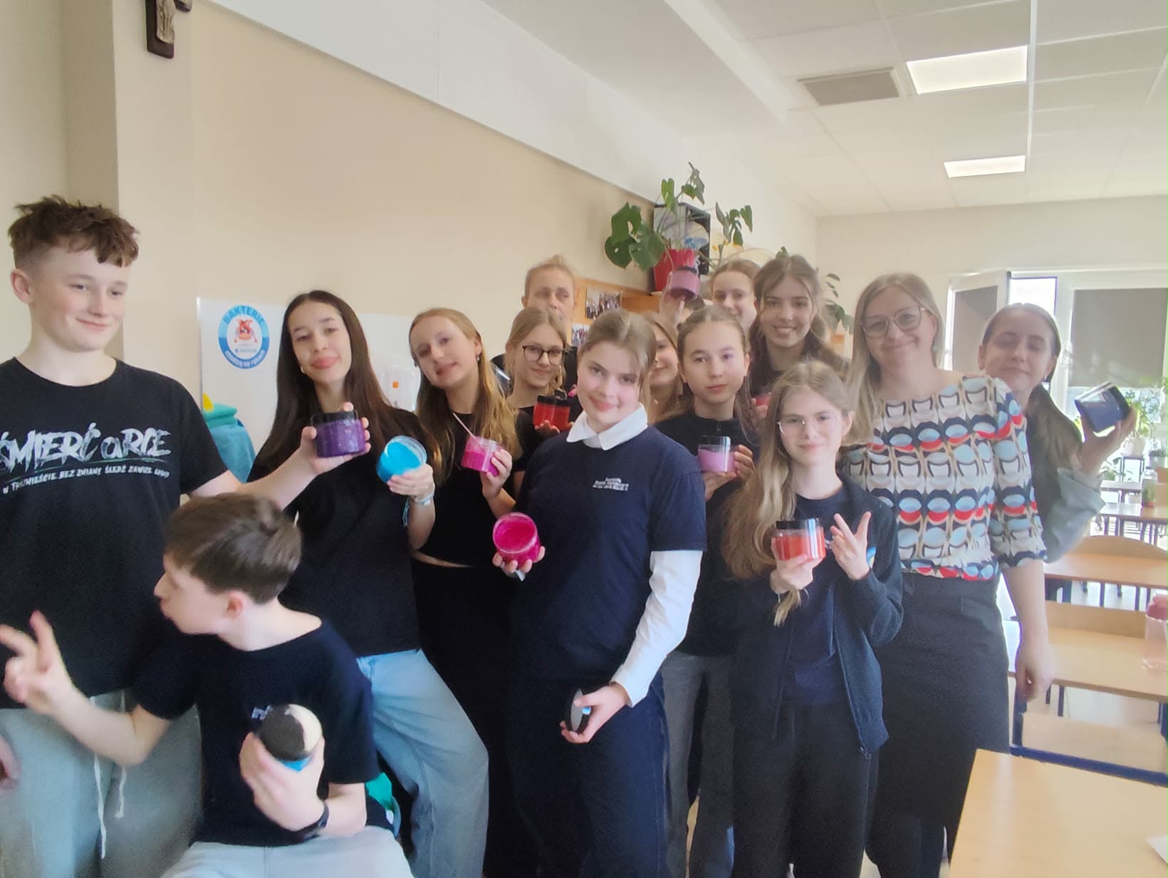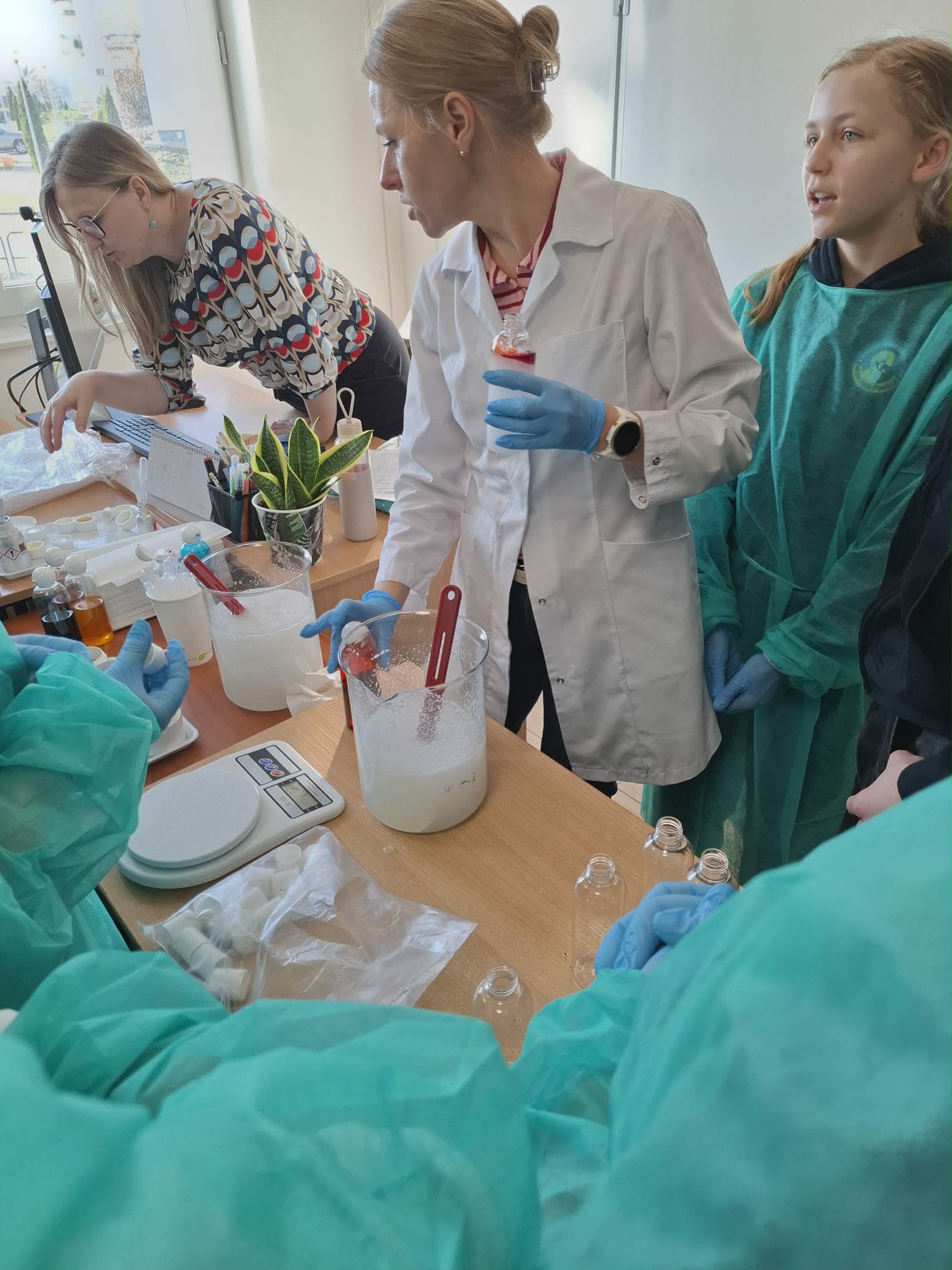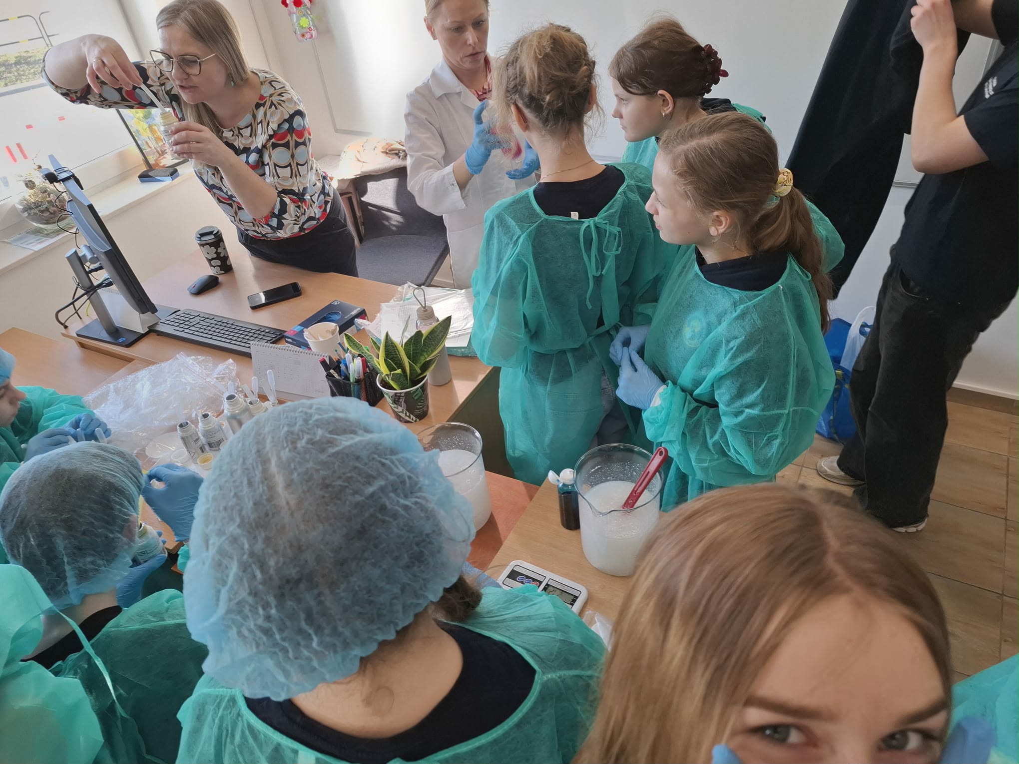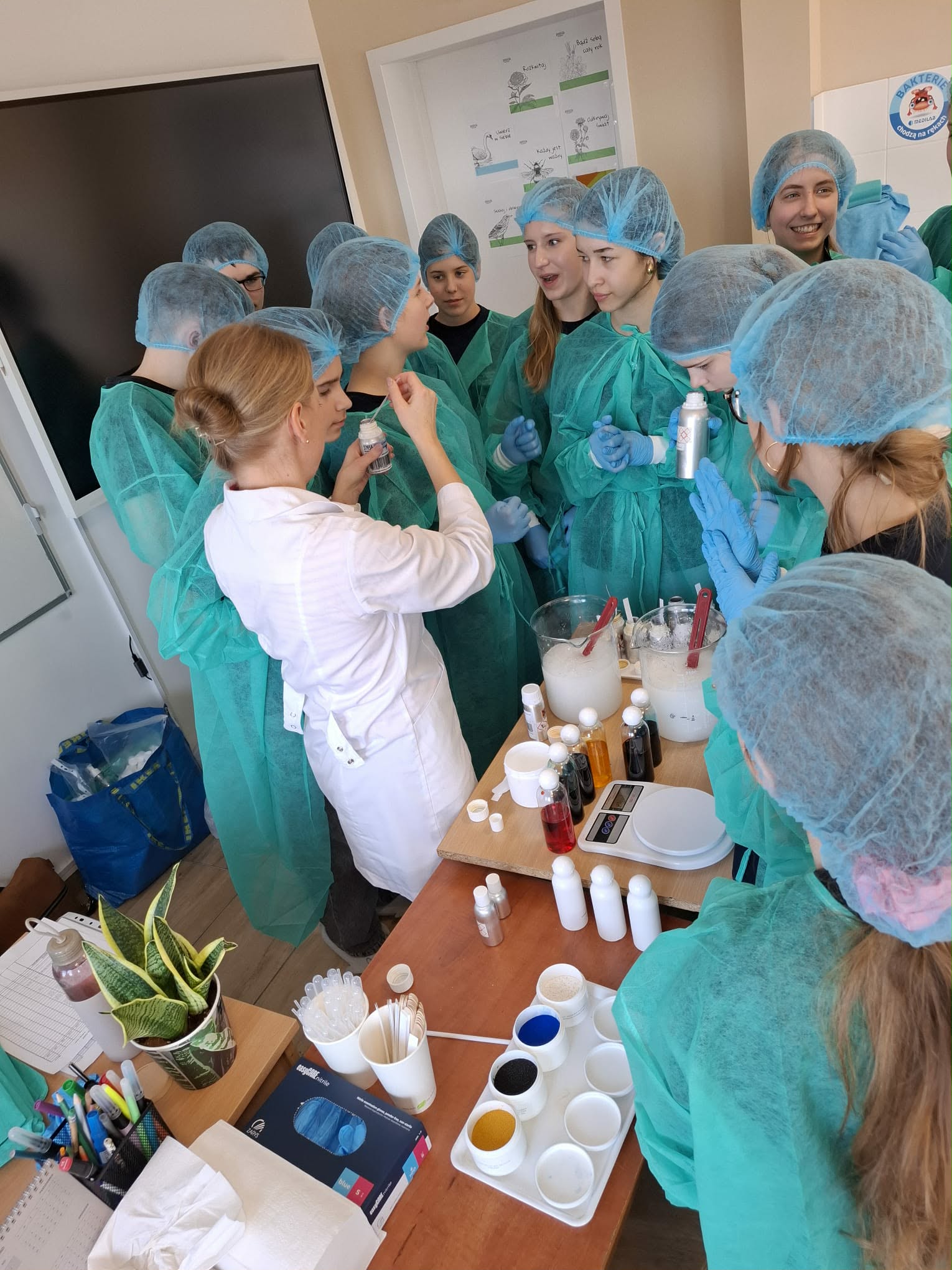 Podczas warsztatów uczniowie wcielili się w rolę młodych naukowców. Z dużym zaangażowaniem tworzyli własne żelki do kąpieli oraz żele pod prysznic. Największą wartością zajęć było jednak to, że dzieci mogły poznać cały proces powstawania produktu kosmetycznego. Dowiedziały się, jak ważna jest dokładność, przestrzeganie procedur oraz bezpieczeństwo podczas pracy w laboratorium.